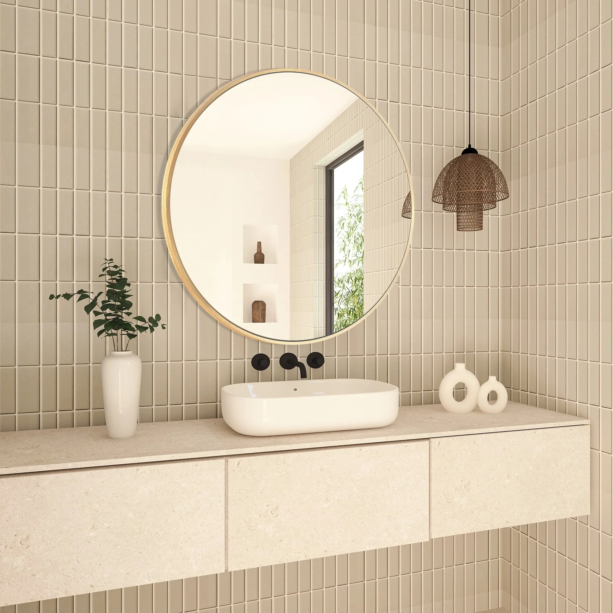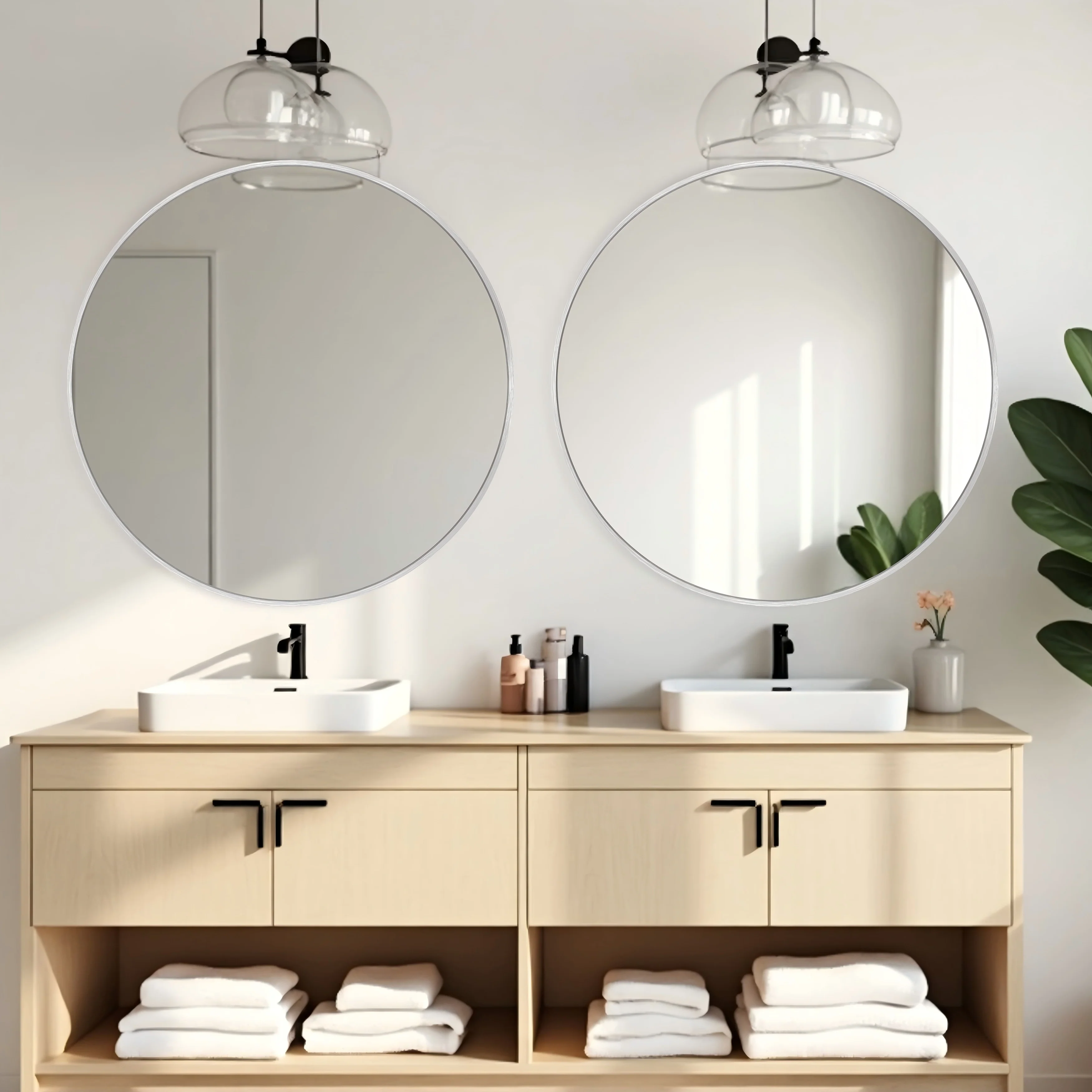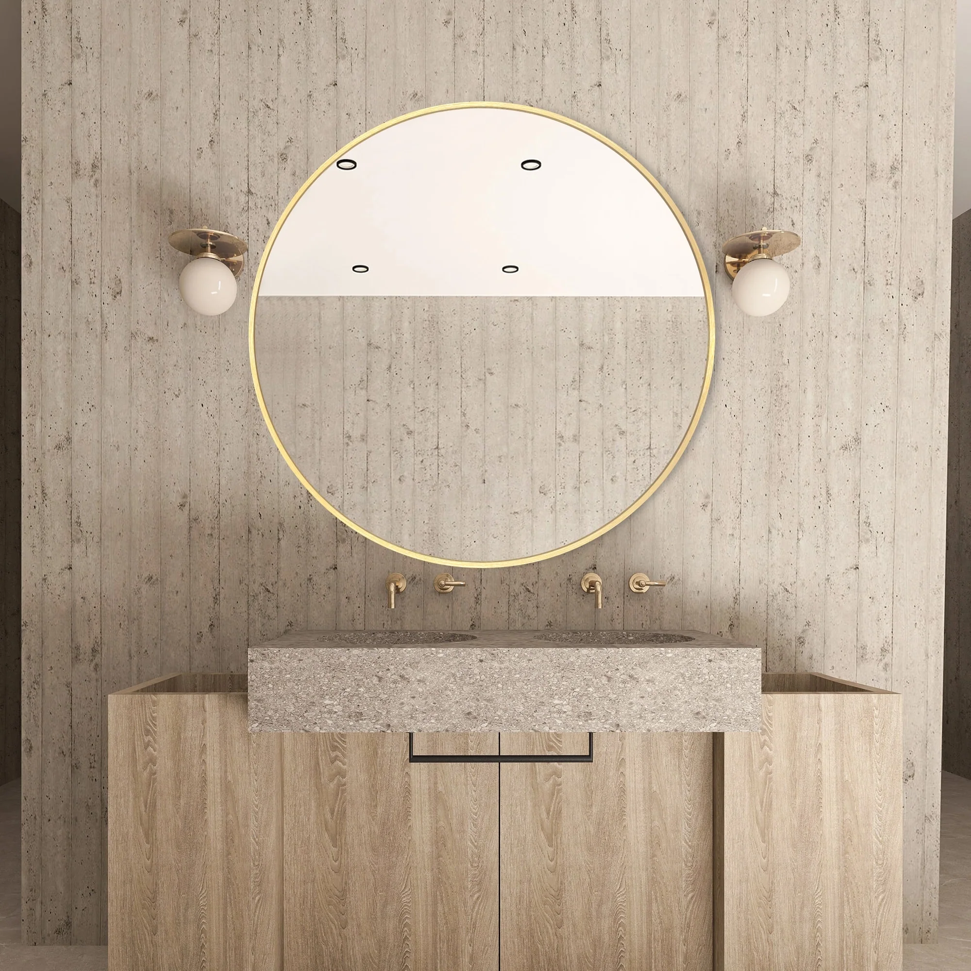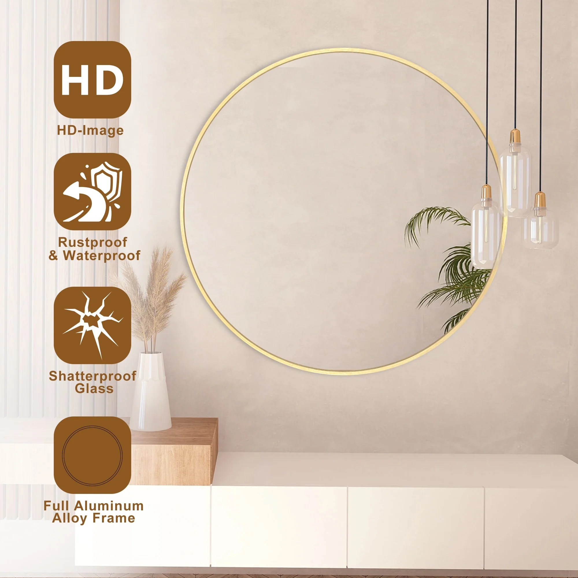 If you love the round mirror trend, and are looking for some inspiration - this is the best for you. The soft shape allows the eye to move effortlessly around the room and makes a statement all at the same time. Beautifully handcrafted, our round mirror for wall hanging is handcrafted with care and attention to detail and design. The round shape and the super-thin frame create a sense of solemn order, extending visually space, depth, and light. A round mirror is placed in the center, and the totals in the surrounding area help to accentuate the three dimensionality of the composition. The American Style Minimalist Bathroom Mirror reflects mottled light and shadow when illuminated, creating a dramatic three dimensional appearance. It adds a charming accent to your walls while serving as functional wall art, completing your modern, rustic, or farmhouse room decor.