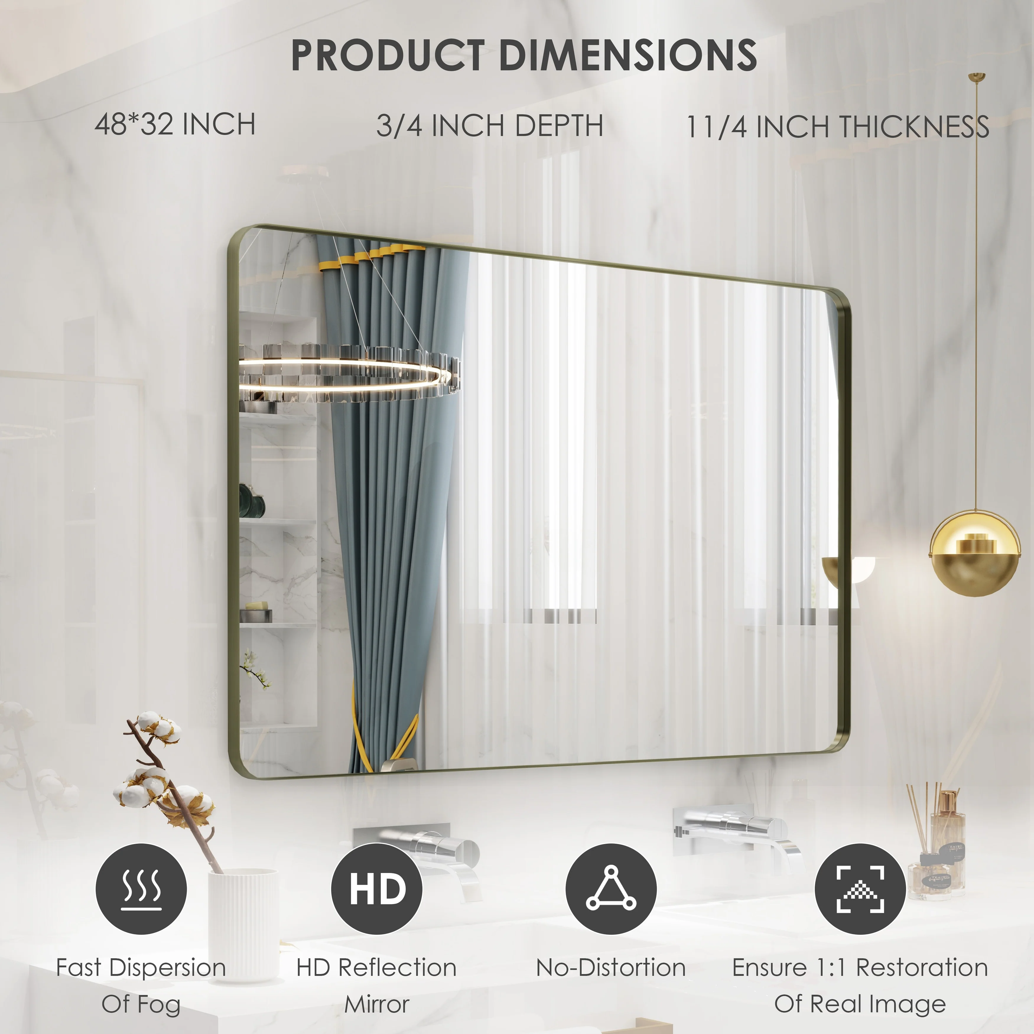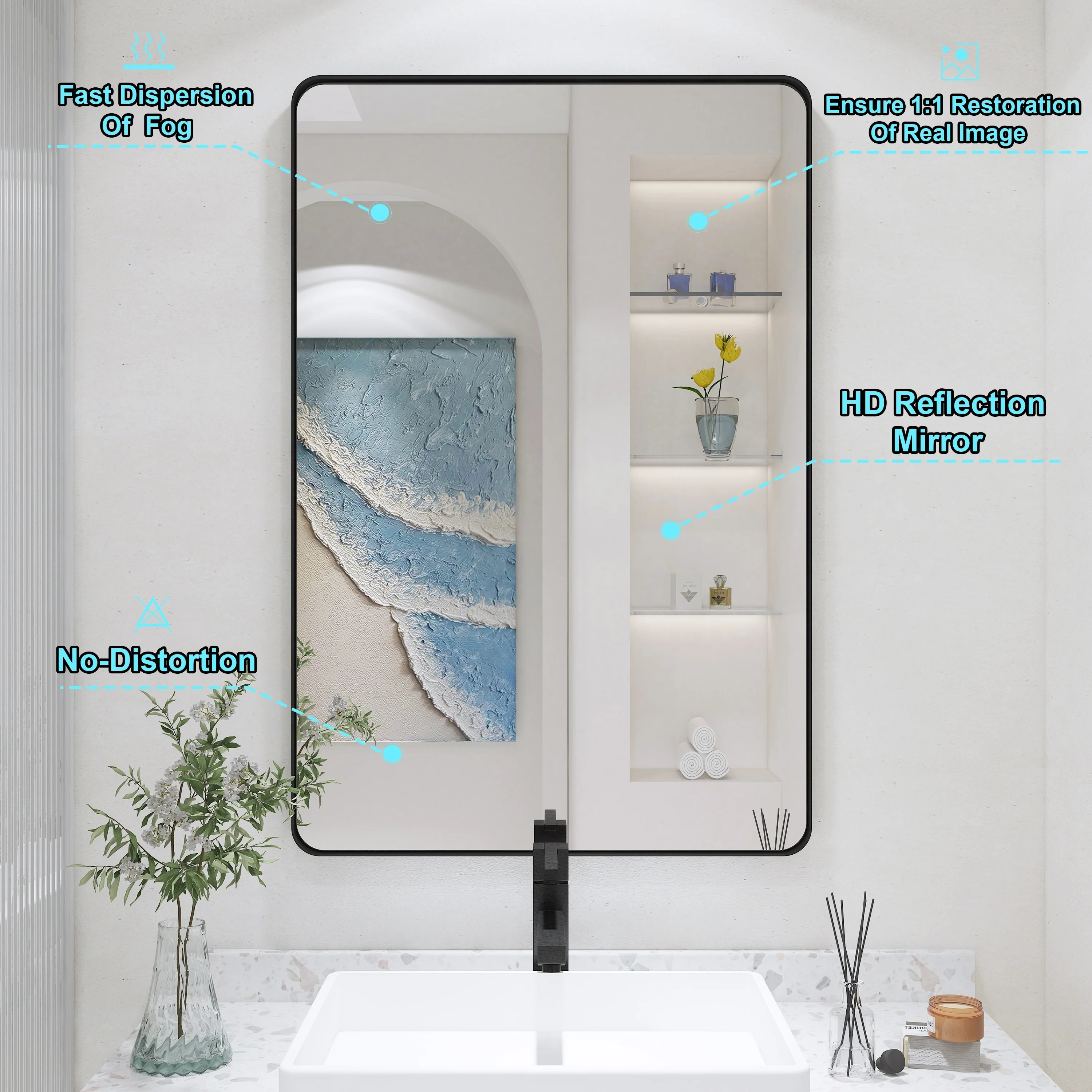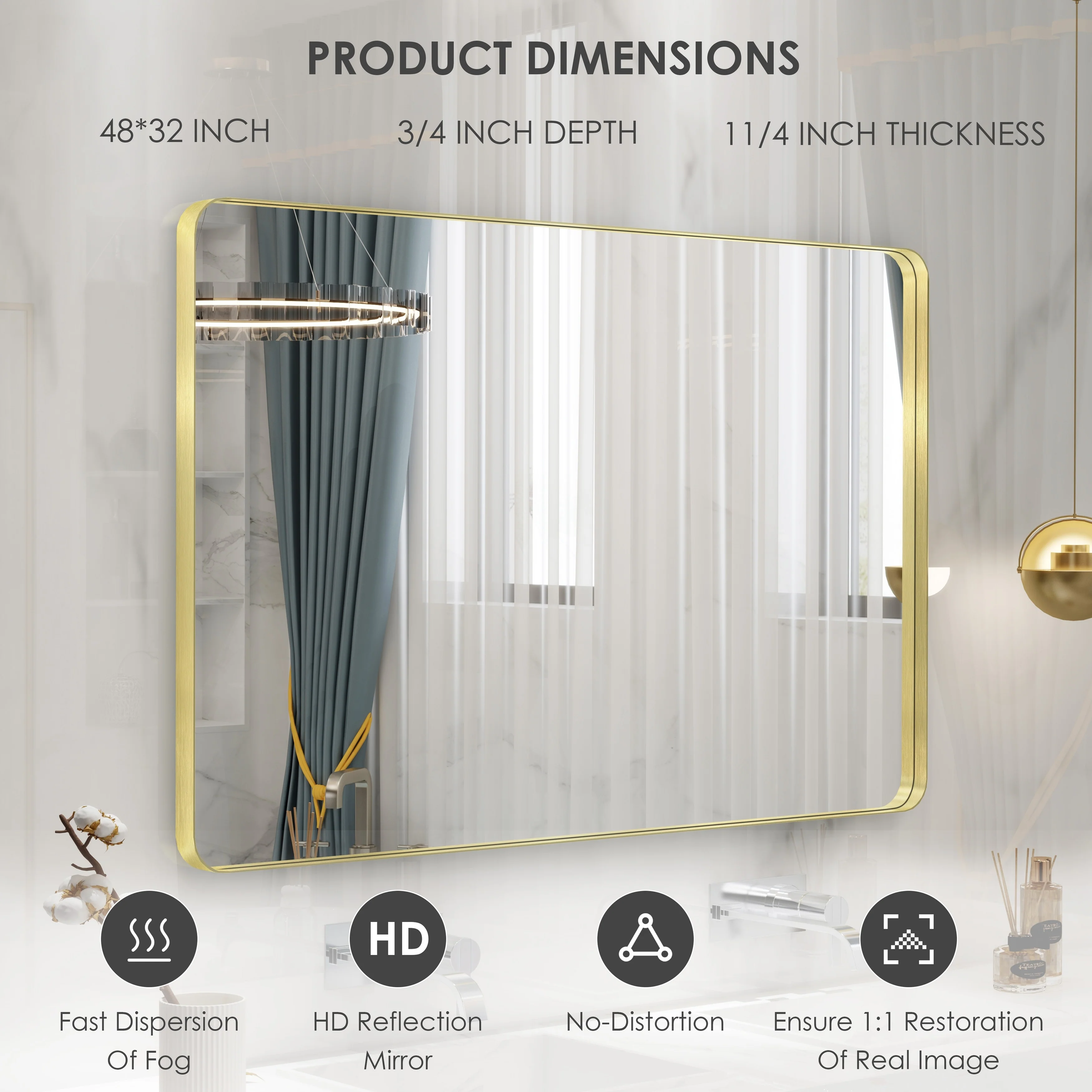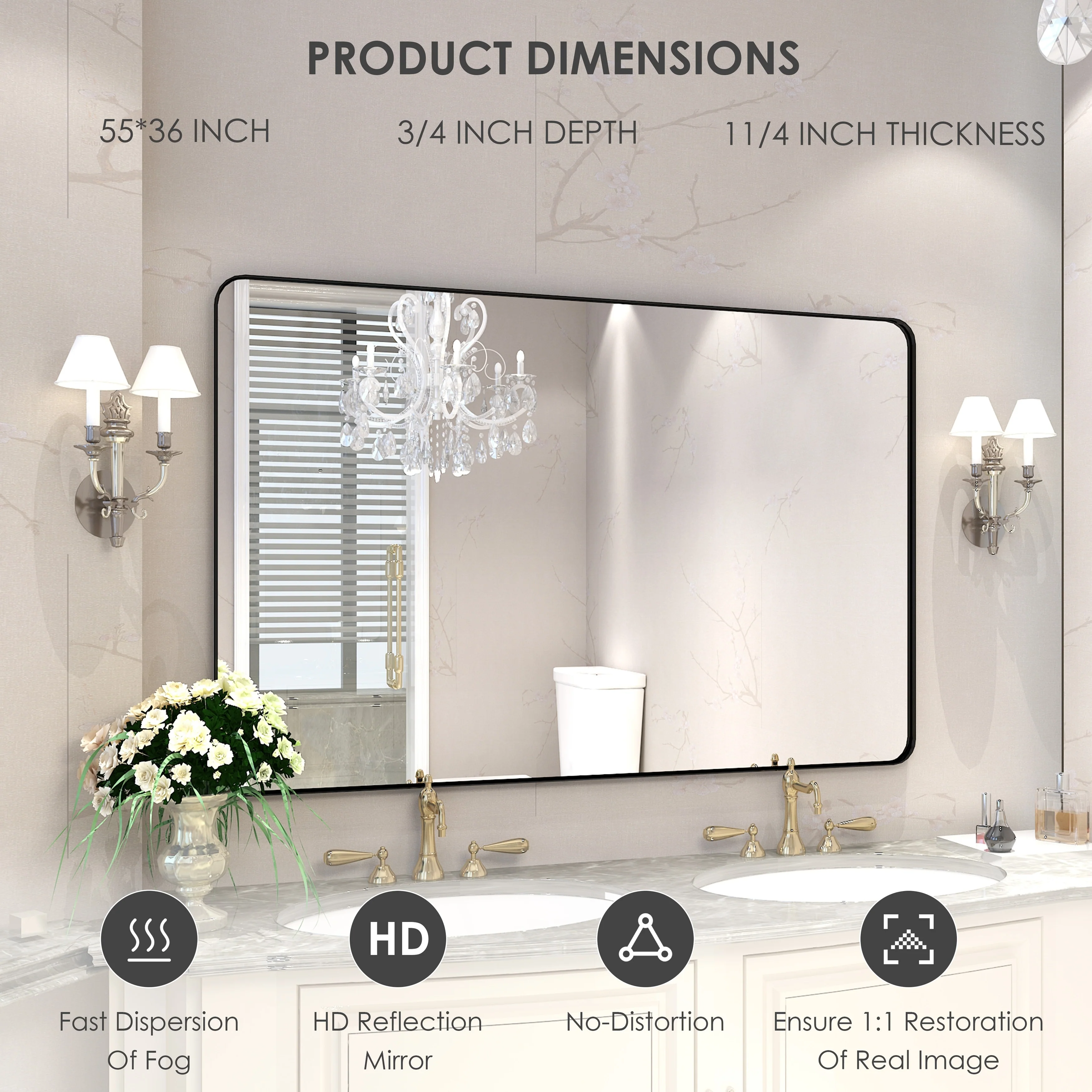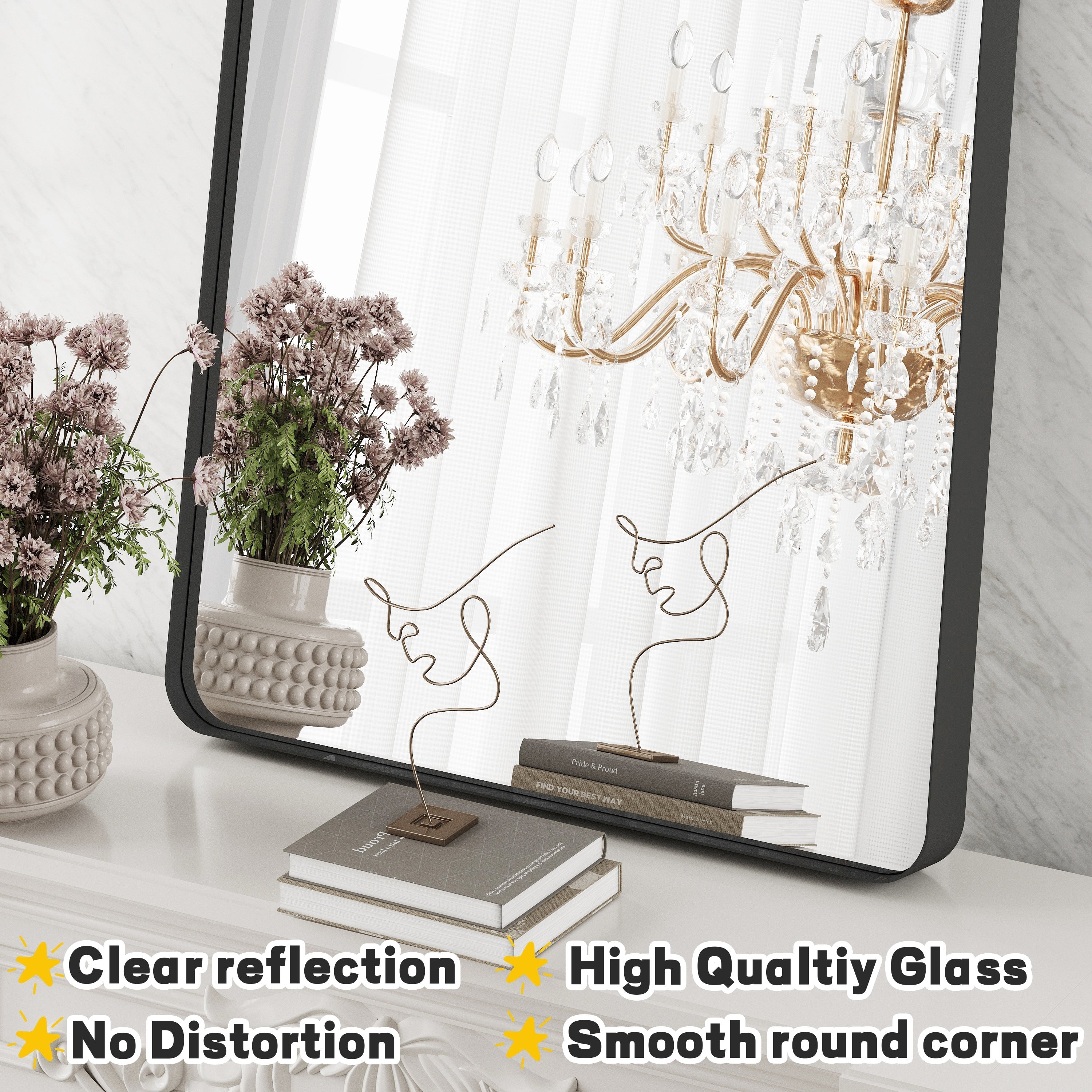 HD Reflection: This modern mirror features a clear and distortion-free reflection, HD reflection without distortion to ensure 1 : 1 image restoration.