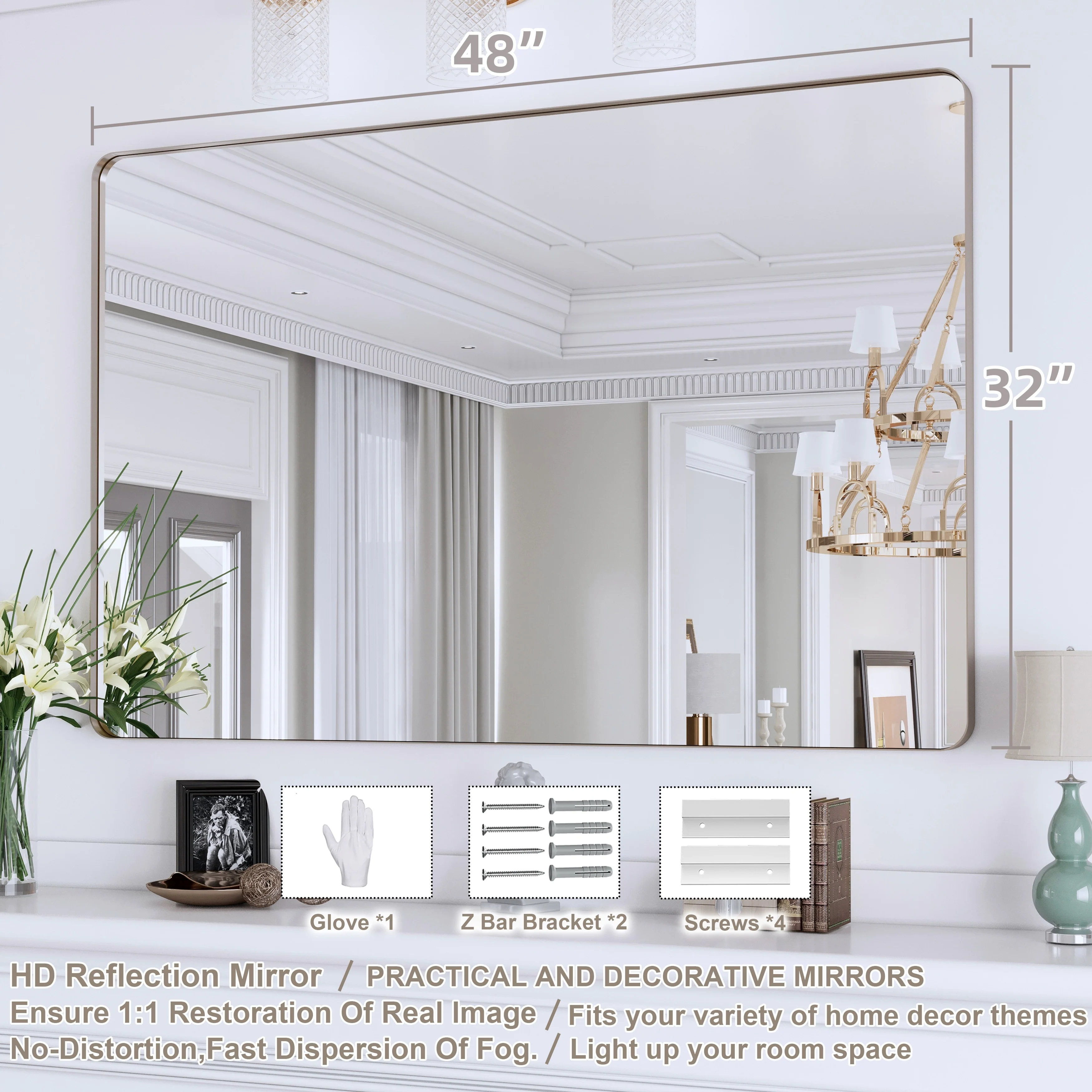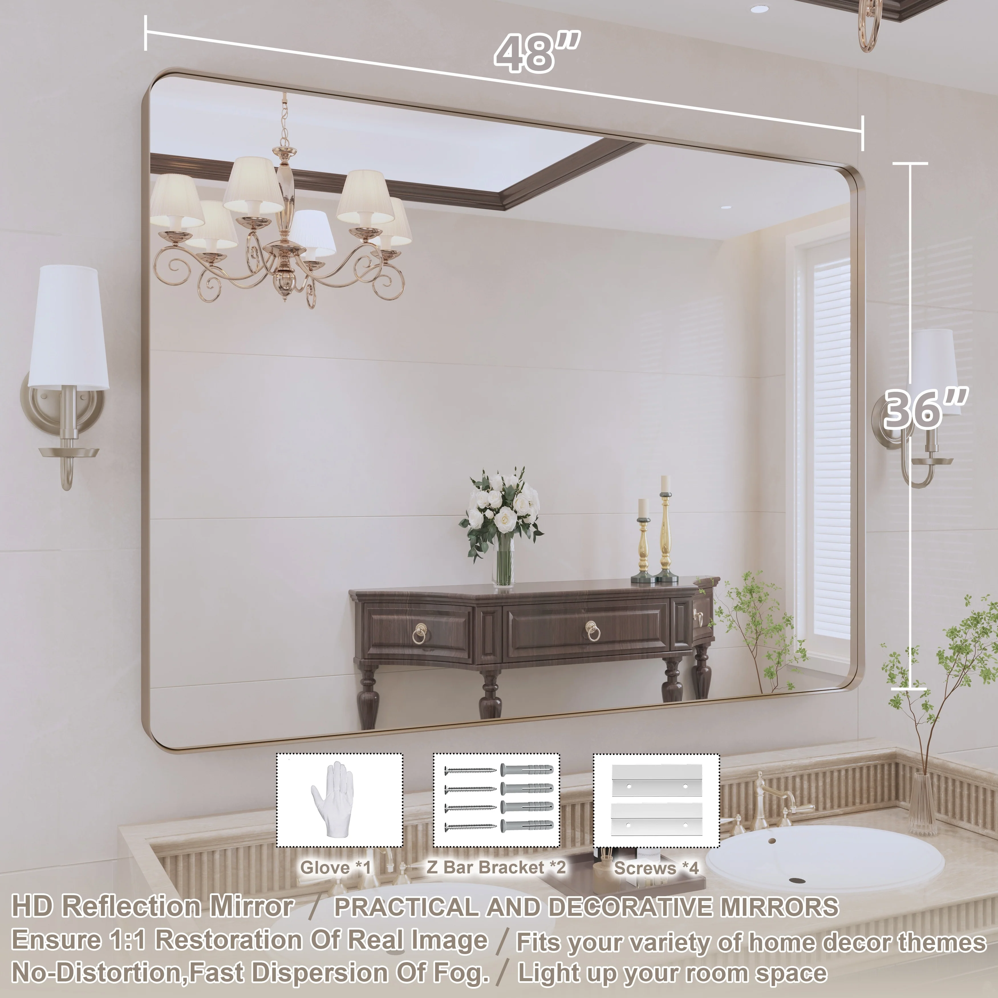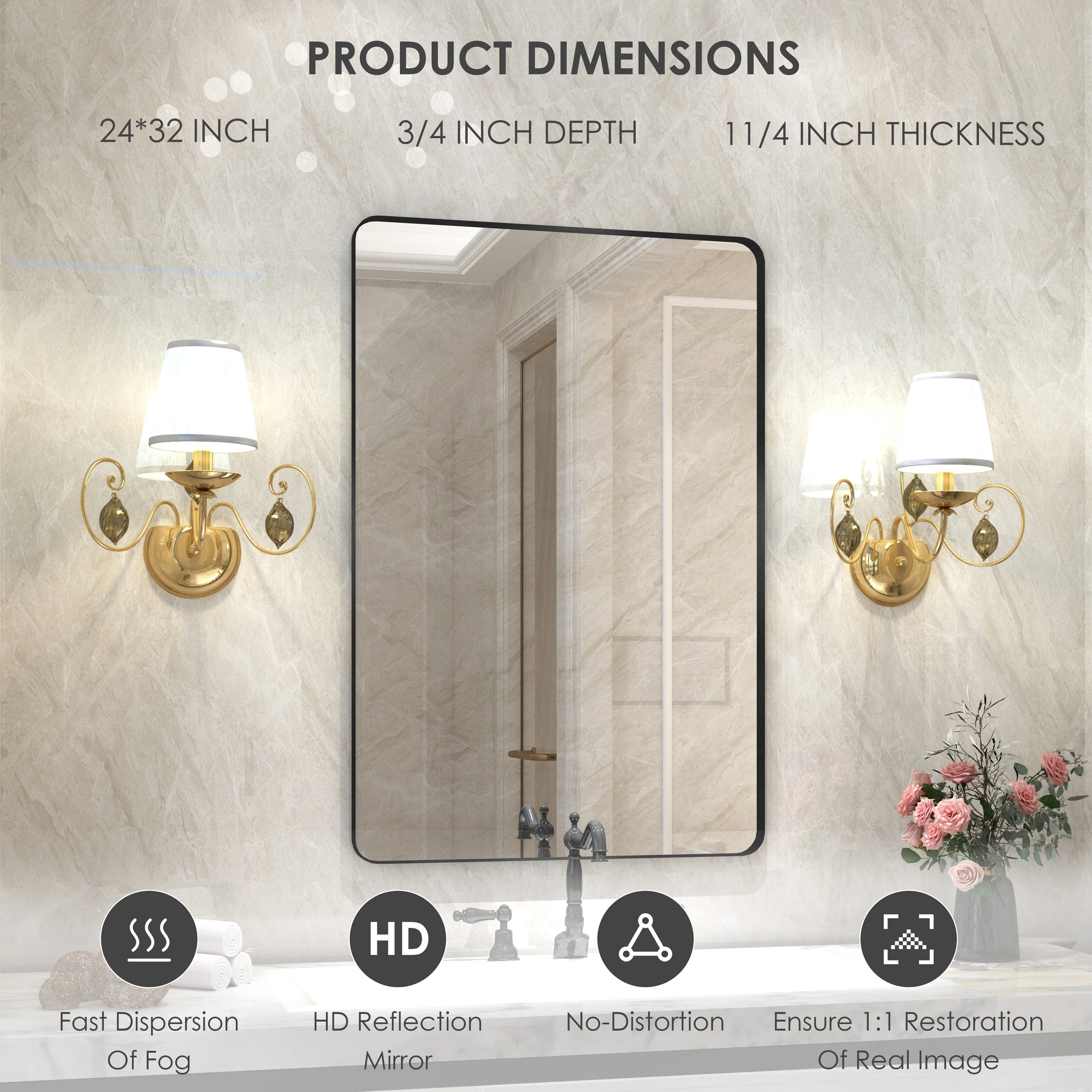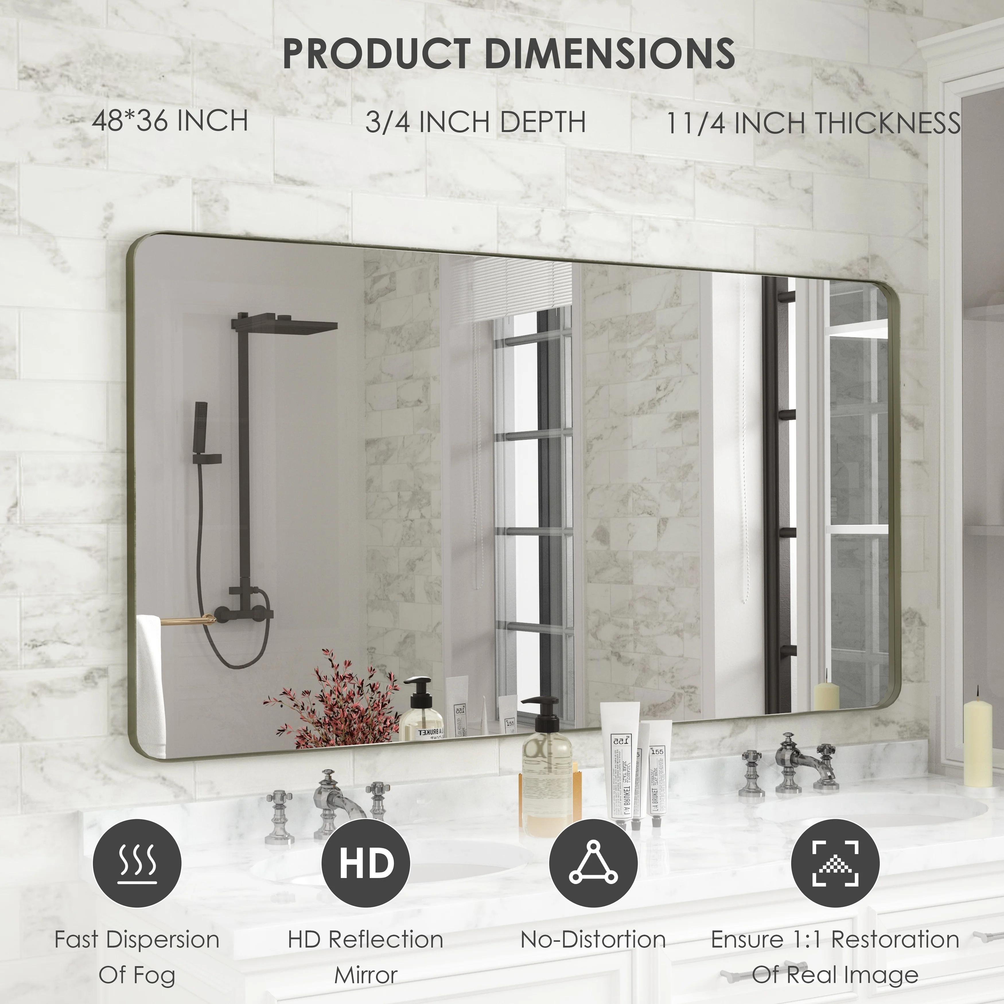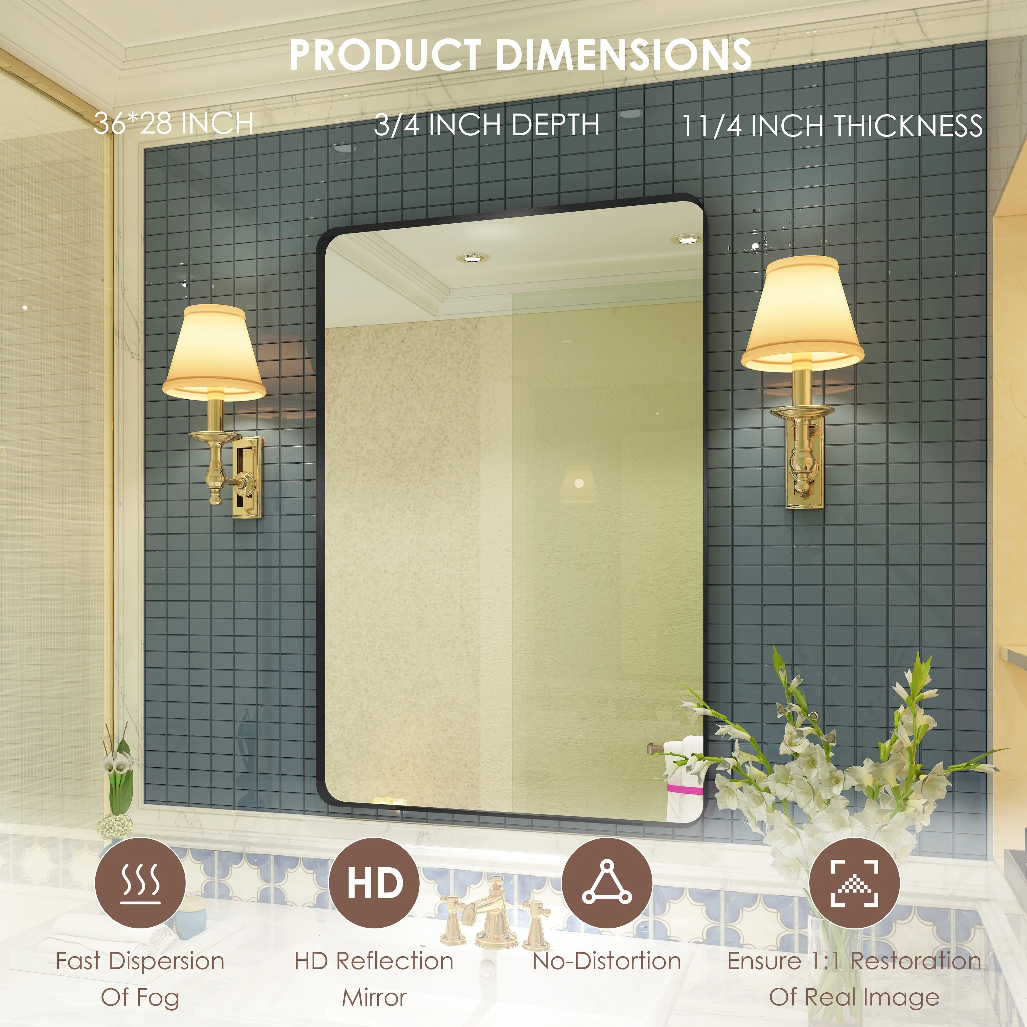 HD Reflection: This modern mirror features a clear and distortion-free reflection, HD reflection without distortion to ensure 1 : 1 image restoration.