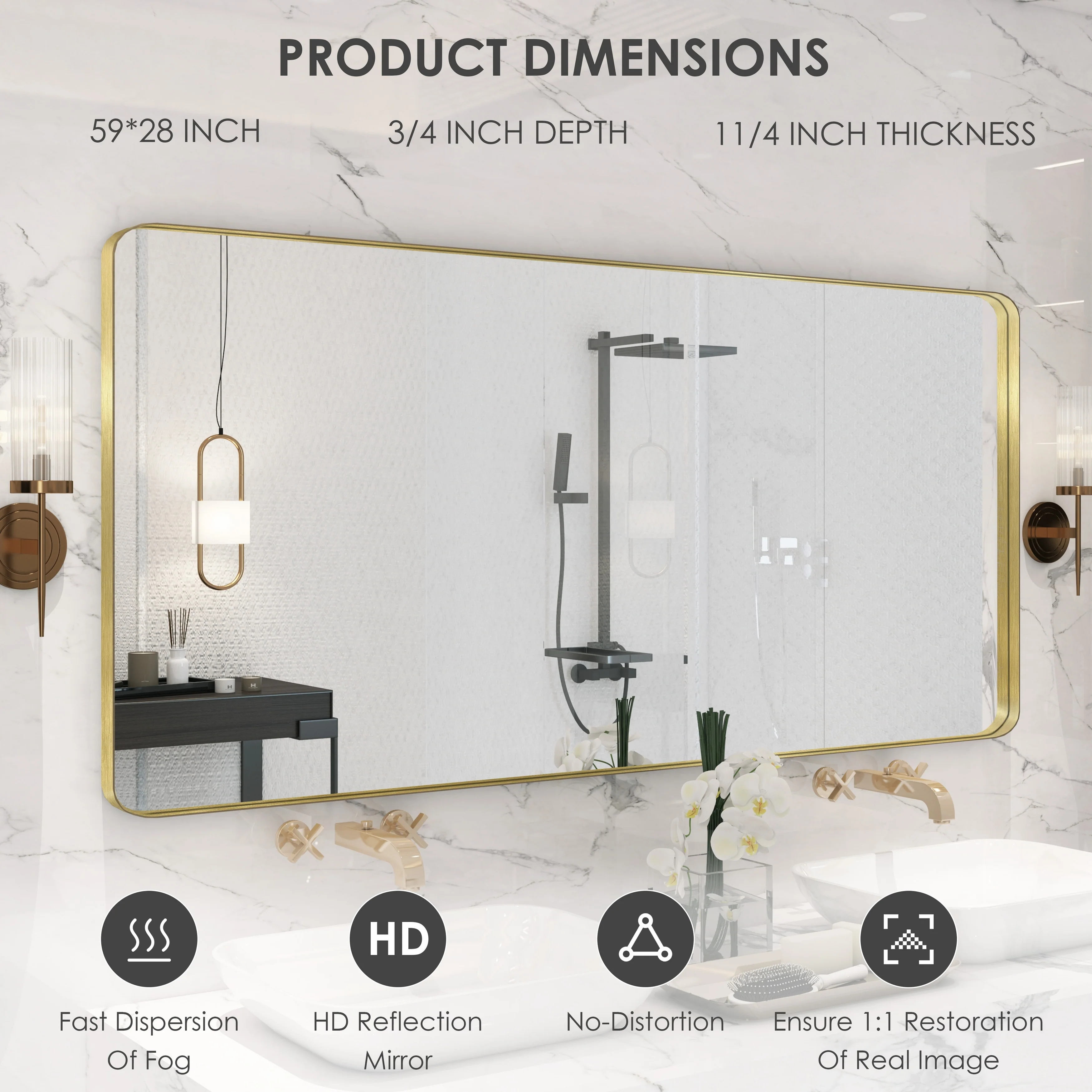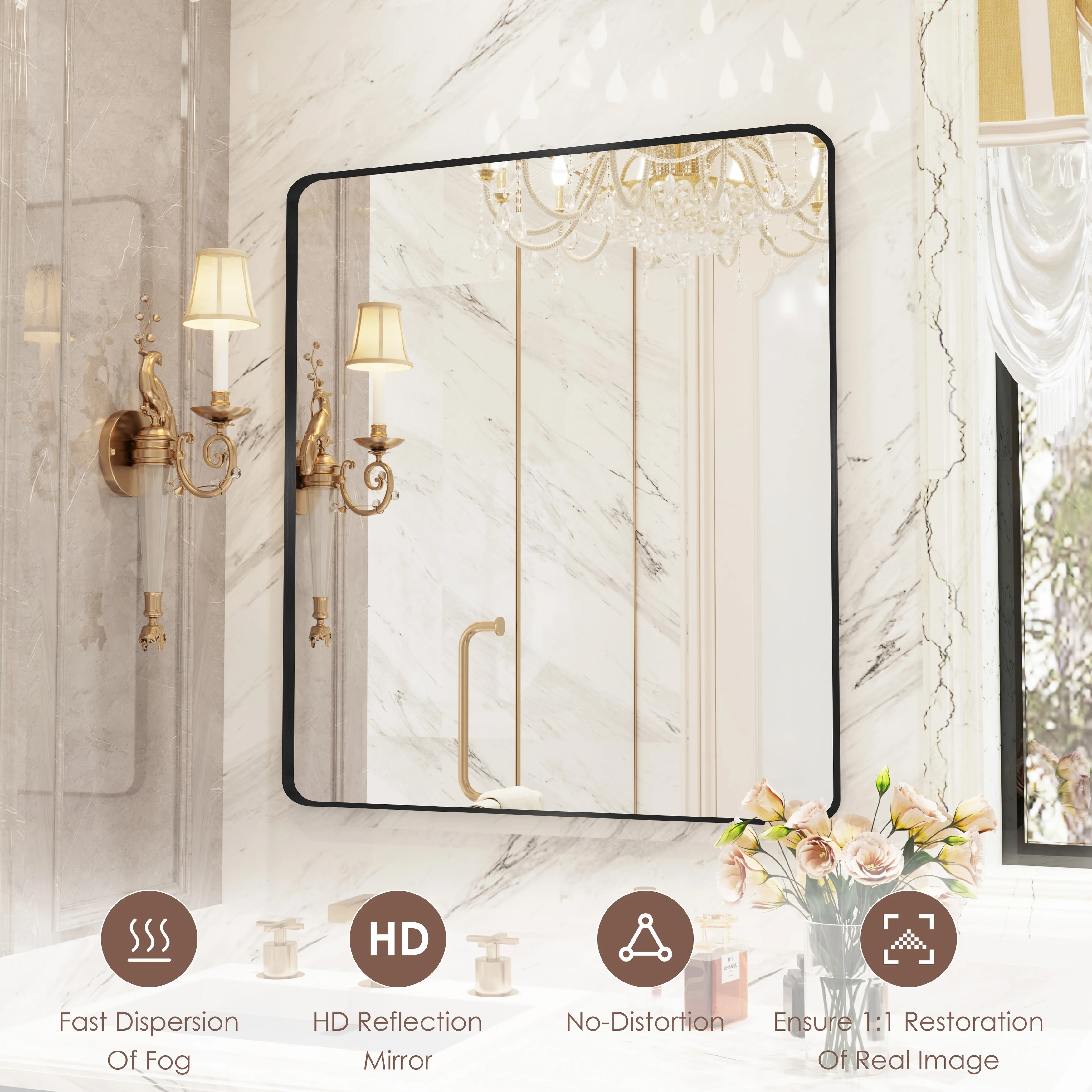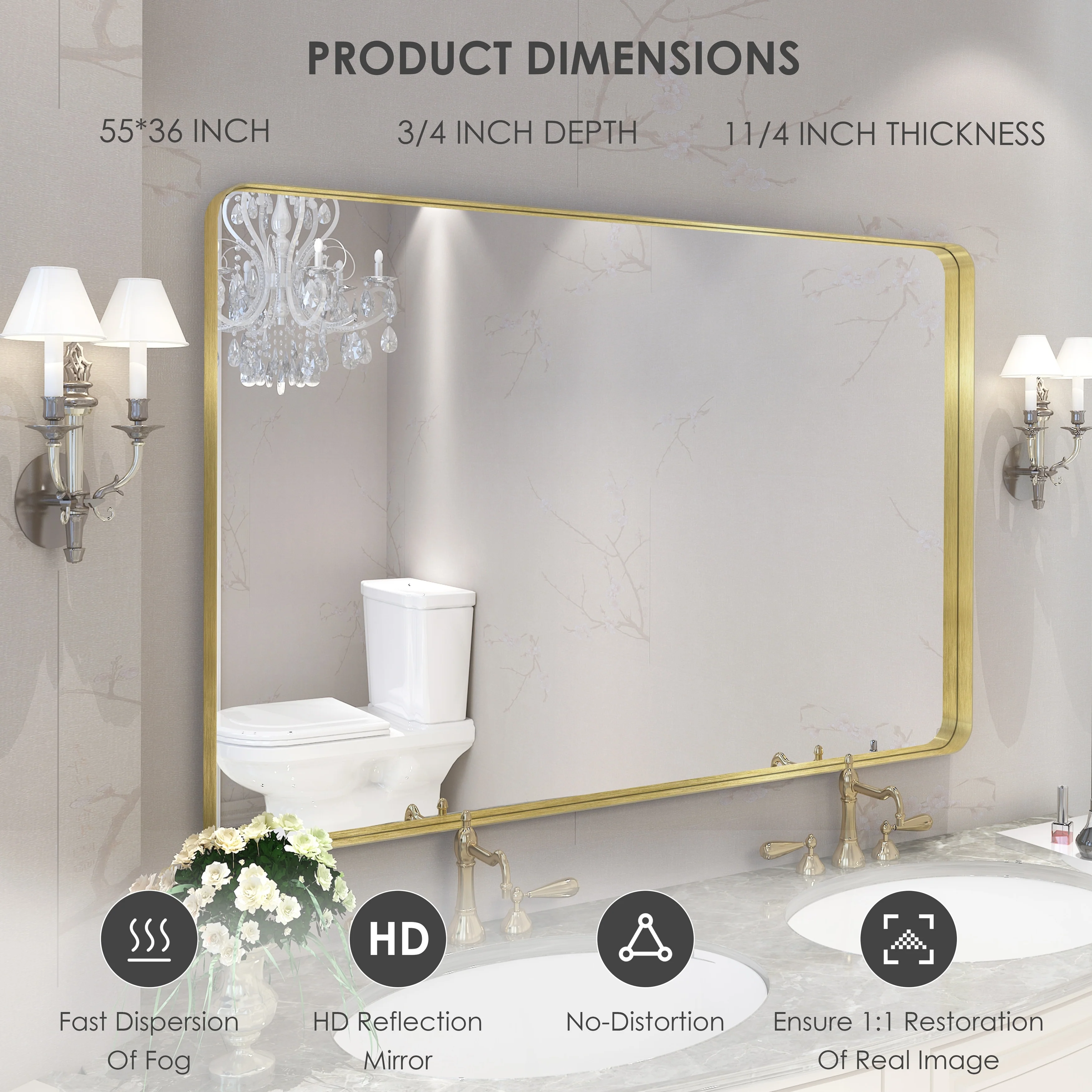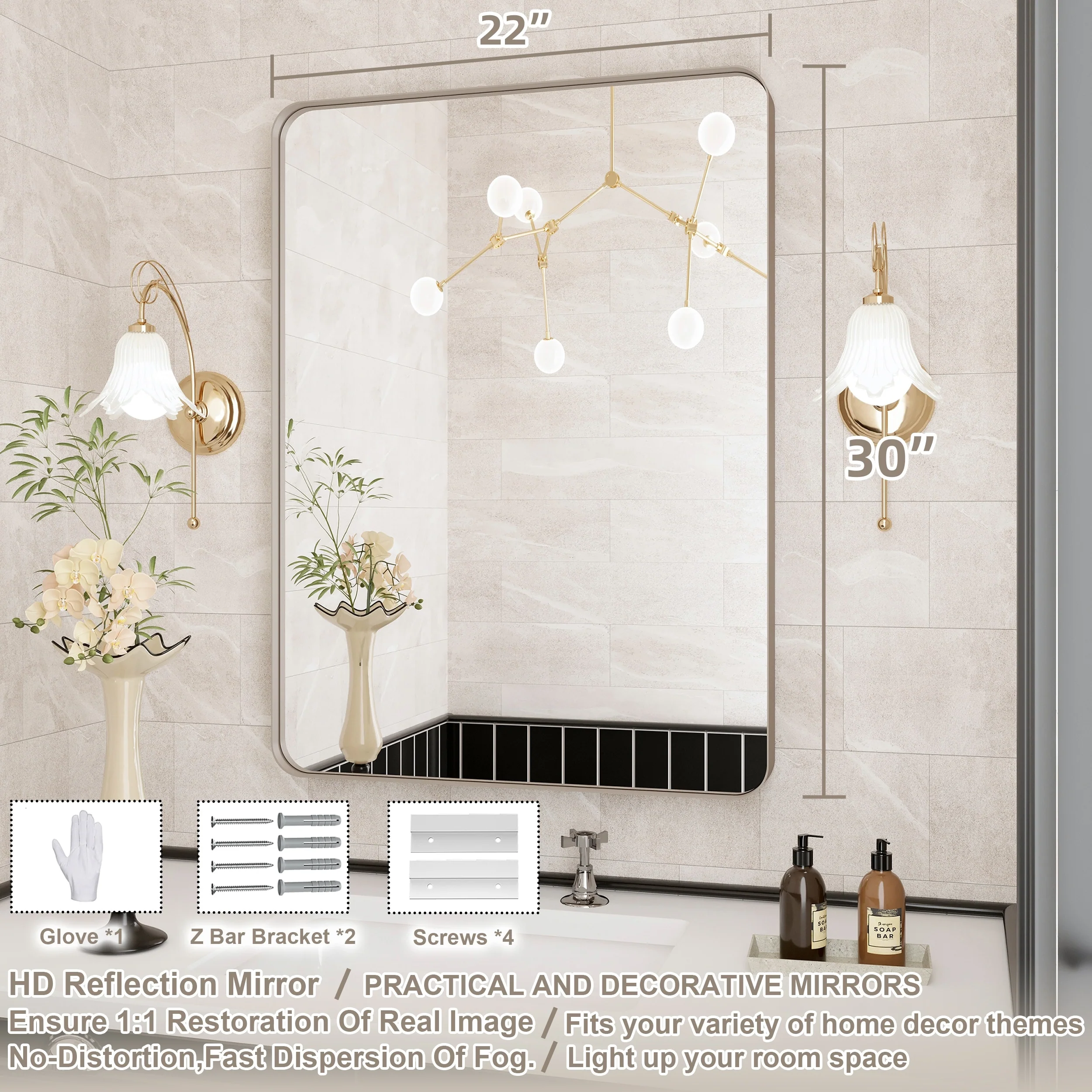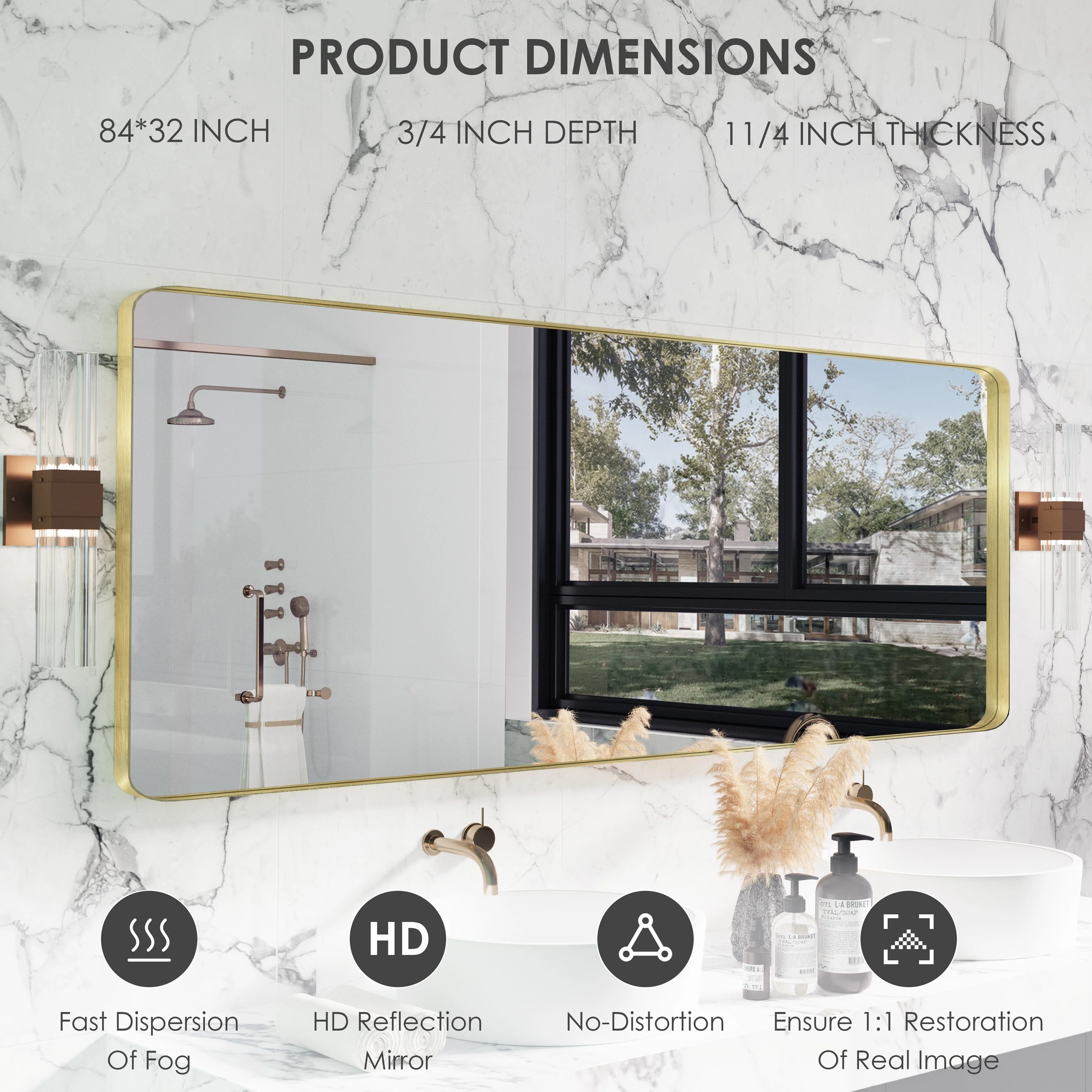 HD Reflection: This modern mirror features a clear and distortion-free reflection, HD reflection without distortion to ensure 1 : 1 image restoration.