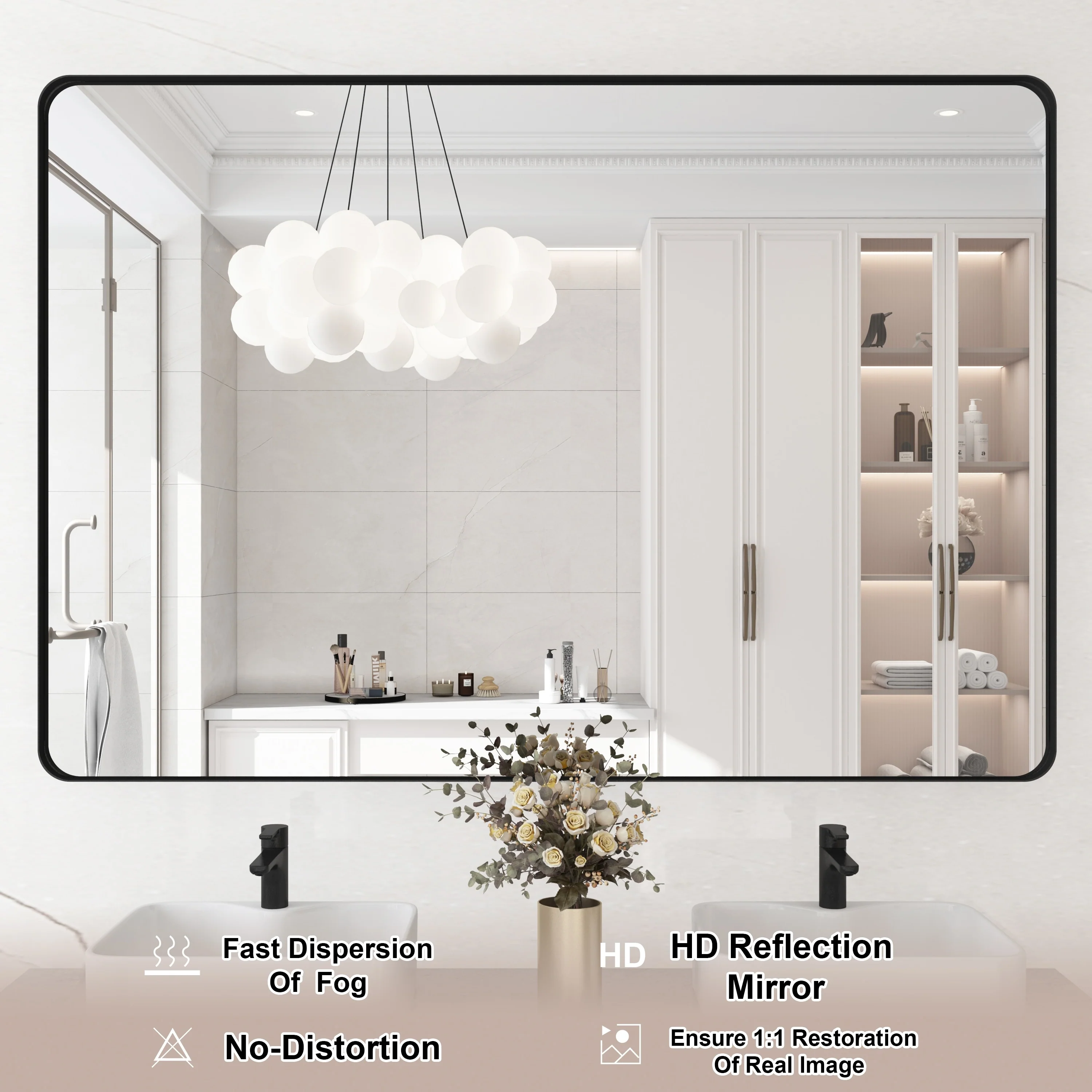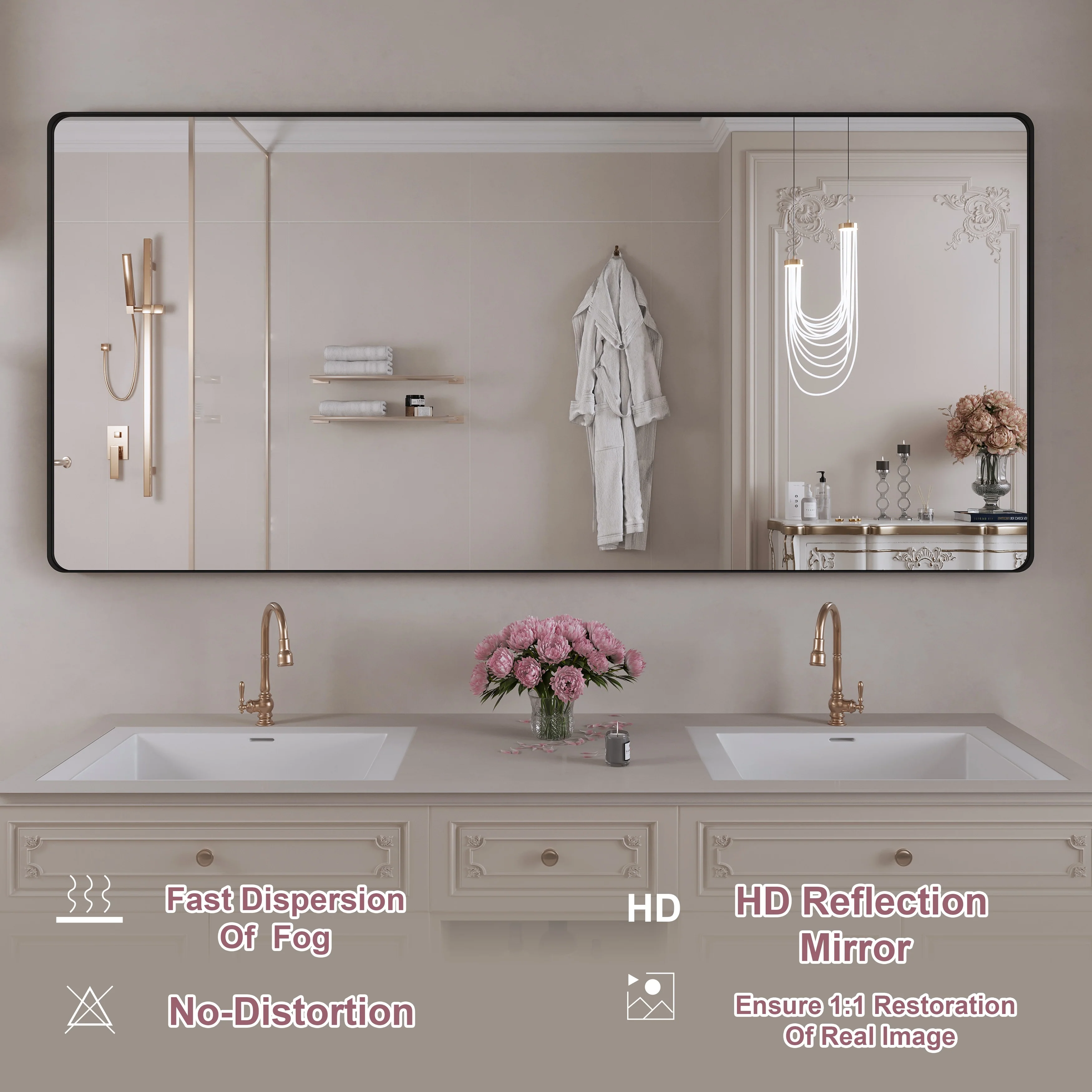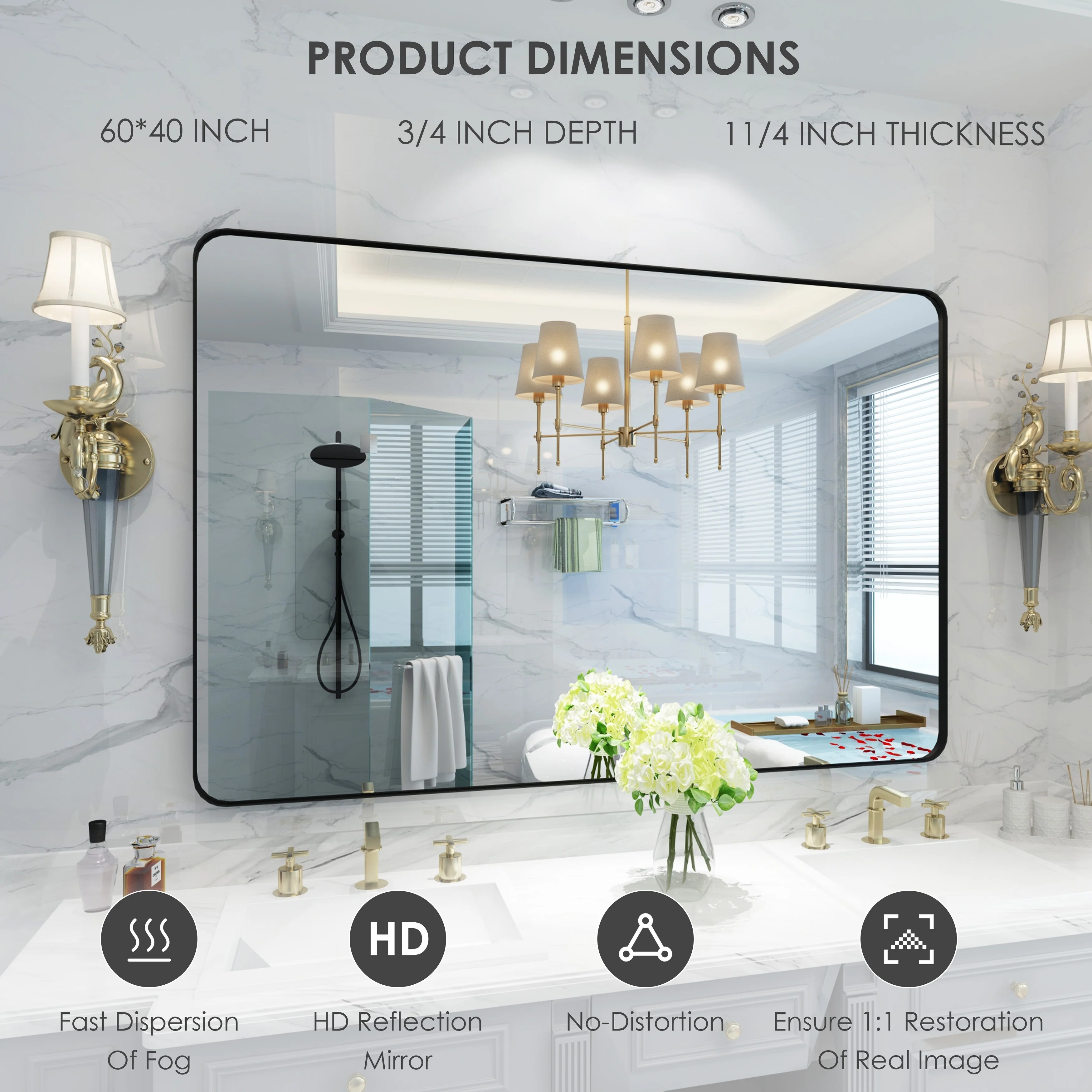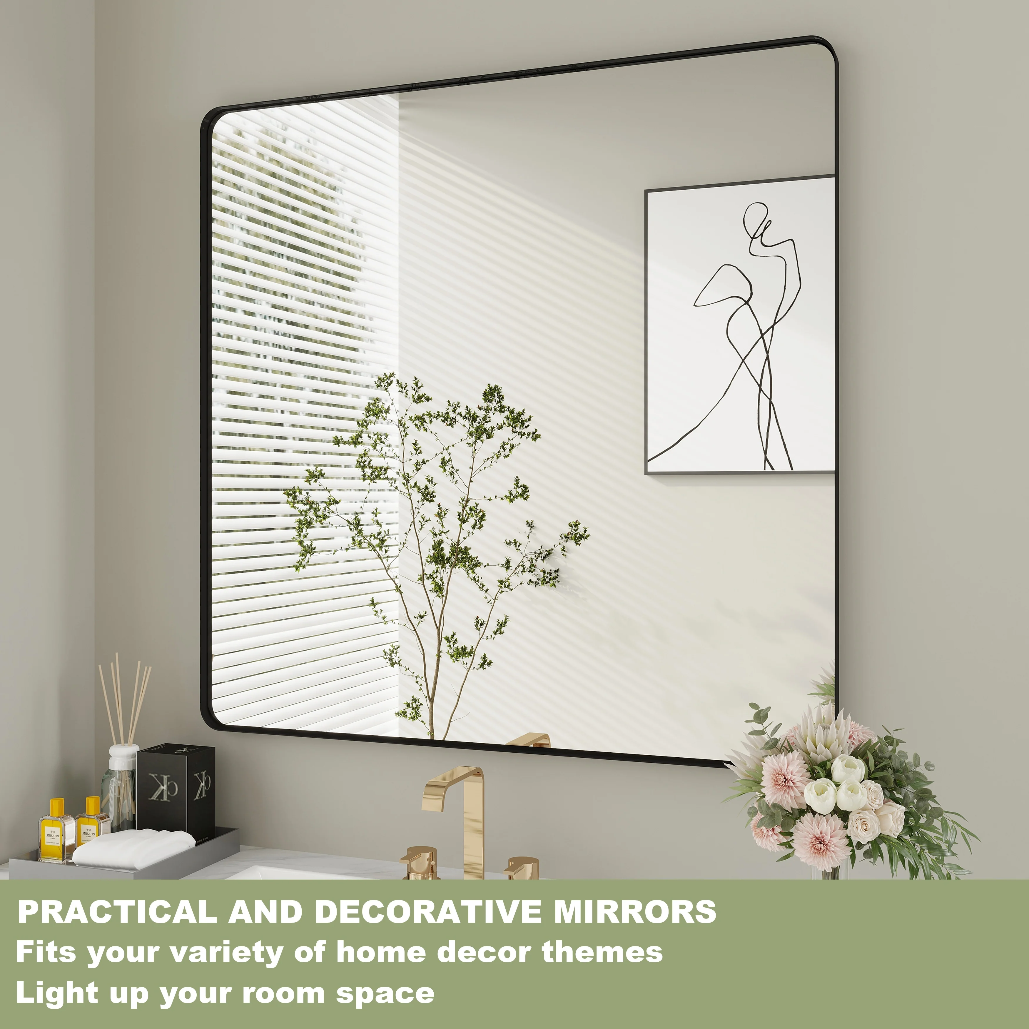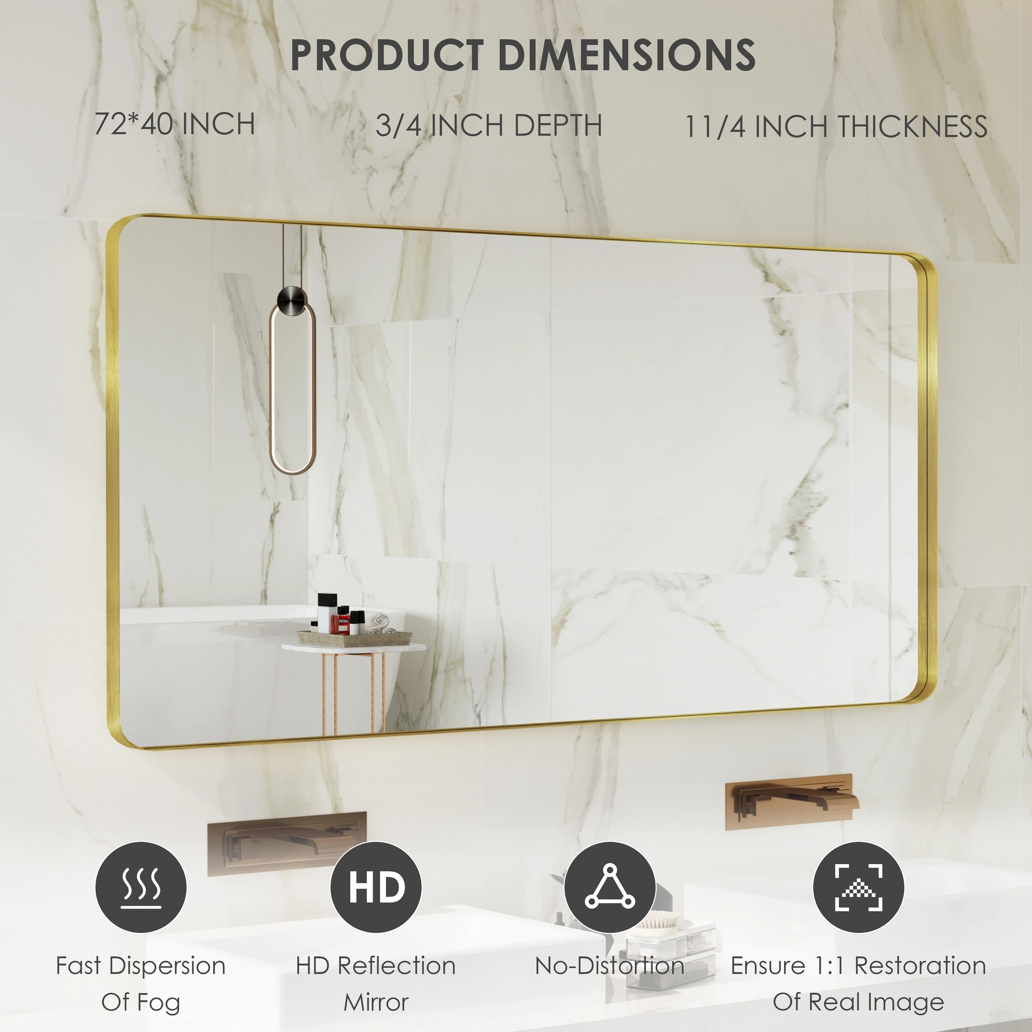 HD Reflection: This modern mirror features a clear and distortion-free reflection, HD reflection without distortion to ensure 1 : 1 image restoration.