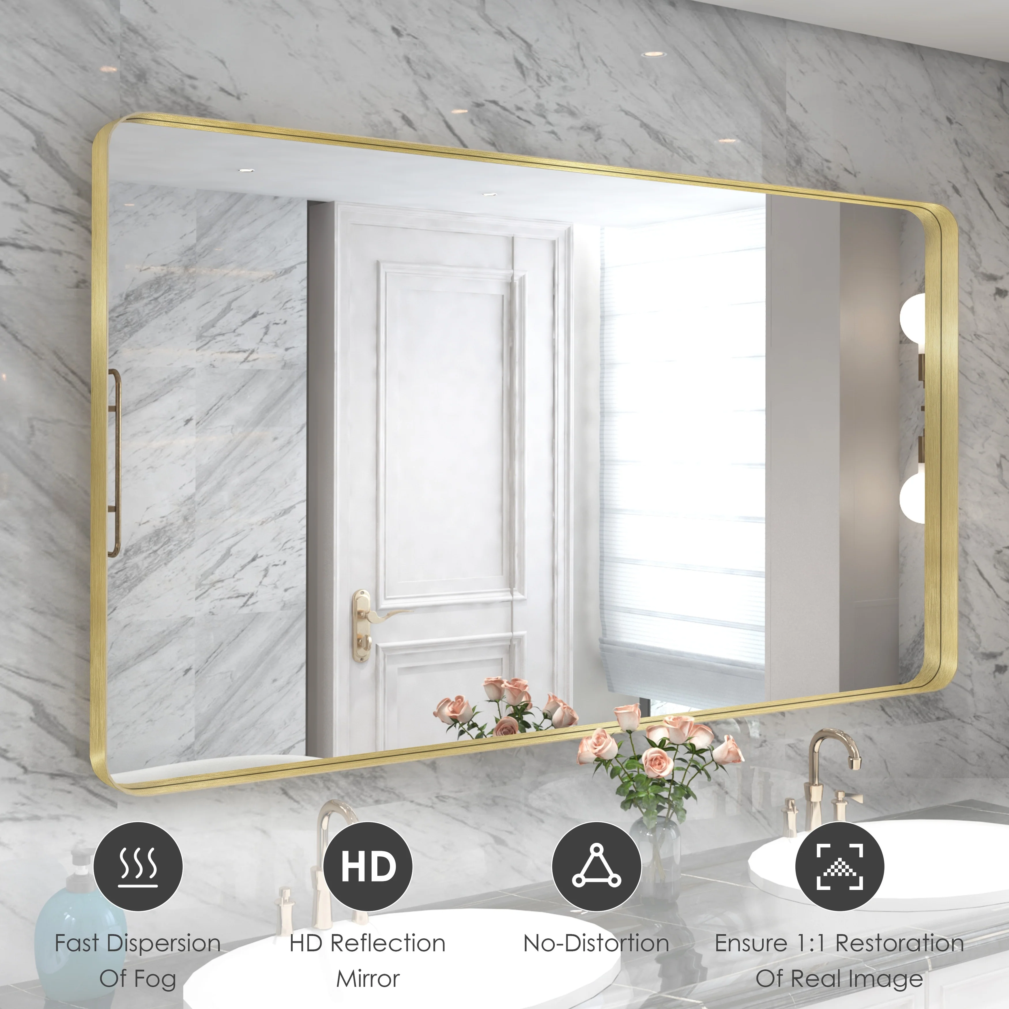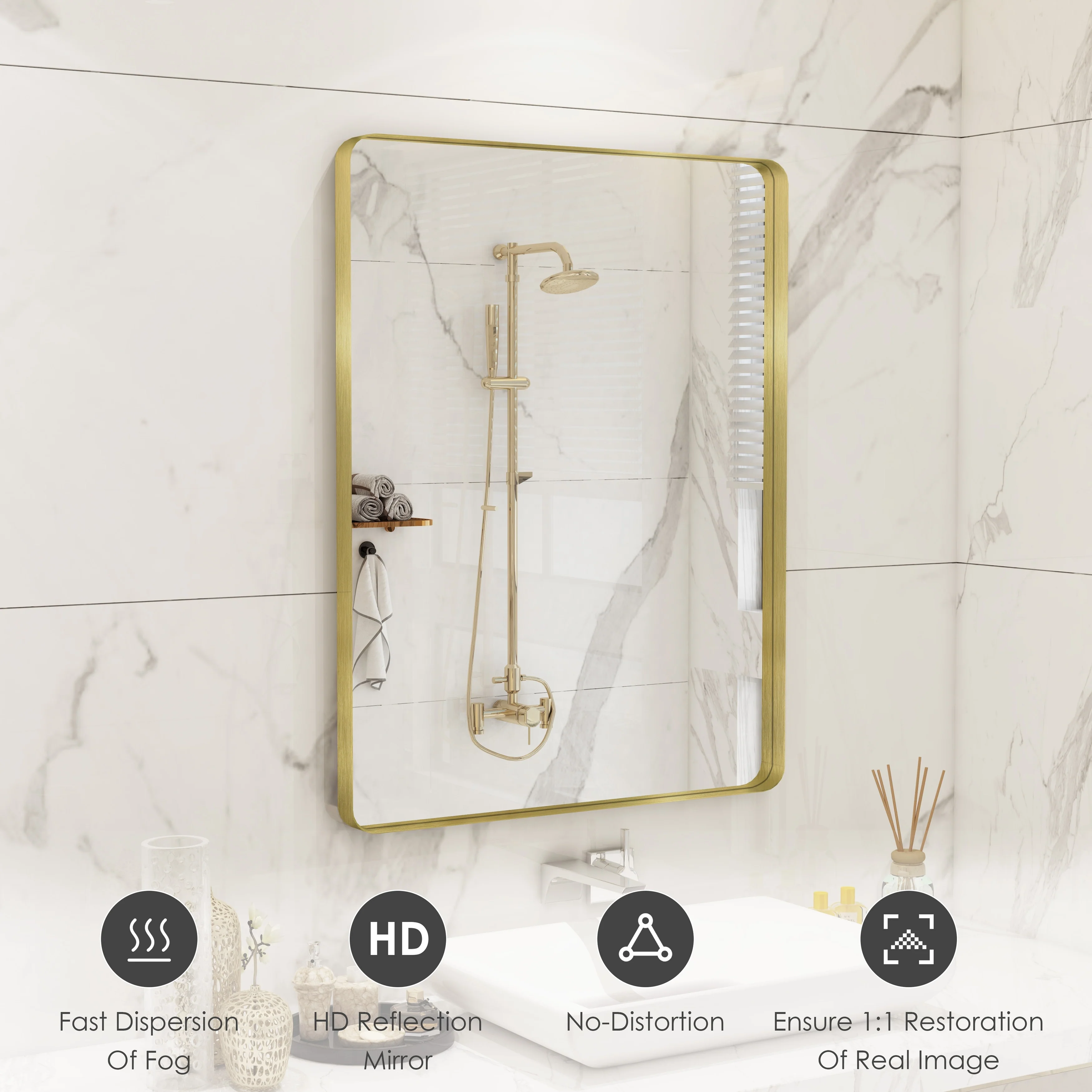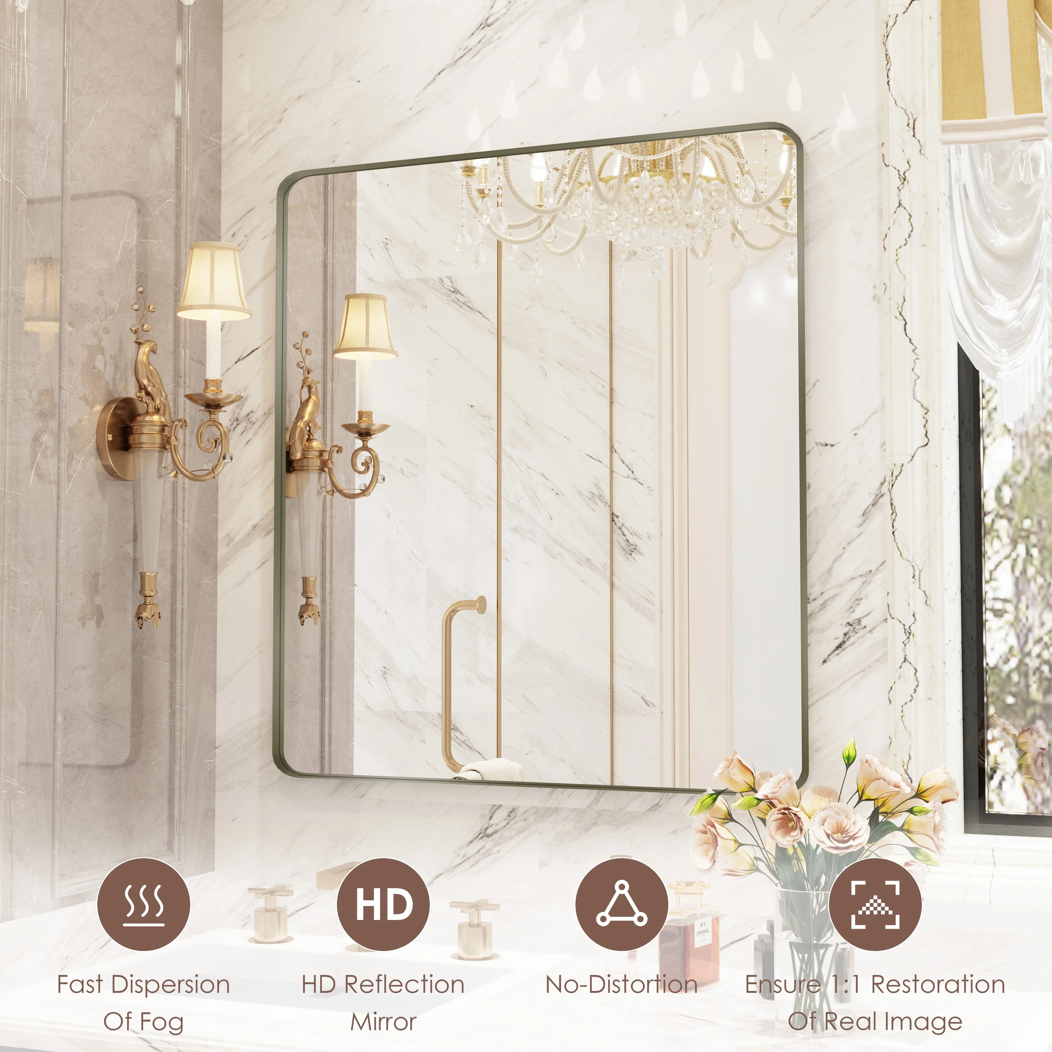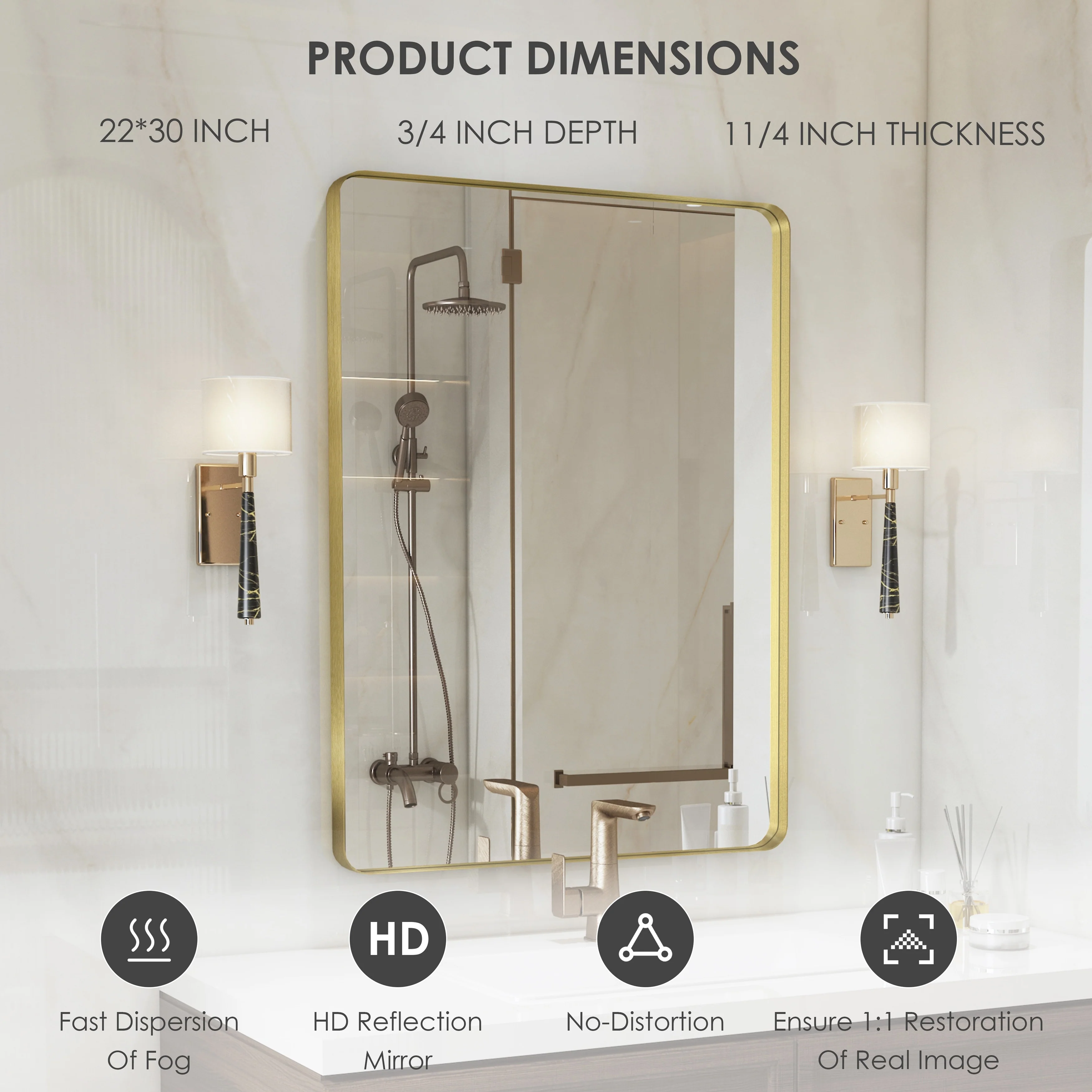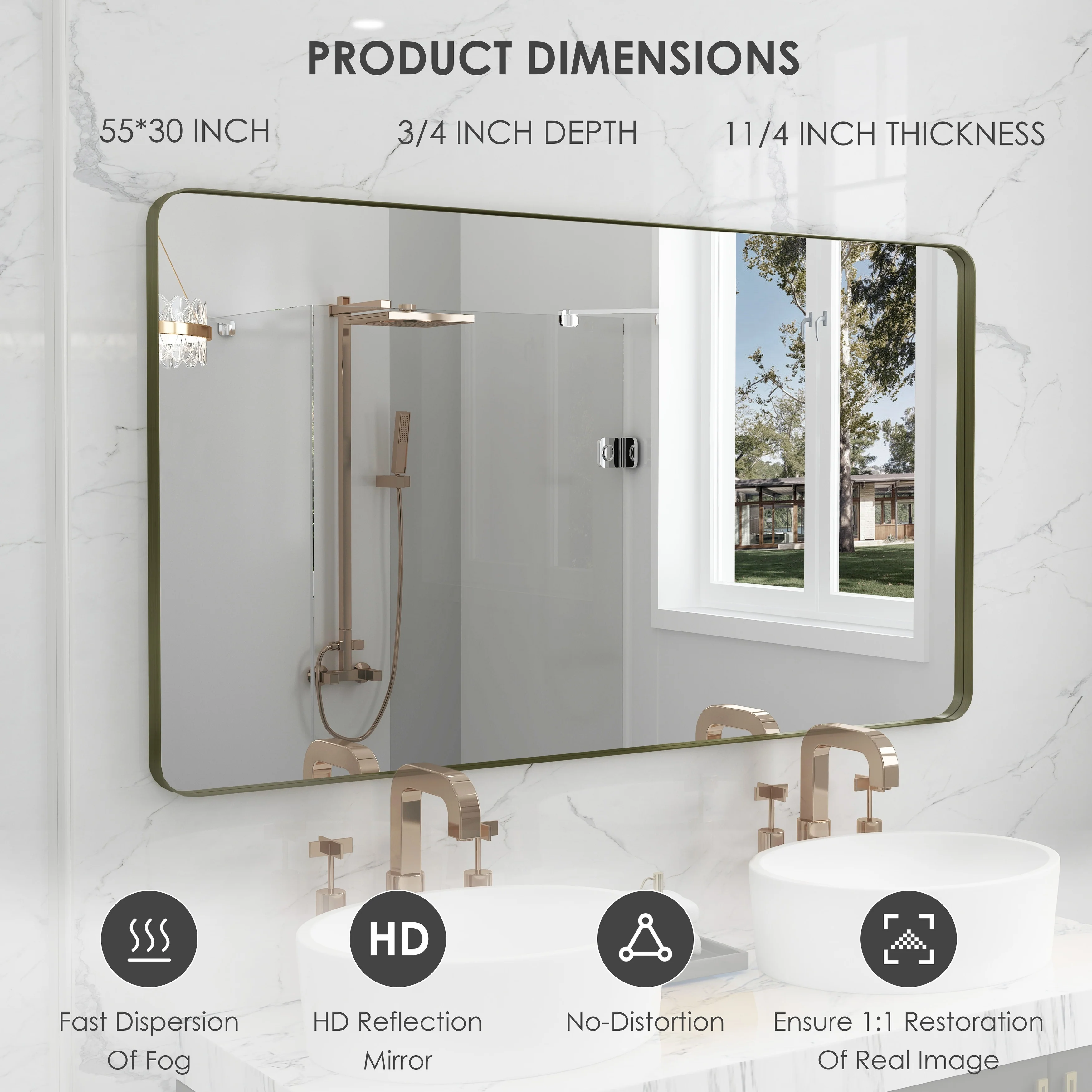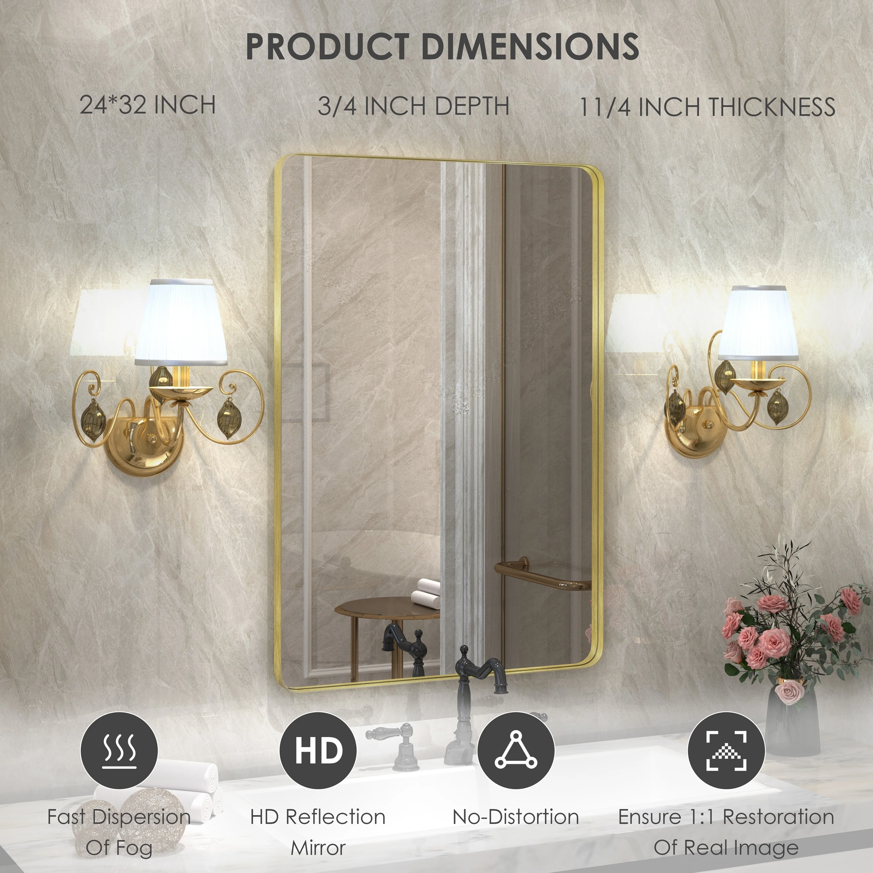 HD Reflection: This modern mirror features a clear and distortion-free reflection, HD reflection without distortion to ensure 1 : 1 image restoration.