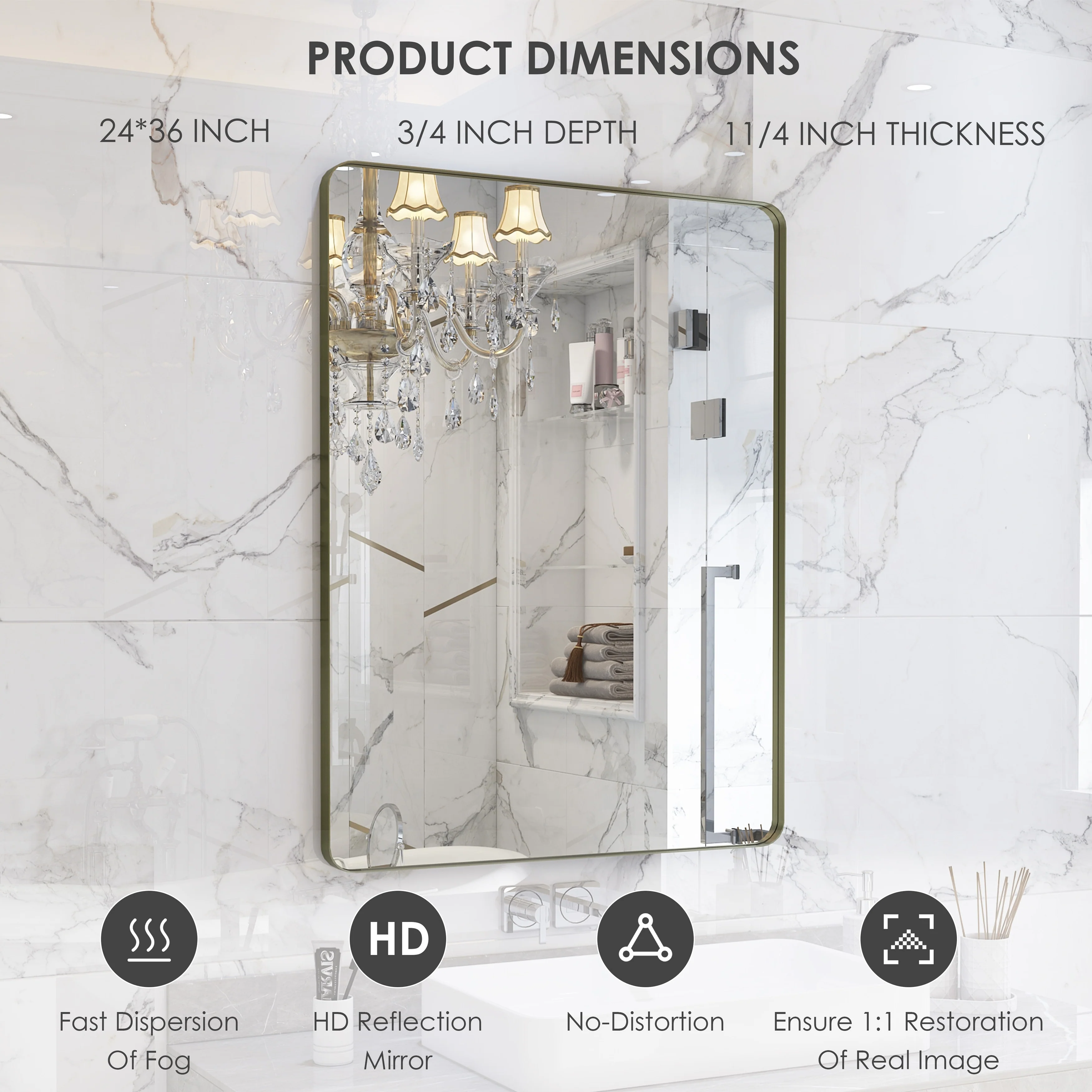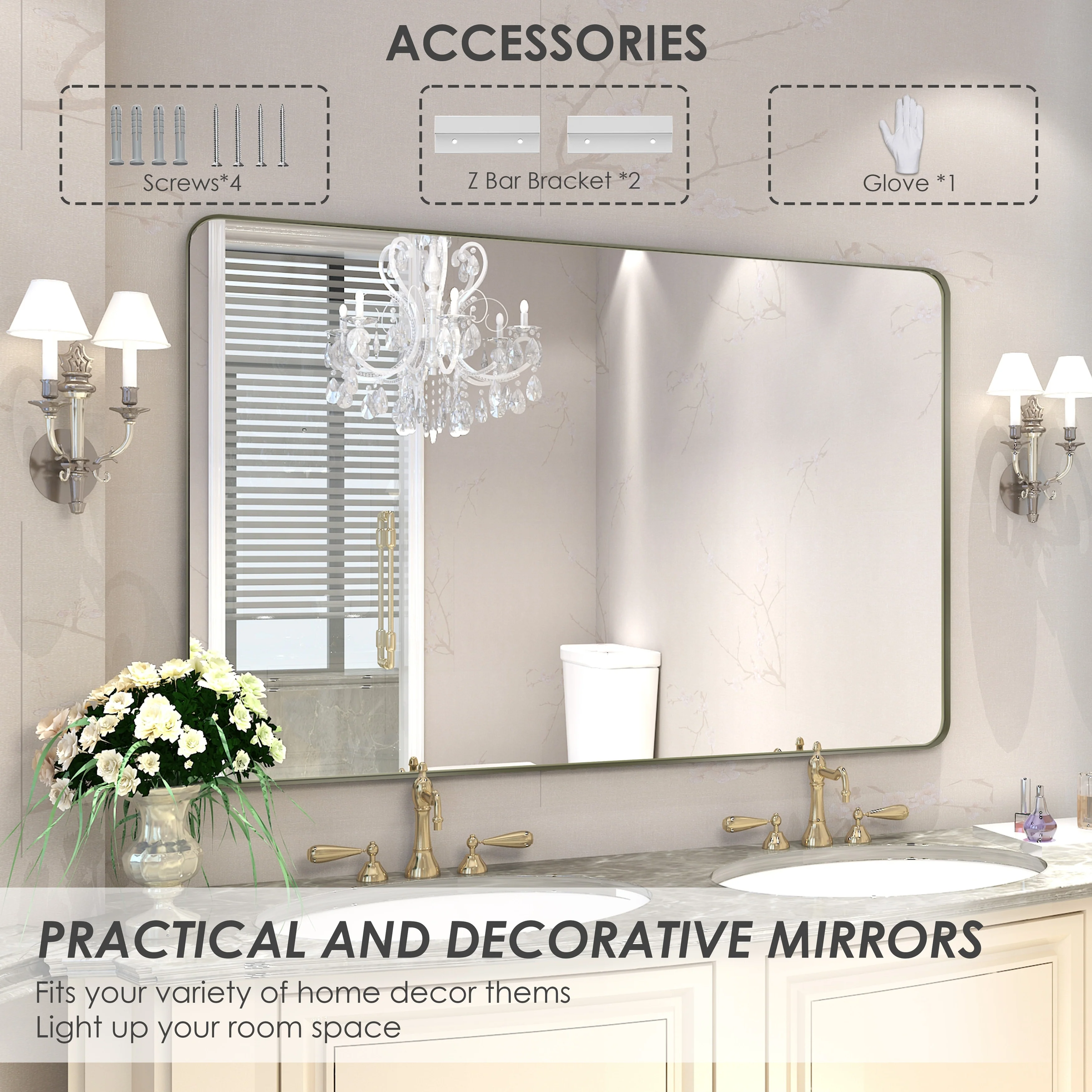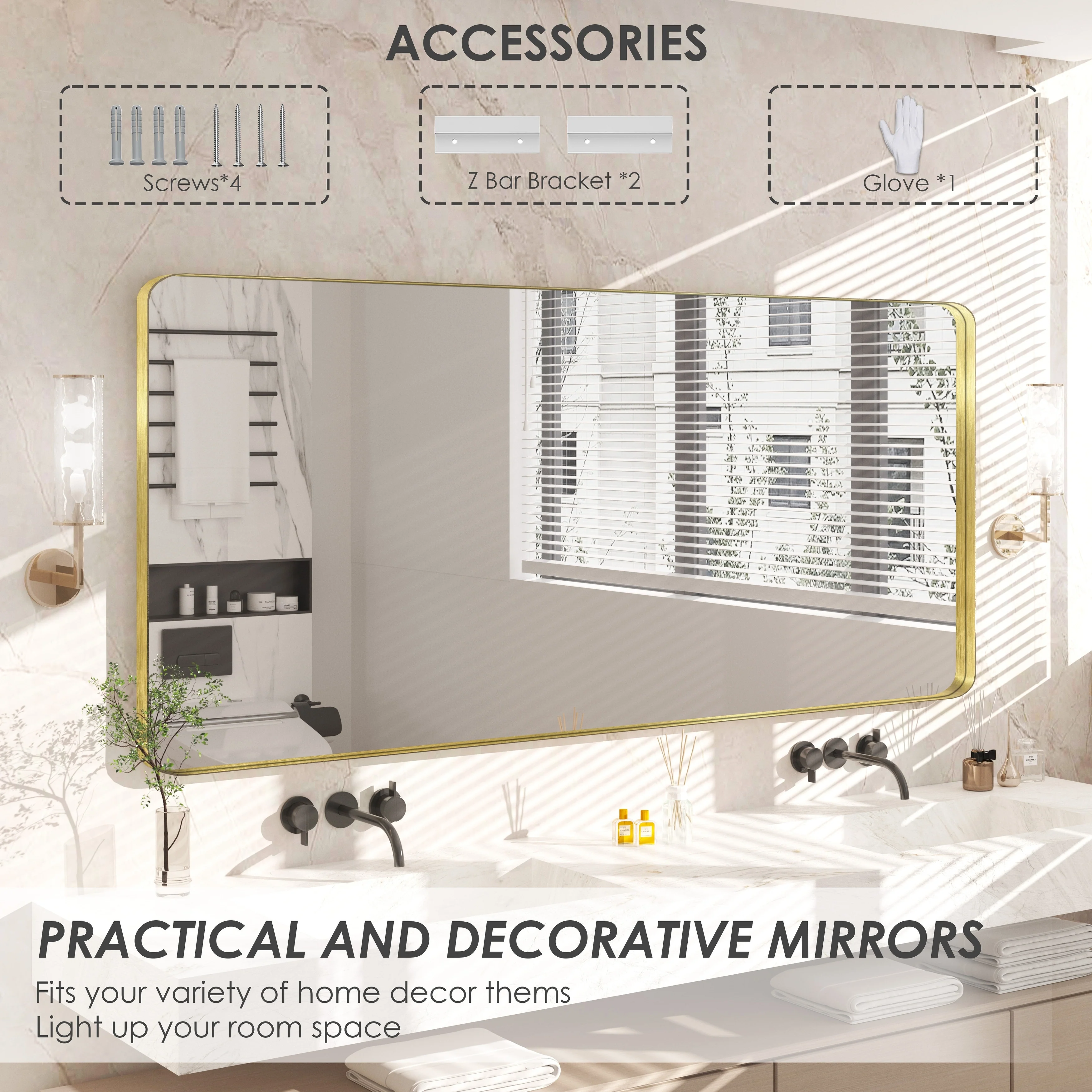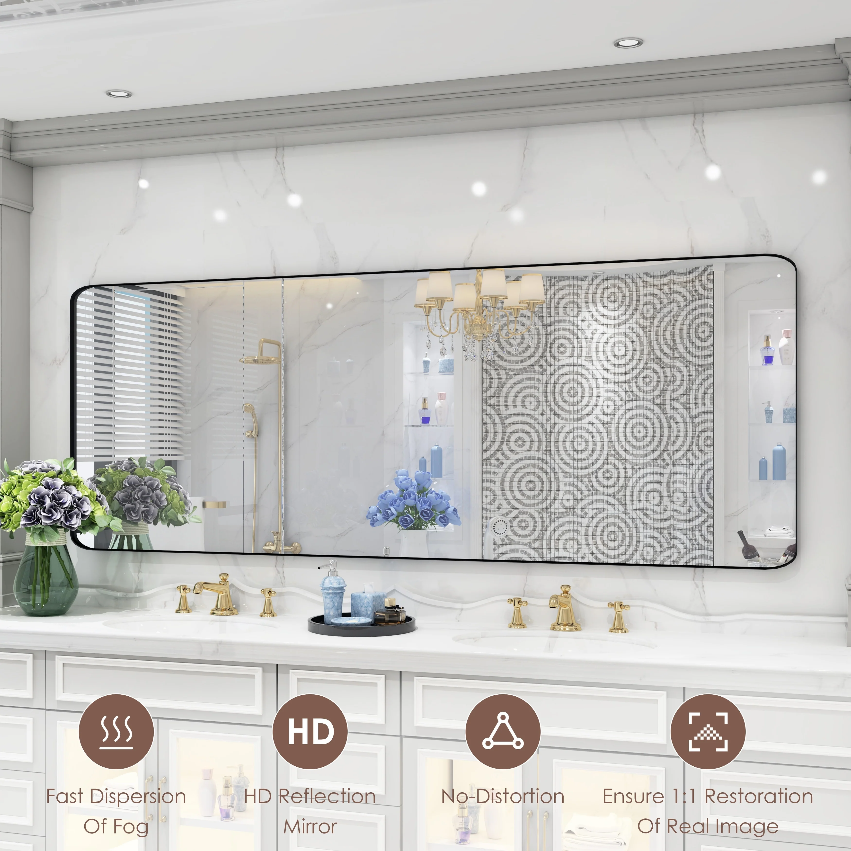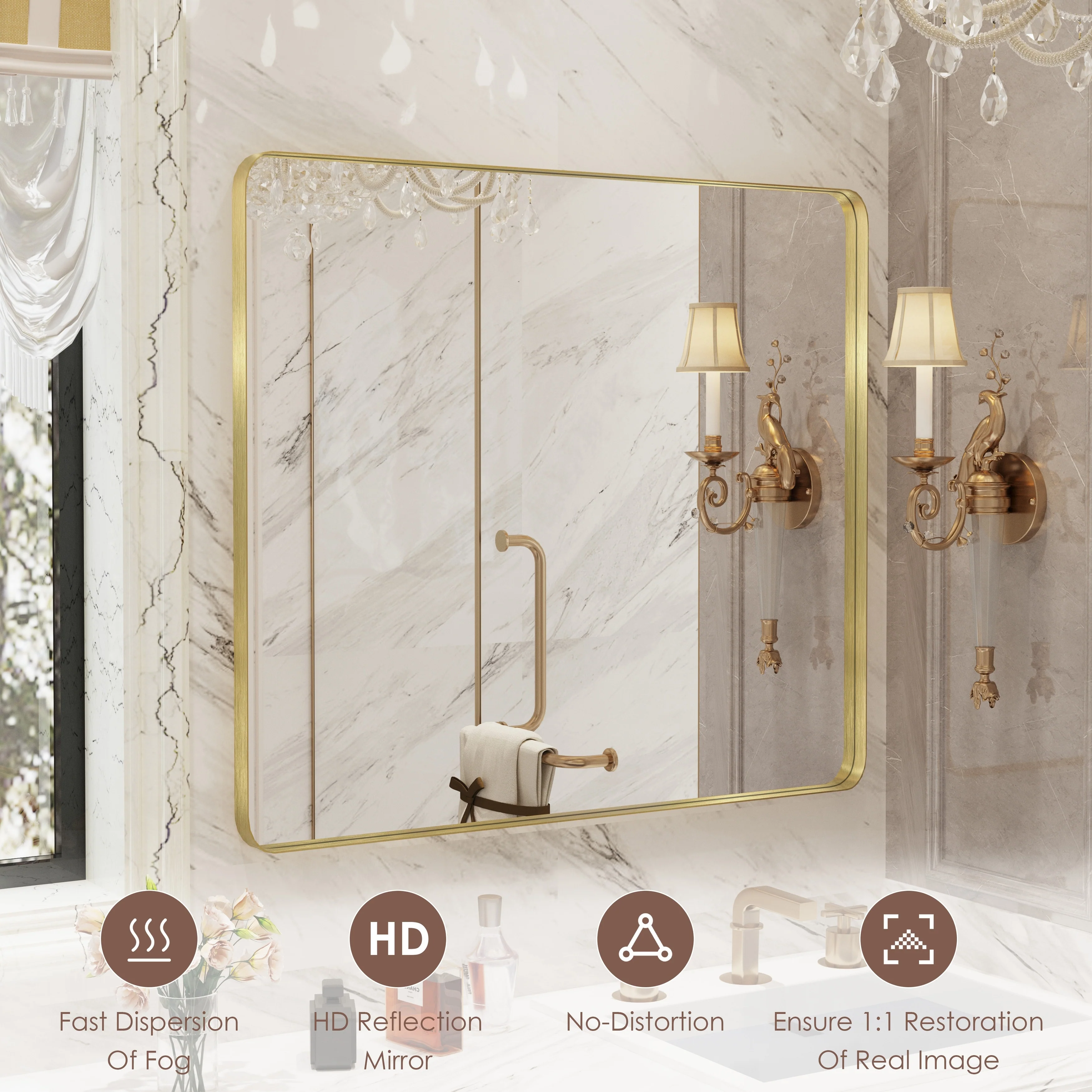 HD Reflection: This modern mirror features a clear and distortion-free reflection, HD reflection without distortion to ensure 1 : 1 image restoration.
