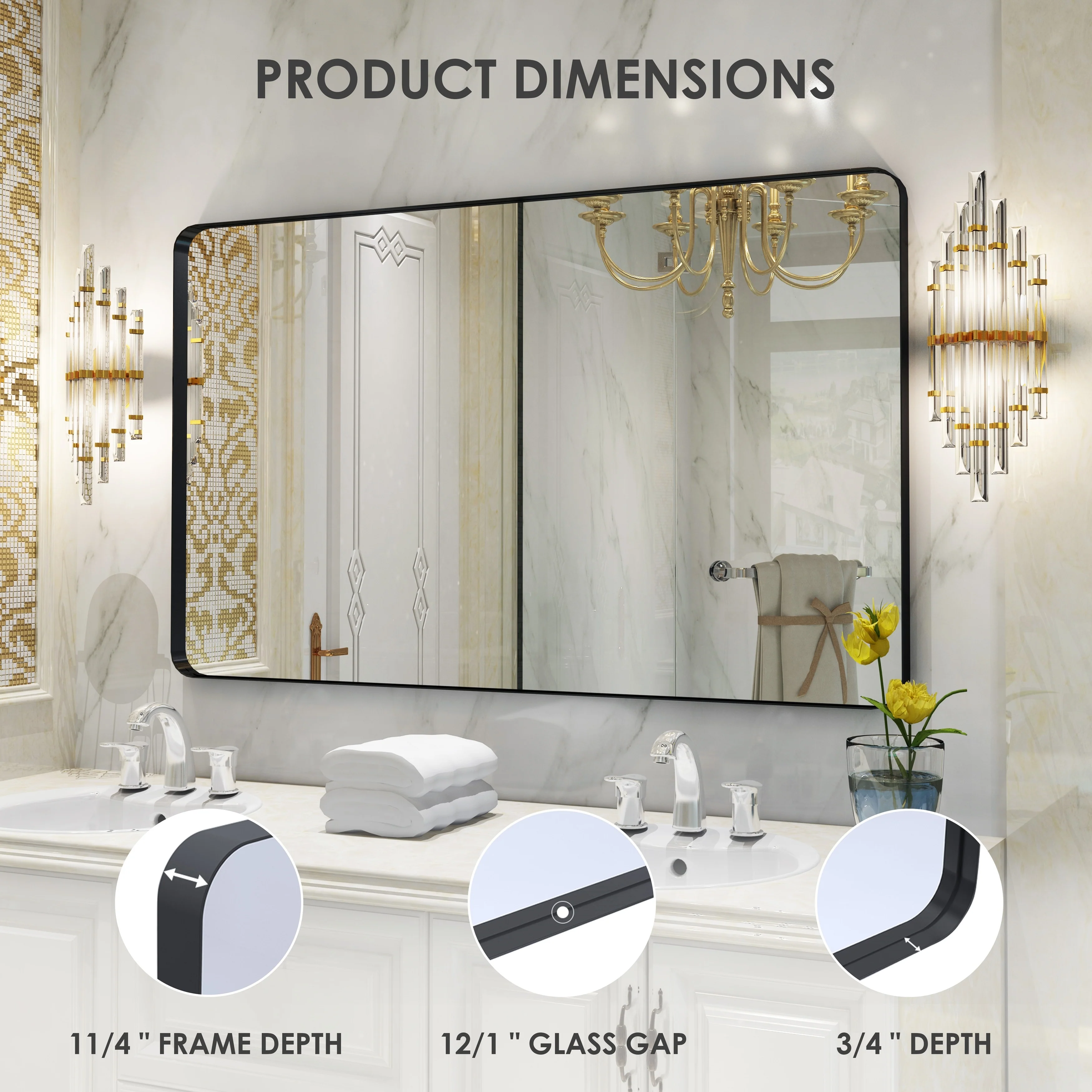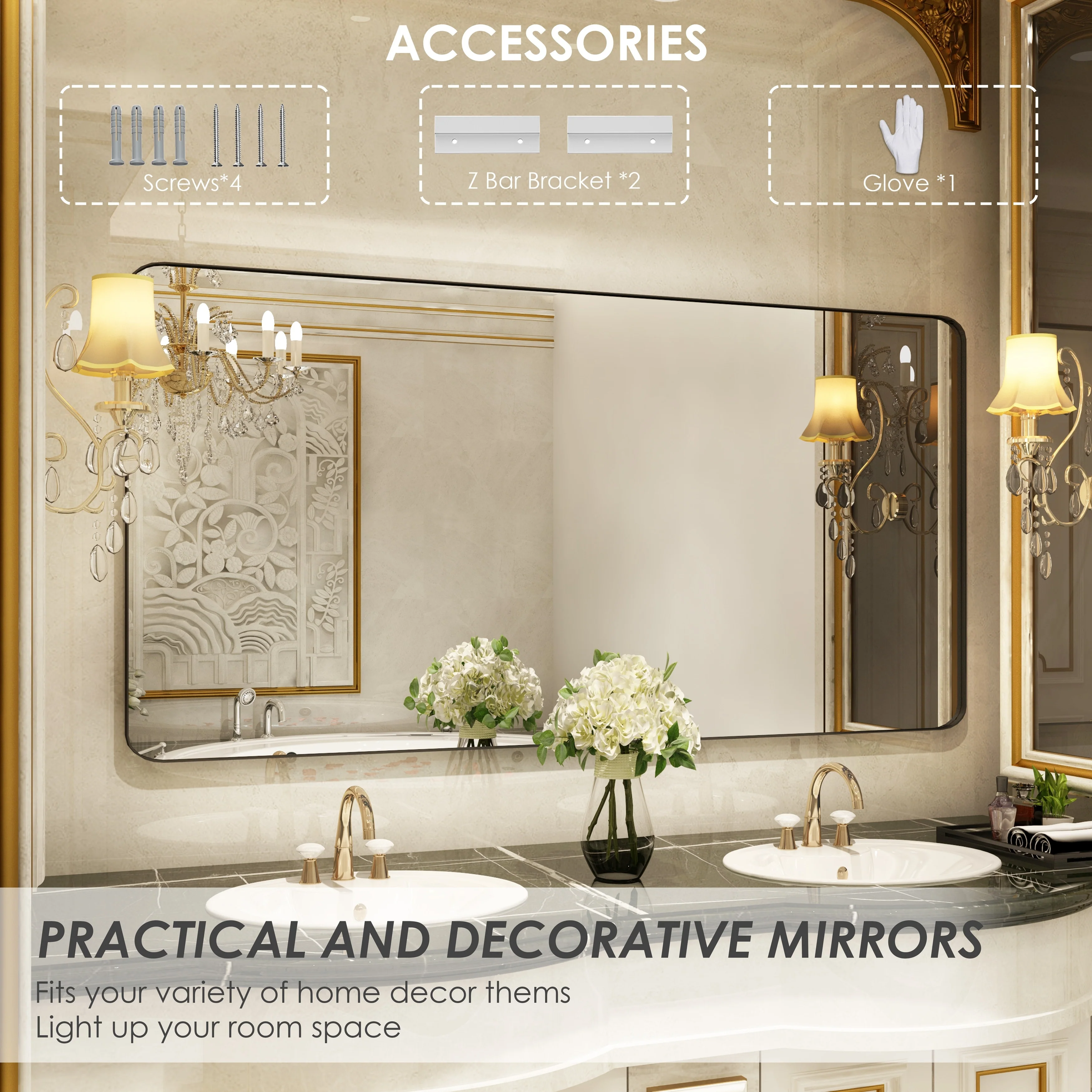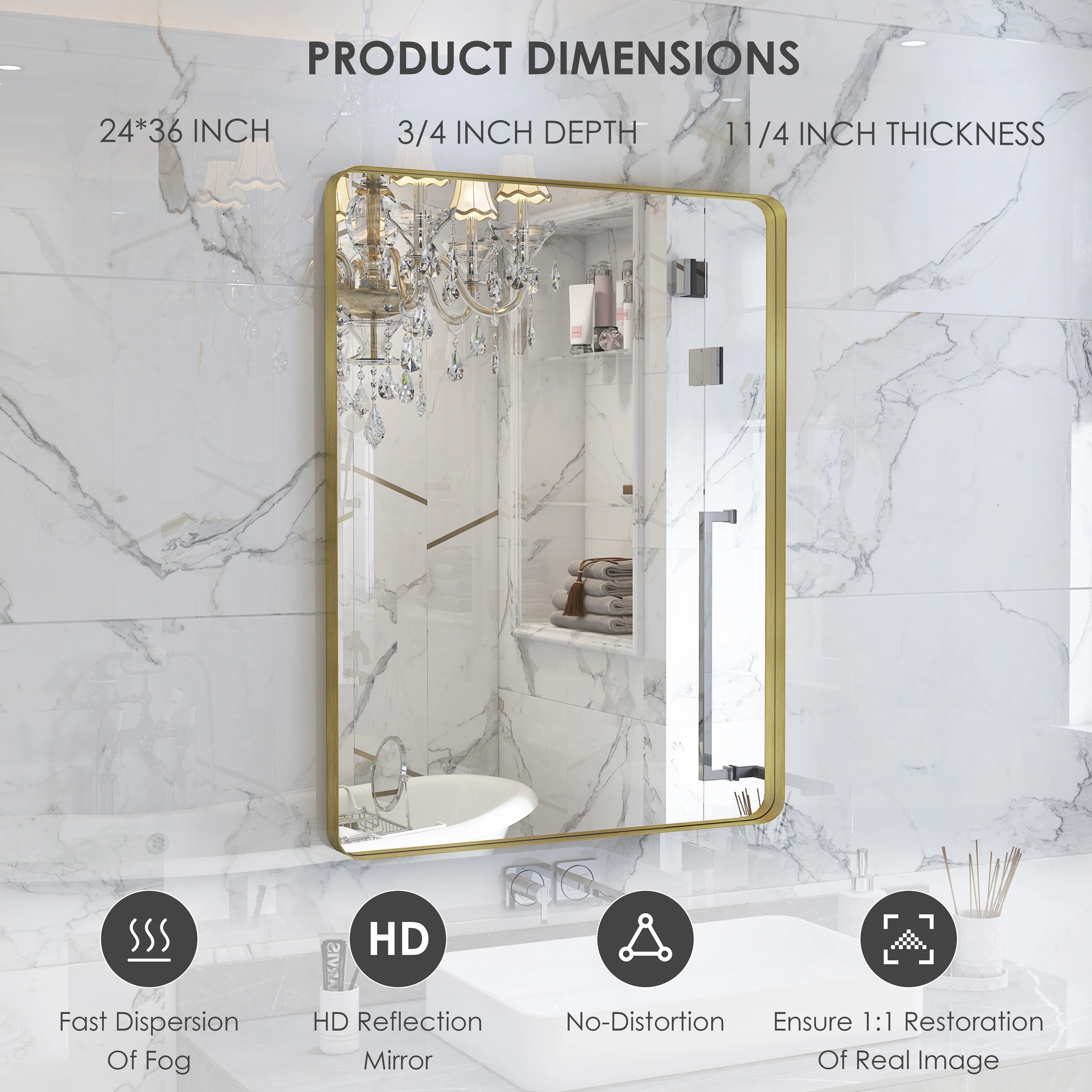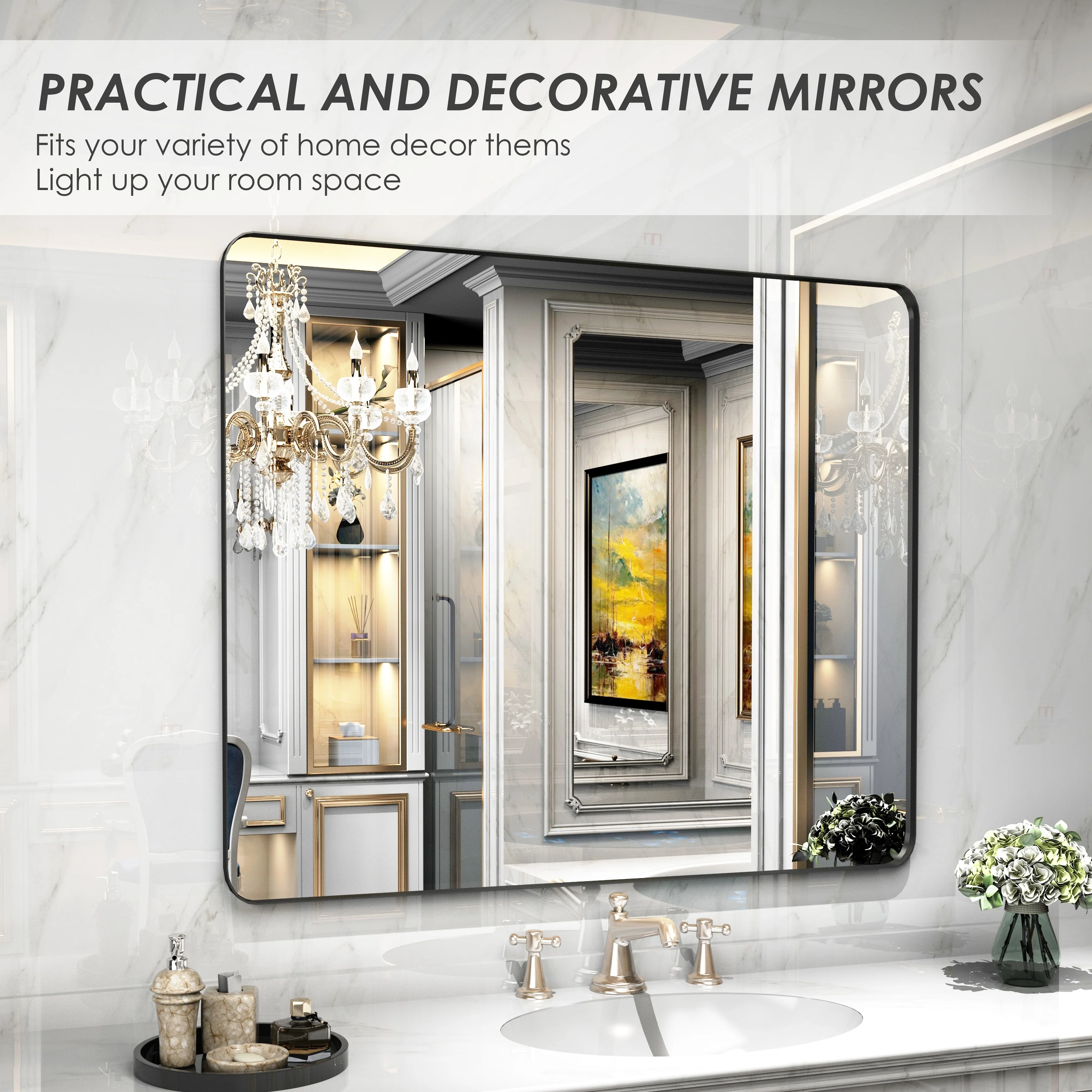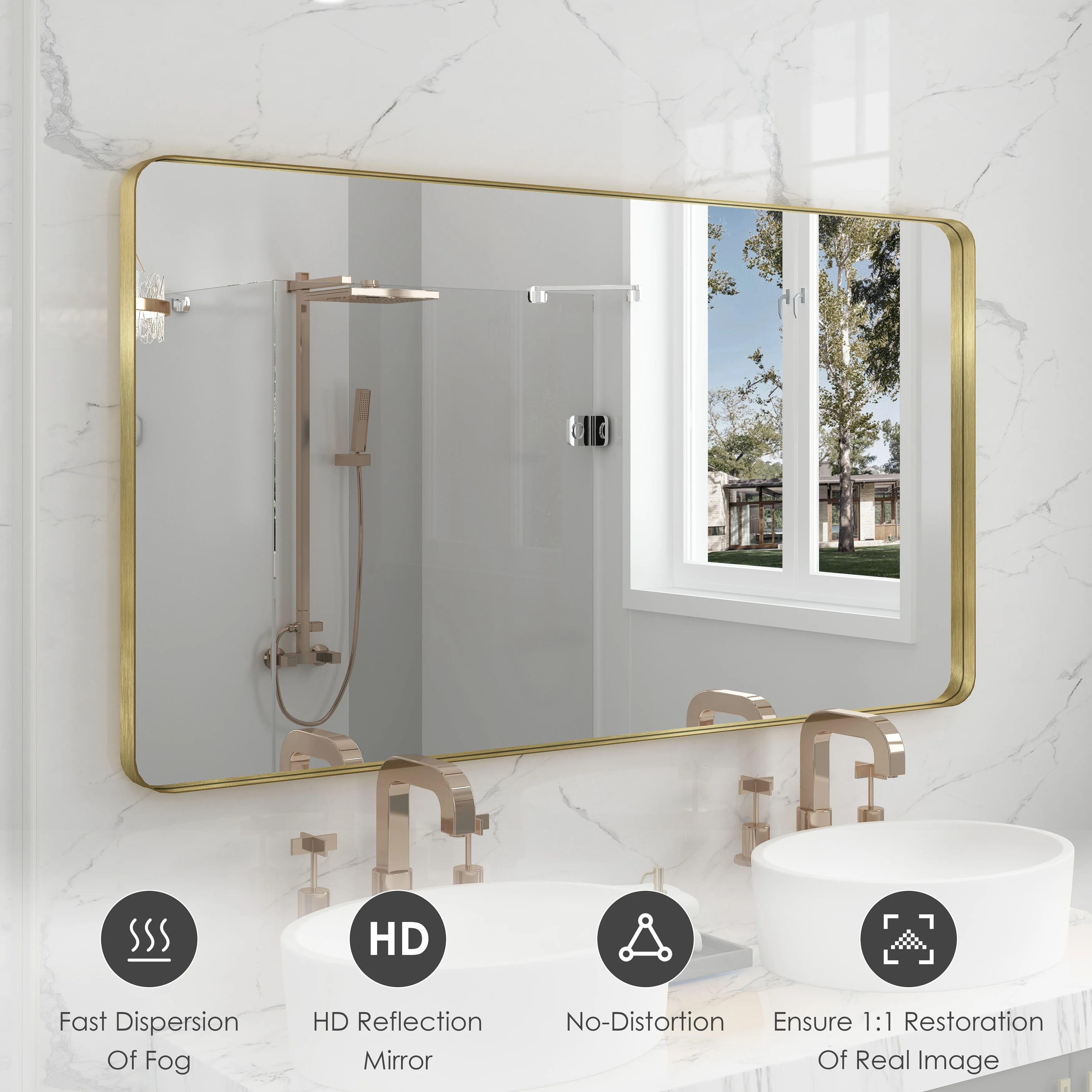 HD Reflection: This modern mirror features a clear and distortion-free reflection, HD reflection without distortion to ensure 1 : 1 image restoration.