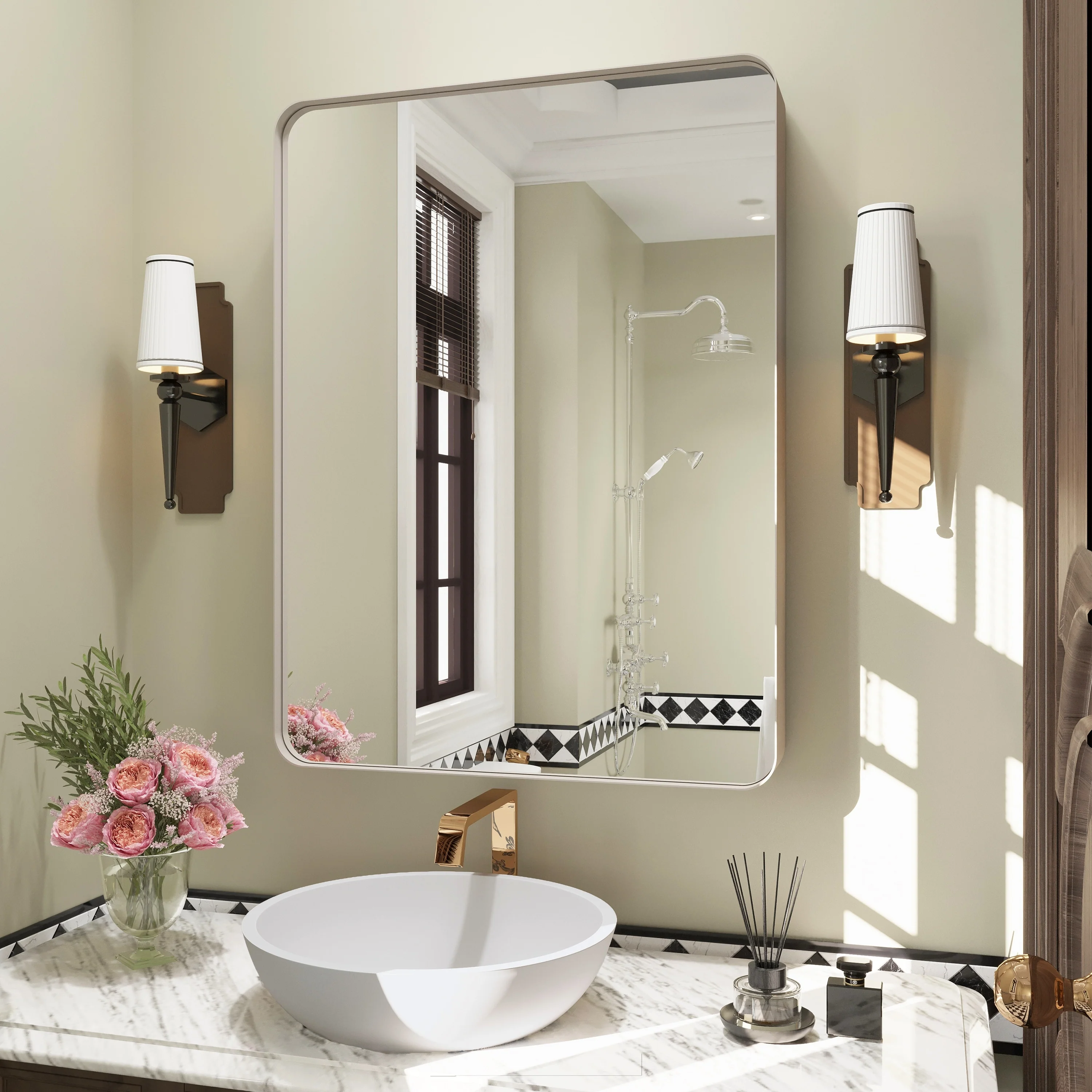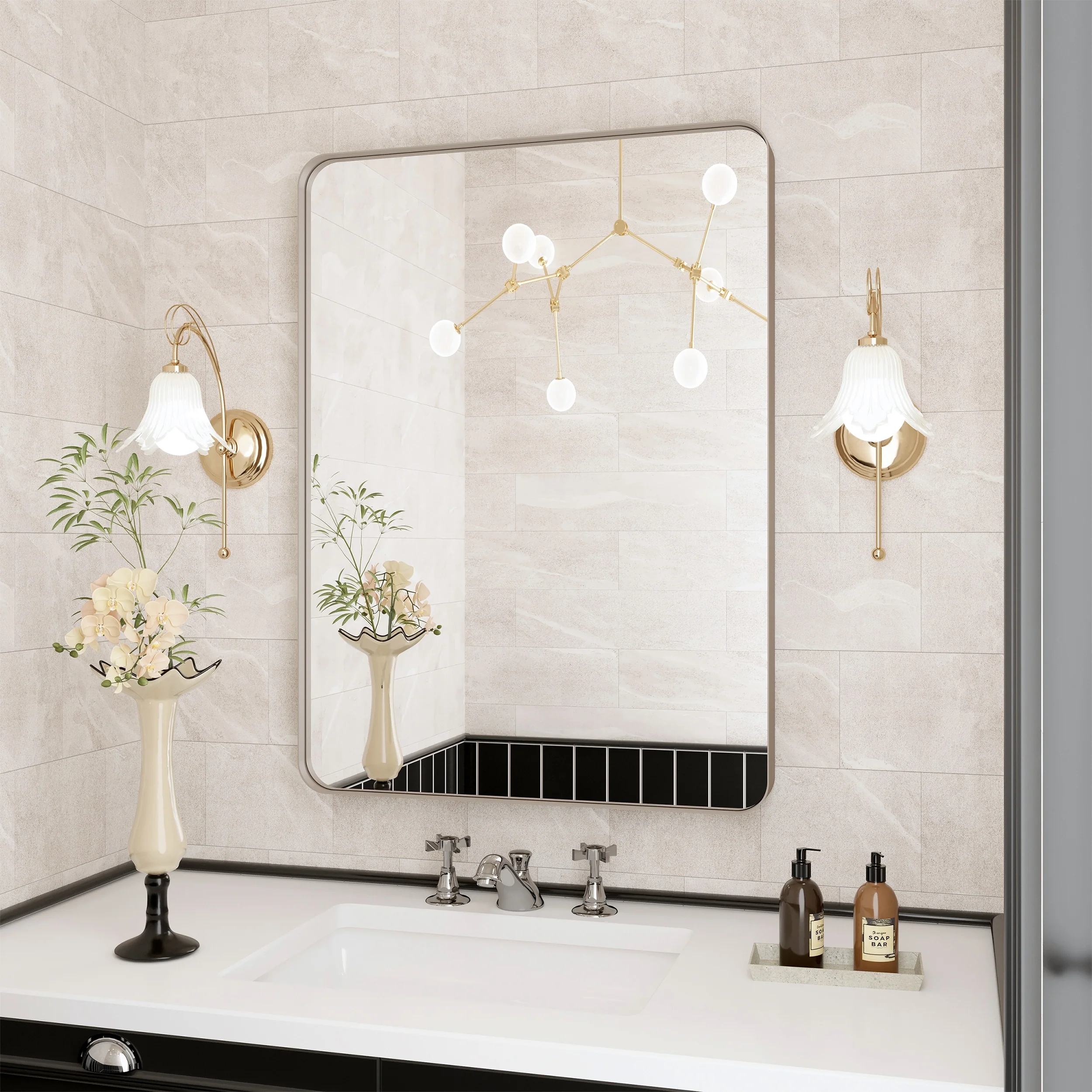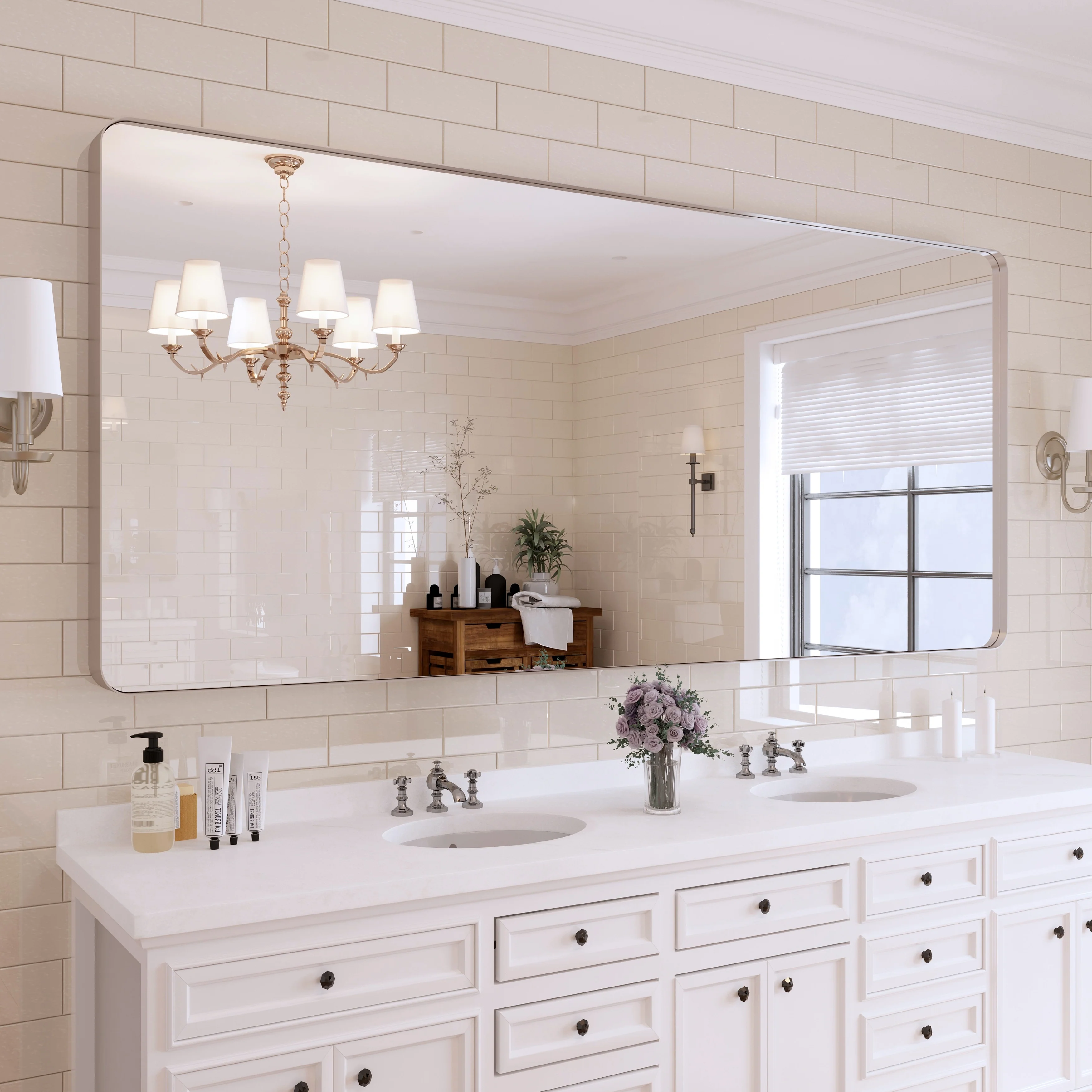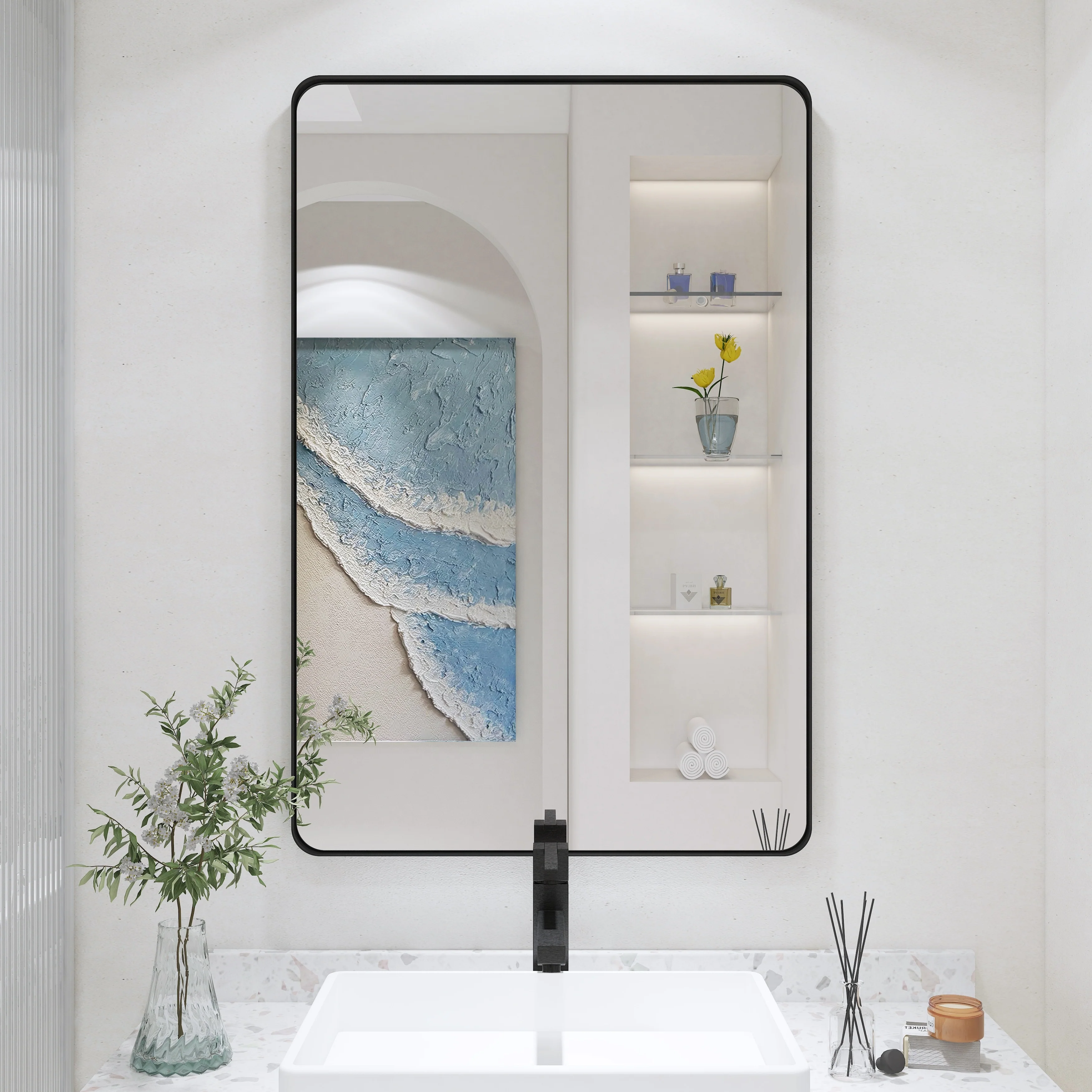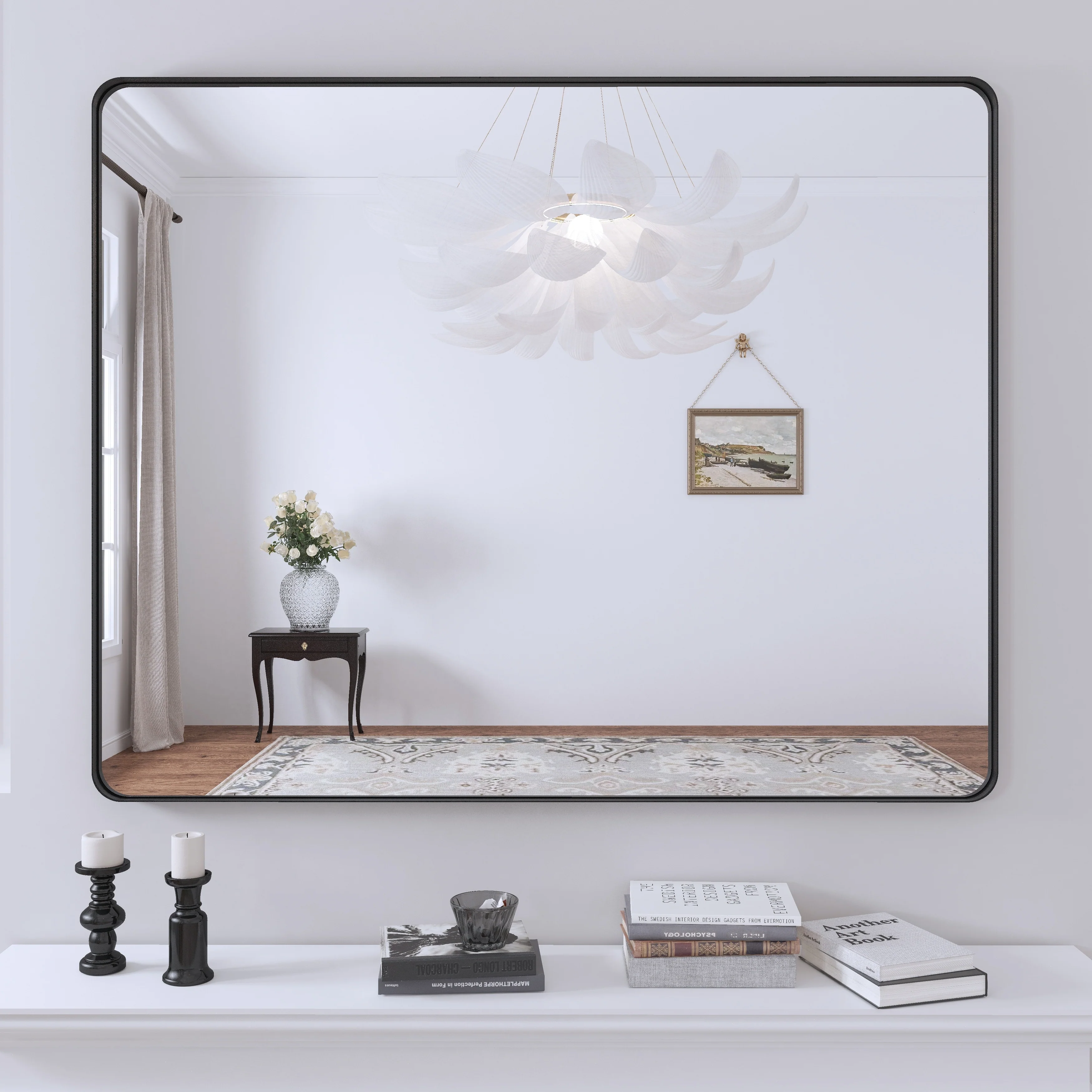 HD Reflection: This modern mirror features a clear and distortion-free reflection, HD reflection without distortion to ensure 1 : 1 image restoration.
