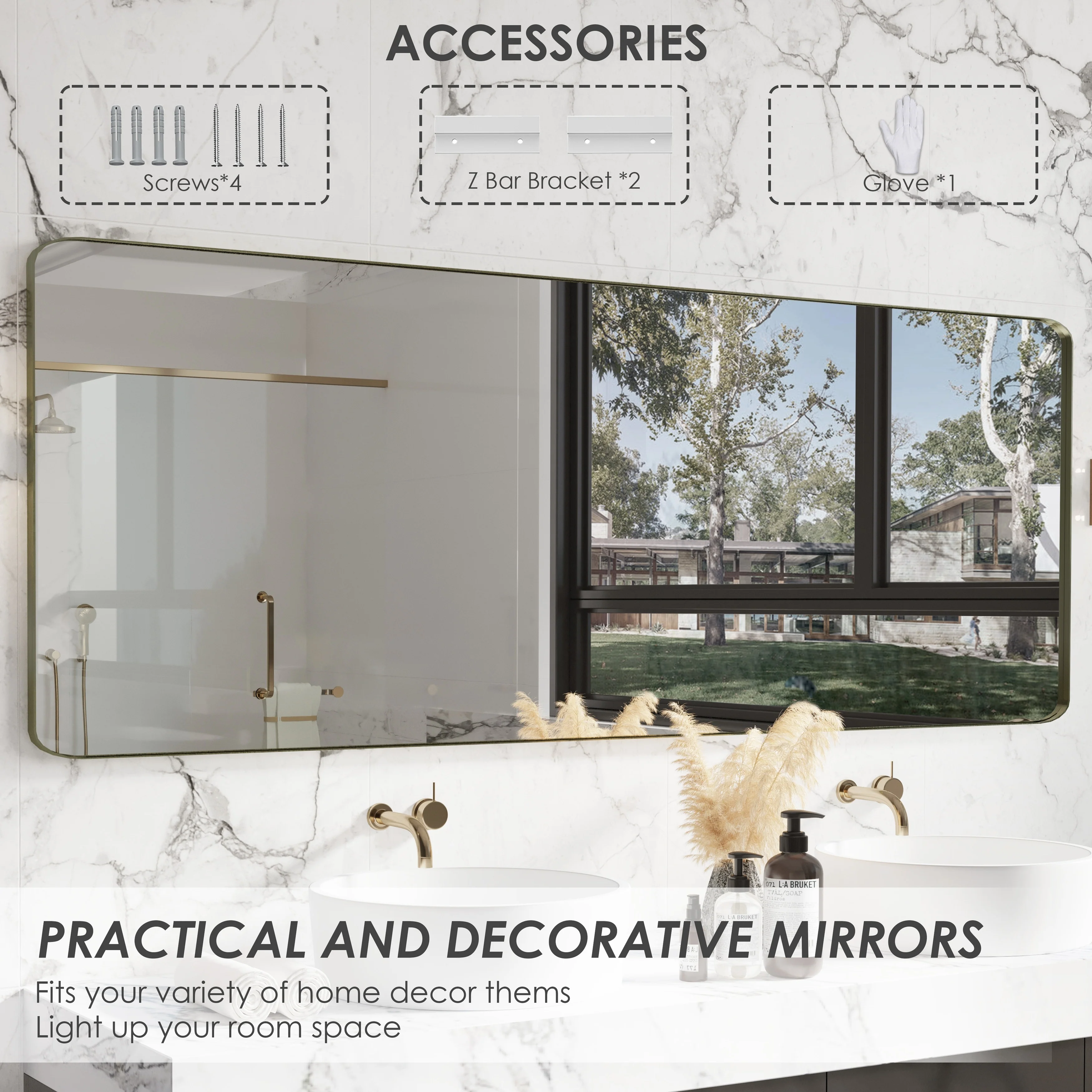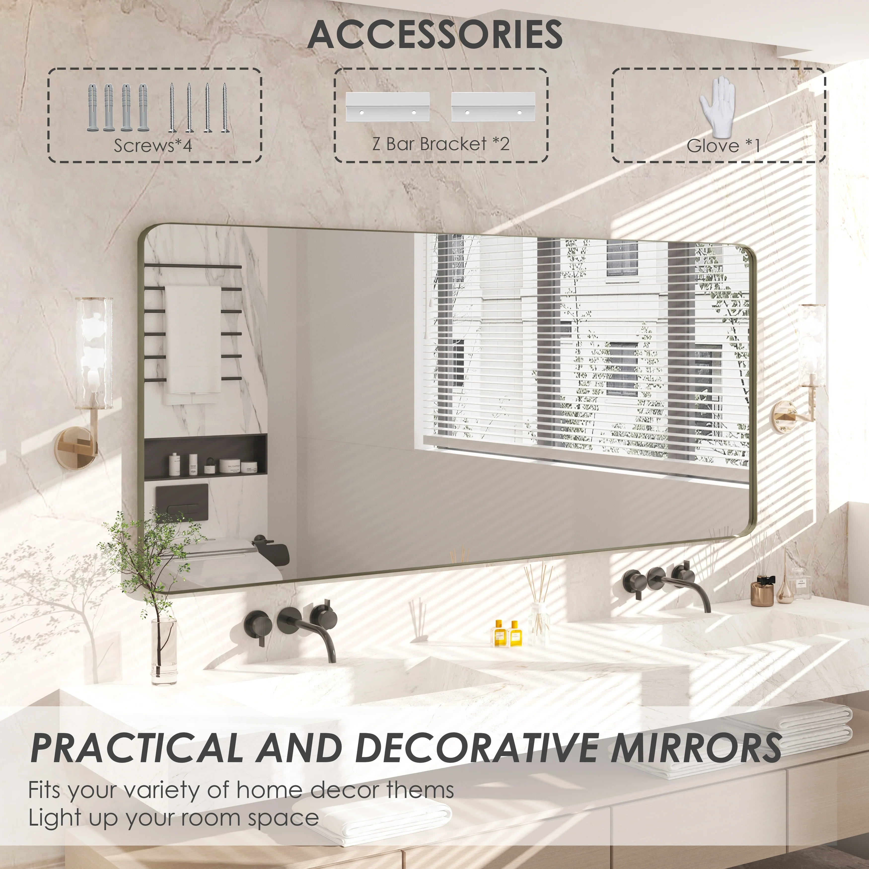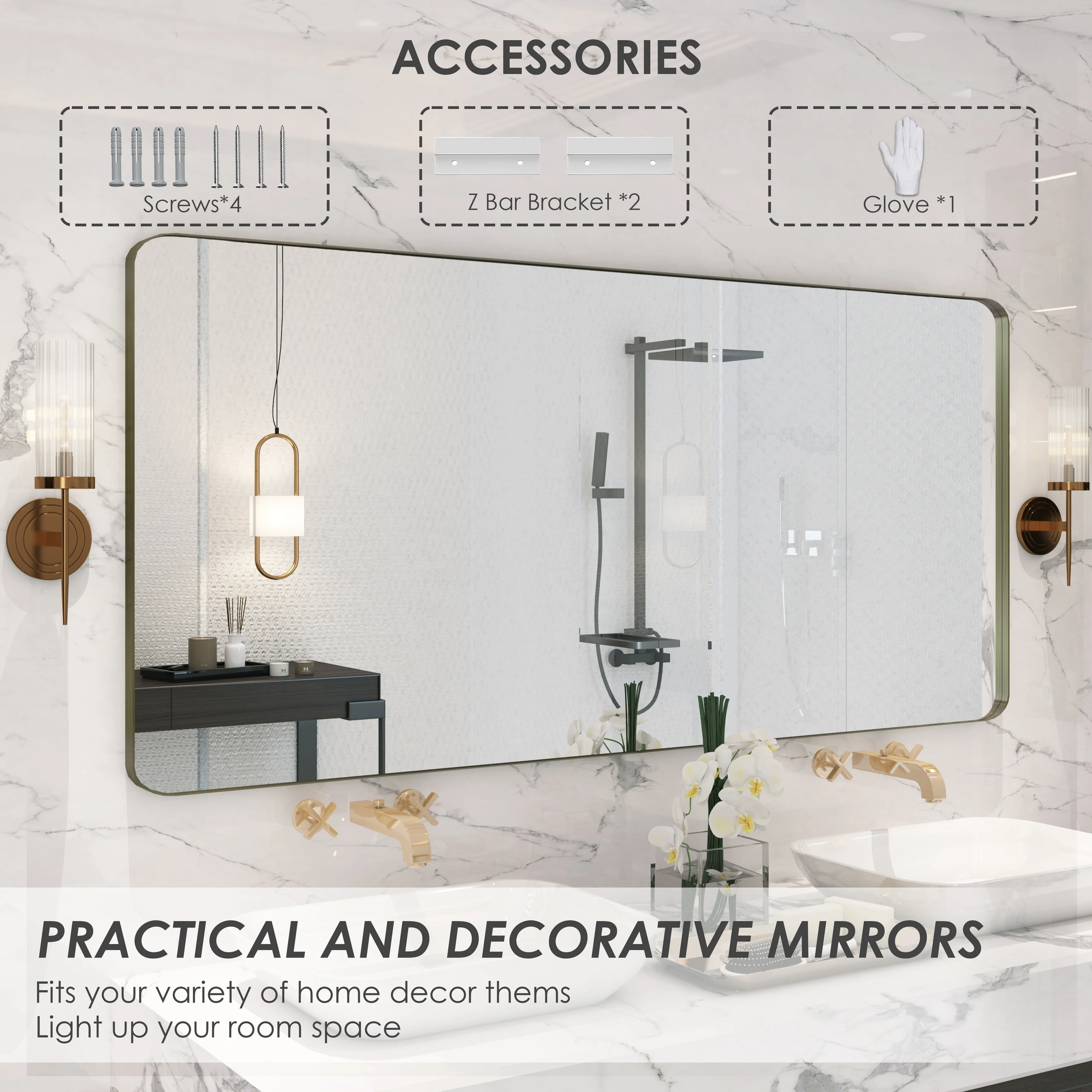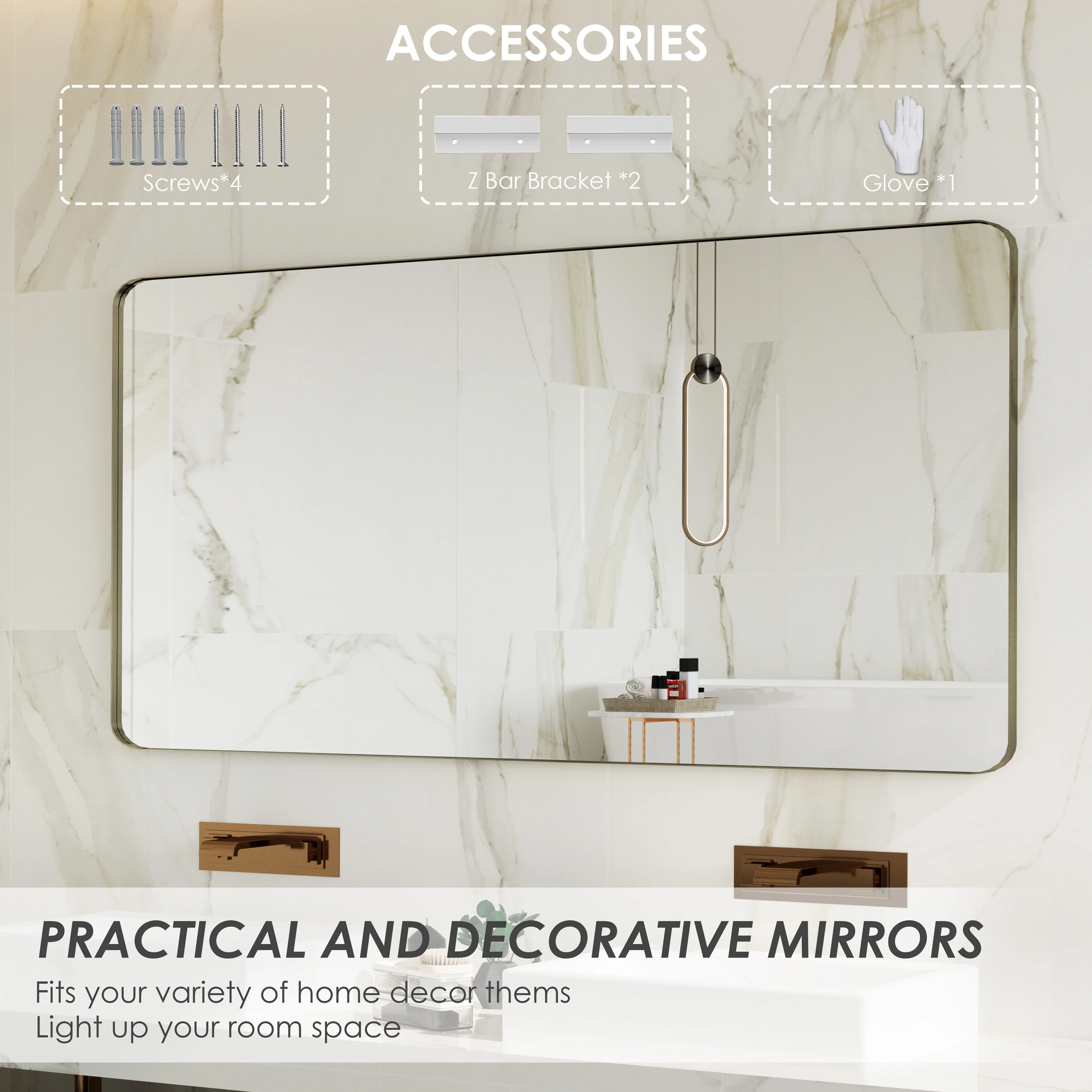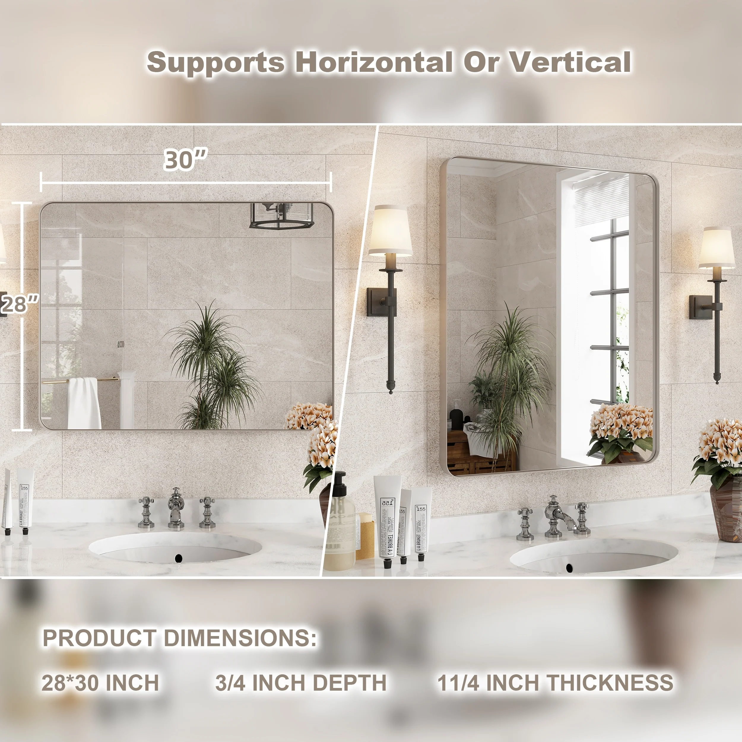 QuivaraView premium Aluminum Alloy Framed mirror, with the premium aluminum frame, the whole mirror not too heavy, it is light but sturdy. mirror is made of HD glass, which is super clear and without distortion. It is designed in multiple sizes, highlight the beauty of space, suitable for different area such as entryway, bathroom, bedroom, living room, hotel and Salon .according to your space need, can be mounted by Vertically or Horizontally.