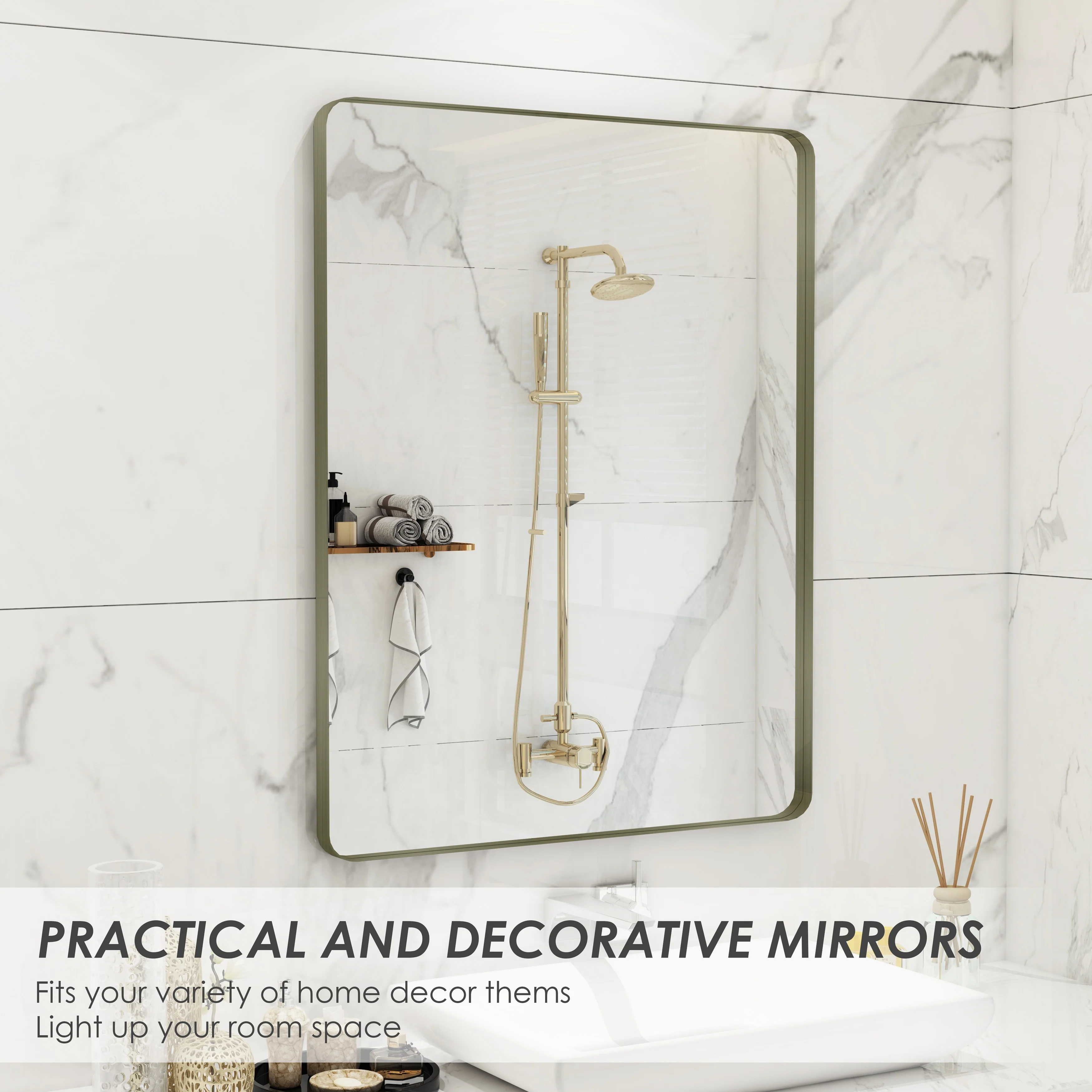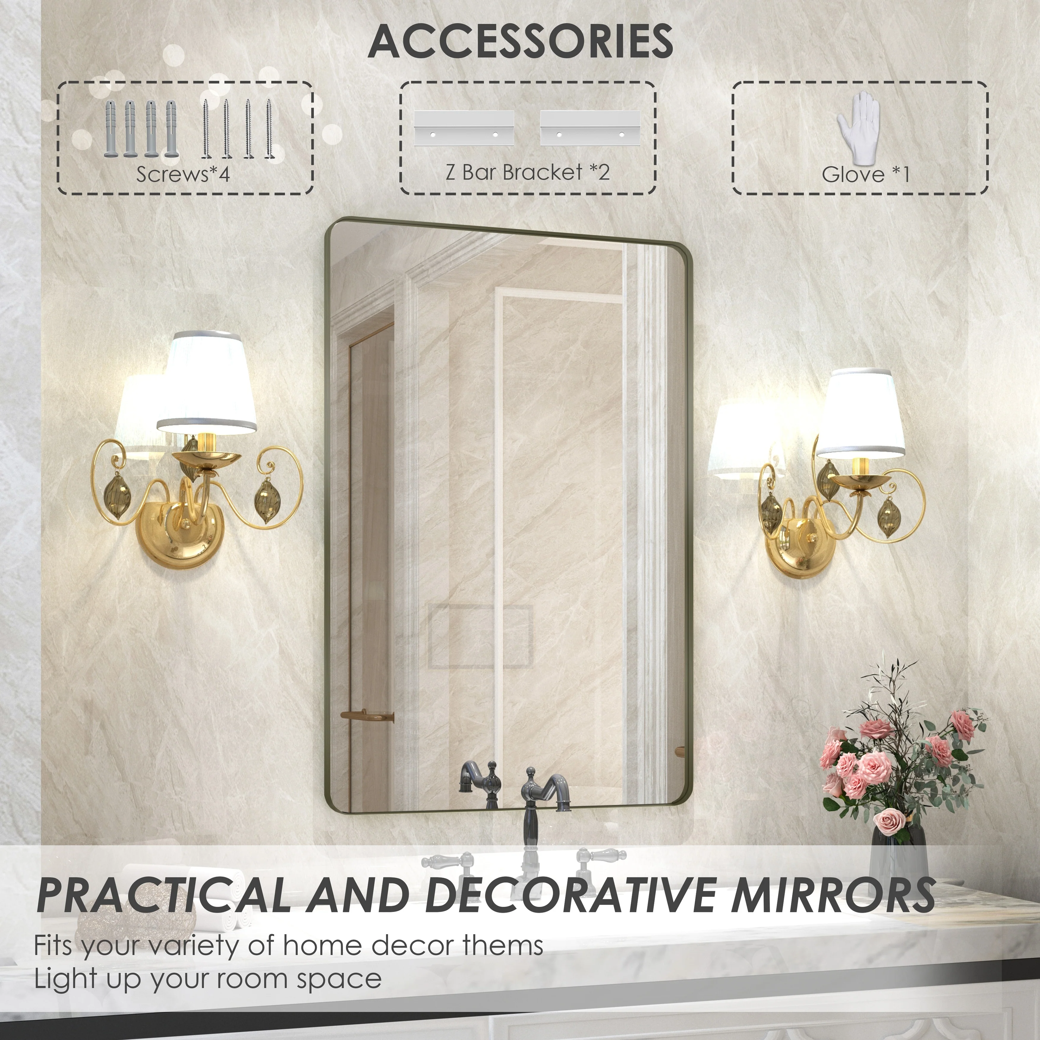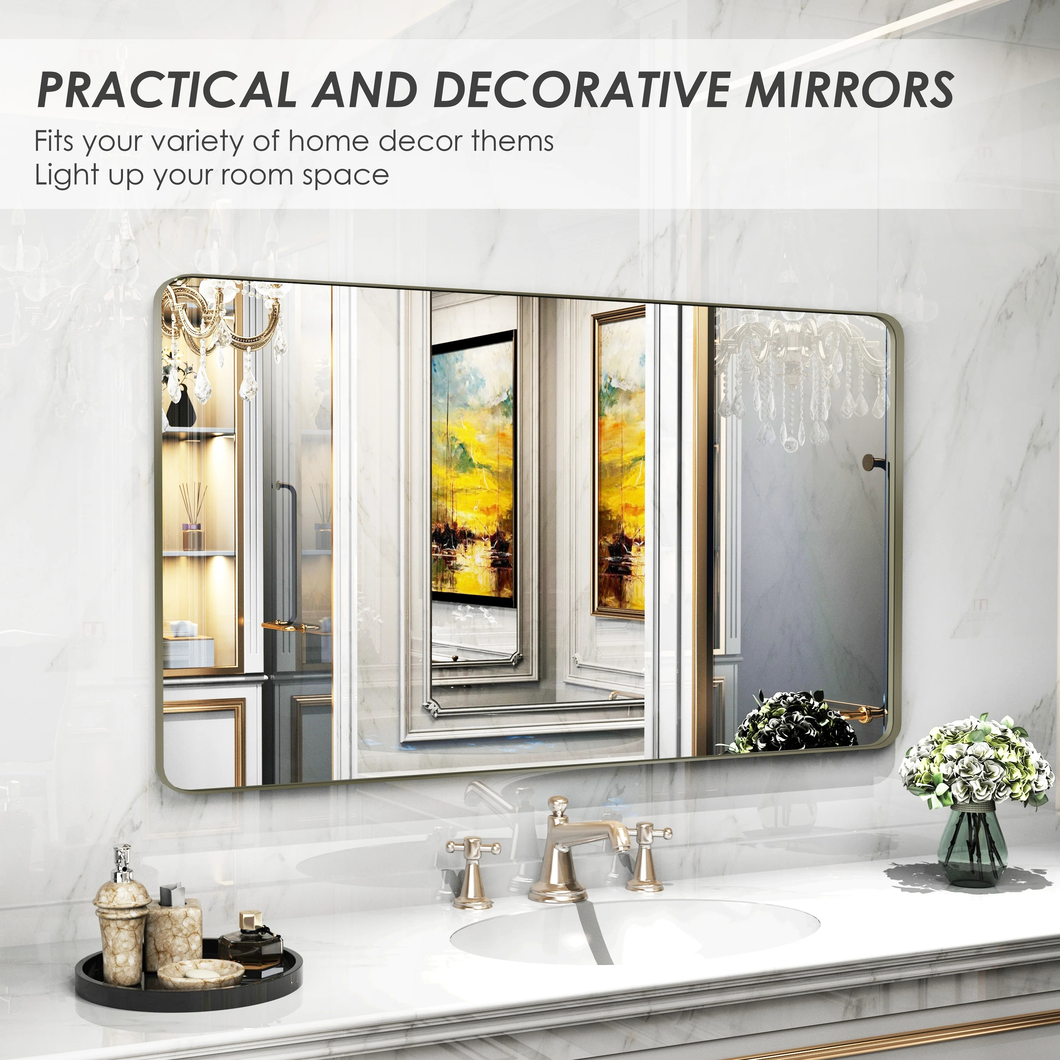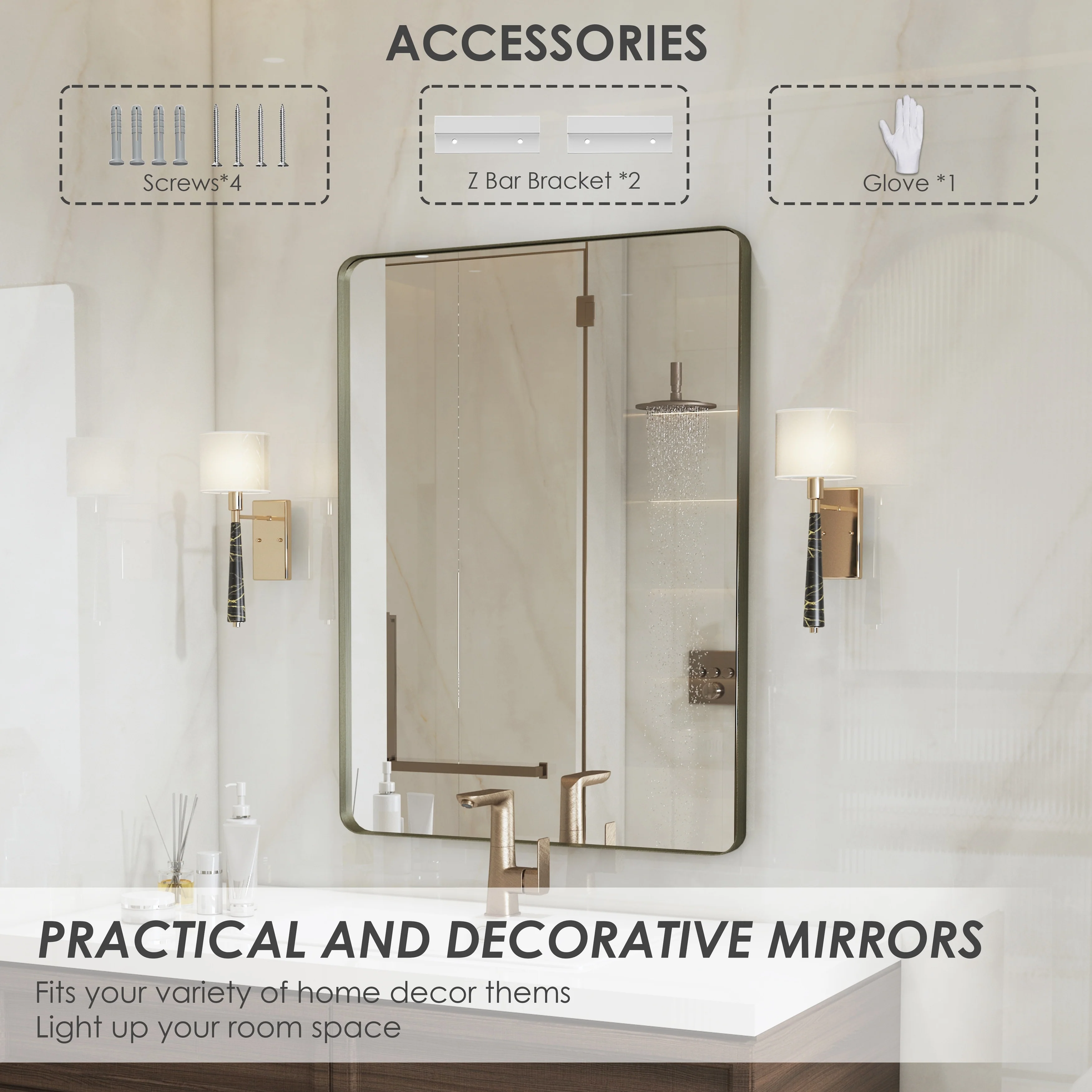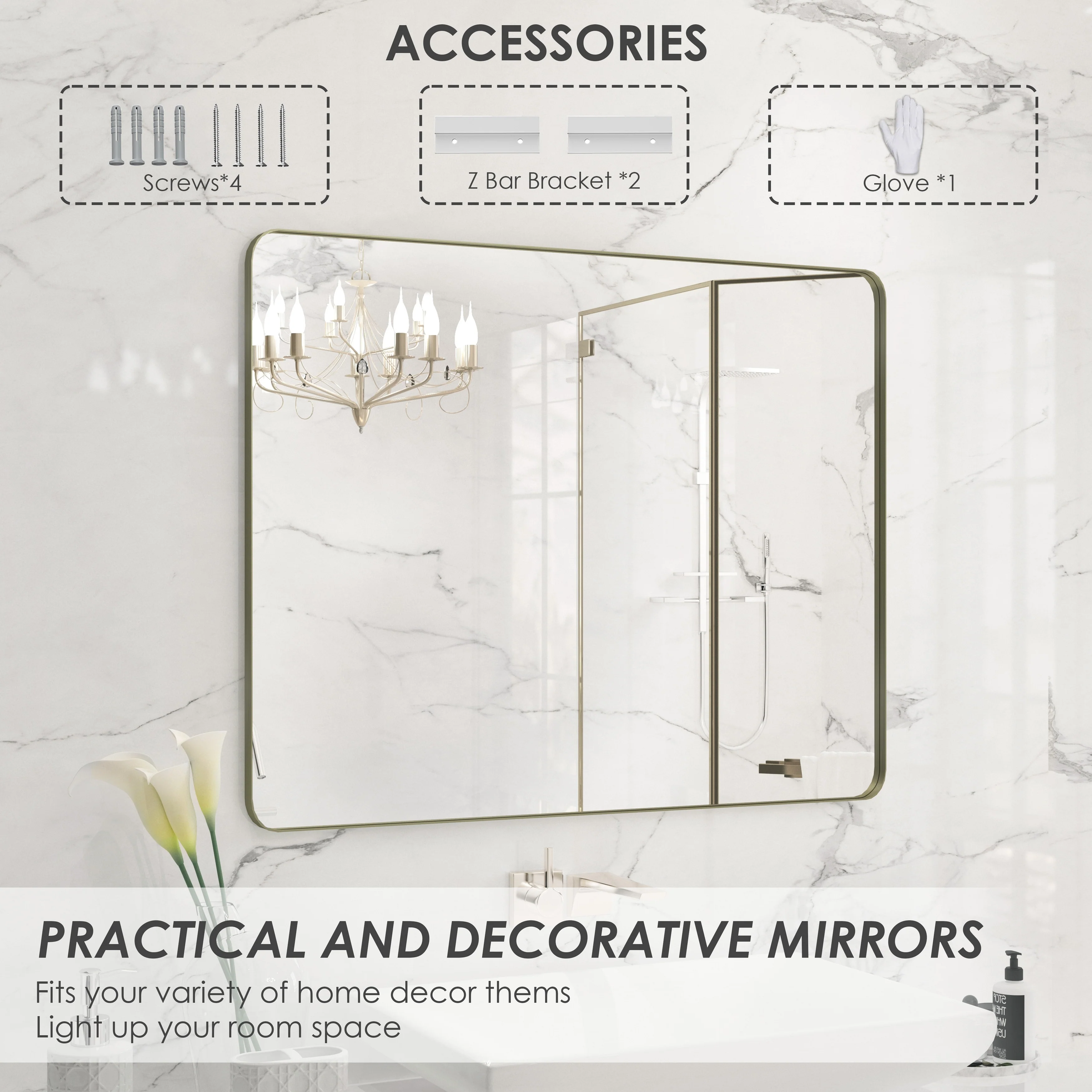 QuivaraView premium Aluminum Alloy Framed mirror, with the premium aluminum frame, the whole mirror not too heavy, it is light but sturdy. mirror is made of HD glass, which is super clear and without distortion. It is designed in multiple sizes, highlight the beauty of space, suitable for different area such as entryway, bathroom, bedroom, living room, hotel and Salon .according to your space need, can be mounted by Vertically or Horizontally.