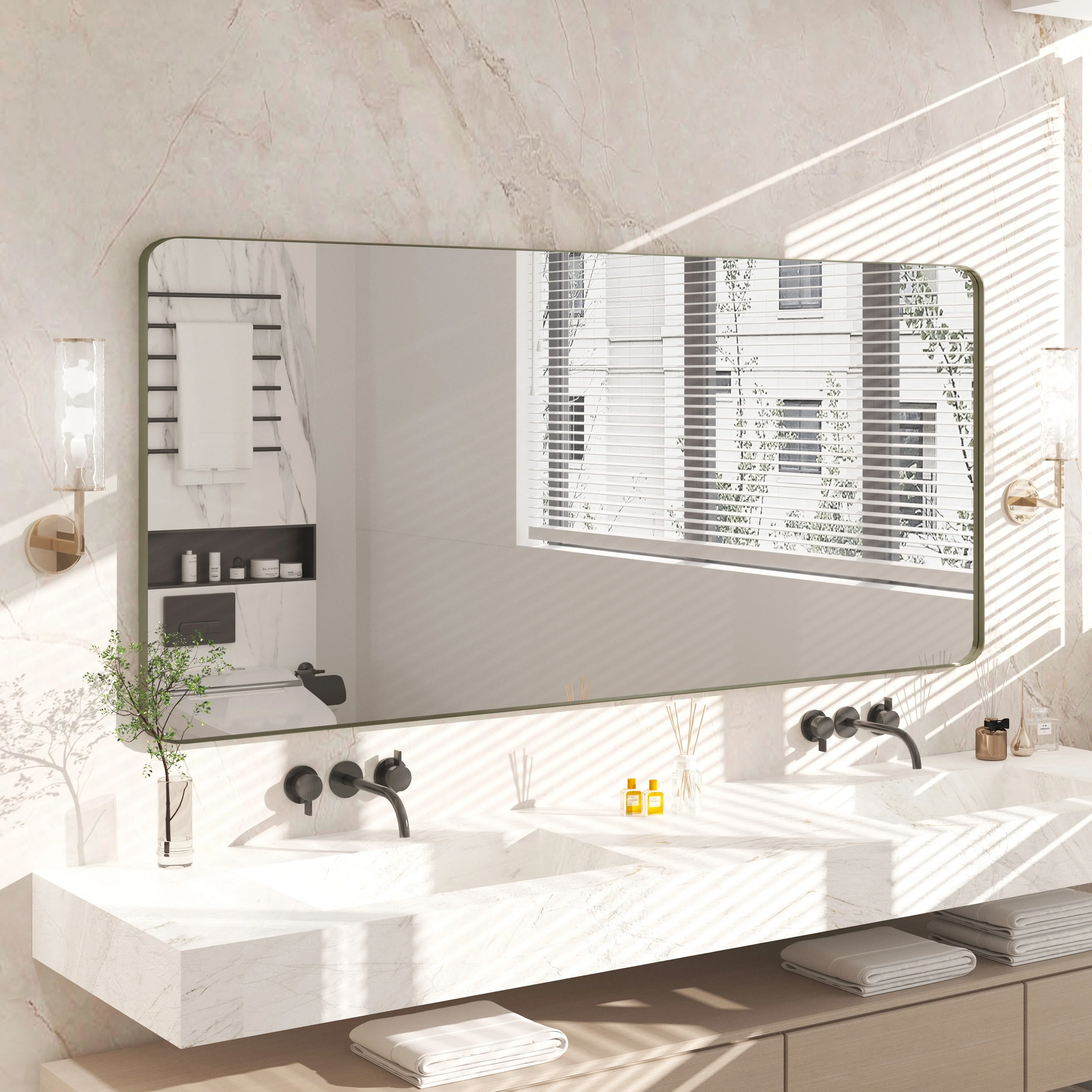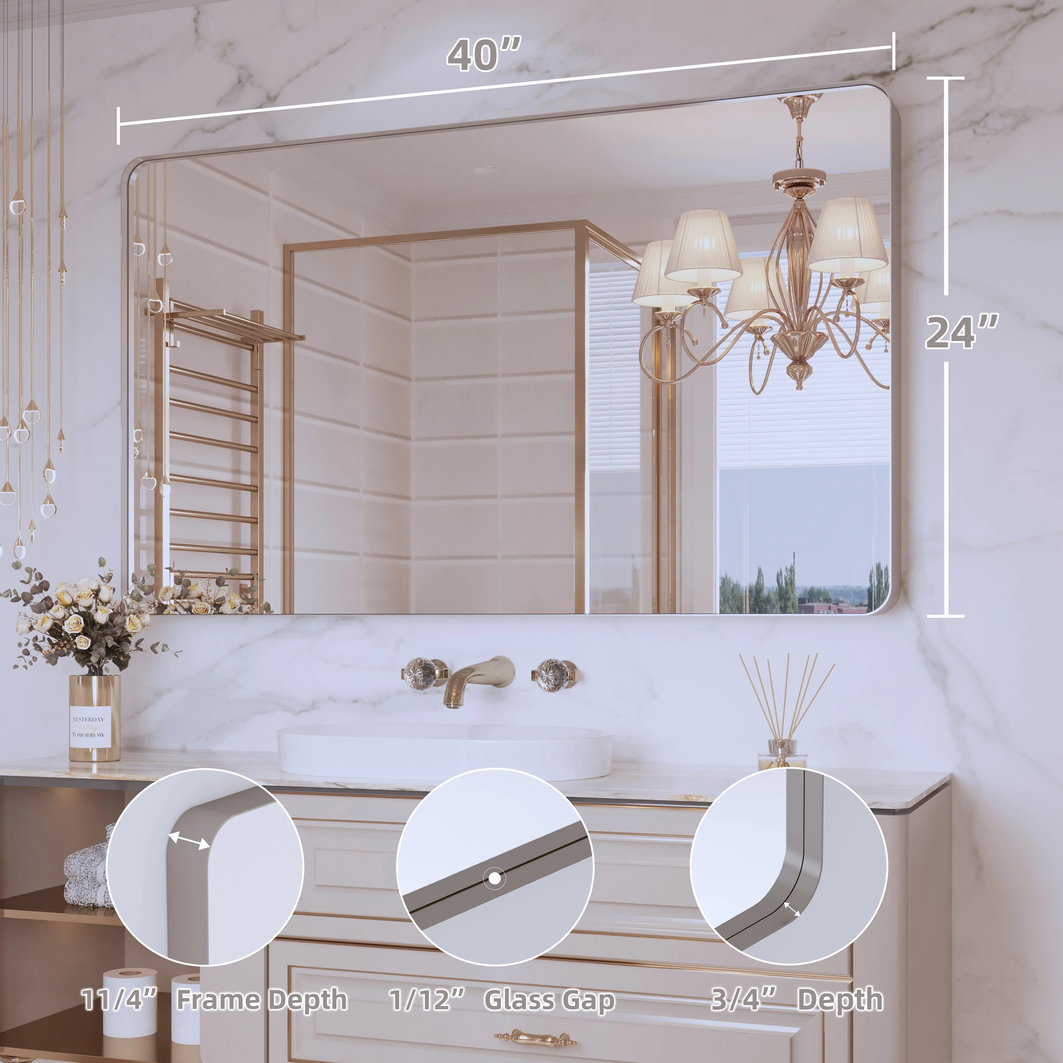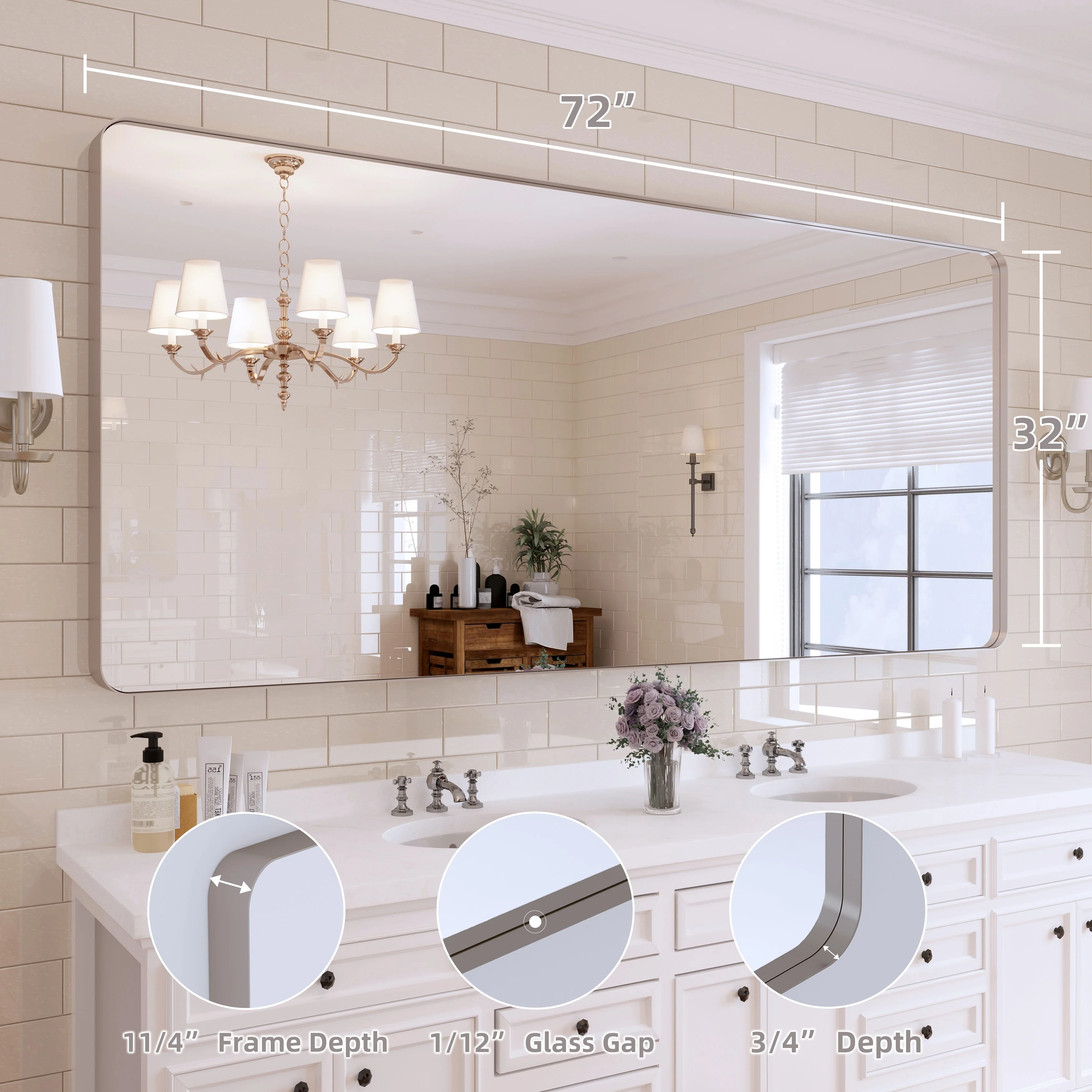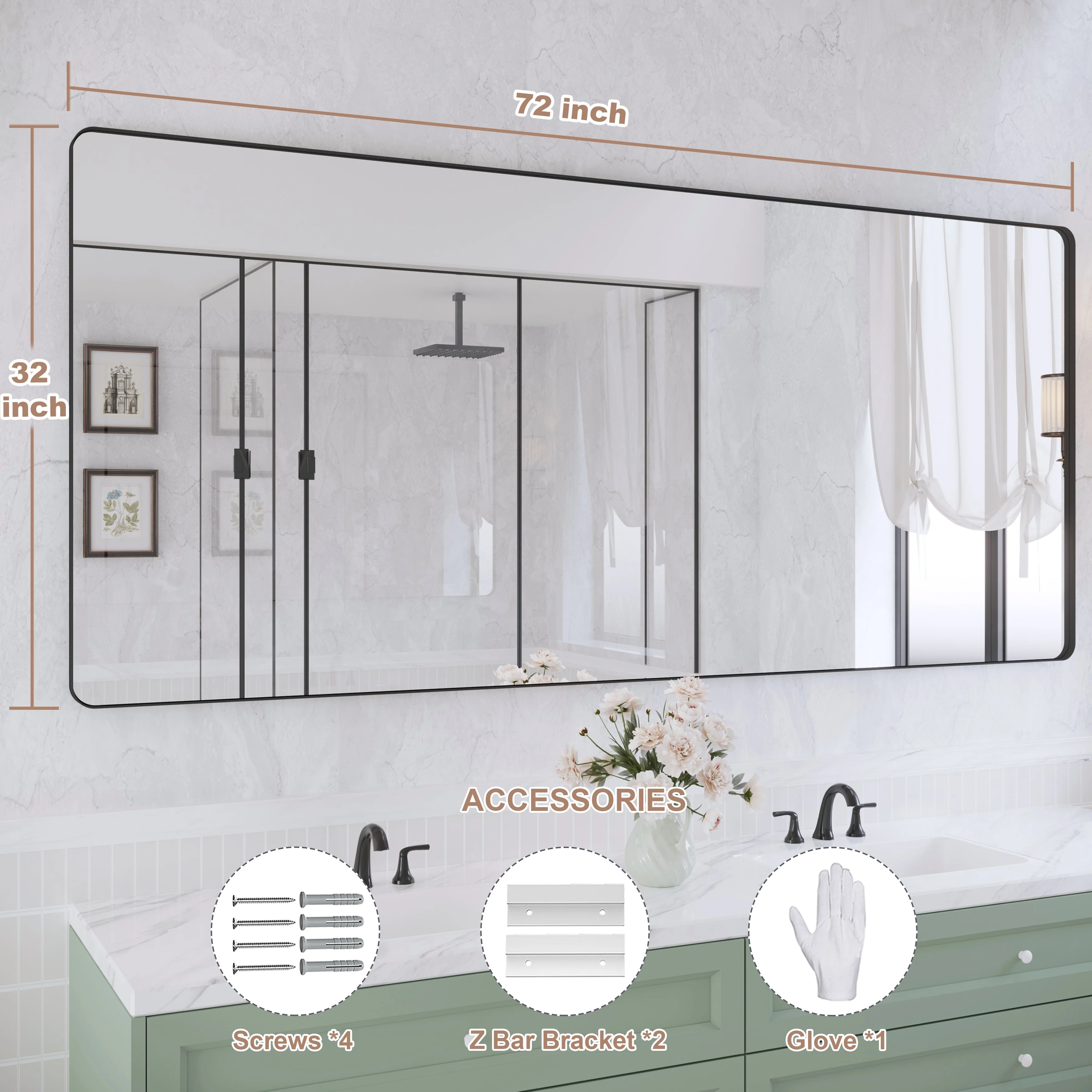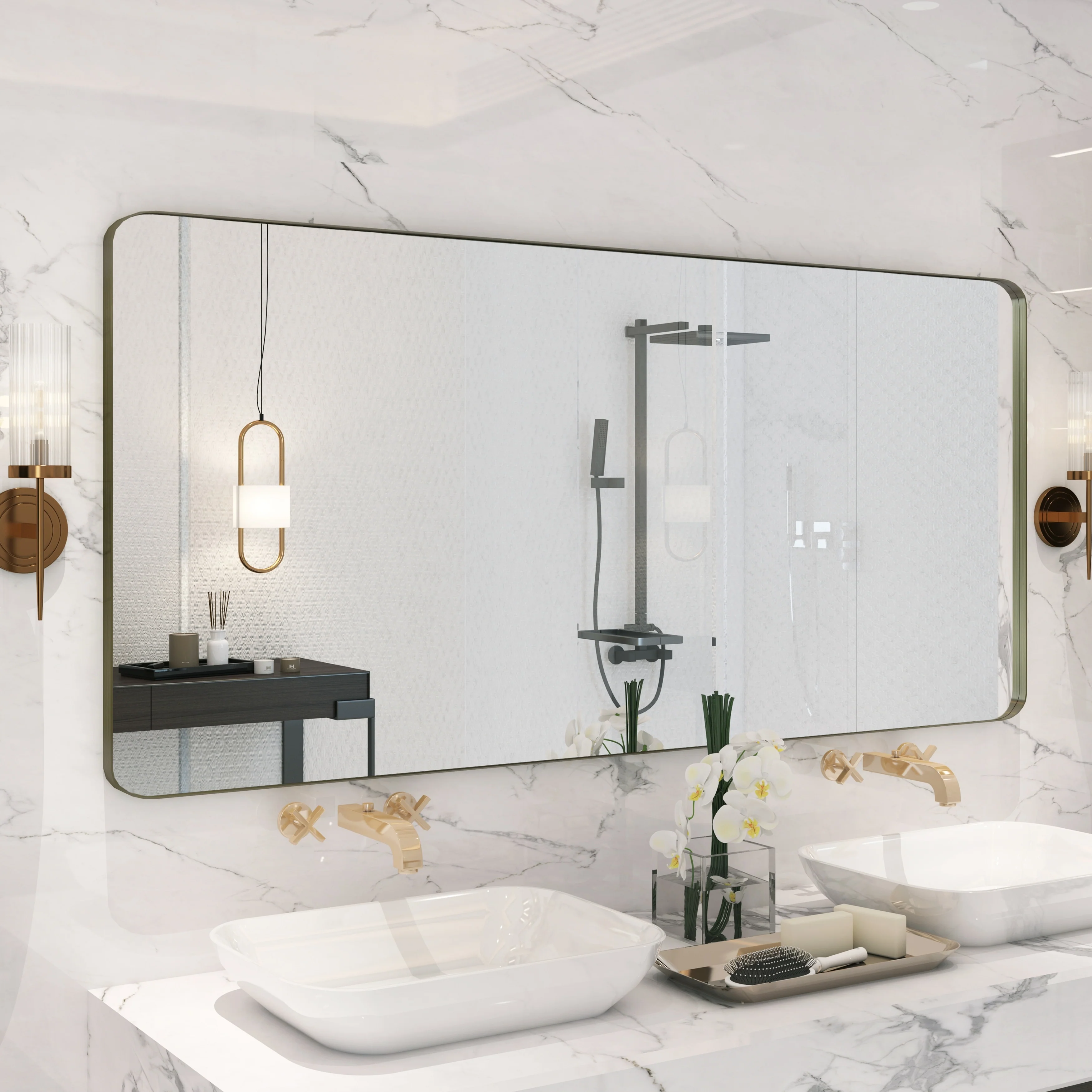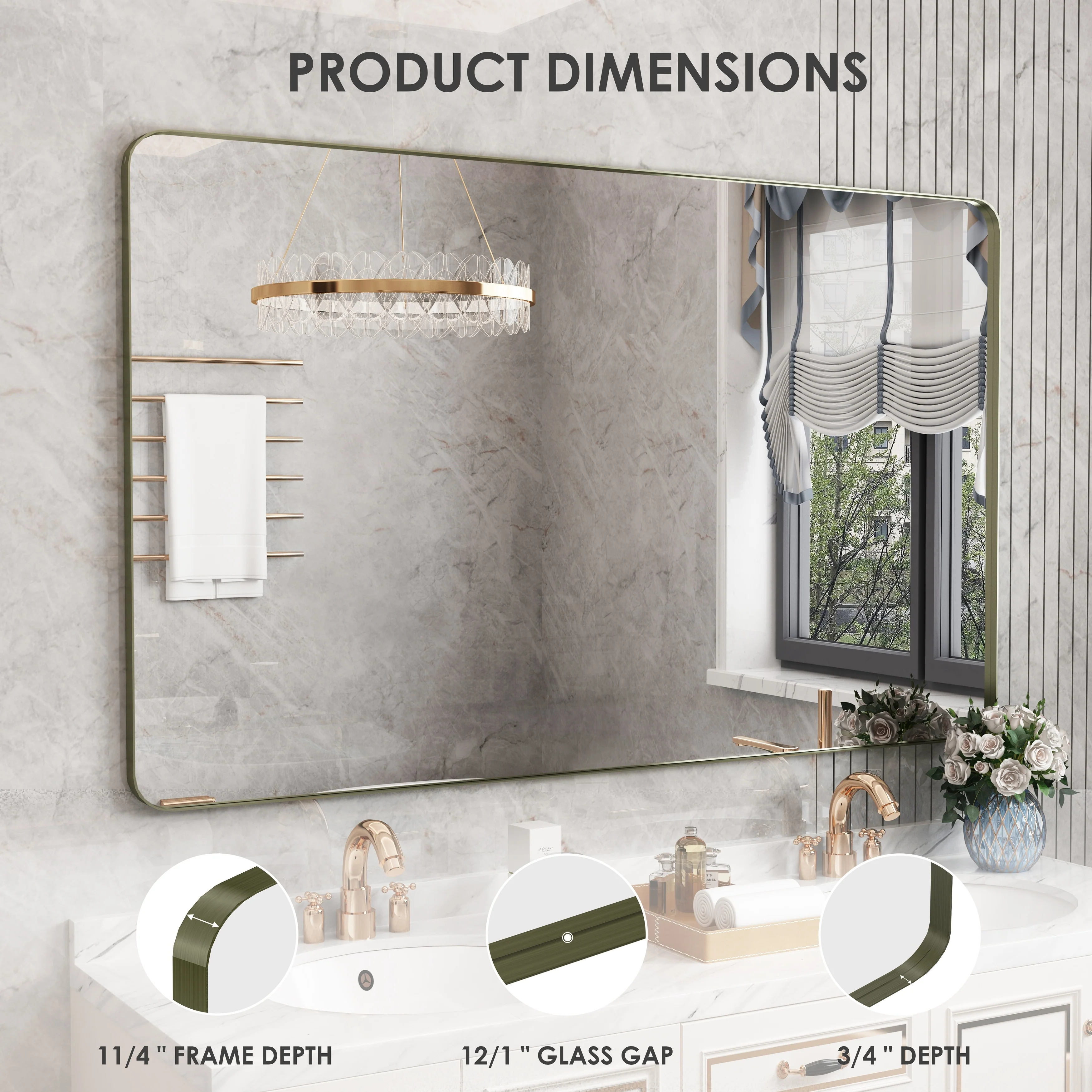 QuivaraView premium Aluminum Alloy Framed mirror, with the premium aluminum frame, the whole mirror not too heavy, it is light but sturdy. mirror is made of HD glass, which is super clear and without distortion. It is designed in multiple sizes, highlight the beauty of space, suitable for different area such as entryway, bathroom, bedroom, living room, hotel and Salon .according to your space need, can be mounted by Vertically or Horizontally.