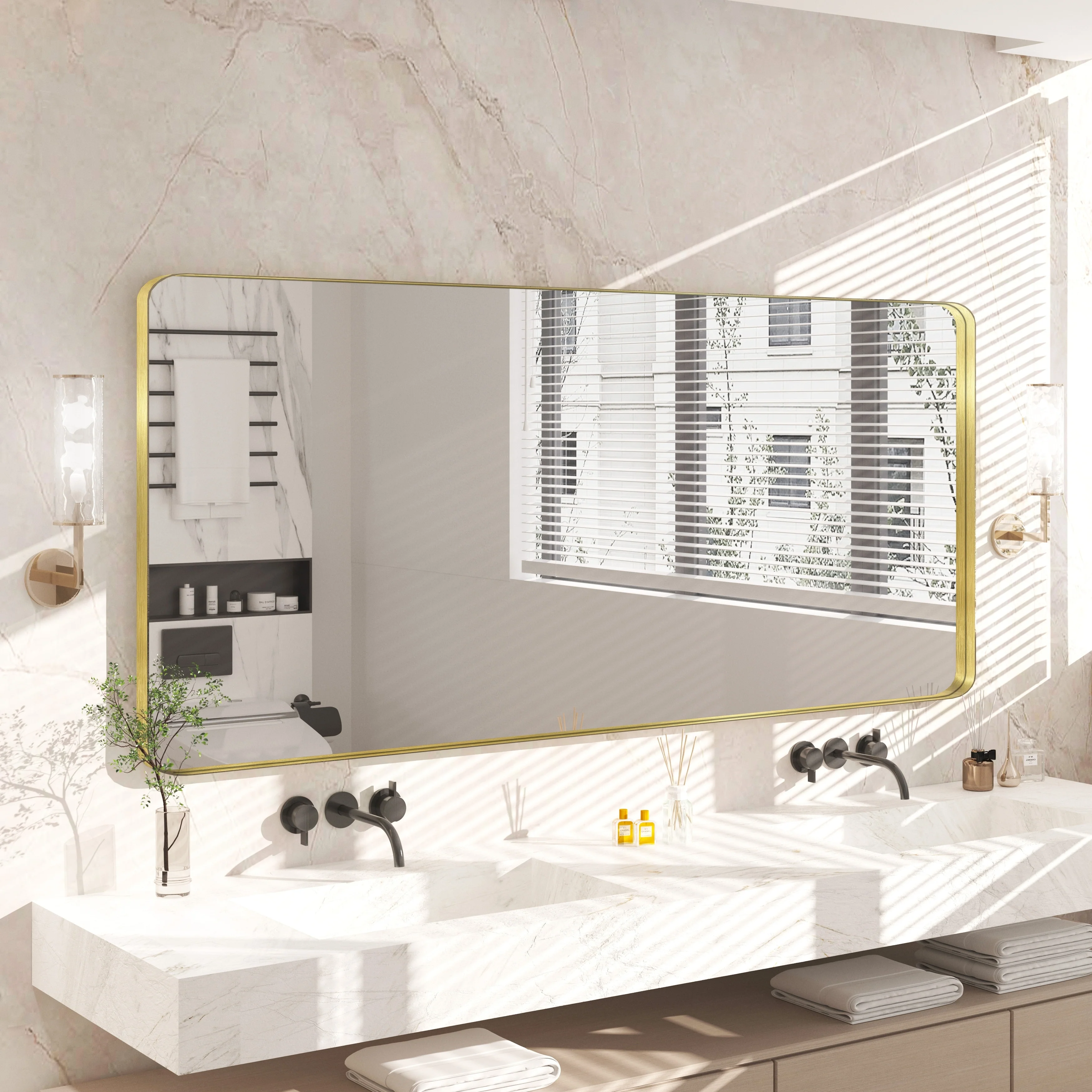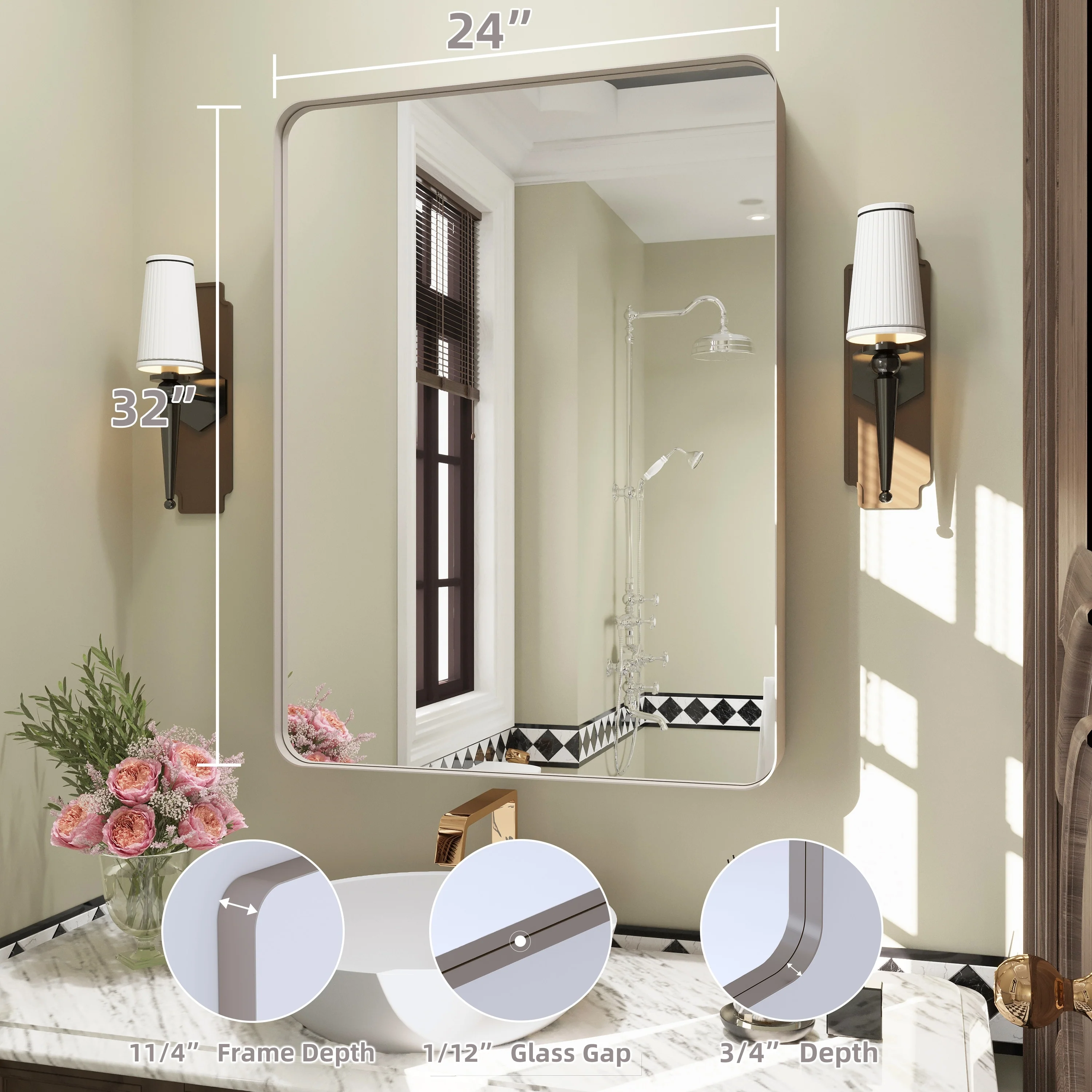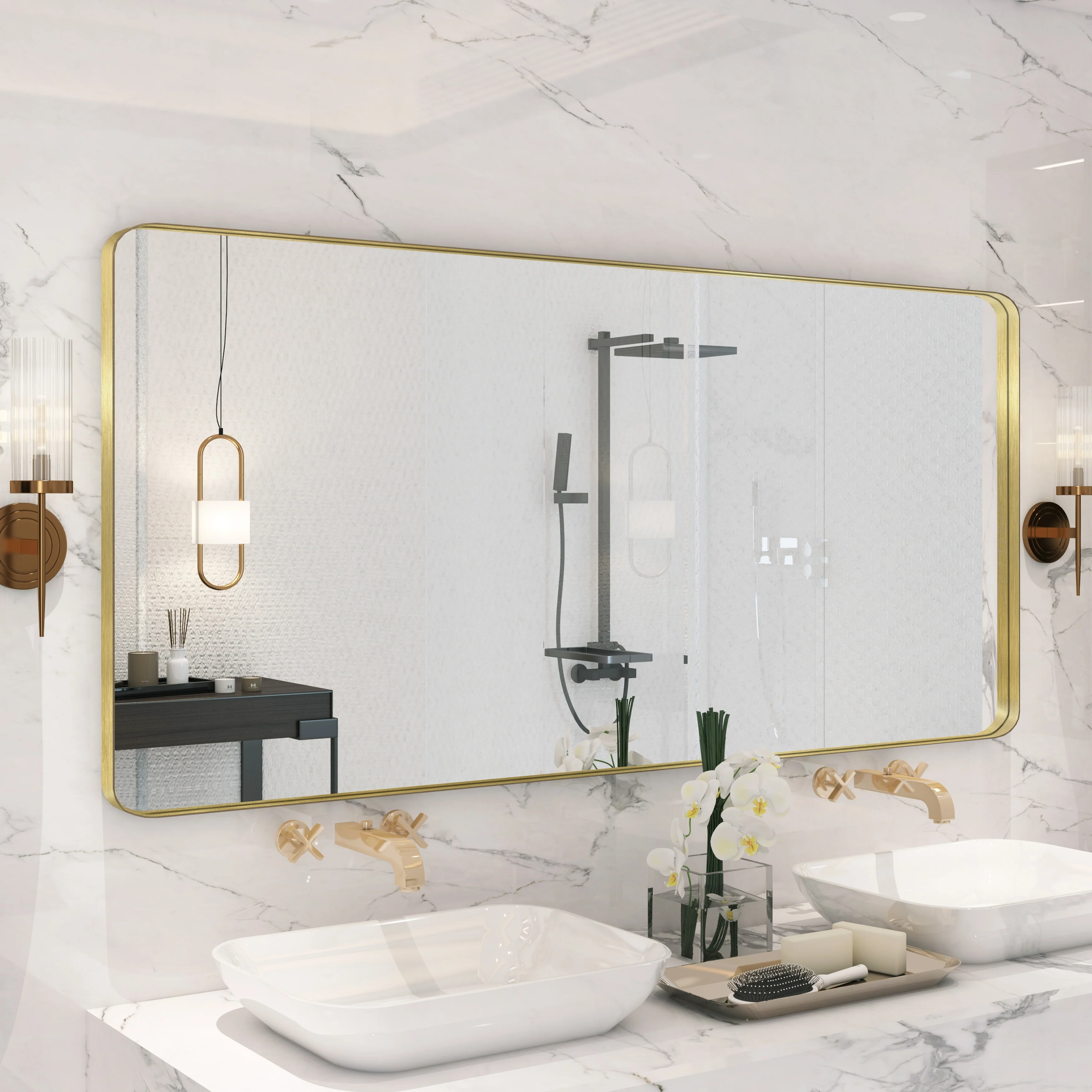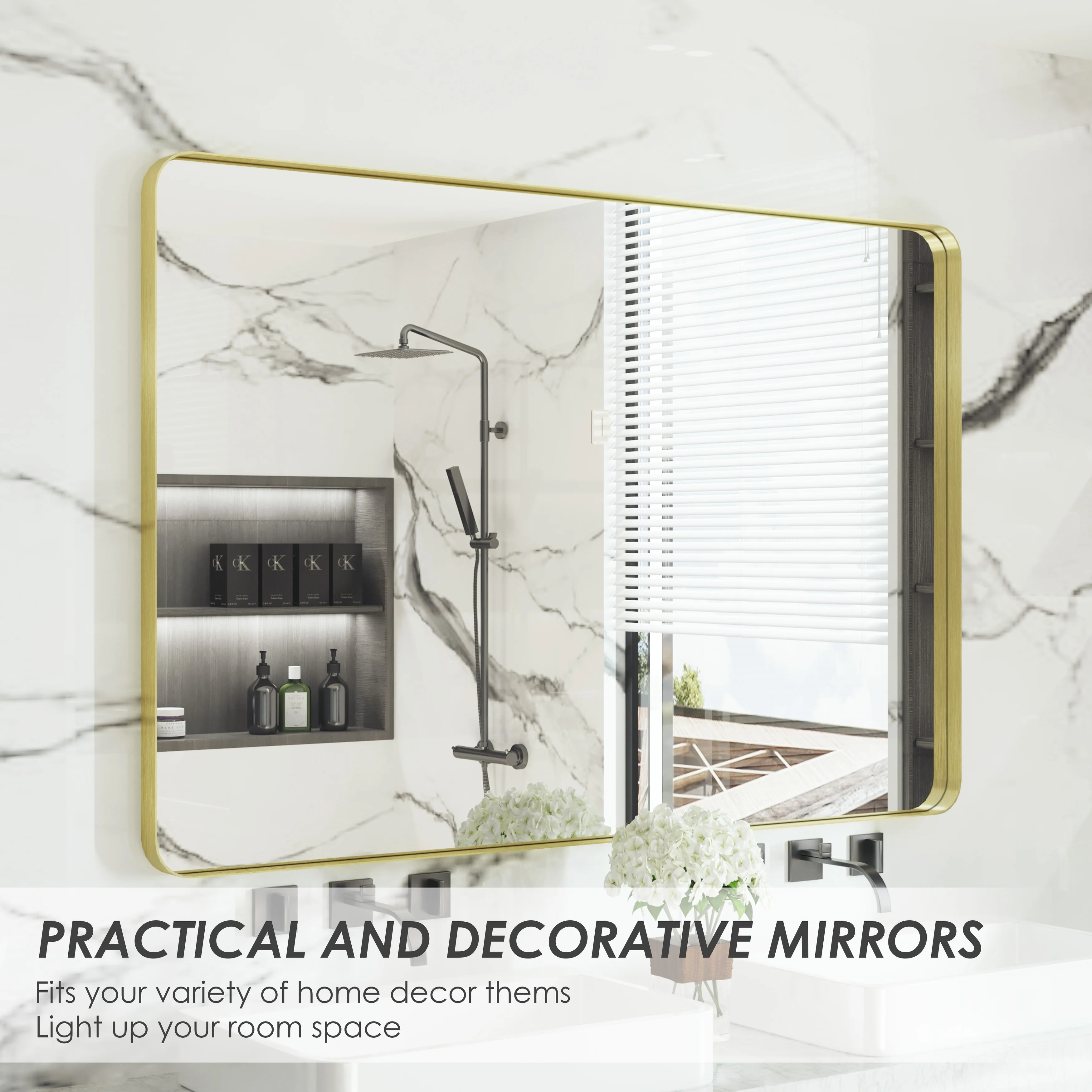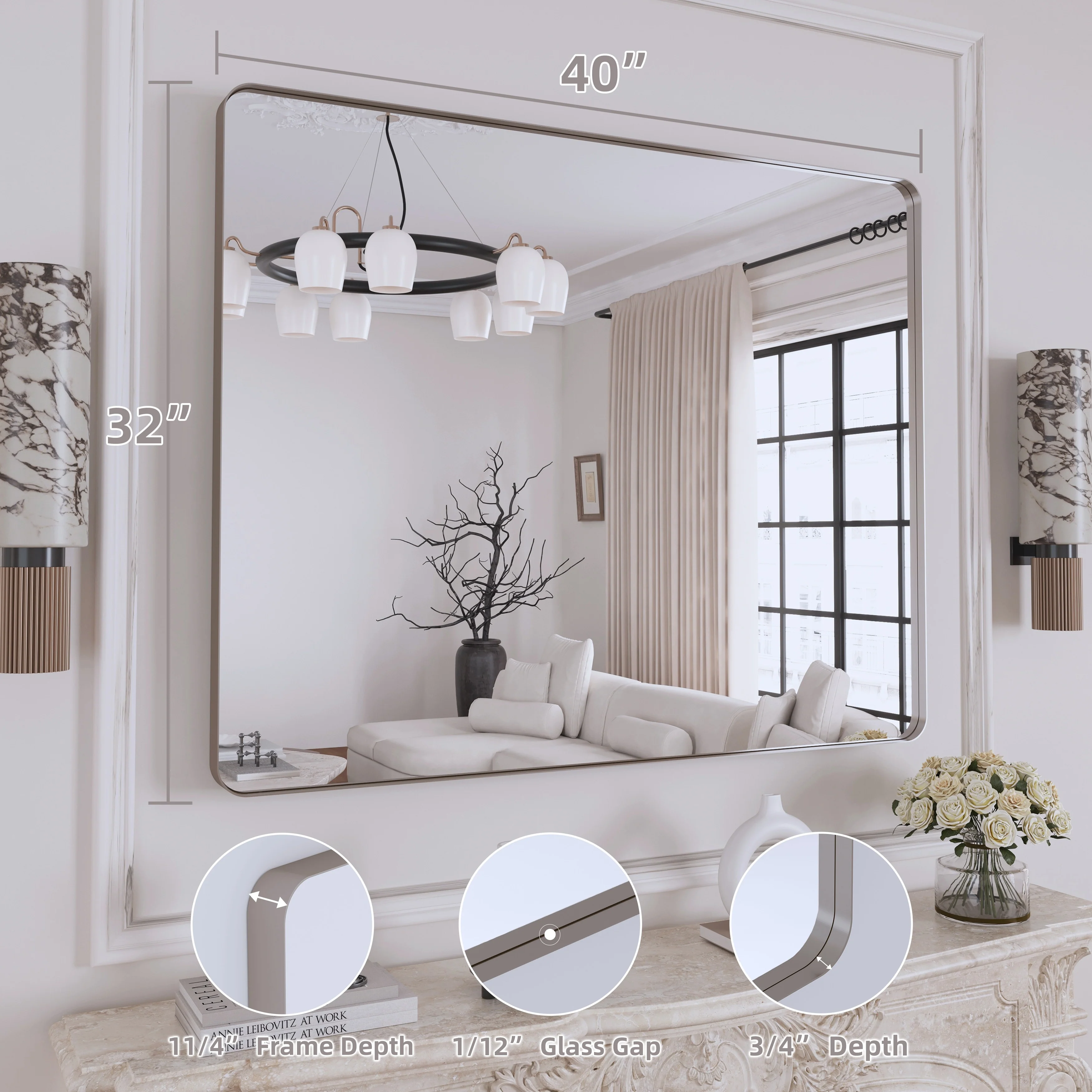QuivaraView premium Aluminum Alloy Framed mirror, with the premium aluminum frame, the whole mirror not too heavy, it is light but sturdy. mirror is made of HD glass, which is super clear and without distortion. It is designed in multiple sizes, highlight the beauty of space, suitable for different area such as entryway, bathroom, bedroom, living room, hotel and Salon .according to your space need, can be mounted by Vertically or Horizontally.