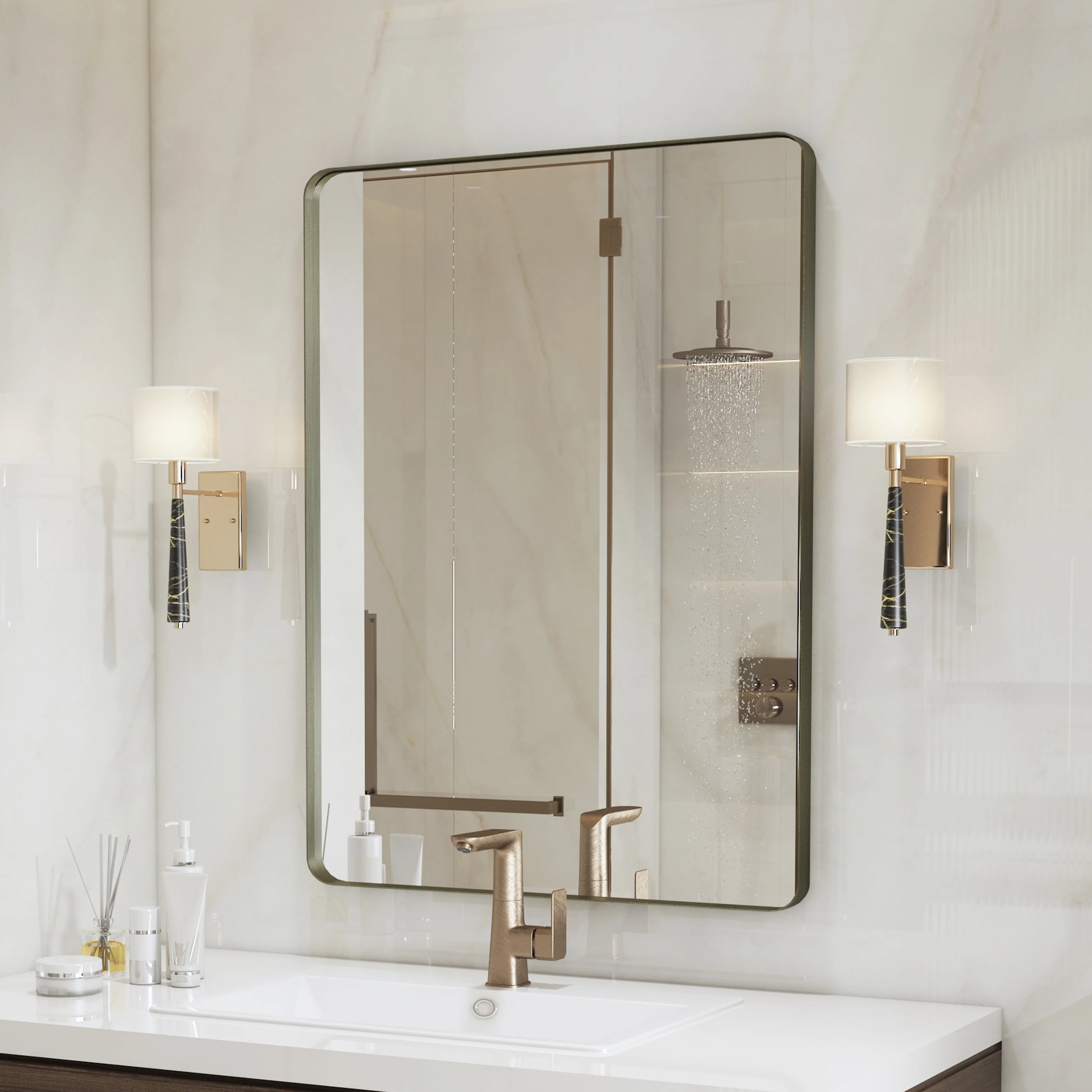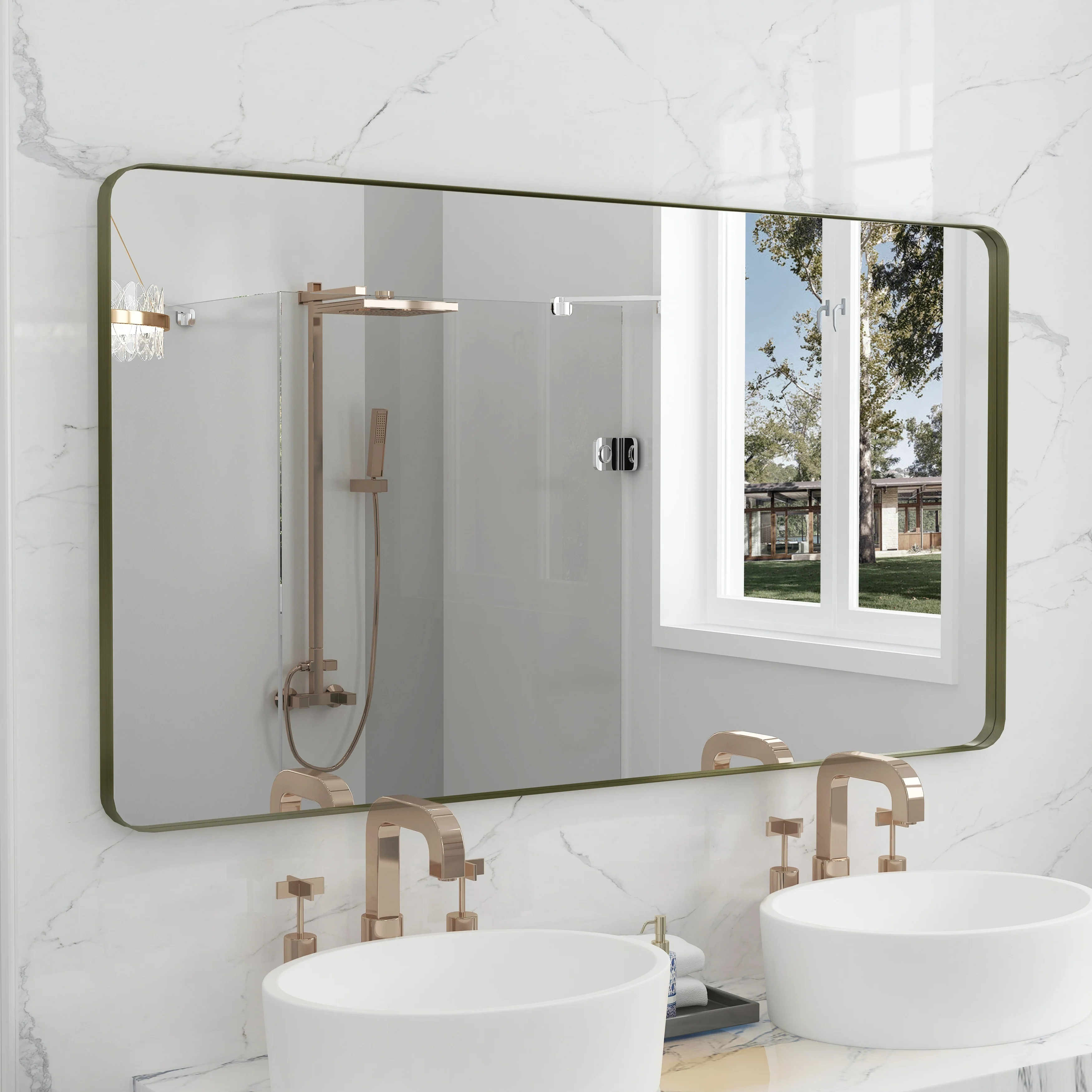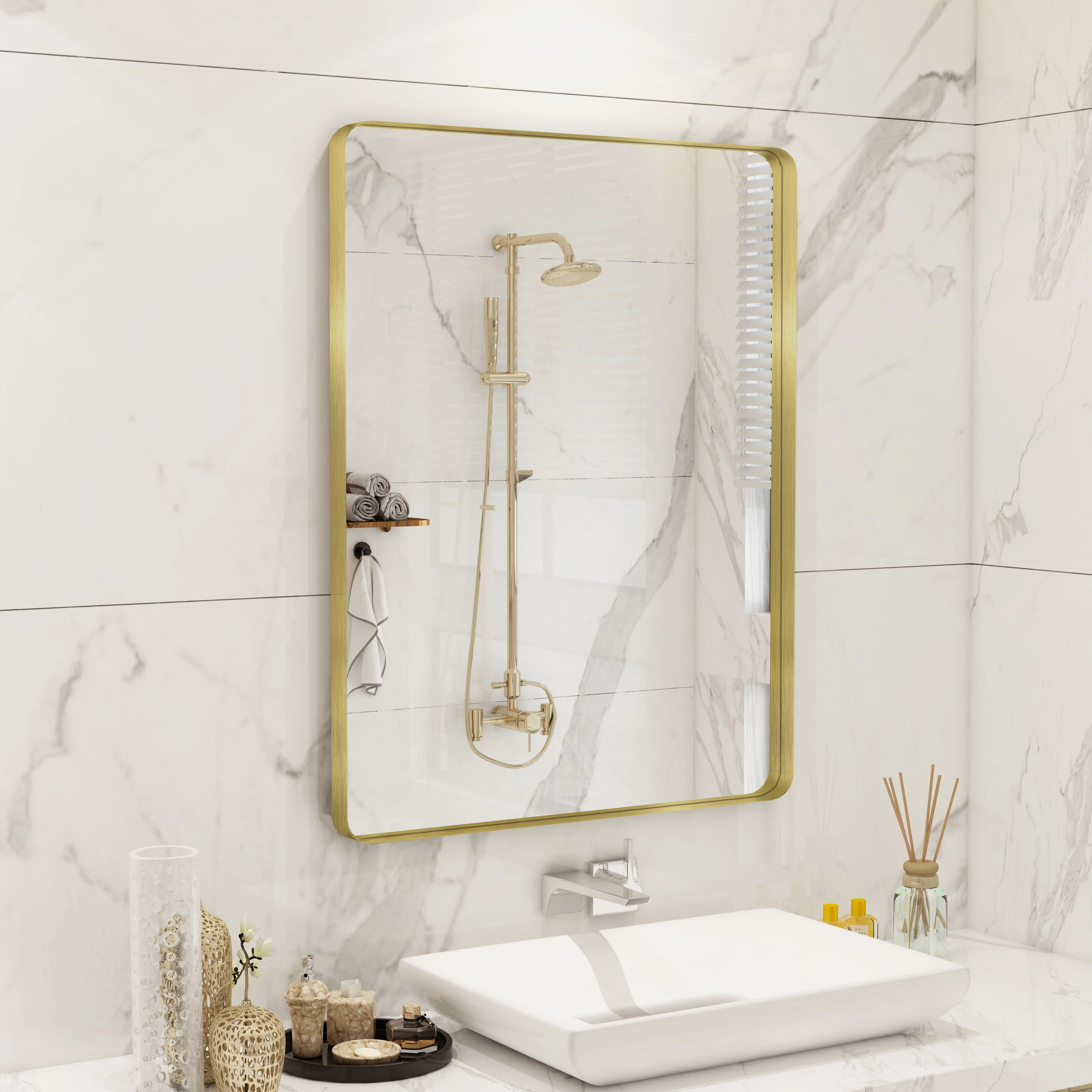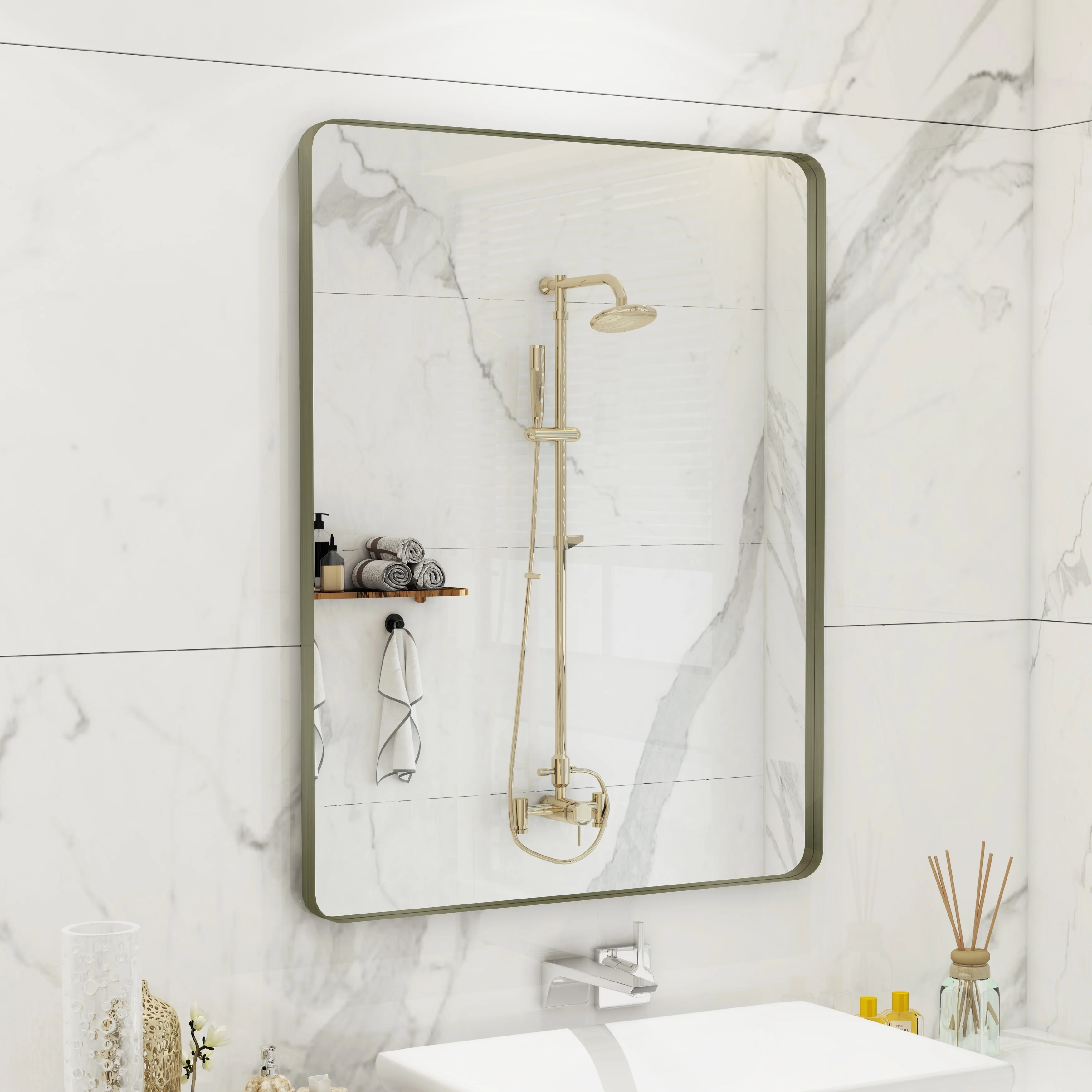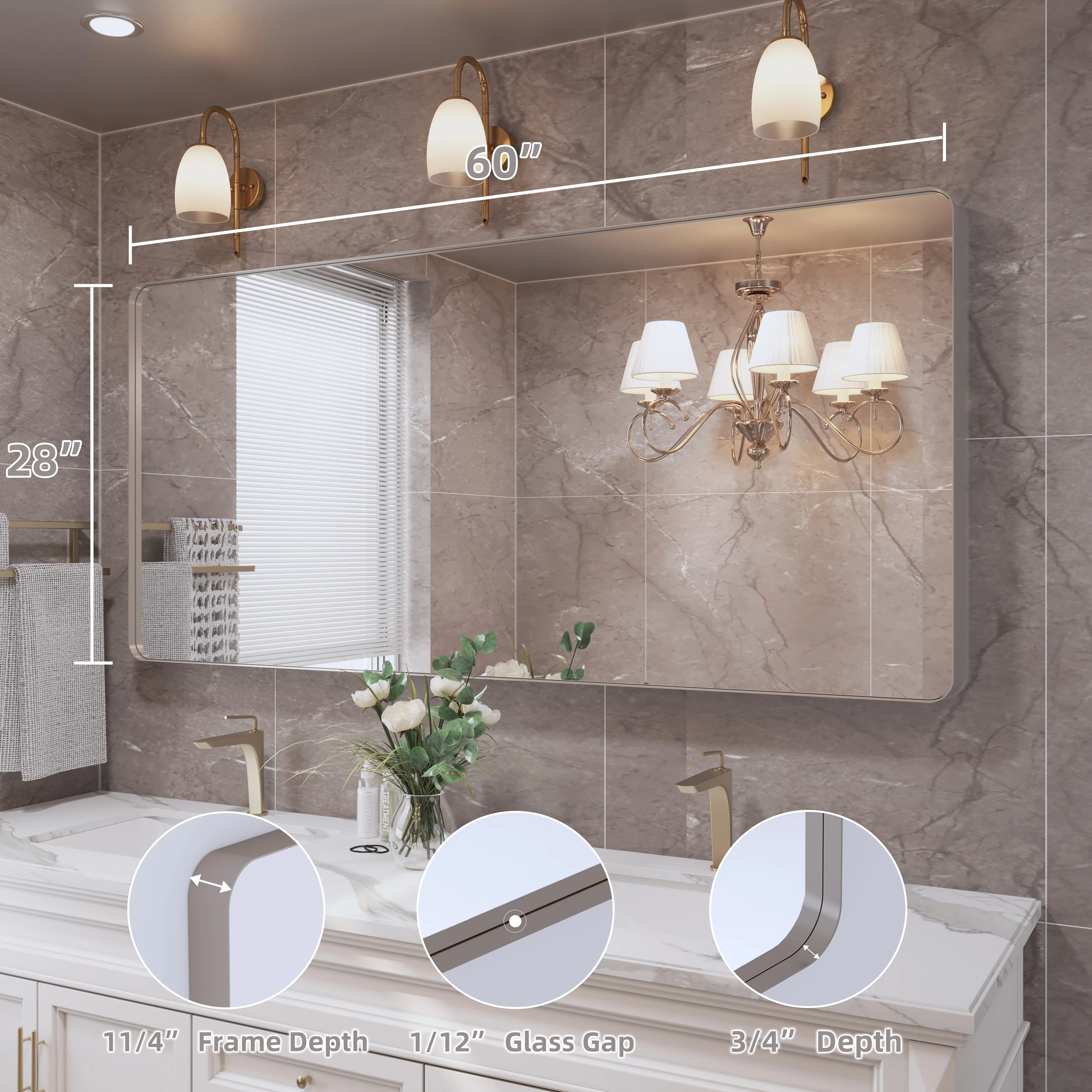 QuivaraView premium Aluminum Alloy Framed mirror, with the premium aluminum frame, the whole mirror not too heavy, it is light but sturdy. mirror is made of HD glass, which is super clear and without distortion. It is designed in multiple sizes, highlight the beauty of space, suitable for different area such as entryway, bathroom, bedroom, living room, hotel and Salon .according to your space need, can be mounted by Vertically or Horizontally.