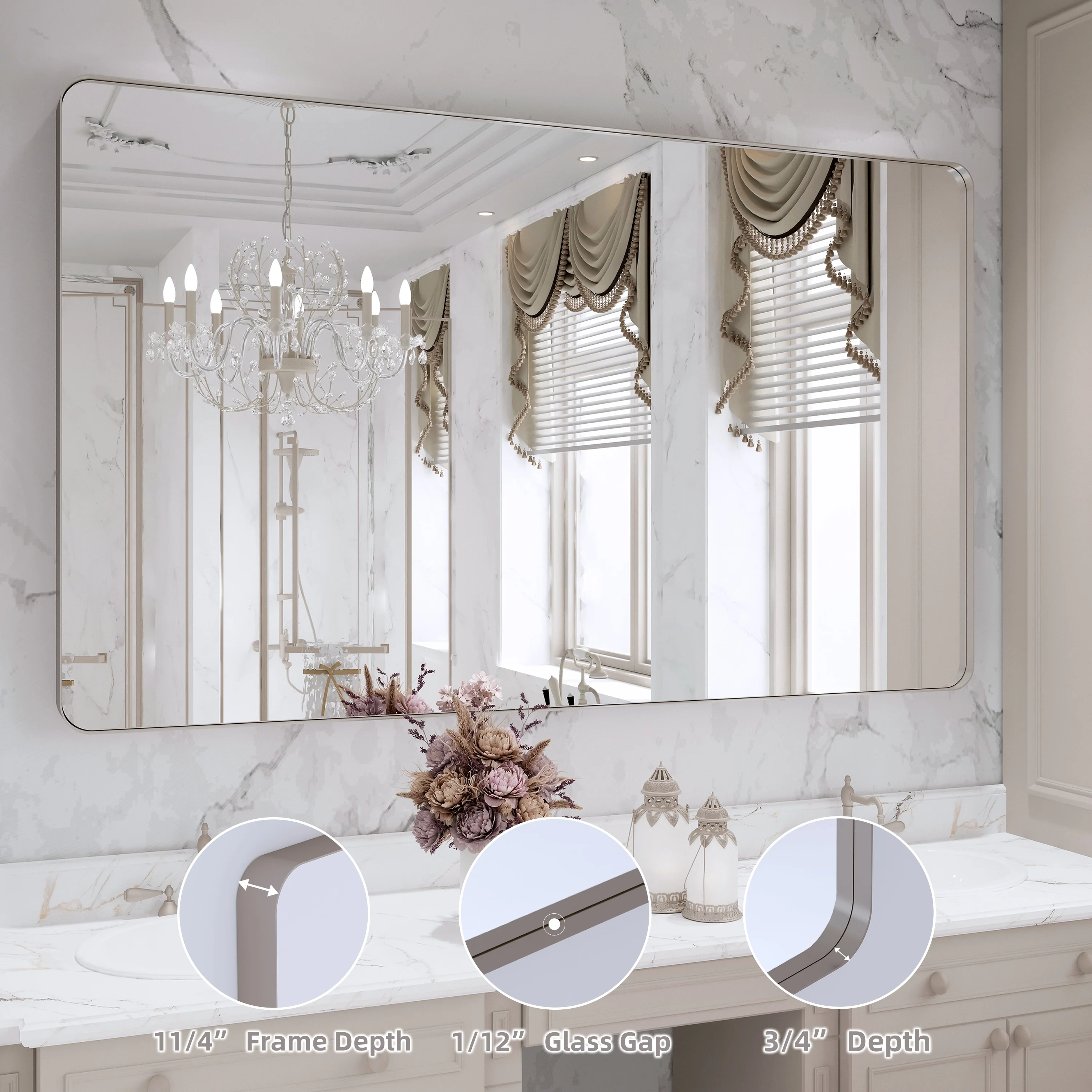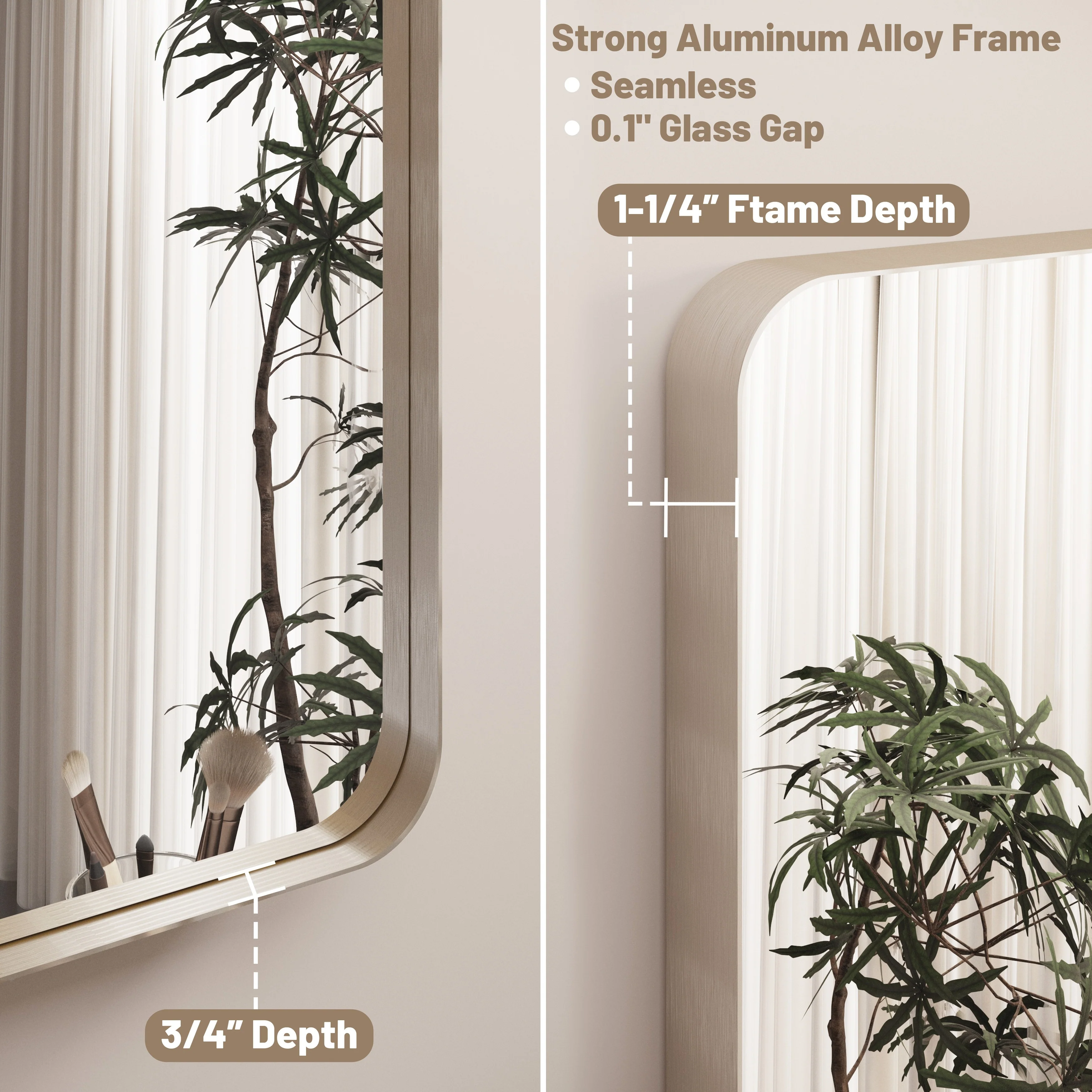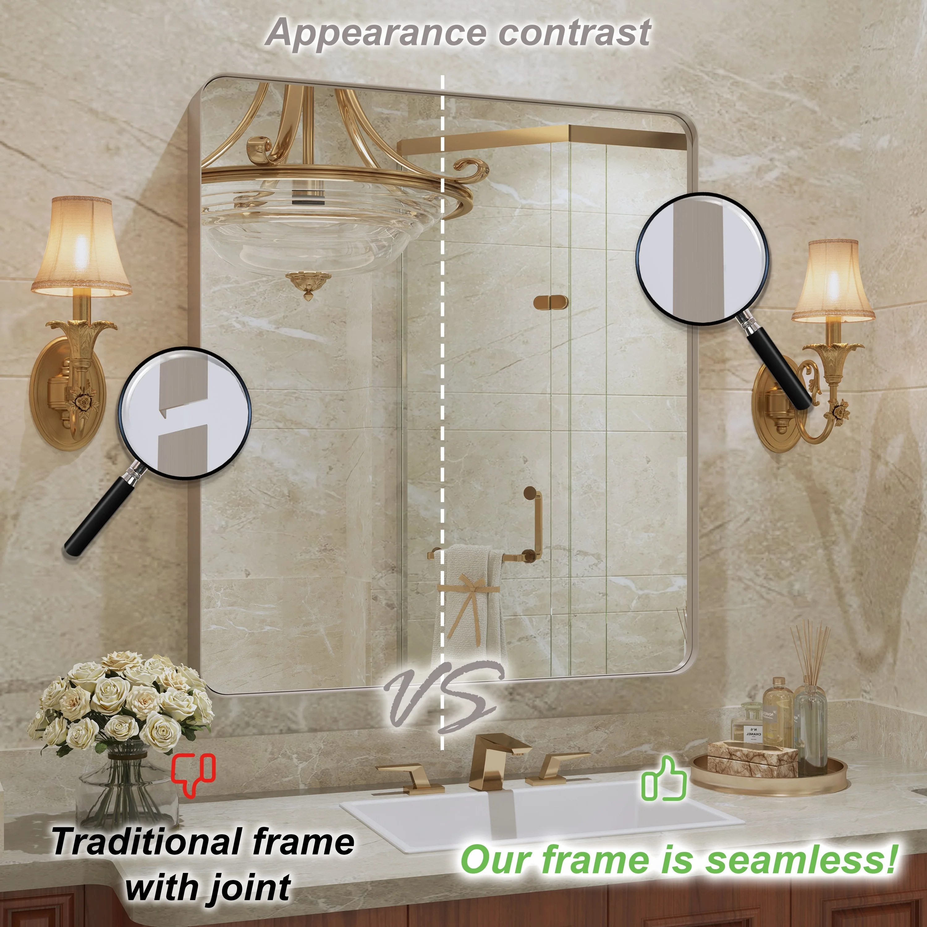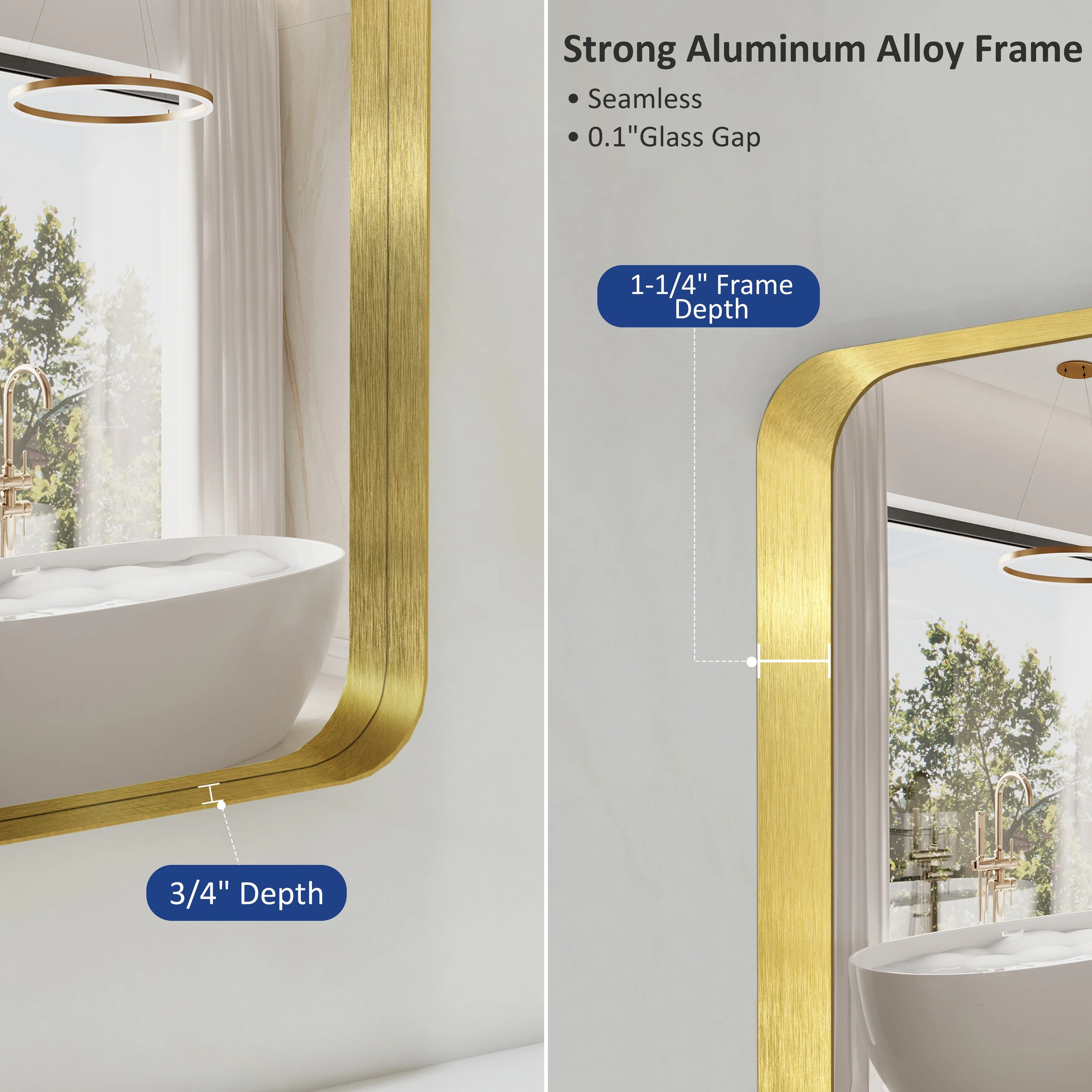 Seamless: the Frame is seamless. with this beautiful mirror, can upgrade your room to become more modern and beautiful.