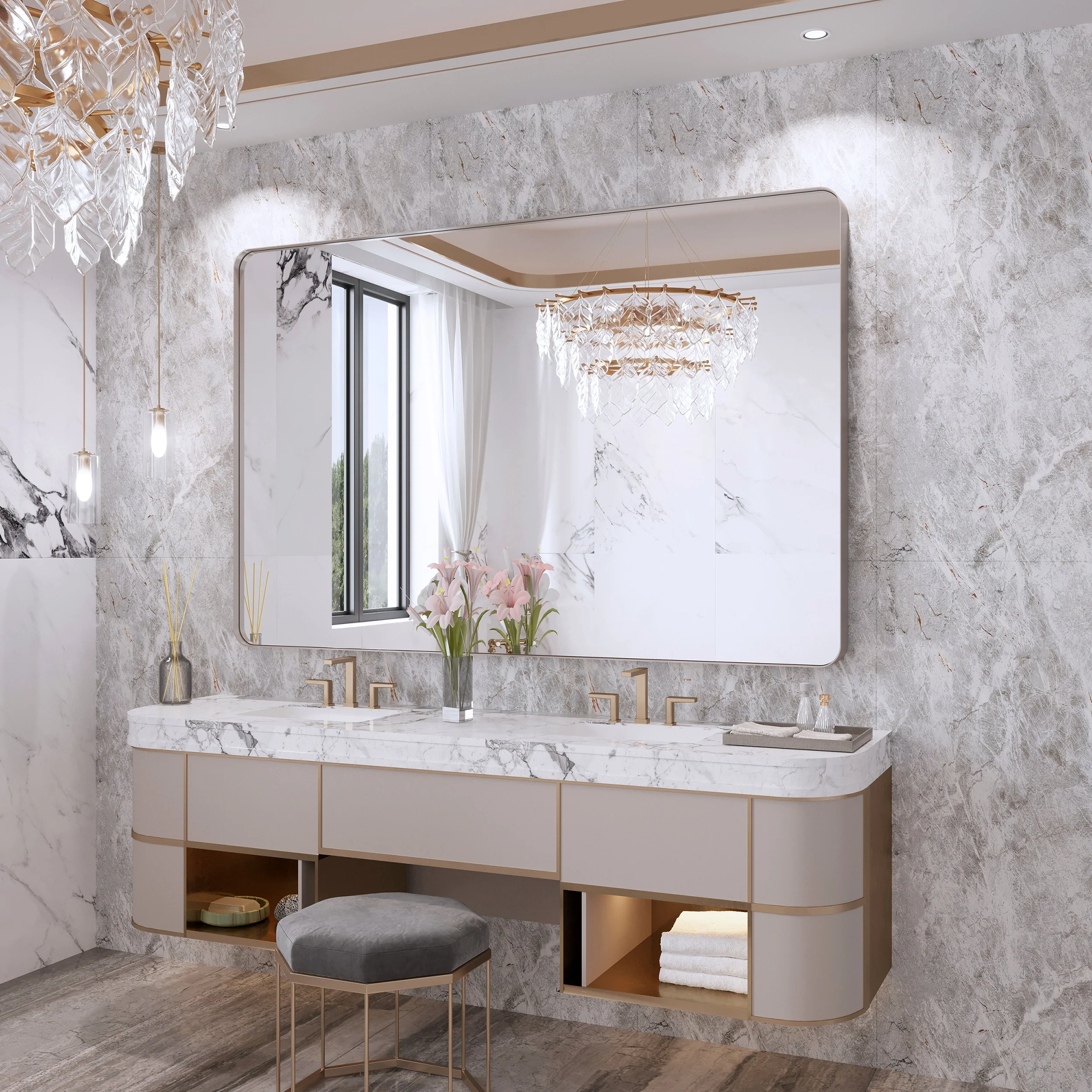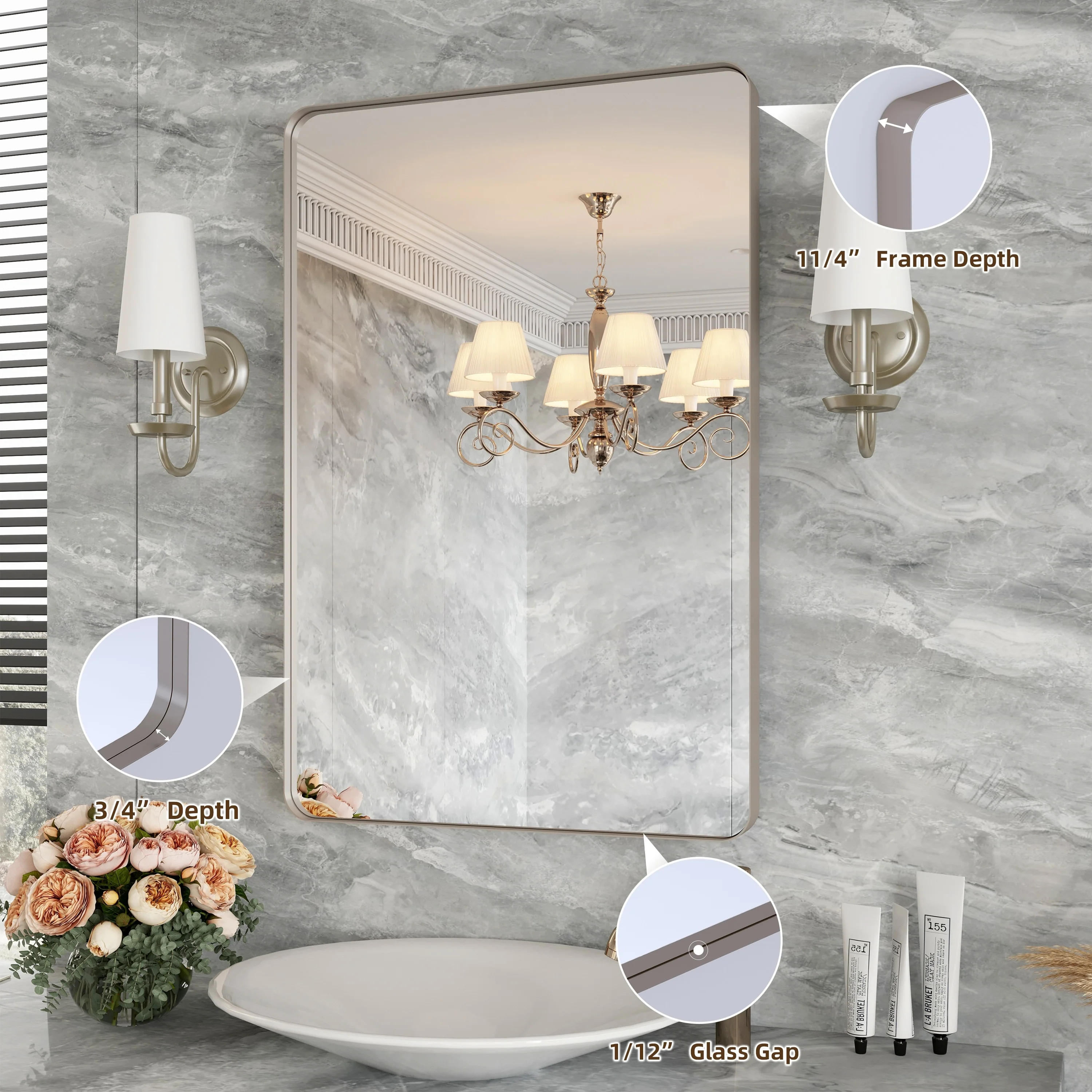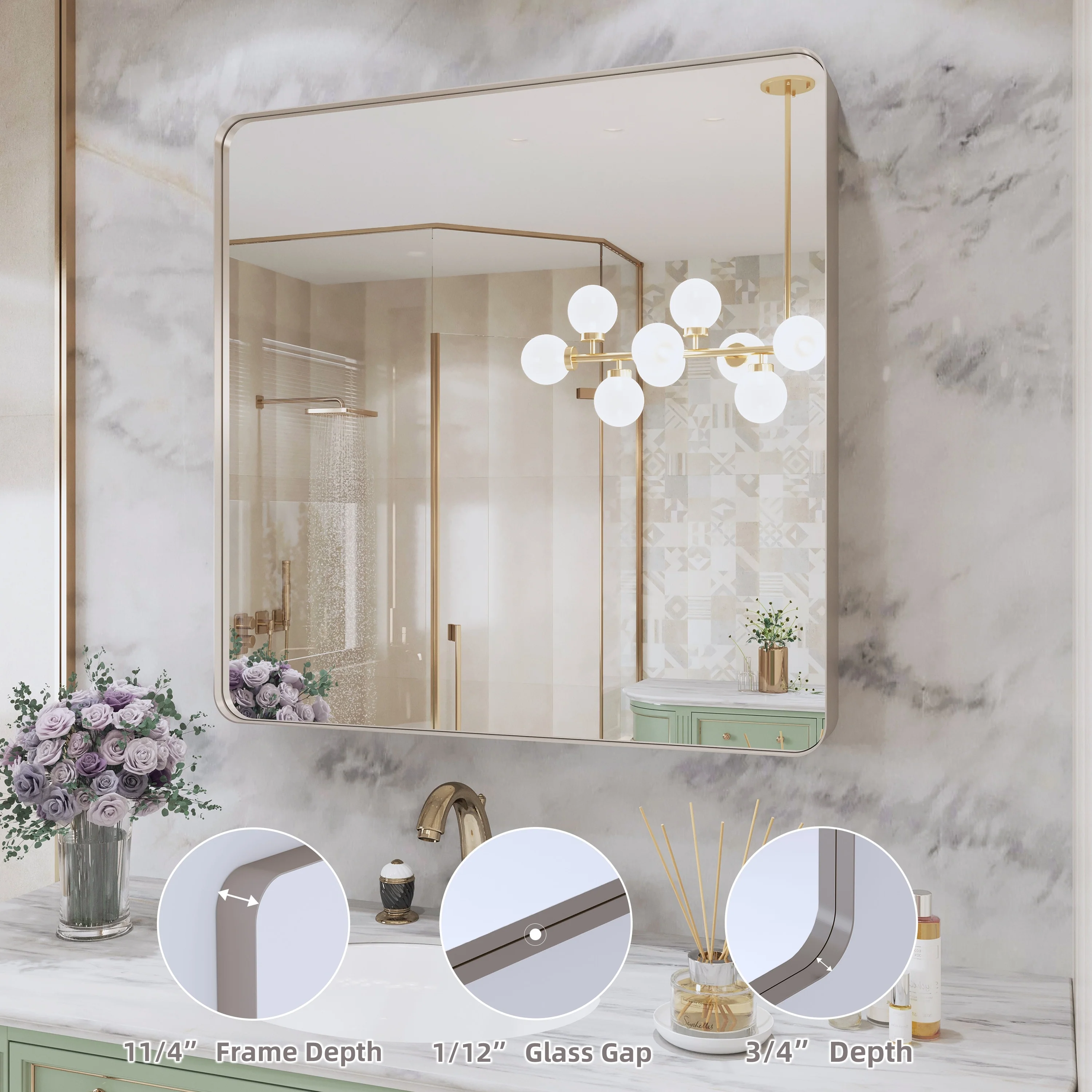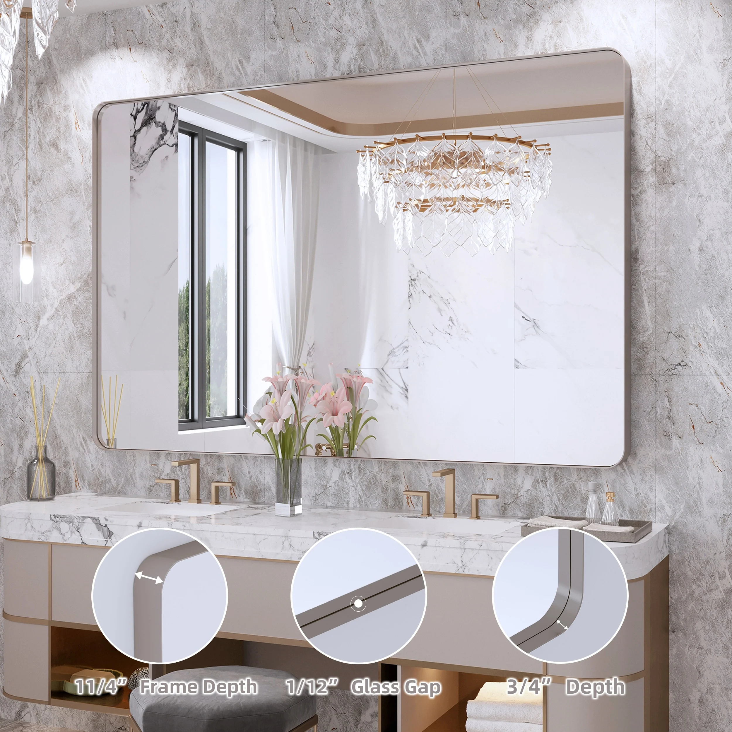 Seamless: the Frame is seamless. with this beautiful mirror, can upgrade your room to become more modern and beautiful.
