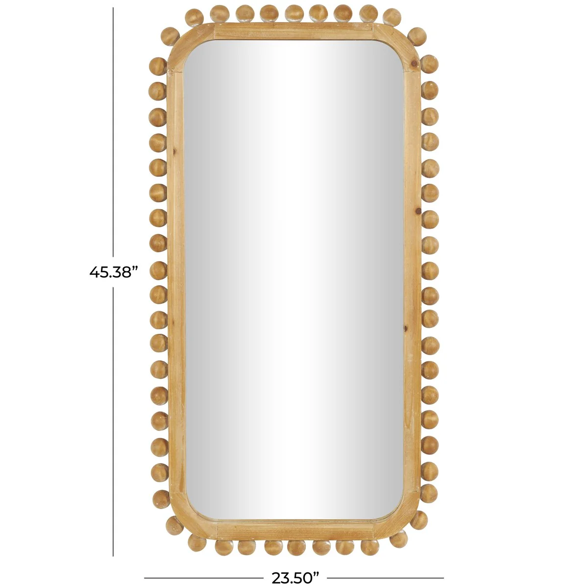 - Large round wood beads encircle the pine wall mirror, spaced out for an eye-catching look