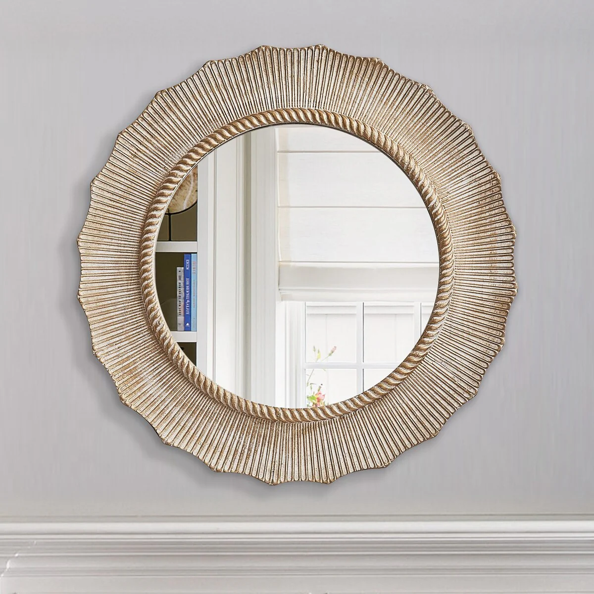 COZAYH Curved Scallop Wood Frame Accent Mirror