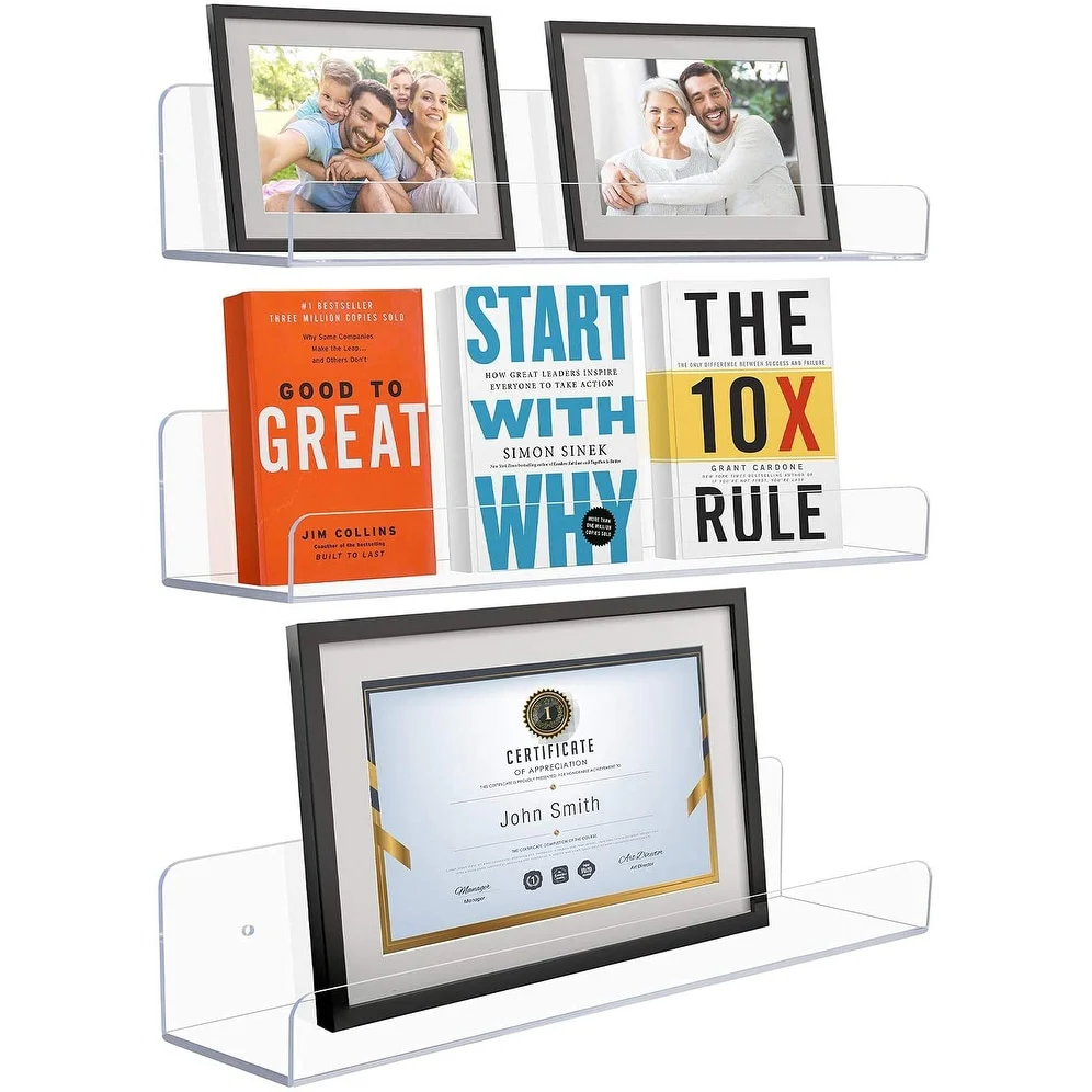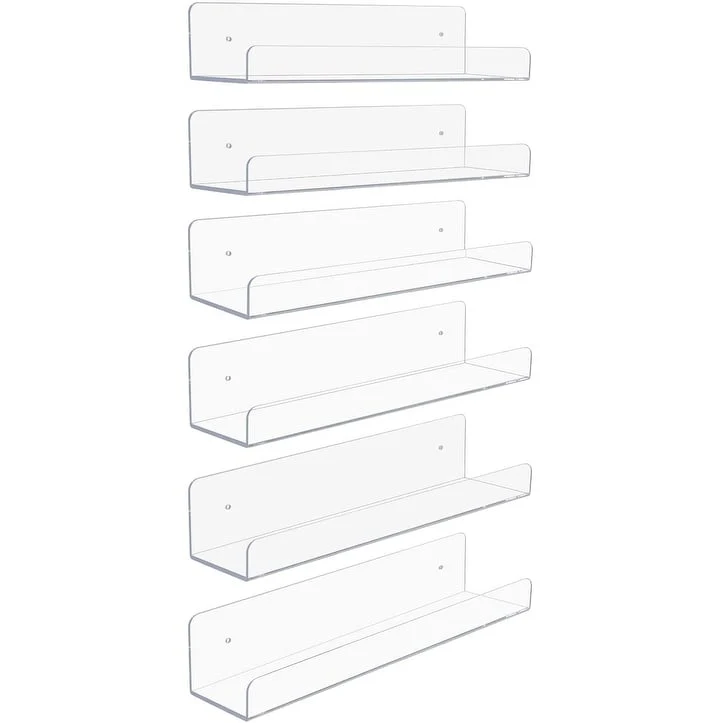 Curate an effortless wall display with the Sorbus Acrylic Floating Shelves. Whether for art, photos, or decorative objects, this ledge set is a simple solution for any room. It features a rectangular silhouette with a modern clear aesthetic. The minimal look fits most décor and can be installed virtually anywhere! Hang alone or pair with other styles from the Sorbus clear storage collection.