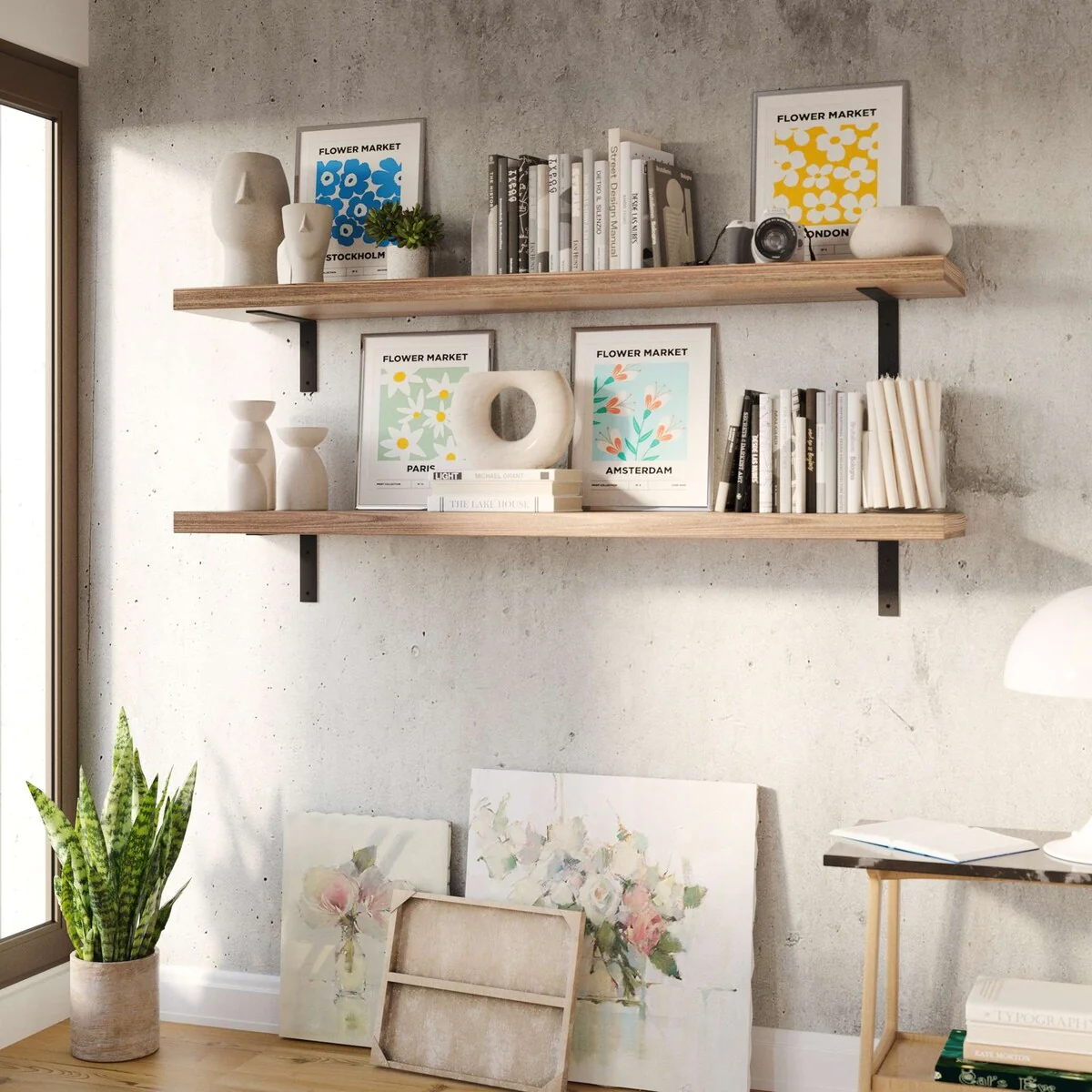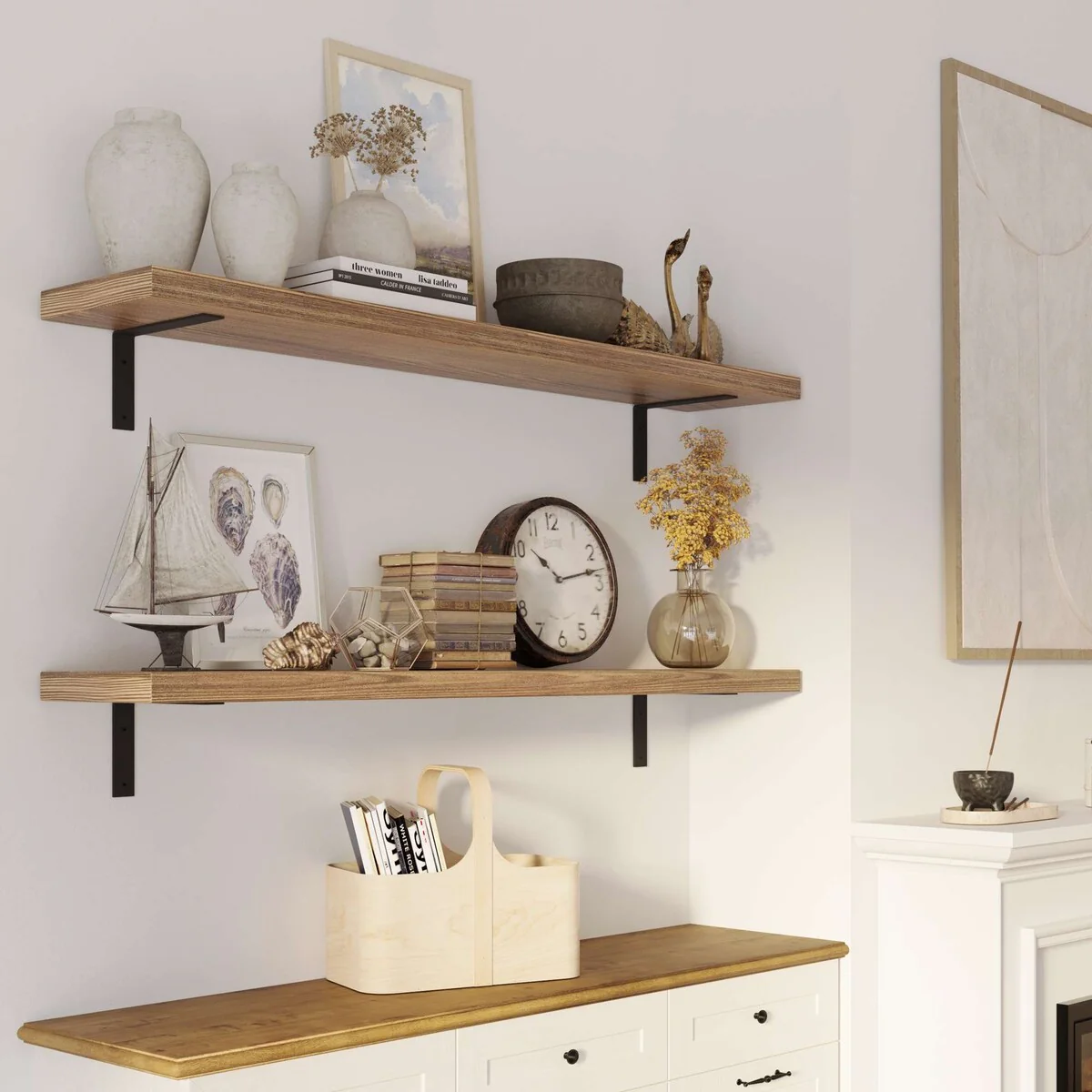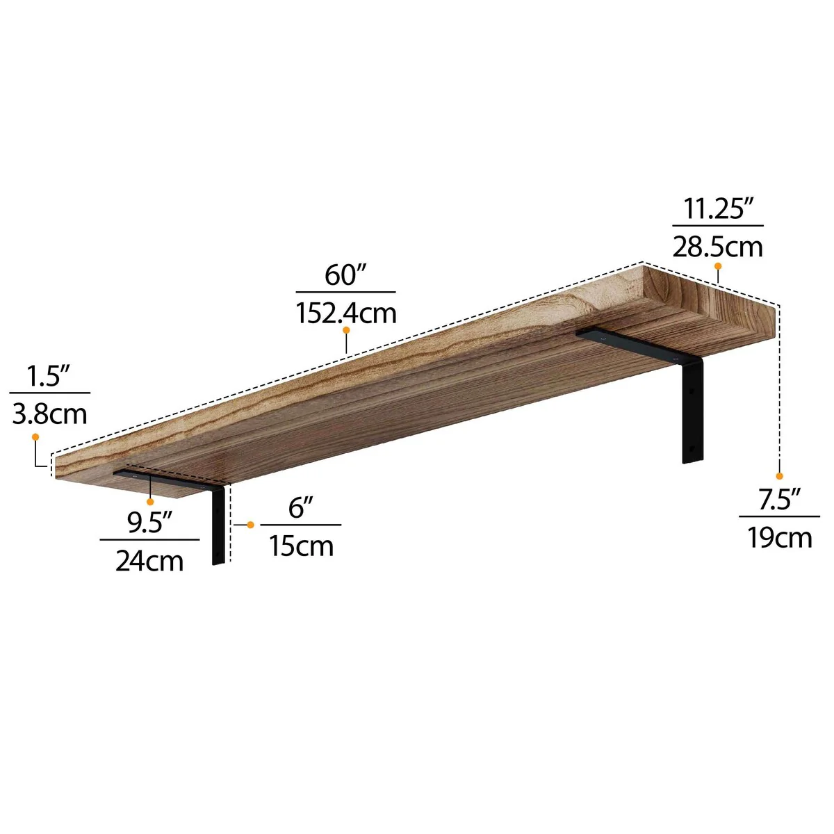 - Sturdy Construction: Wallniture 5 ft long wooden shelf unit is crafted from the high-quality durable wood board and metal shelf bracket. Budget-friendly paulownia wood shelves will last years to come.