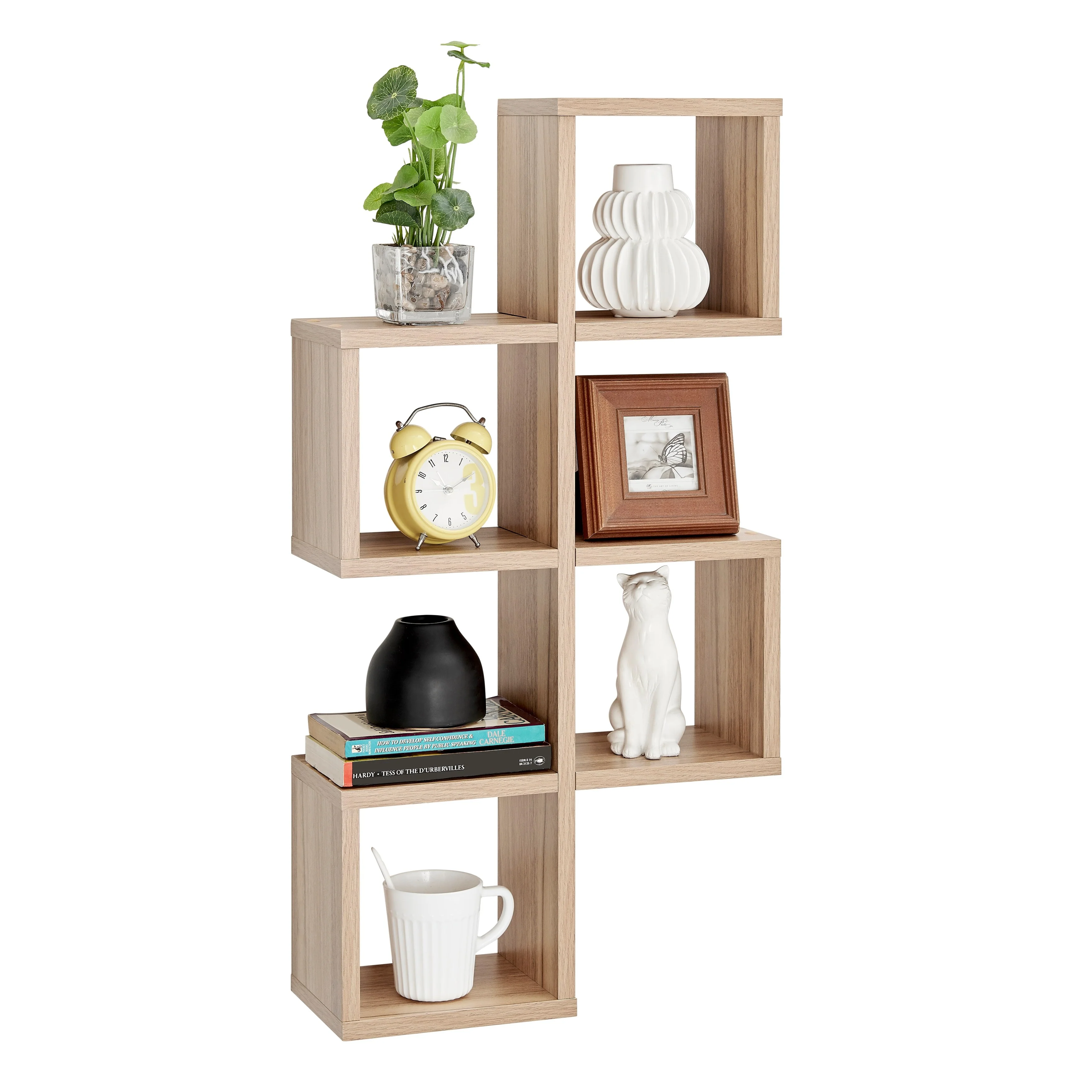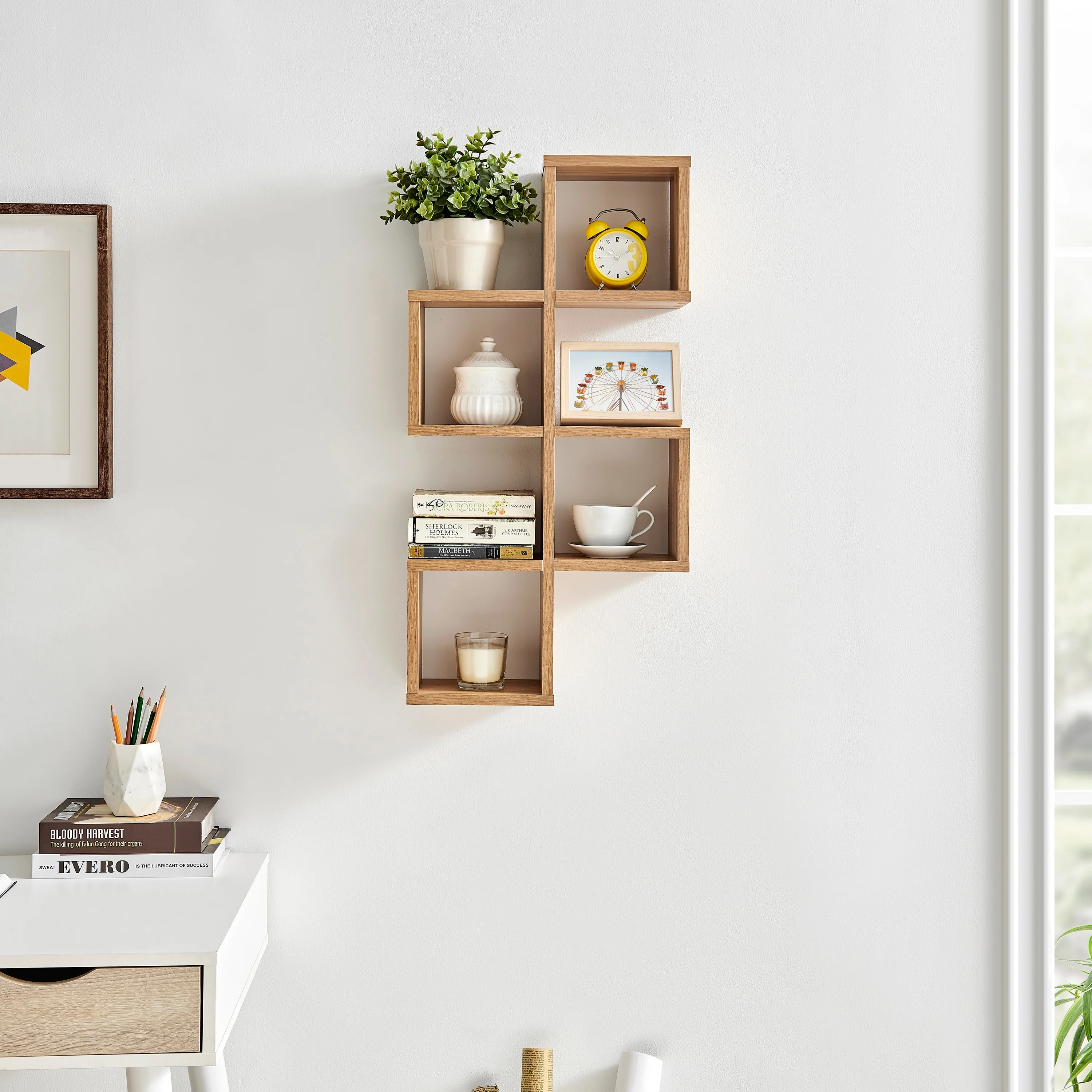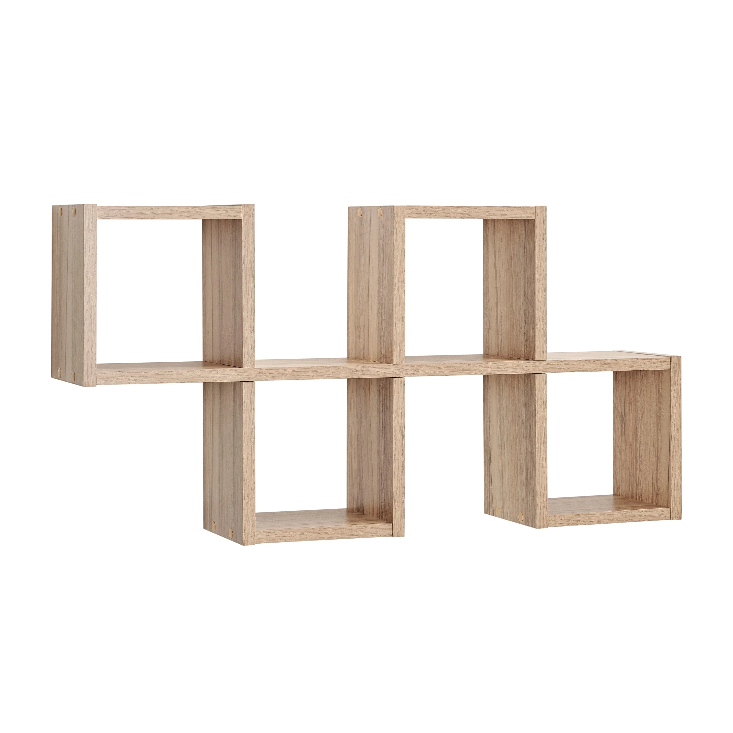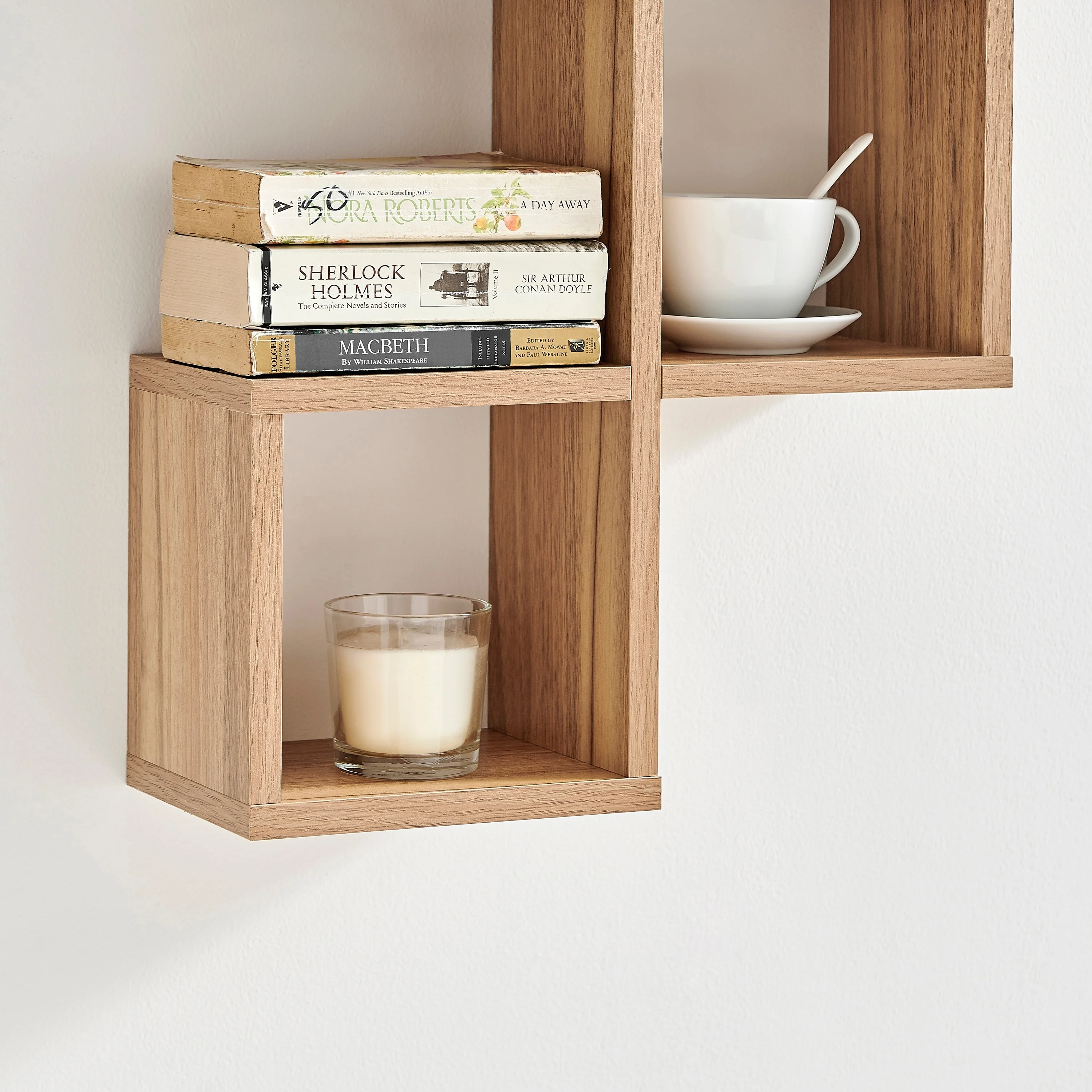 - Contemporary floating cube shelf design provides 4 storage cubbies plus 4 floating shelf surfaces to store and display your favorite items and décor