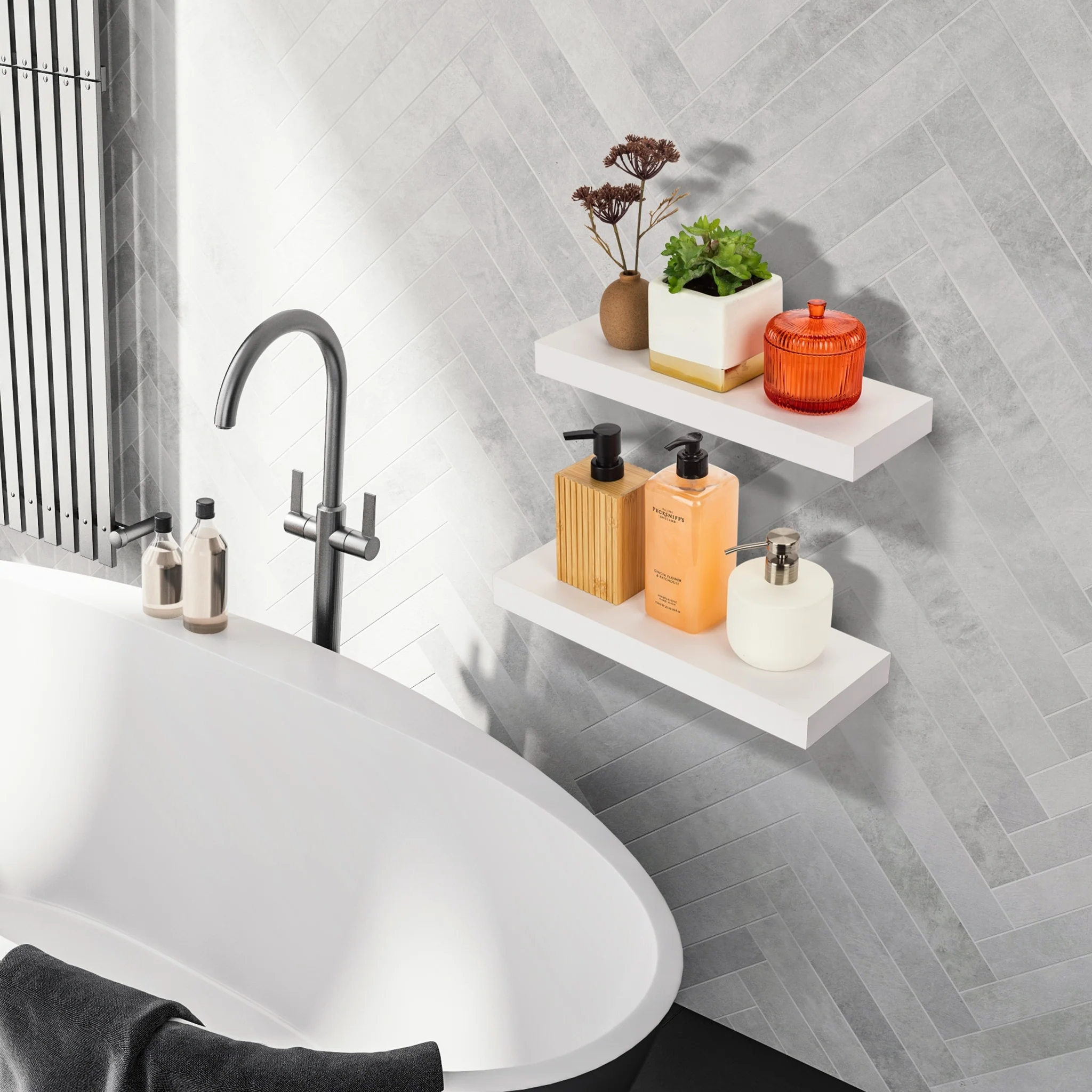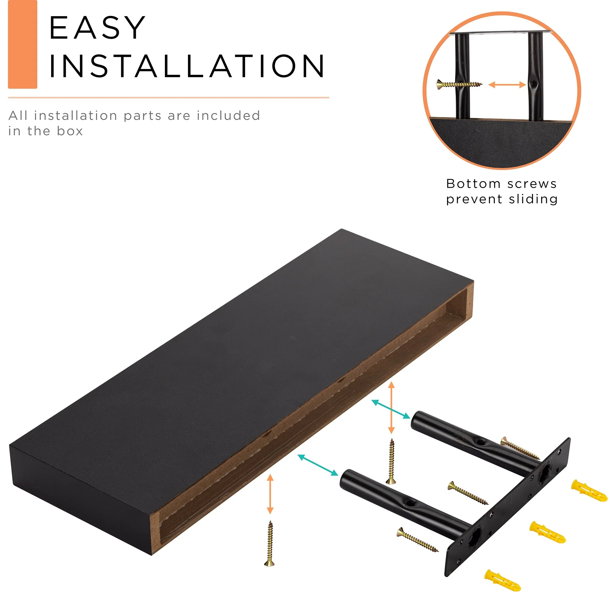 Take to the walls and turn your prized possessions into true conversation pieces! Hang this floating shelf in the laundry room for storage, in the living room over the fireplace, gallery style in a hallway, or to showcase collectibles in the home office. For a spa like retreat, use as a bathroom saver shelf to display small toiletries for overnight guests. Whether traditional or modern farmhouse, this floating wall shelf is suitable for any room around the home.
