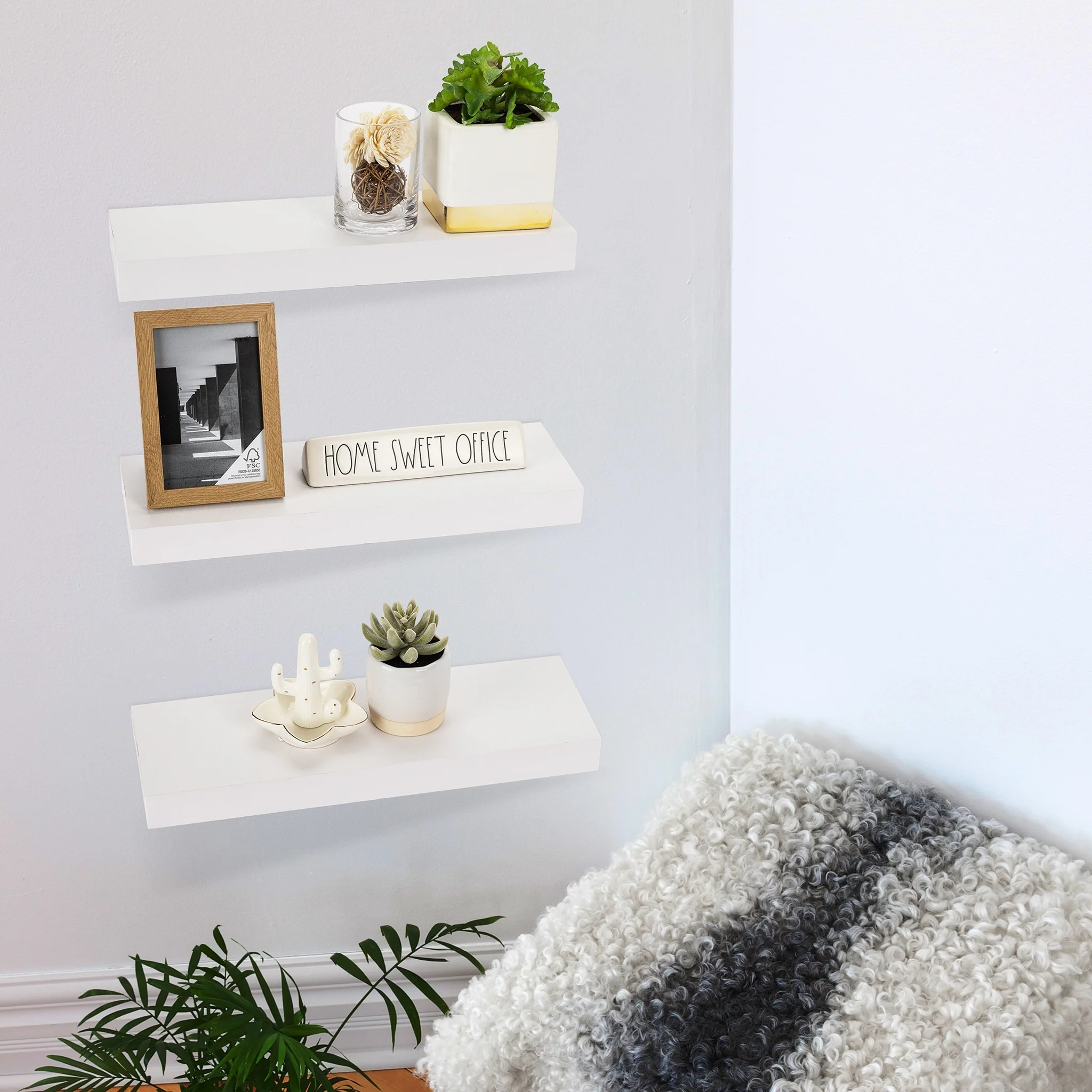 Whether for framed photos, succulents, or home décor, the Sorbus Floating Shelf Set is the perfect platform for storage and display. It features a rectangular silhouette with a wood finish for rustic appeal. The timeless look fits most décor and can be installed virtually anywhere! Fill empty wall space above a desk, between windows, and more. For versatility, pair with other styles from the Sorbus Floating Shelf Collection.