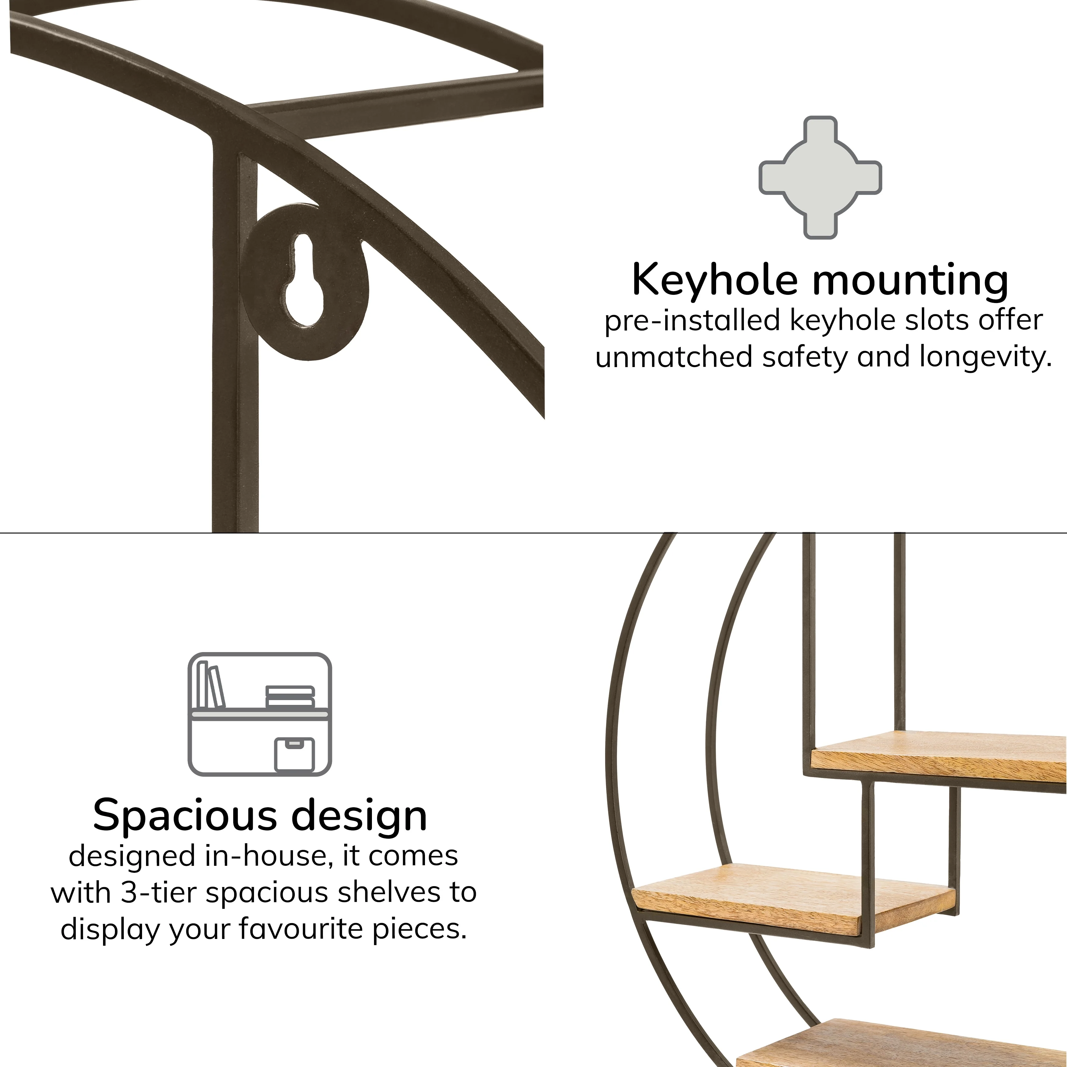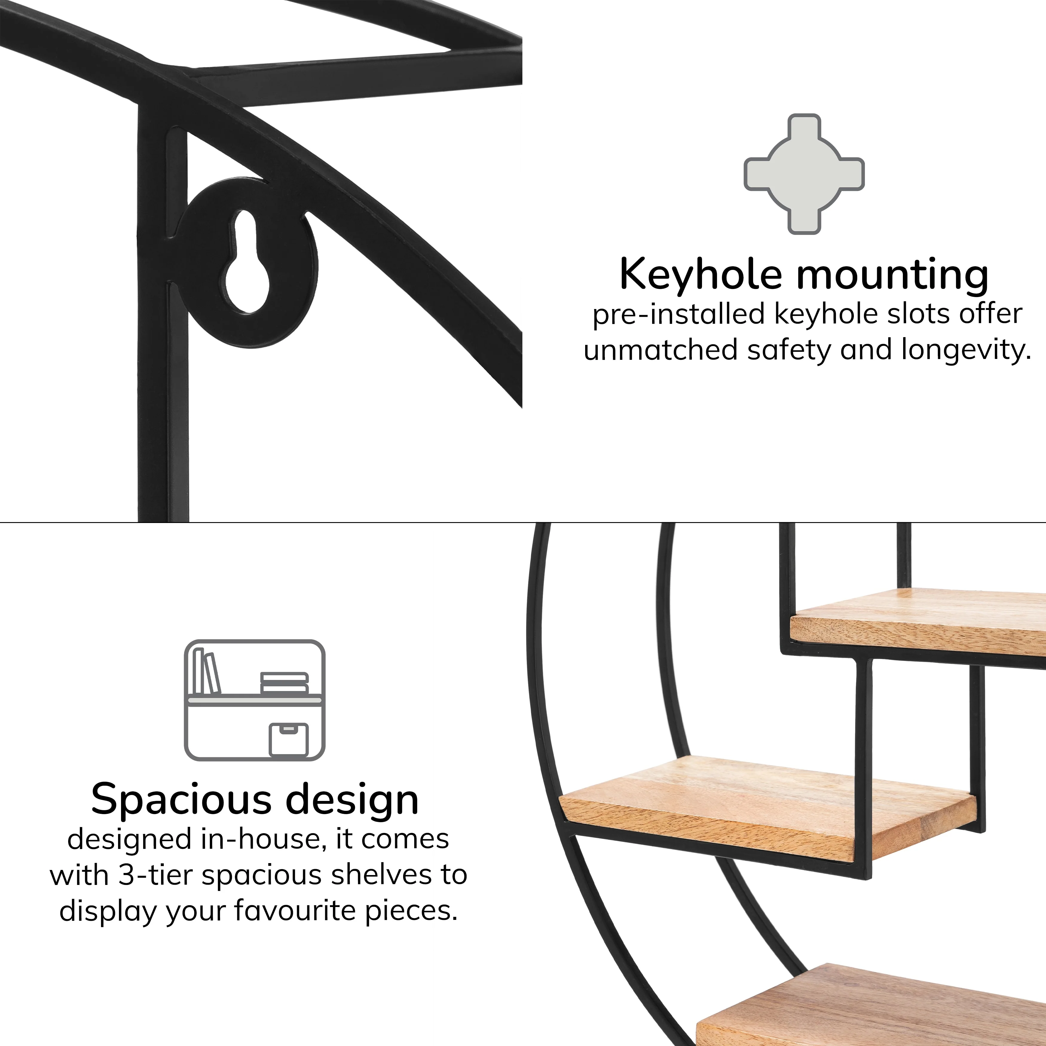 - Solid Mango Wood: Durable, kiln-dried Wooden Round Wall Shelves.