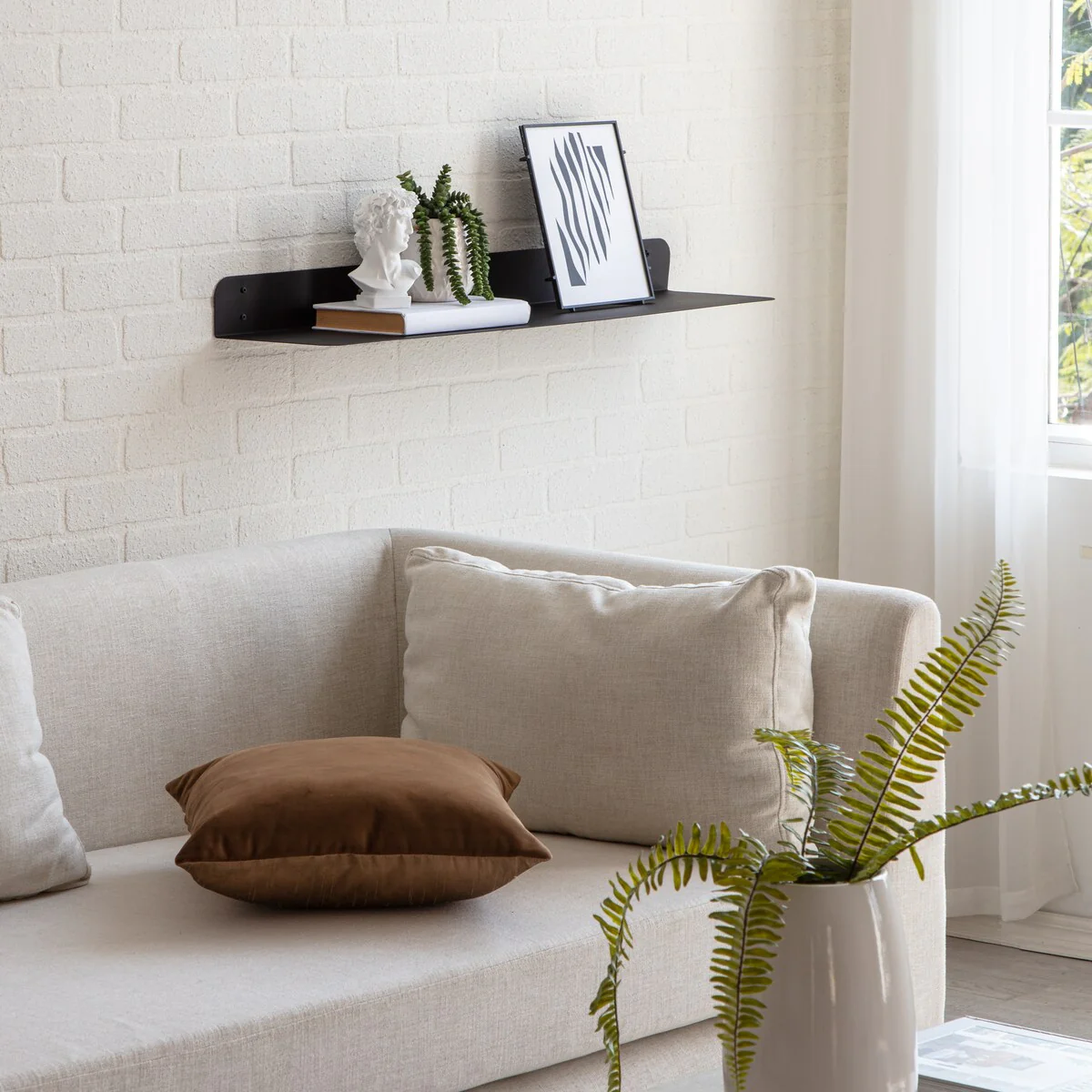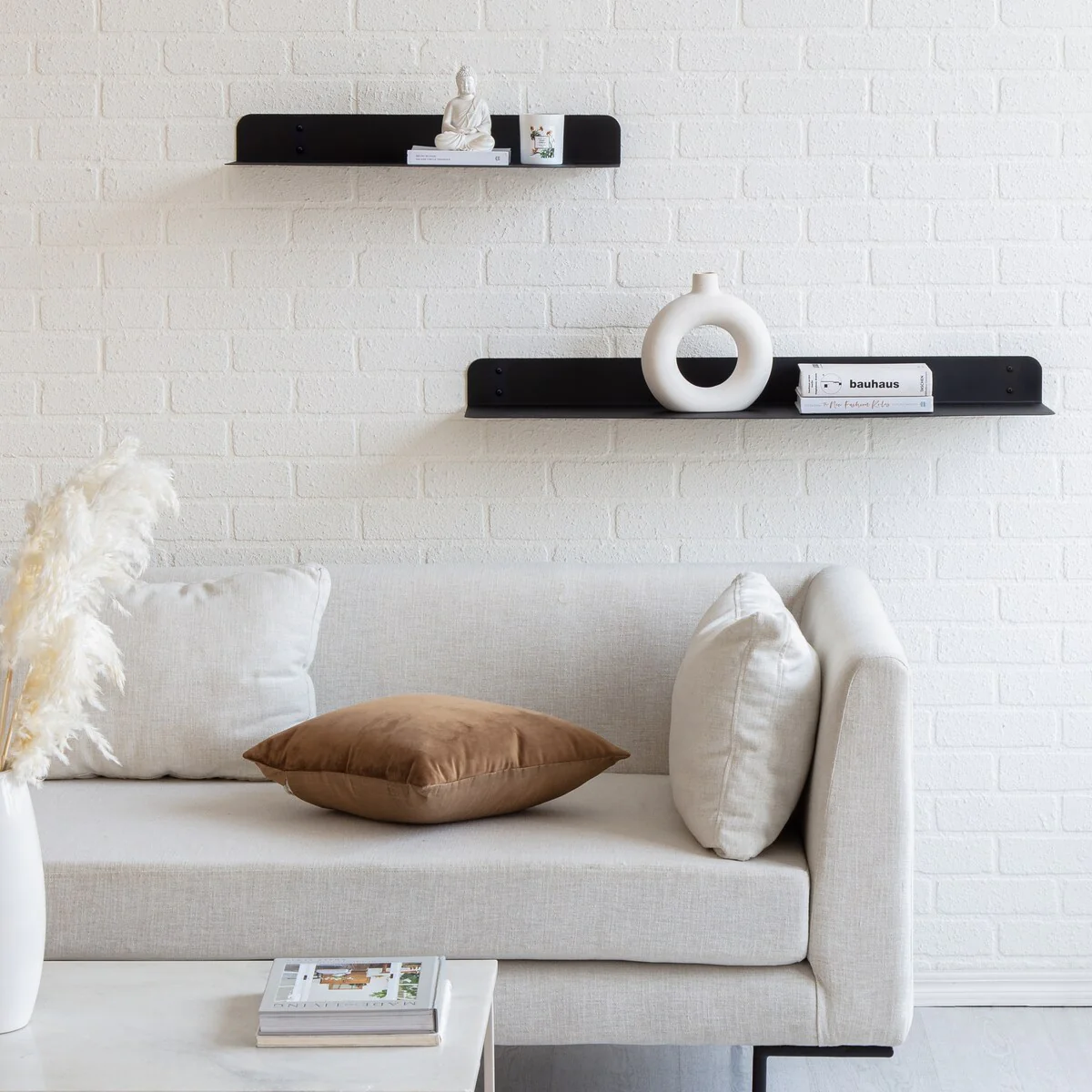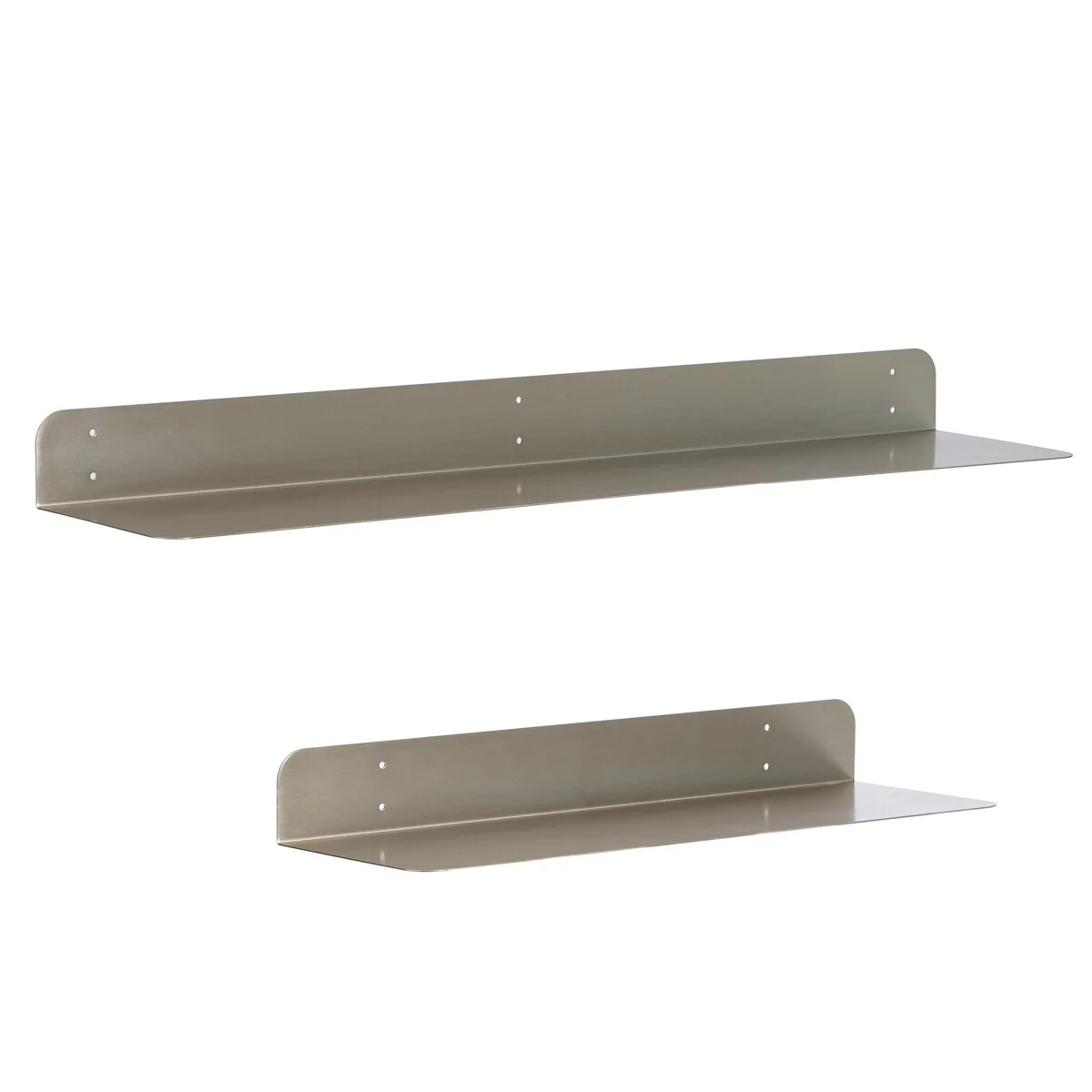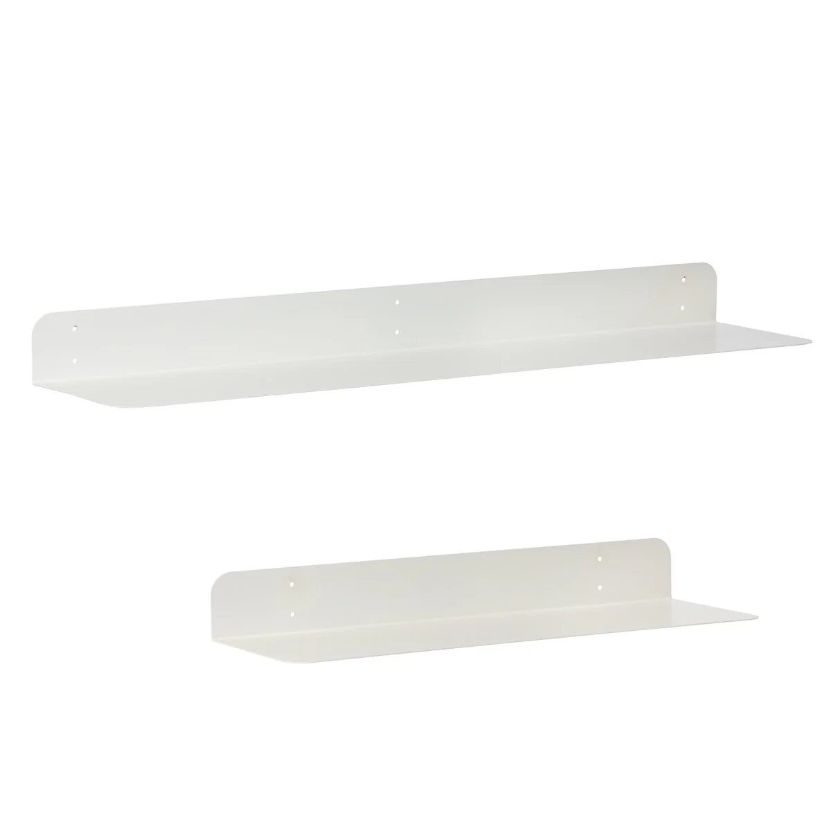 Maximize your wall space with these wall mounted metal shelves. These metal shelves are made of 1.5 mm thick steel with powder coating finish. These shelves have rounded corner for aesthetic, elegant look, and safety. These metal shelves are available in two sizes 24 inches and 36 inches length, as well as a set. Powder coated finish in four beautiful colors: Antique Brass, Textured Black, Brushed Nickel, and White. Wall brackets are also provided to support more weight, if needed. In most cases, especially to put wall décor and other light items, no brackets are needed, but, if you chose to store heavy items, color matching wall brackets can be attached with these metal shelves. Care Instructions: Clean with a slightly damp, soft cloth. Watch for edge of the wall-shelf while cleaning. Do not use any abrasive cleaner. How to installation these metal shelves can be found at following video links