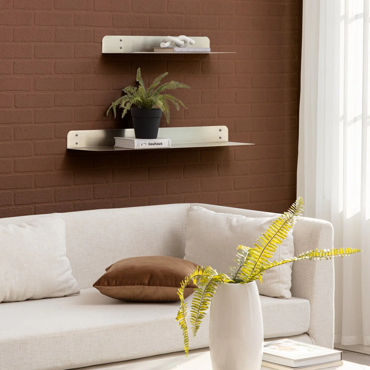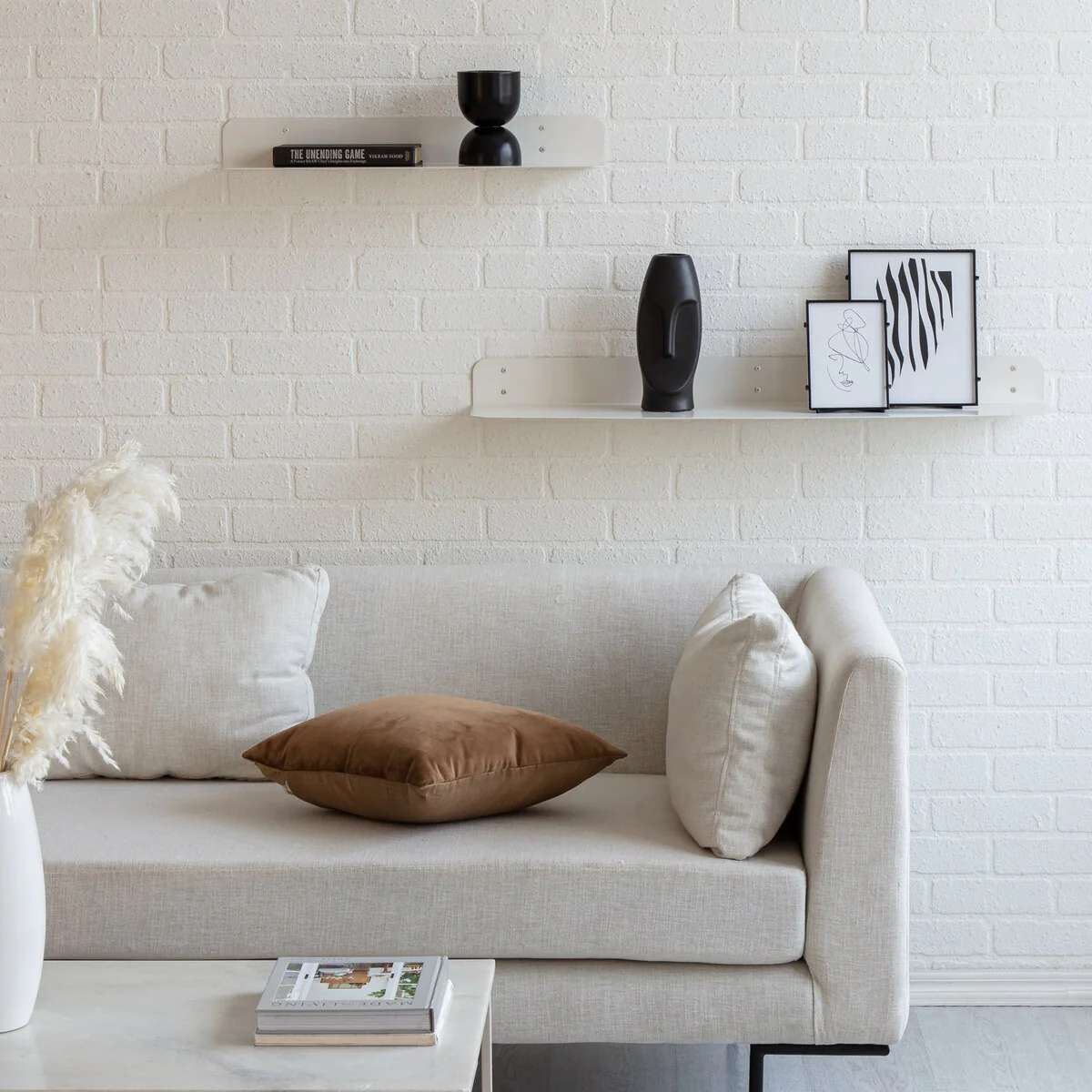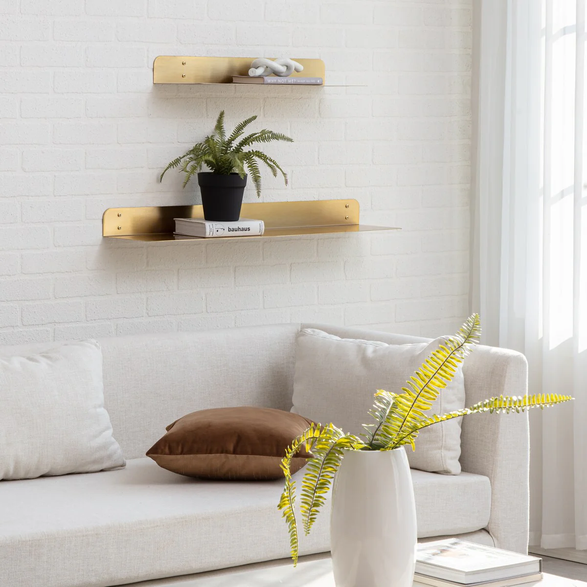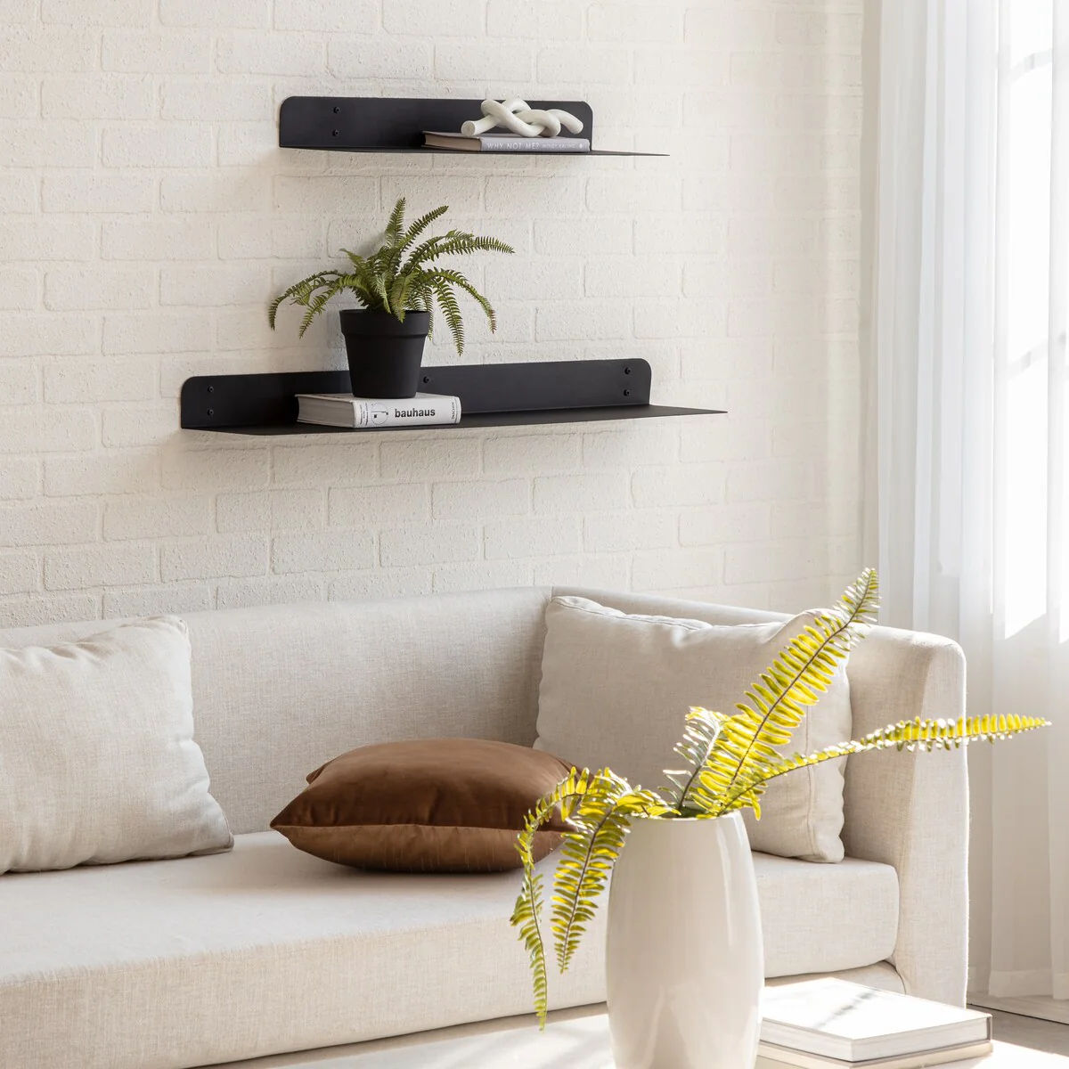 Maximize your wall space with these wall mounted metal shelves. These metal shelves are made of 1.5 mm thick steel with powder coating finish. These shelves have rounded corner for aesthetic, elegant look, and safety. These metal shelves are available in two sizes 24 inches and 36 inches length, as well as a set. Powder coated finish in four beautiful colors: Antique Brass, Textured Black, Brushed Nickel, and White. Wall brackets are also provided to support more weight, if needed. In most cases, especially to put wall décor and other light items, no brackets are needed, but, if you chose to store heavy items, color matching wall brackets can be attached with these metal shelves. Care Instructions: Clean with a slightly damp, soft cloth. Watch for edge of the wall-shelf while cleaning. Do not use any abrasive cleaner. How to installation these metal shelves can be found at following video links