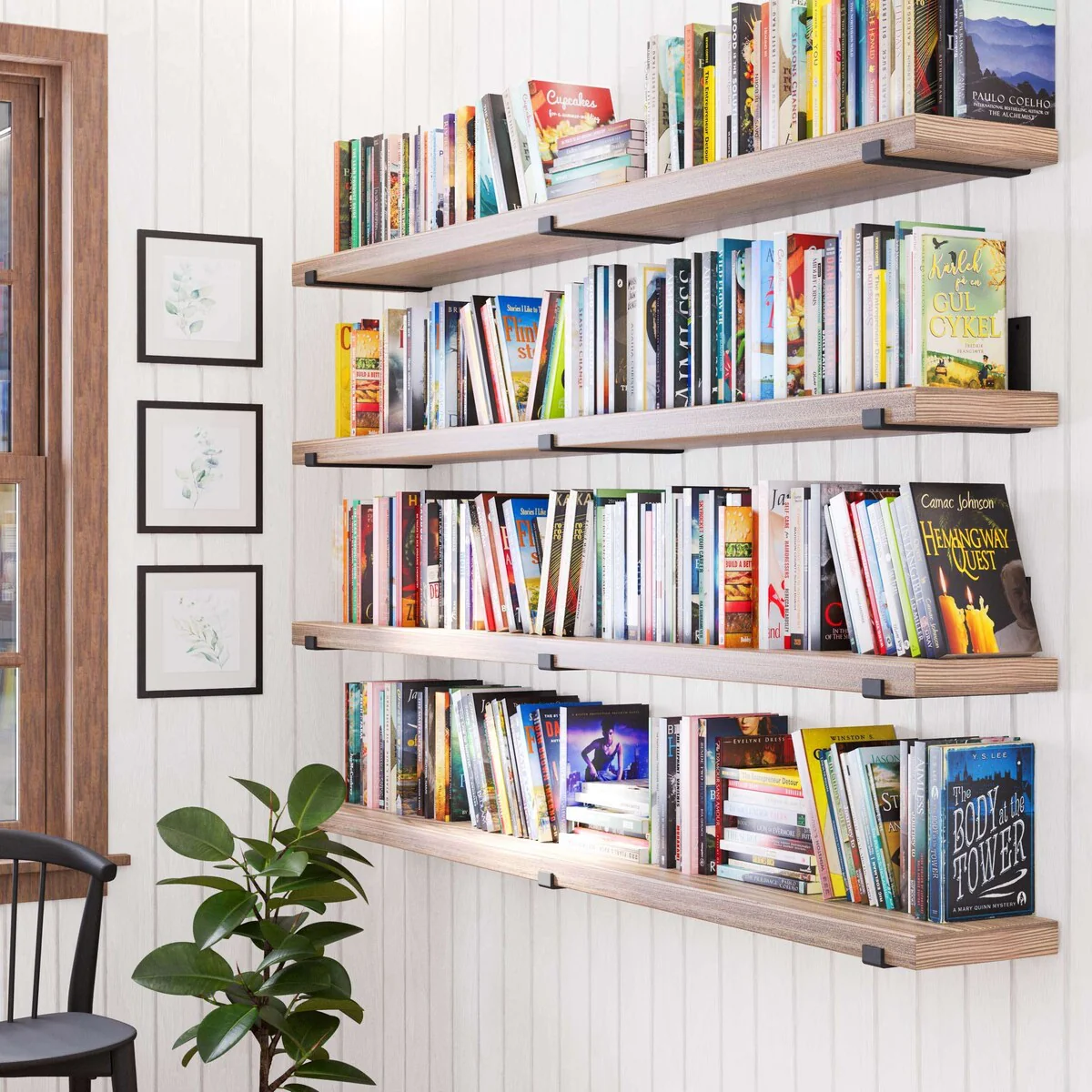 - Wall Bookshelves: Our 72 in long floating wall shelves will display and organize your favorite books, picture frames, indoor plants and more in the most stylish way. With Forte wall shelves, create a reading corner anywhere you want and keep your large book collection organized.