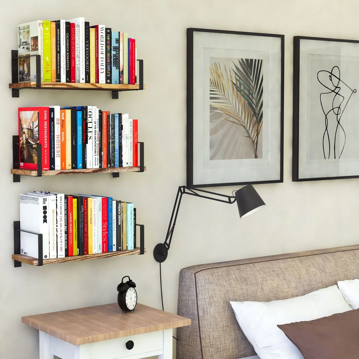 - Decorative Bedroom Shelves: Utilize these hanging shelves in your bedroom as an alternative to bedside table or standing bookcase.