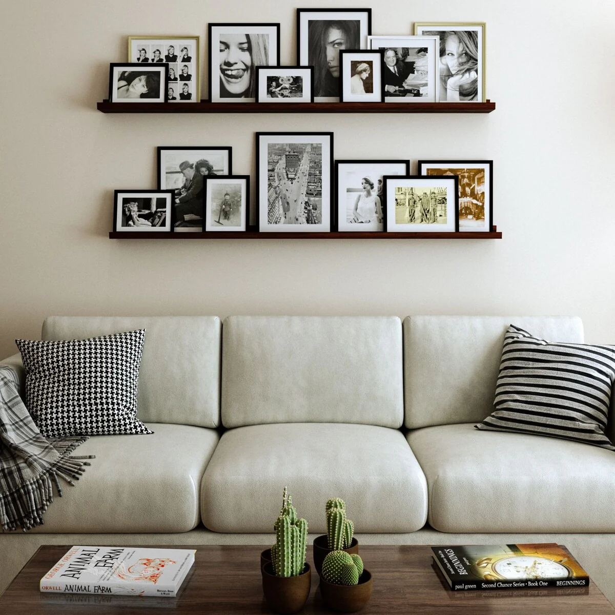 - Stylish photo display with less wall holes