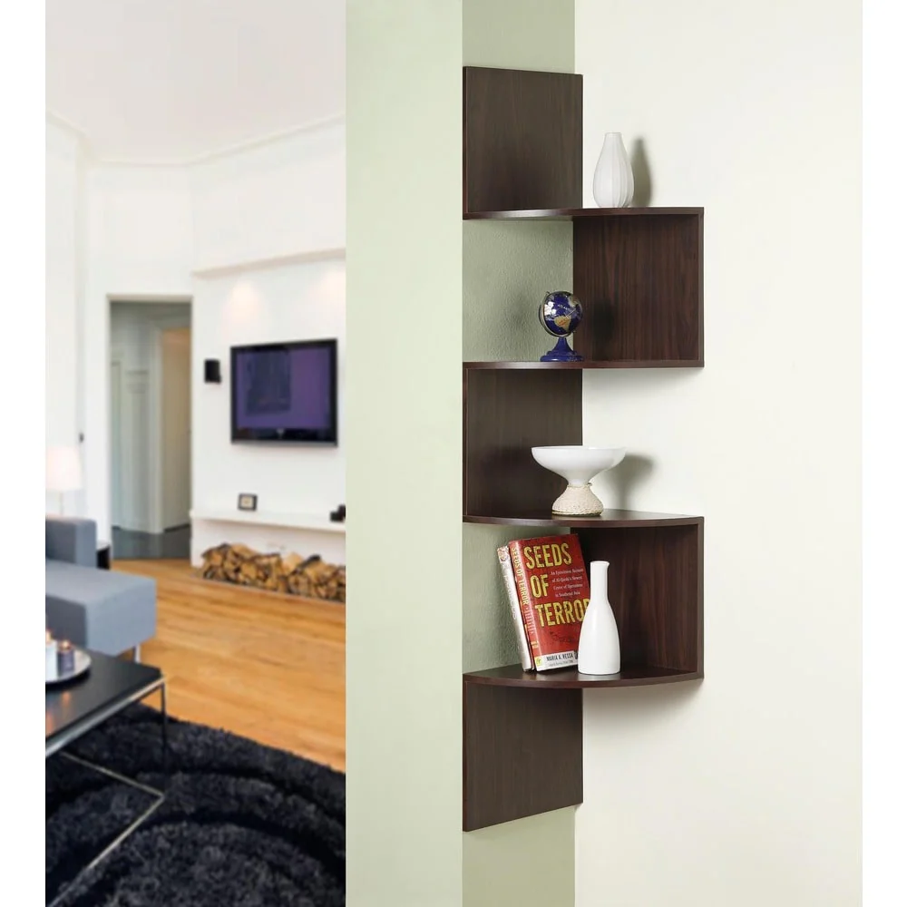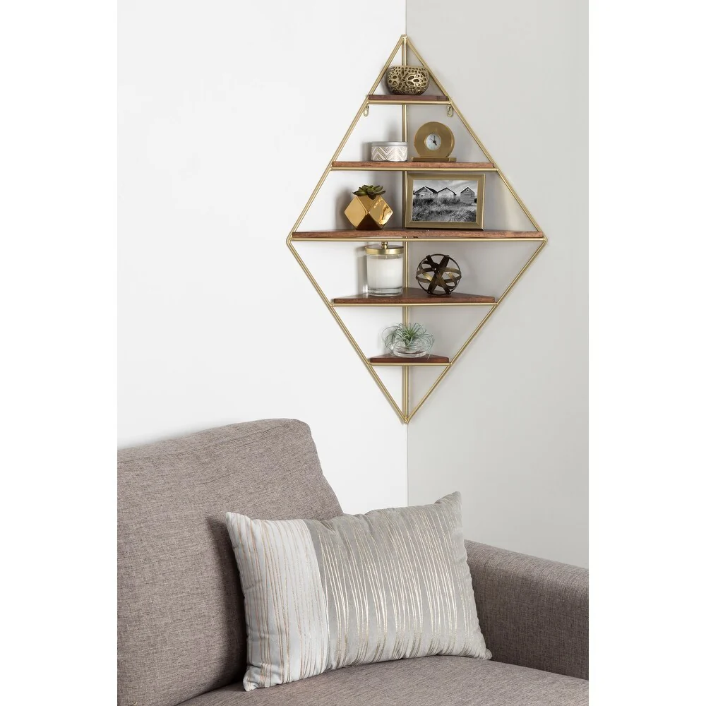 Kate and Laurel Melora Glam Metal and Wood 5-tier Corner Wall Shelf