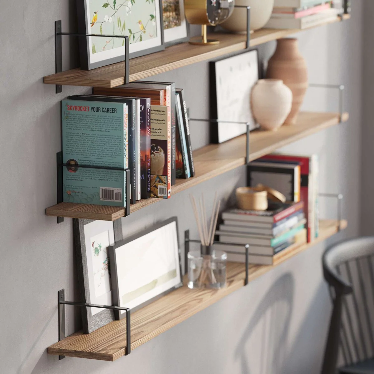 Wallniture Toledo 60x6 Floating Bookshelves for Wall, Book Shelves for Living Room, Wooden Shelves for Wall, Set of 3, Burnt