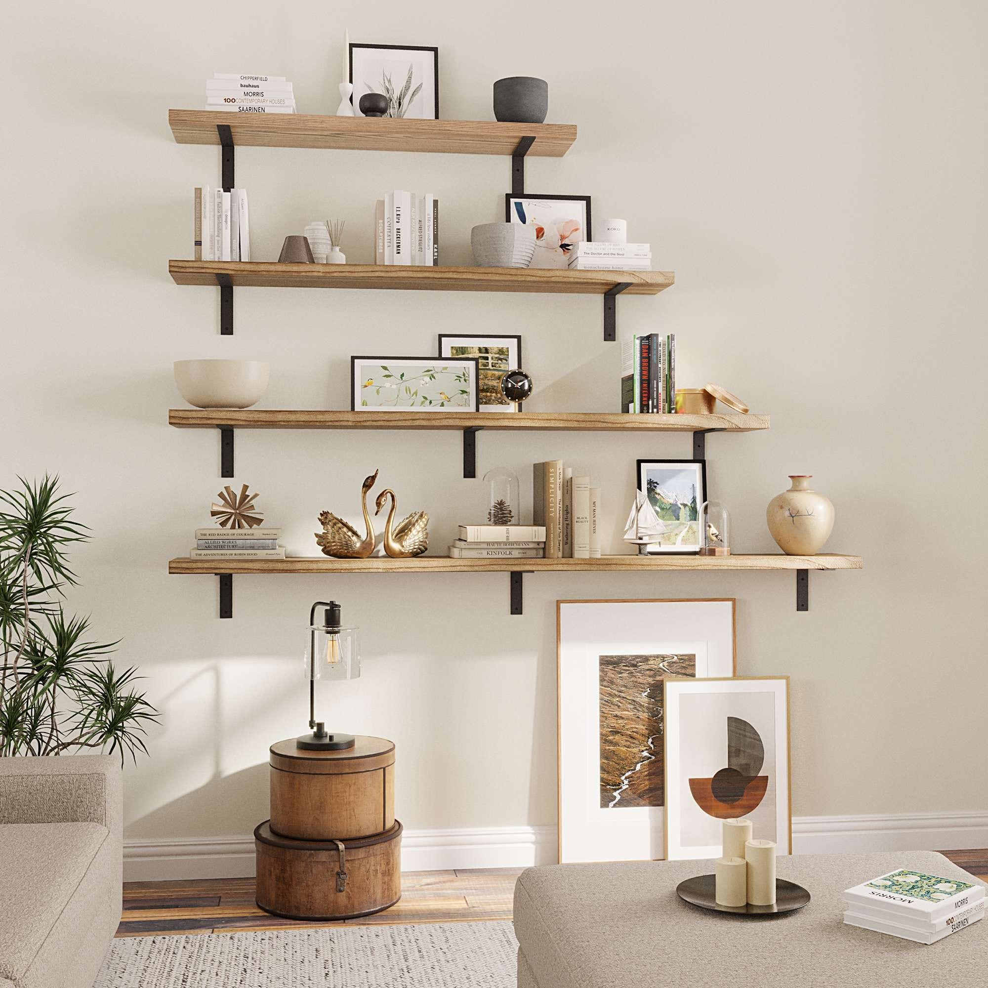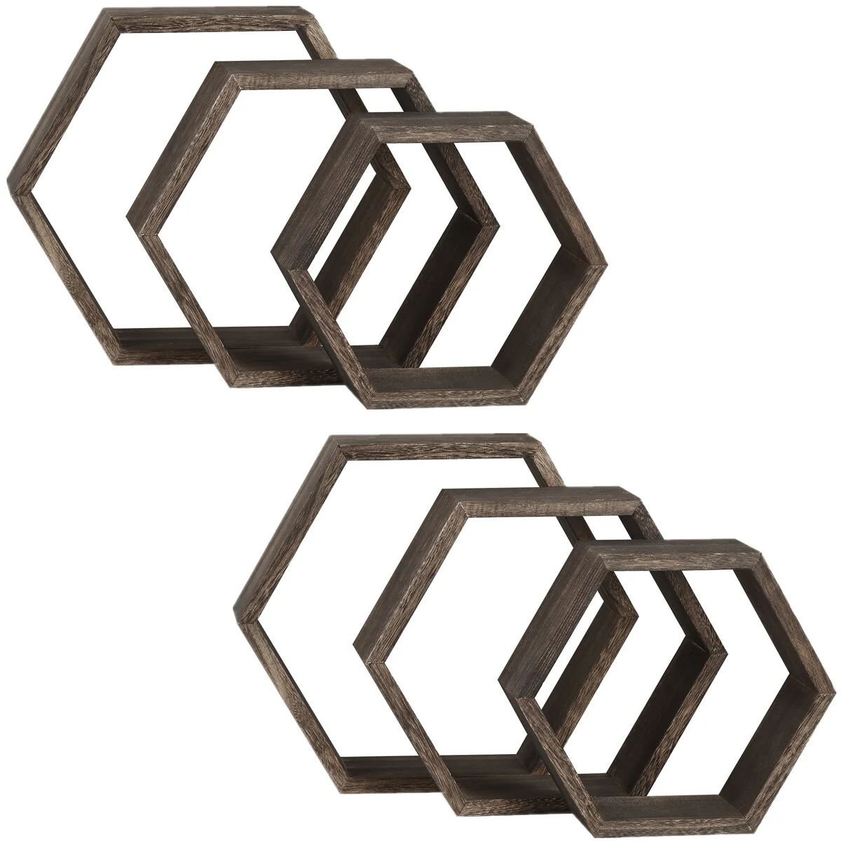 Wallniture Arras 17x4.5 Wood Floating Shelf, Burned Finish, Set of 6