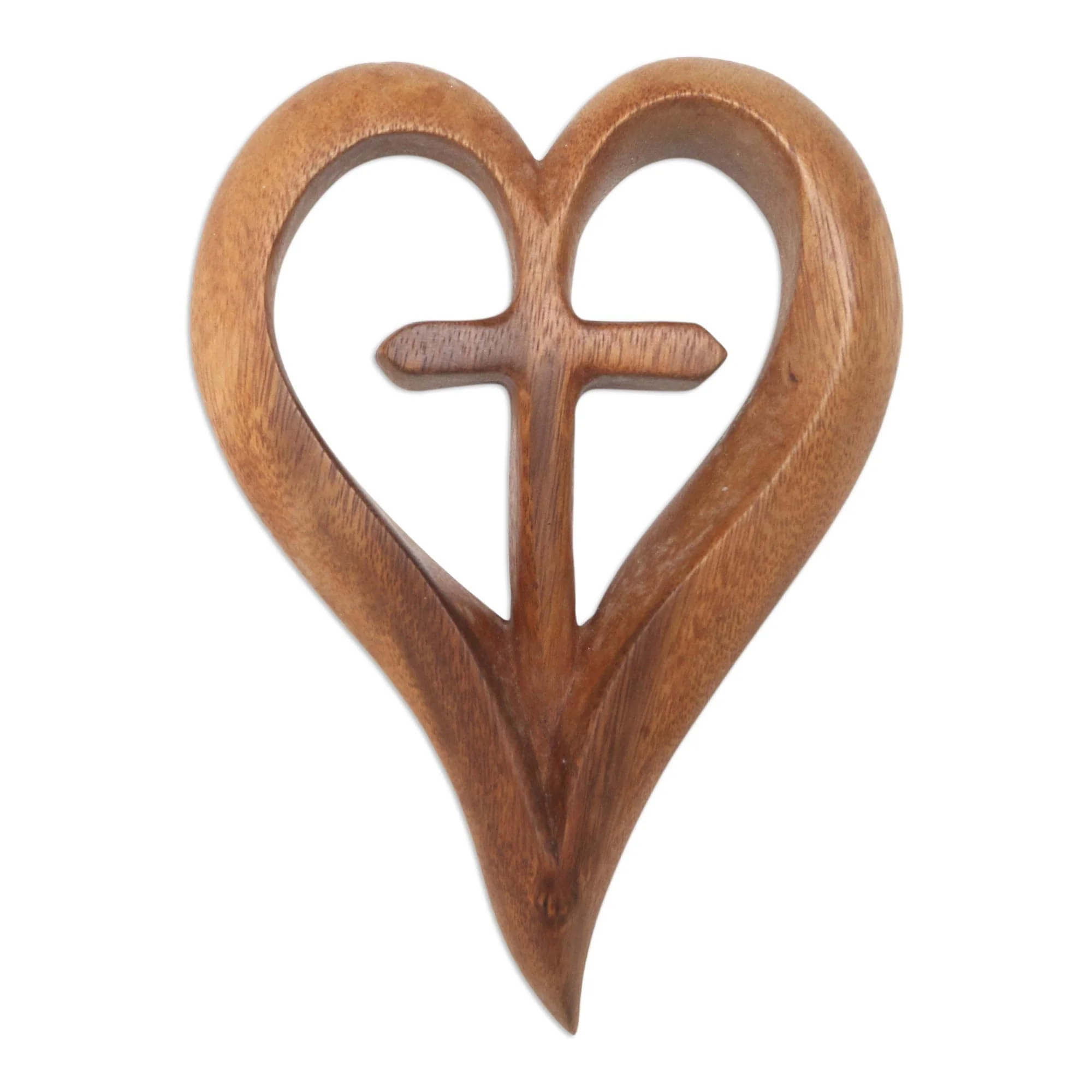 Novica Handmade Cross My Heart Wood Wall Relief Panel