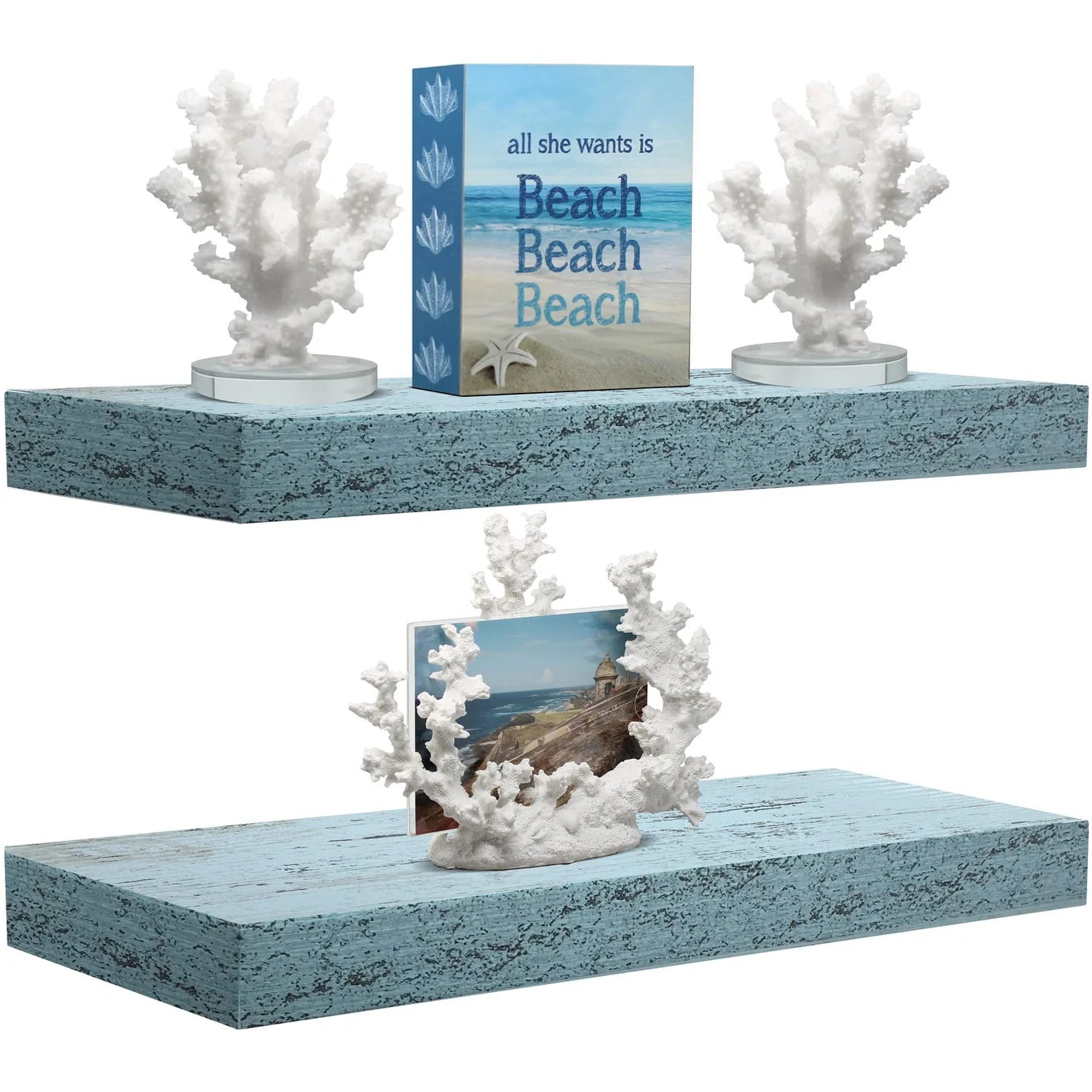 Floating Shelf Set Rustic Wood Hanging Rectangle Wall Shelves (2-Pack) - N/A
