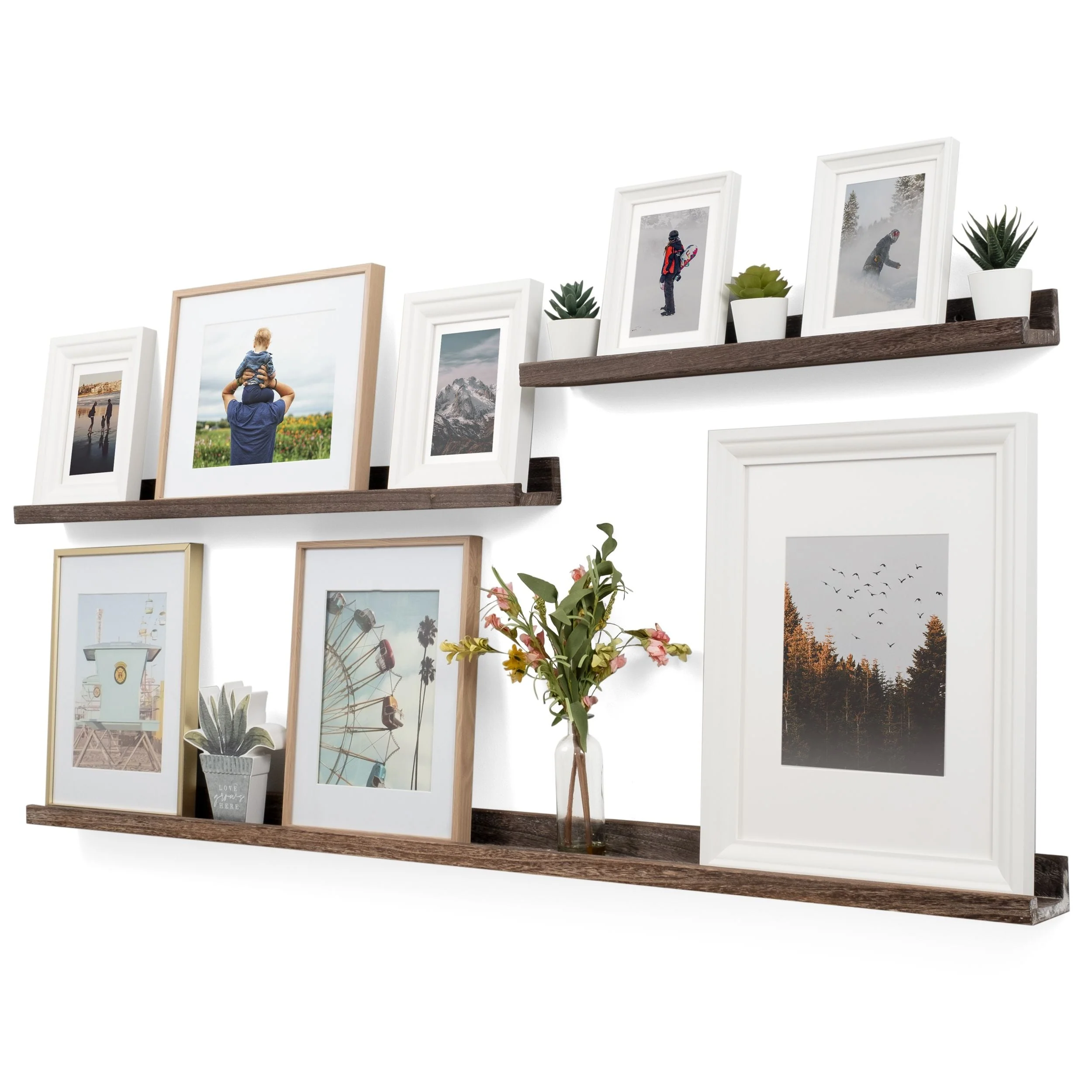 Walnut Picture Ledge, Vinyl Display Shelf, Wood Floating Shelf (Set of 2)