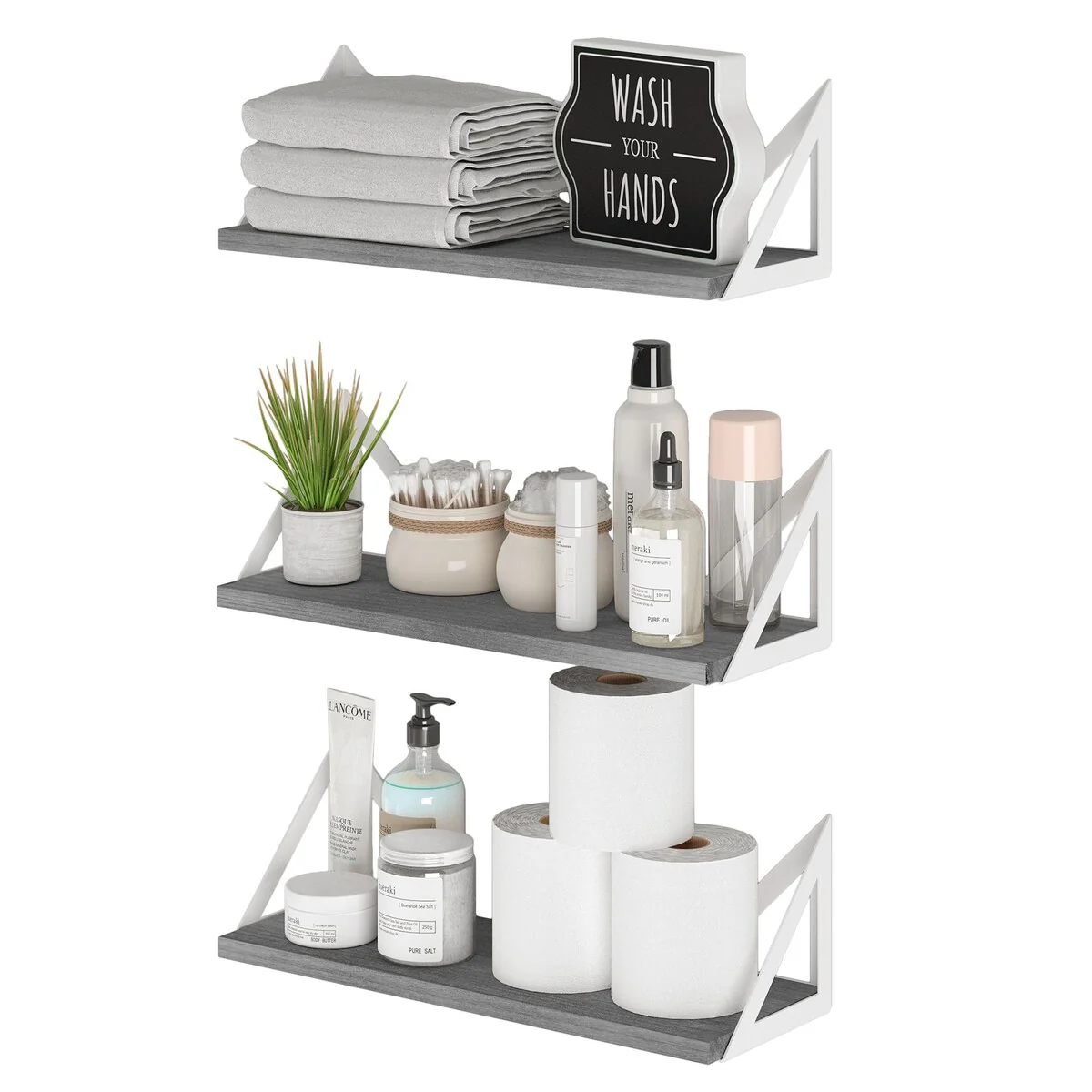 Wallniture Minori 17x6 Wood Wall Shelves with White Metal Brackets, Gray, Set of 3
