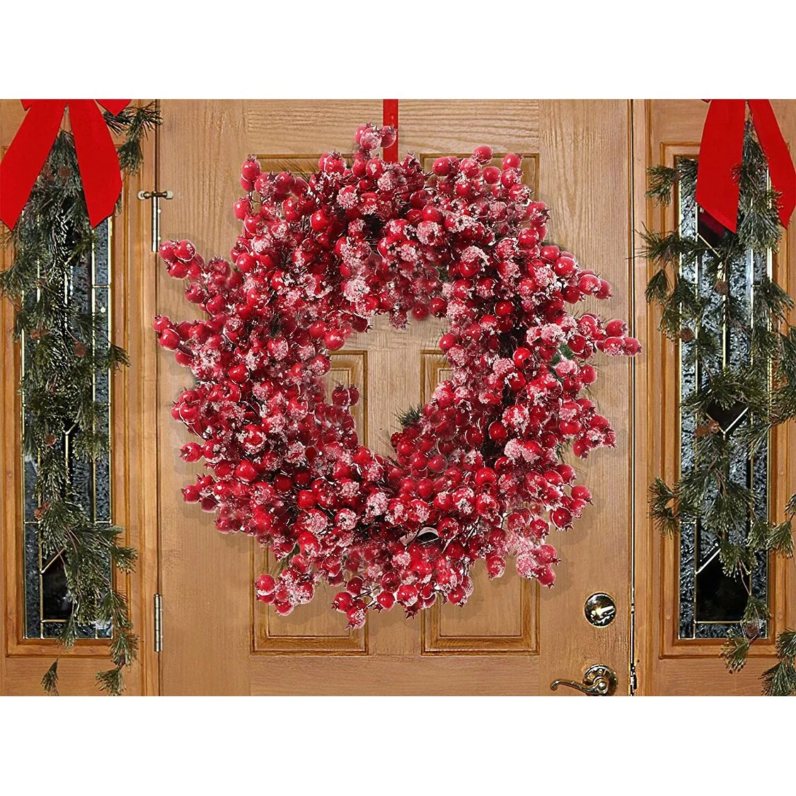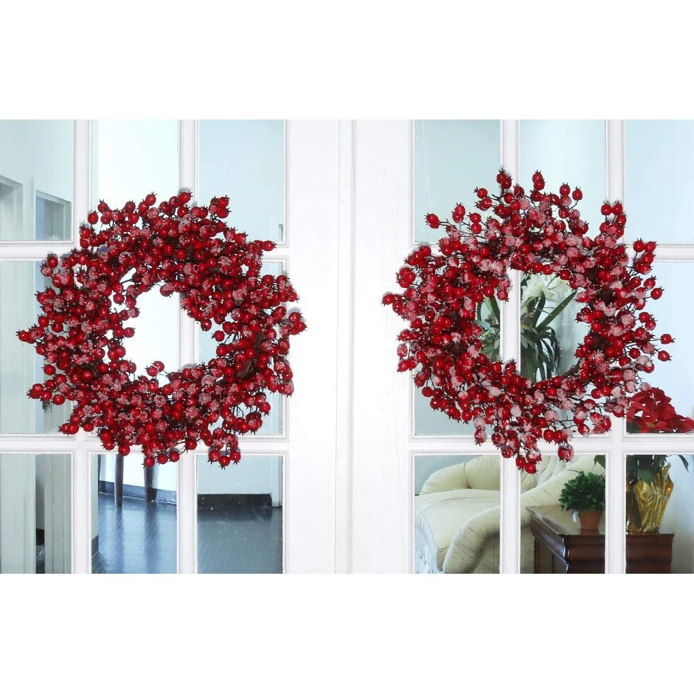 Add a festive touch with our 22' Red Frosted Berry Wreath featuring lifelike rosehip berries on hawthorn branches, dusted with realistic frost for a charming winter look. Crafted from durable polyester, plastic, wire, and twig materials, this wreath is designed for covered outdoor or indoor use. Perfect for your front door, living room, or holiday d茅cor, it comes ready to hang with no assembly required, bringing a bright and natural pop of color to your space.
