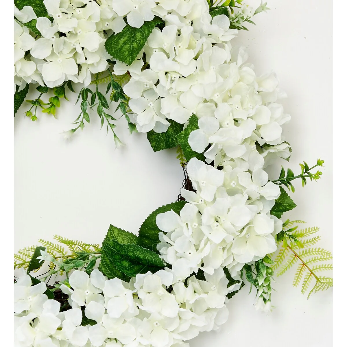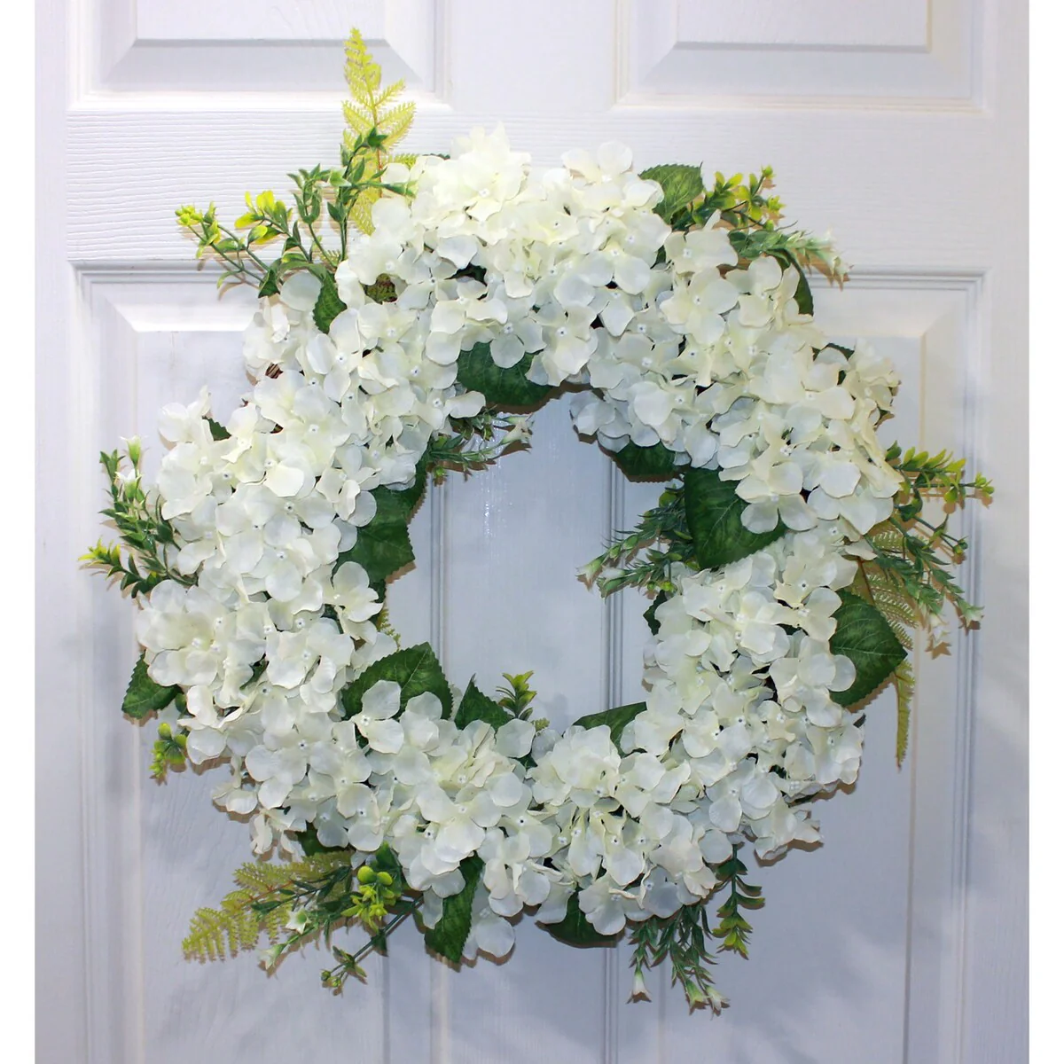 Get ready to be amazed by the stunning 24' Artificial Hydrangea Wreath. It's a real showstopper for your home. This wreath is made with natural twigs, and the flowers, leaves, and fern look so real, you won't believe your eyes. Hang it on your door, above your fireplace, or anywhere you want to add some charm.