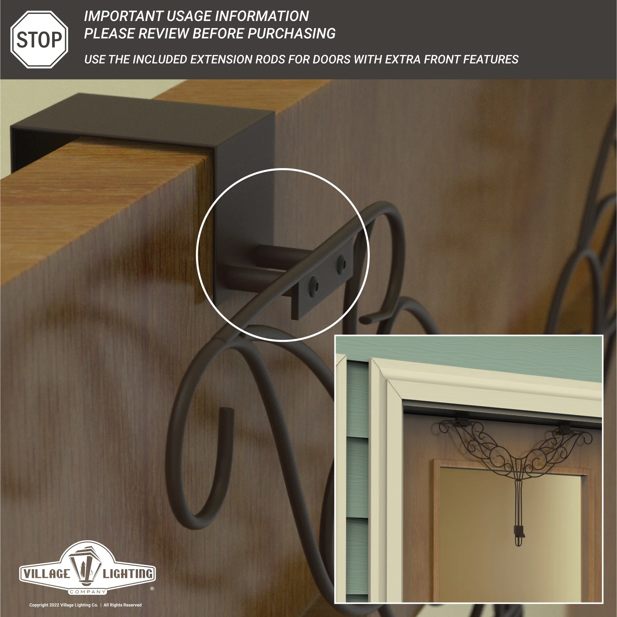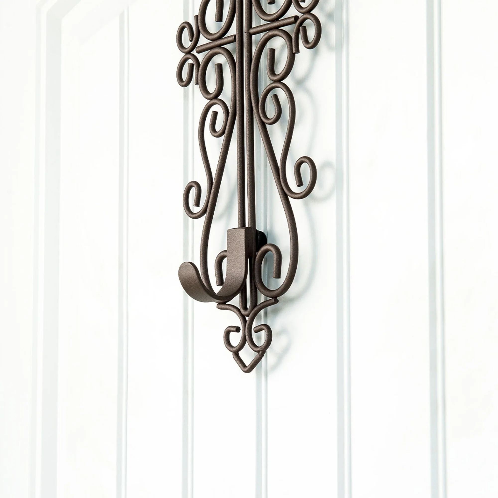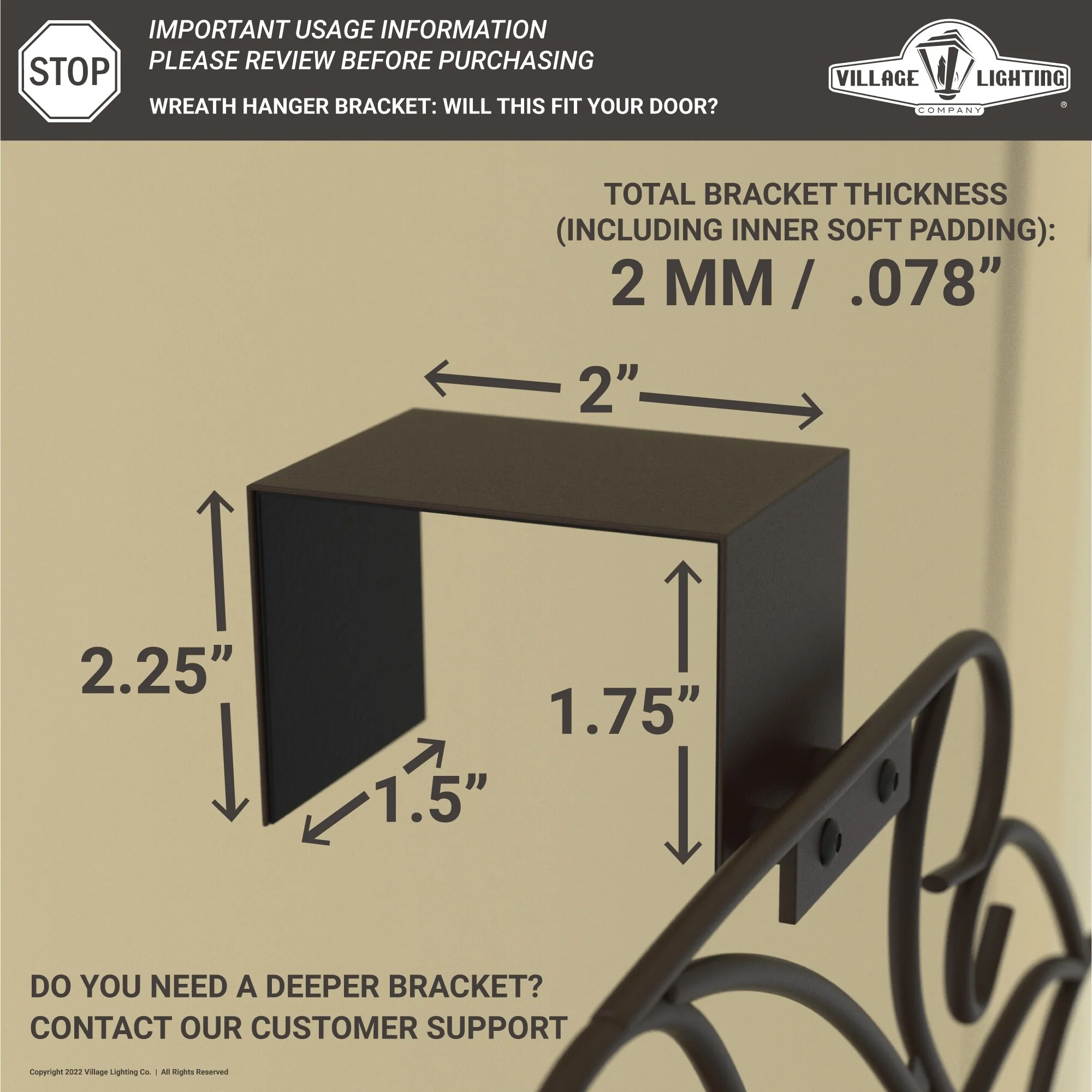 Hanging a wreath on your front door gives your home a welcoming entrance that leaves your visitors stunned. Damaging your door with nails leaves a terrible view when no wreath is hung, and the adhesive hangers simply don't hold. As you know, the low quality alternatives are an eyesore that take attention away from your beautiful wreath, but the beauty is only complemented and enhanced with our decorative over the door wreath hanger. The Adjustable wreath hanger for door allows you to perfectly place your wreath at the ideal height. Holding wreaths up to 20 lbs., this durable wrought iron wreath holder for front door can display your wreath anywhere from 5 in. - 19 in. from the top of the door. The padded contact points, and the included optional spacers make this the perfect wreath hanger for glass door with or without moulding around the glass. Available in a variety of designs, the Colonial design is the most popular option.