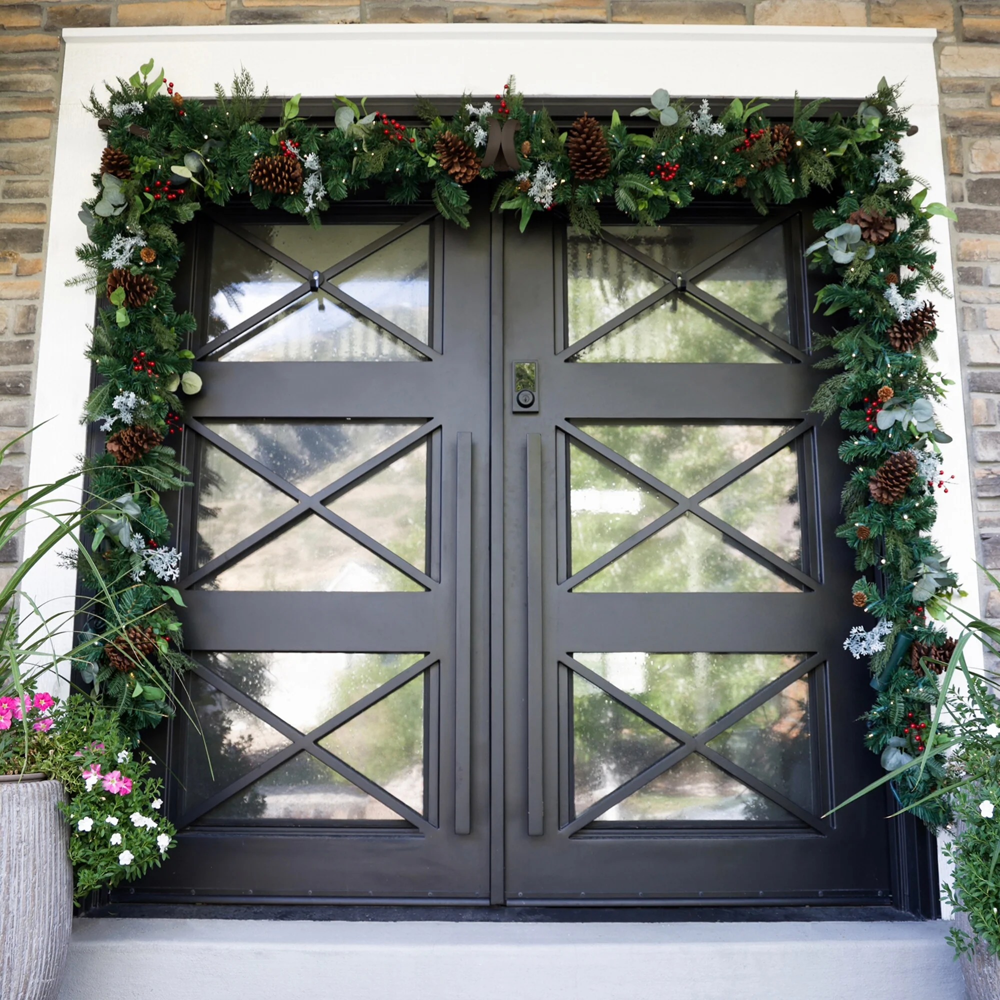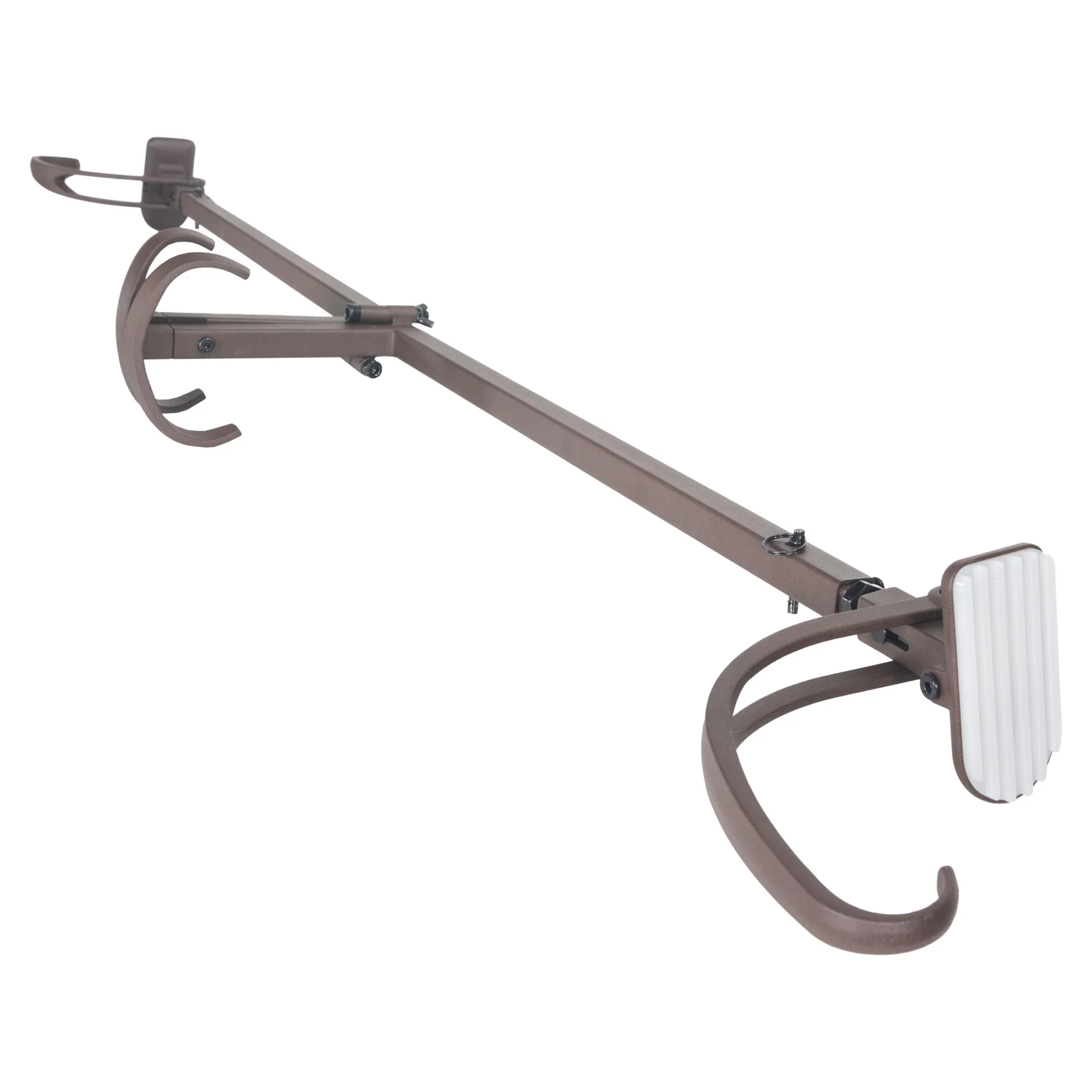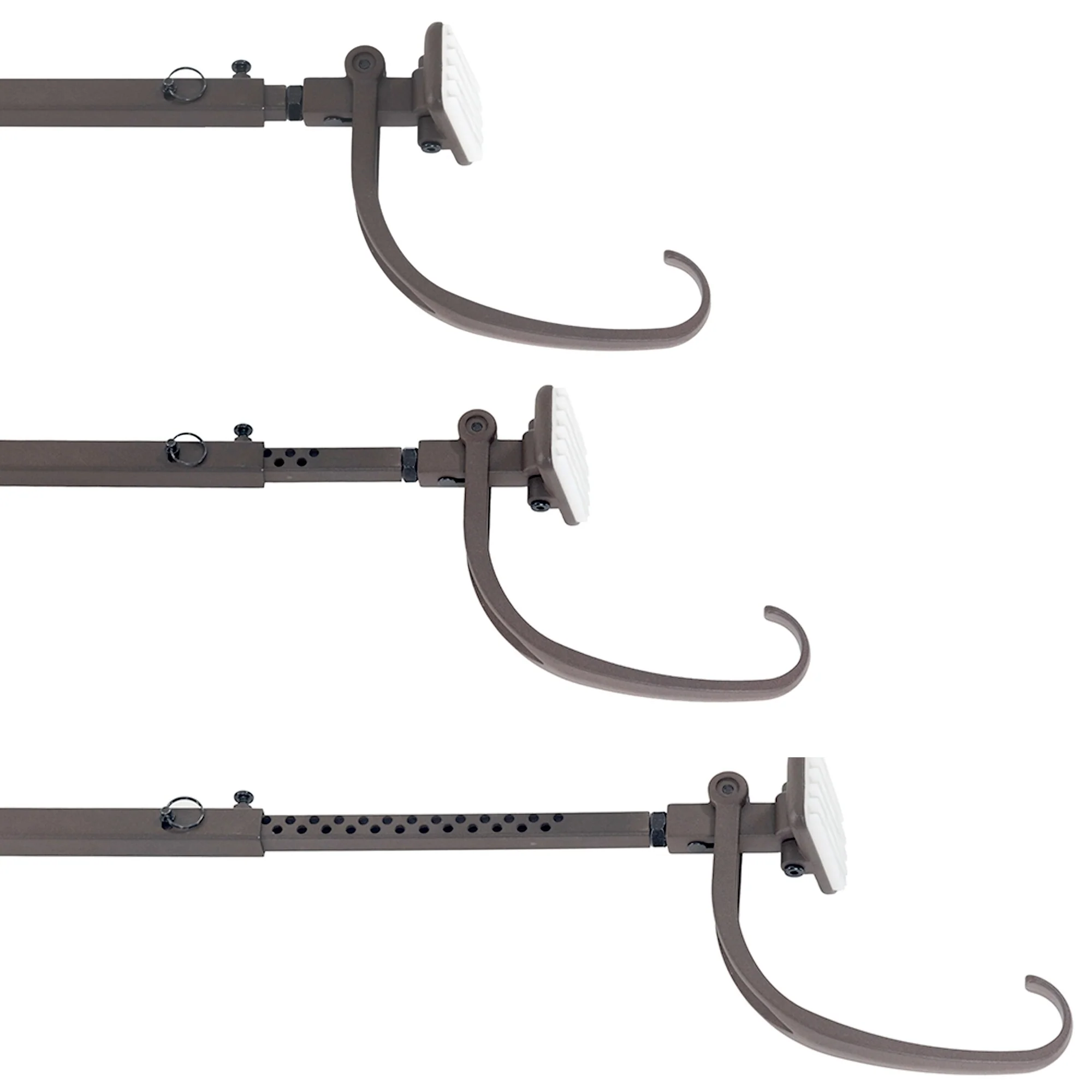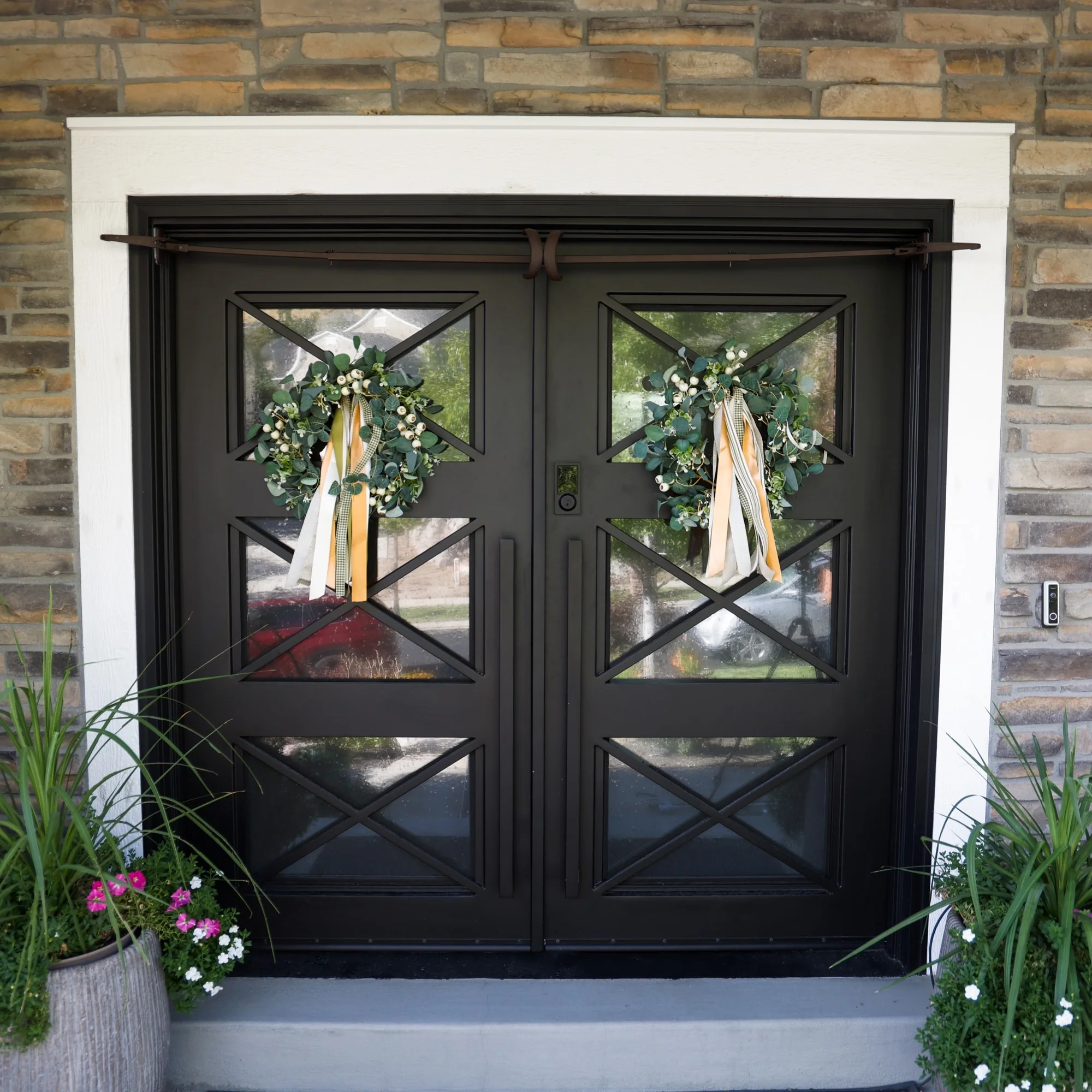 Hanging a garland above your wreath on your double-door front door gives your home the grand entrance you deserve during the holidays, but damaging your home with nails leaves a terrible view for the rest of the year. This patented garland hanger allows you to hang garland around your front door without damaging your home with nails or screws. The hanger's width is adjustable to fit door frames between 52 in. - 82 in. wide. Designed to prevent damage to your door frame, the garland hanger uses pressure to hold garlands up to 20 lbs. up in your door jam. Complete with rubber pads on each end help ensure that your door frame is protected, and a durable powder coating to prevent rusting of the hanger. A Patented Product: Patent(s) 8,777,023 and 9,480,206