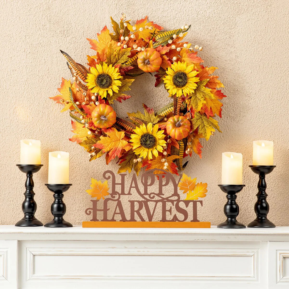 - Crafted with autumn leaves, pumpkin and sunflowers�
