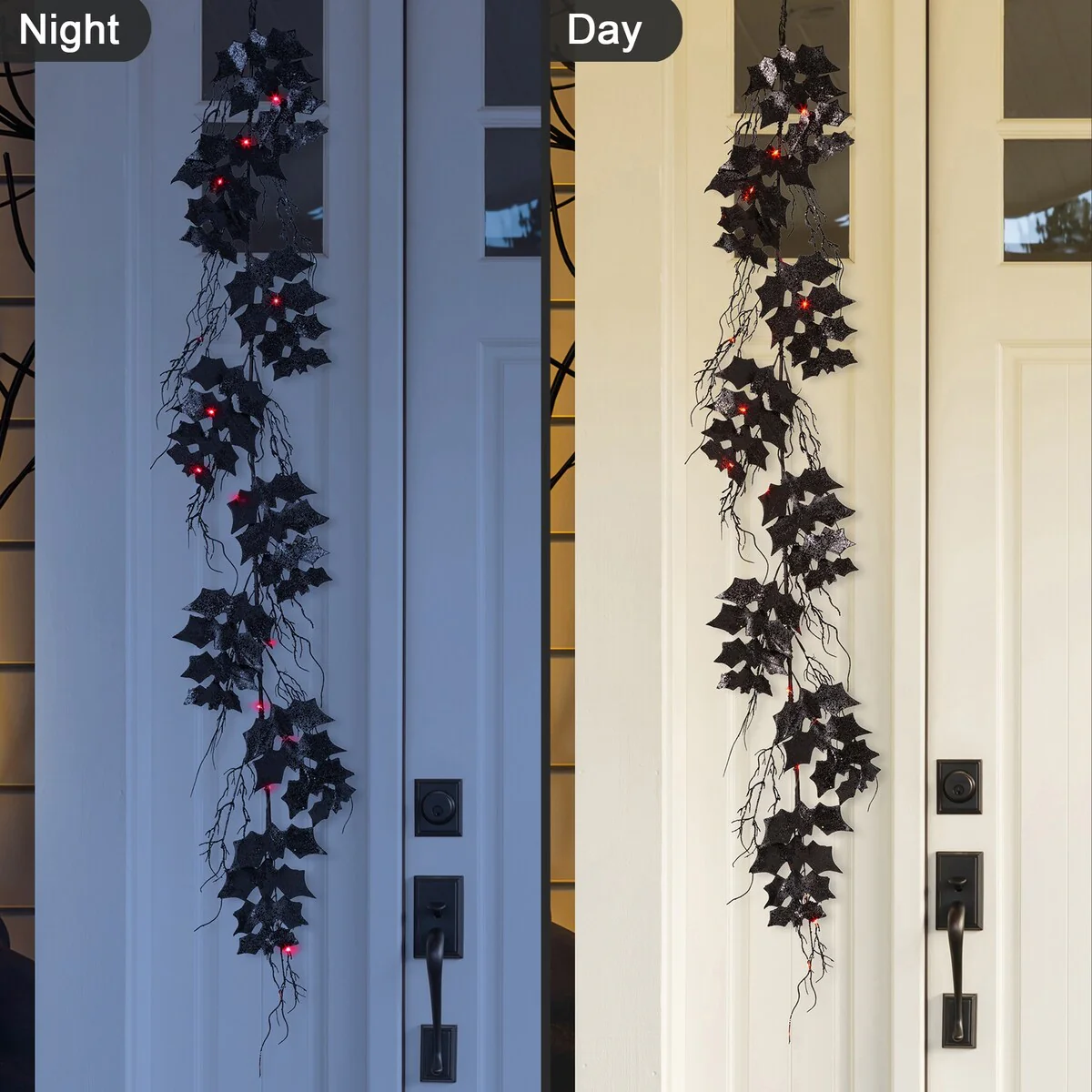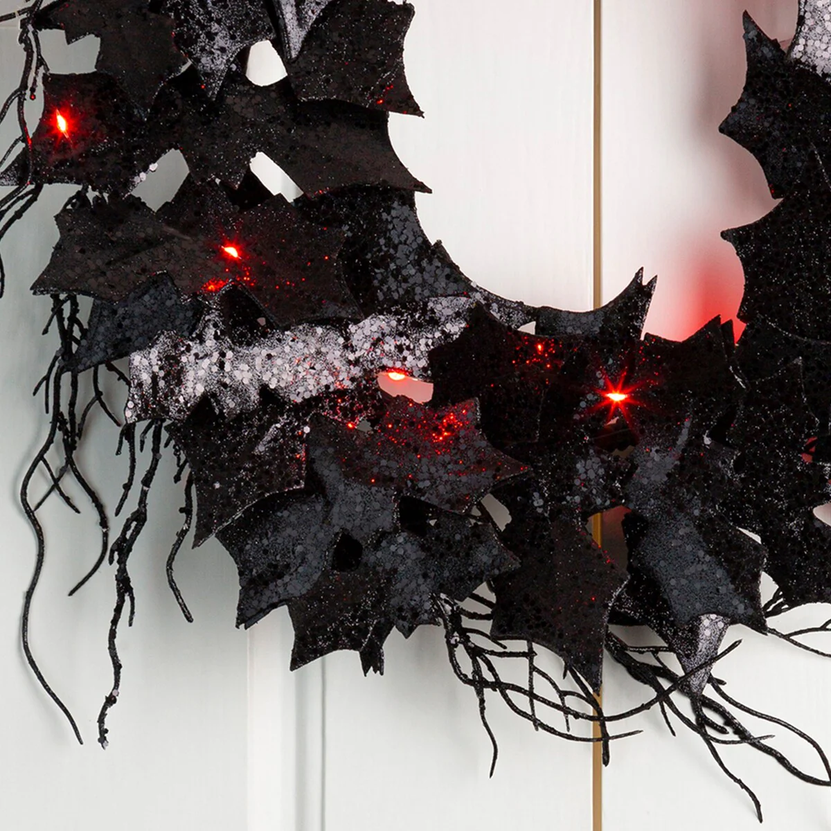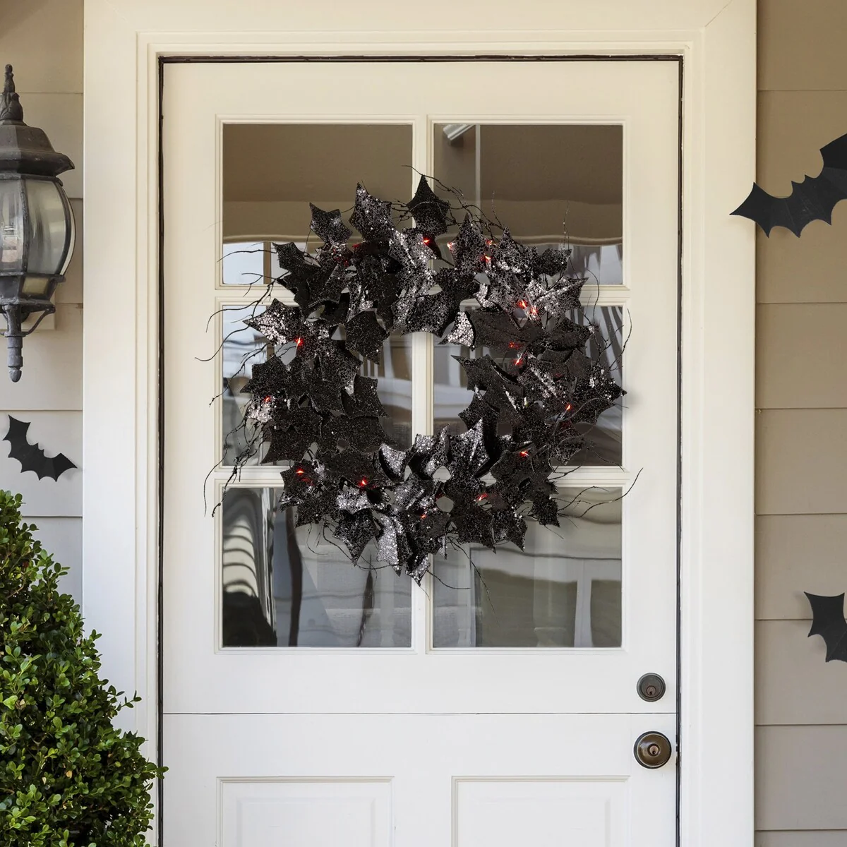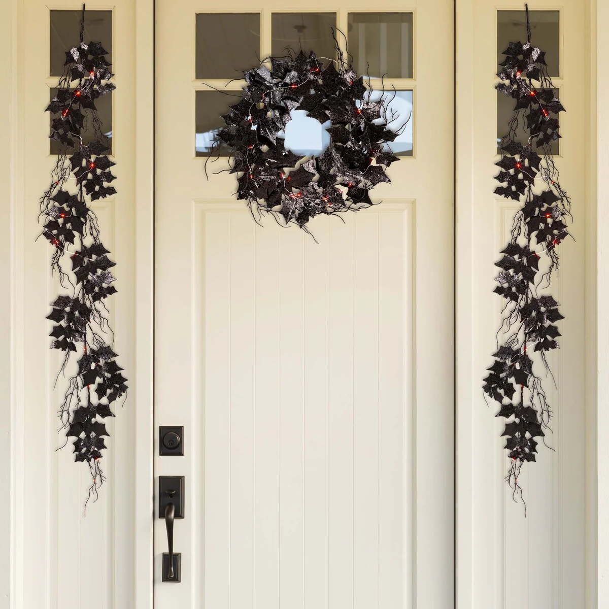 Add a fun Halloween garland or wreath to your door or home. Creepy bats is set on a wire frame garland. This LED decoration works well on your front door or mantel. The beautiful Halloween wreath is set on a natural twig base and can be easily stored.