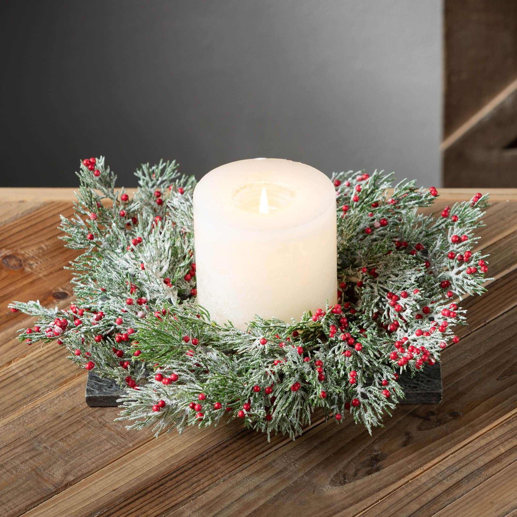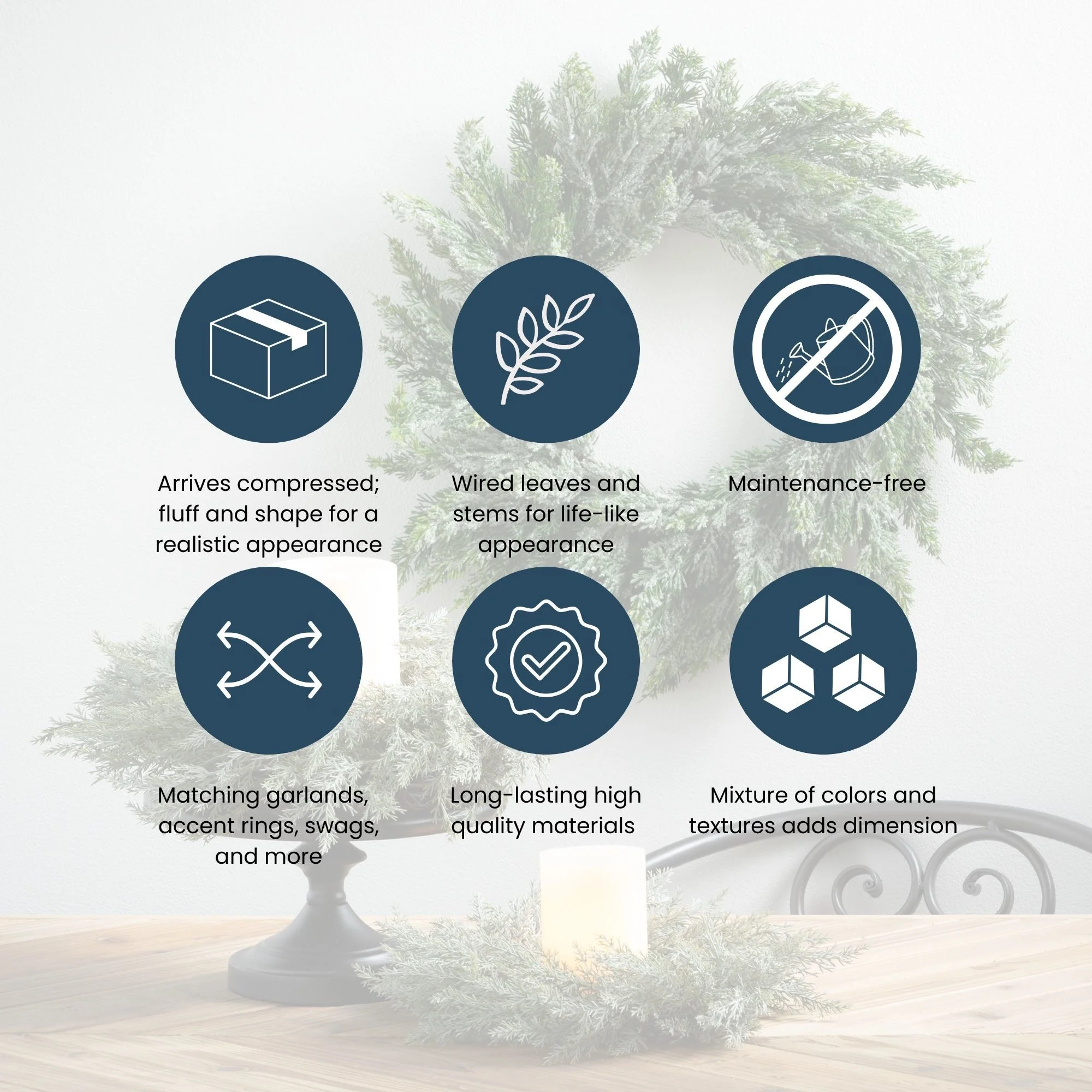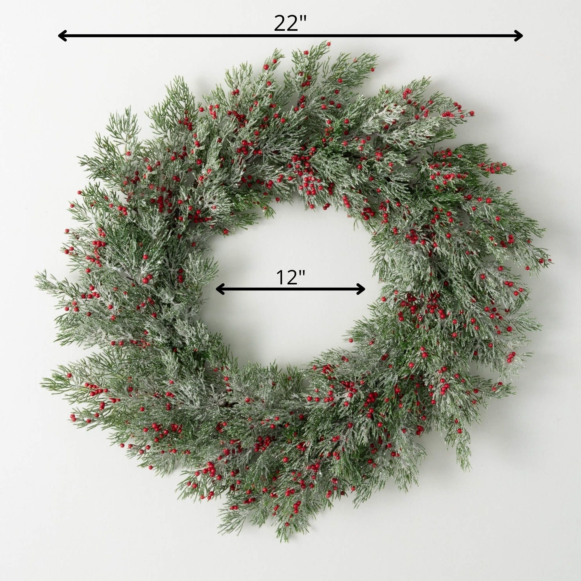 - Festive Holiday Accent: Elevate your holiday decor with the Sullivans Cedar Red Berry wreath, featuring lush green cedar foliage adorned with vibrant red berries for a festive touch.