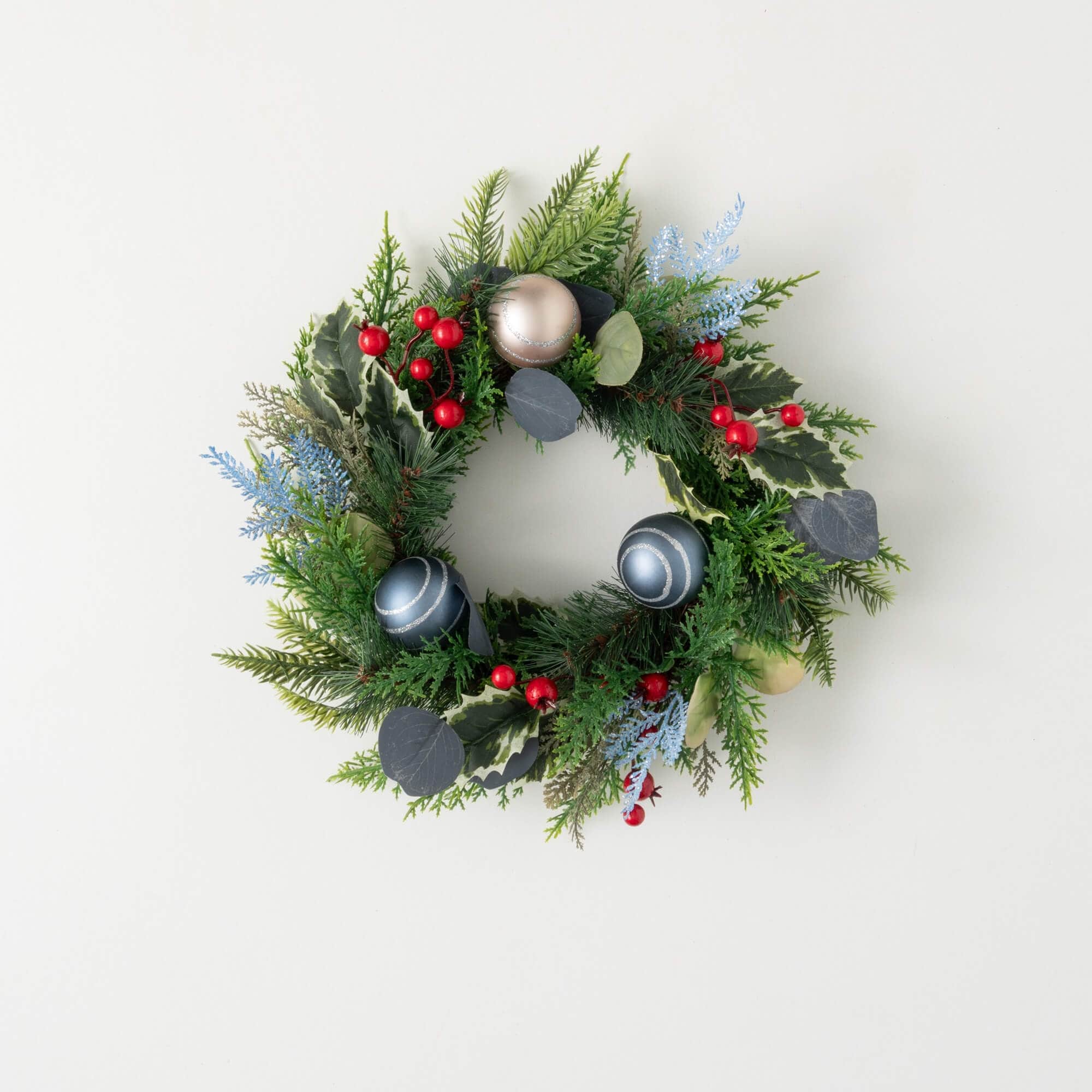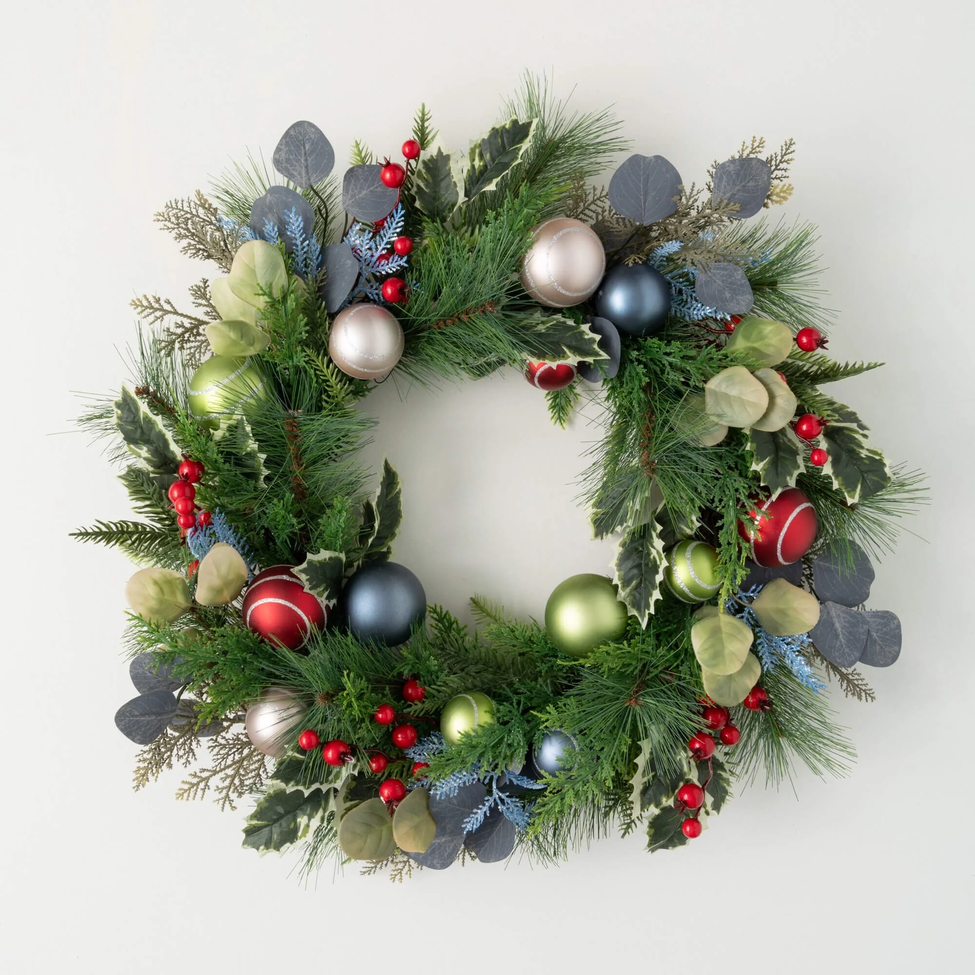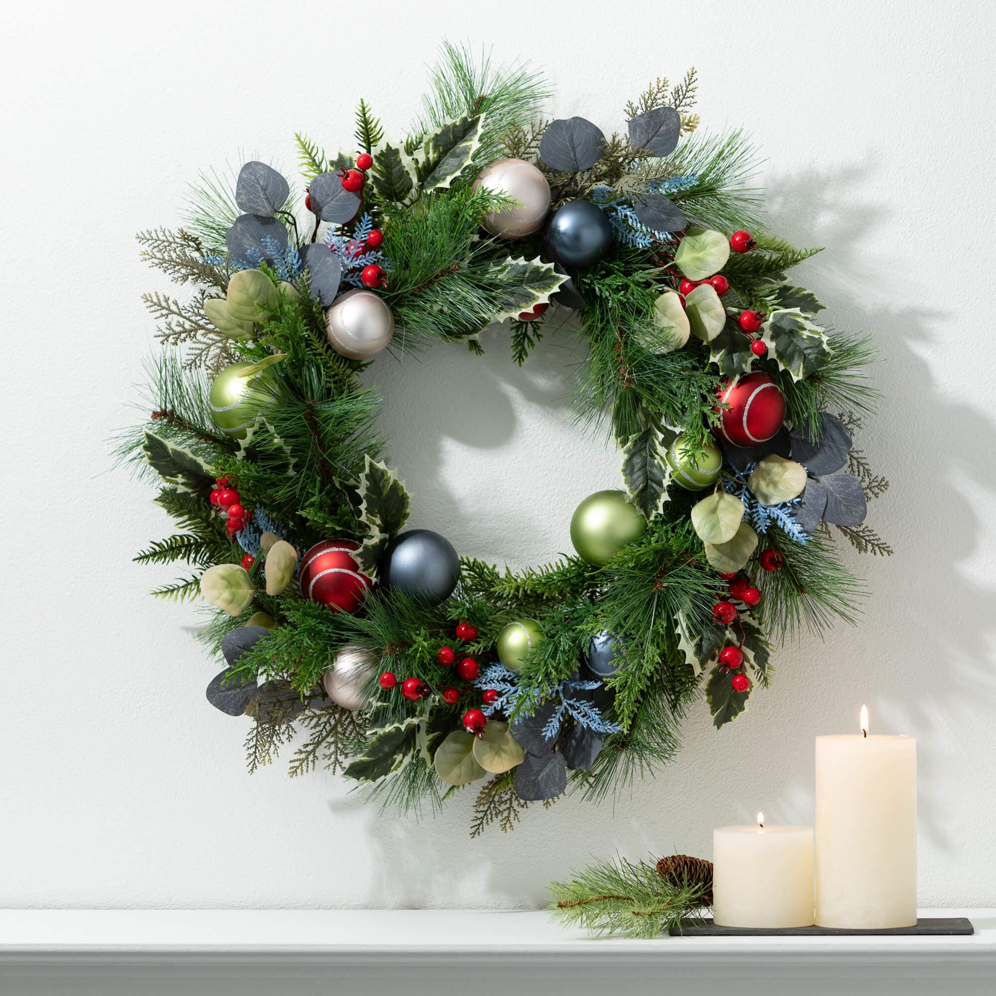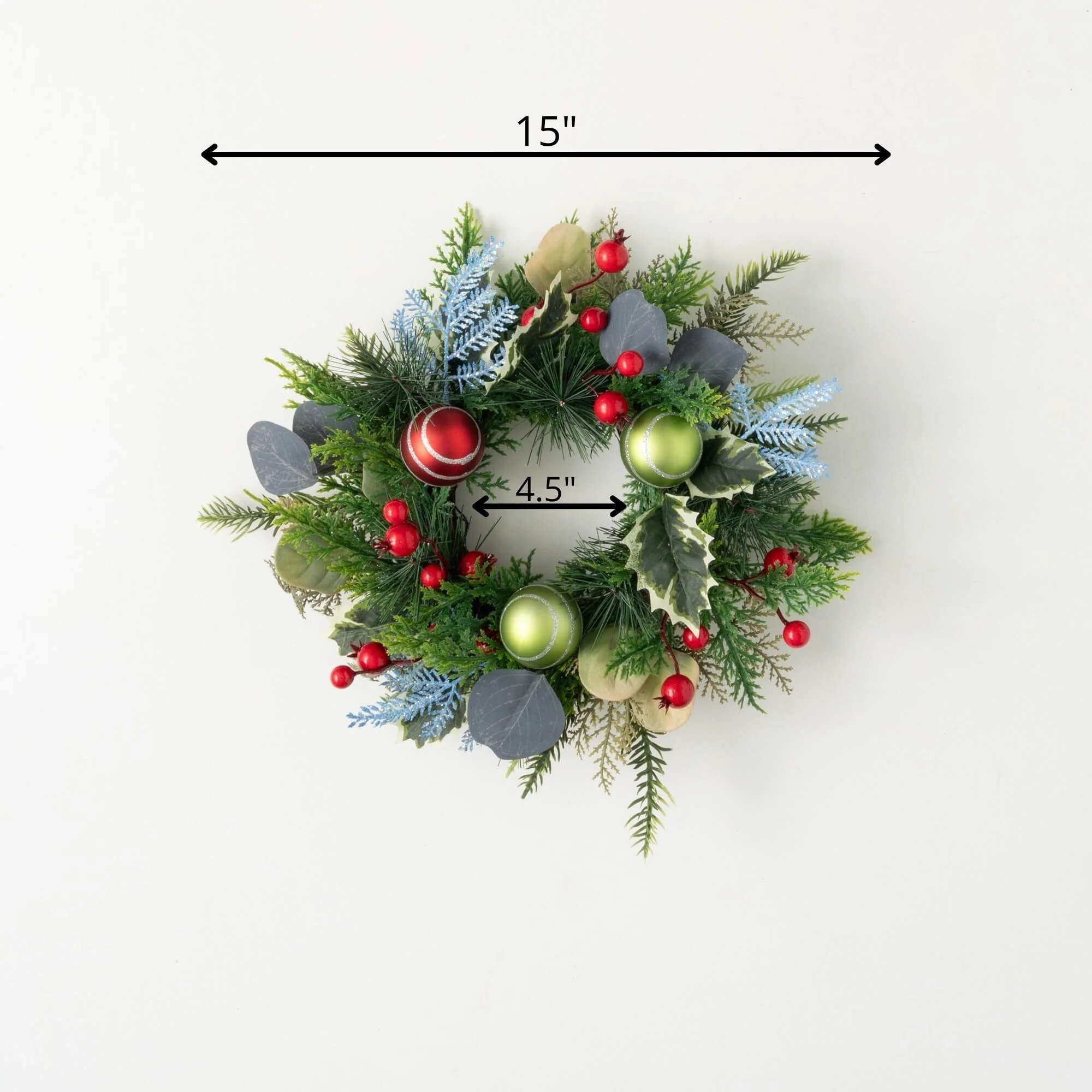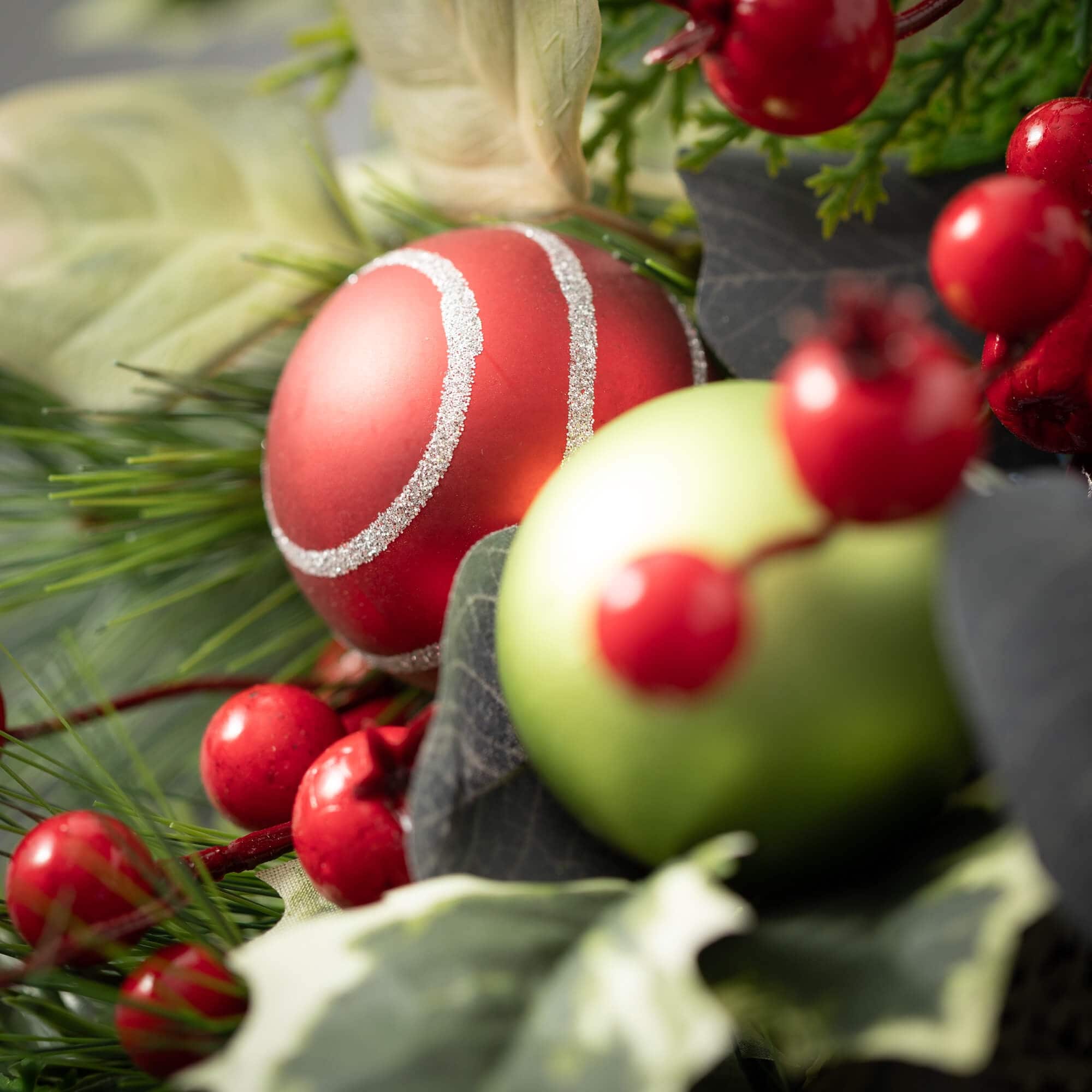 - Easy Holiday Styling: Elevate your holiday decorations effortlessly with the Shiny Ball Mixed Foliage wreath, adding a festive and joyful touch to your home decor during the most wonderful time of the year.