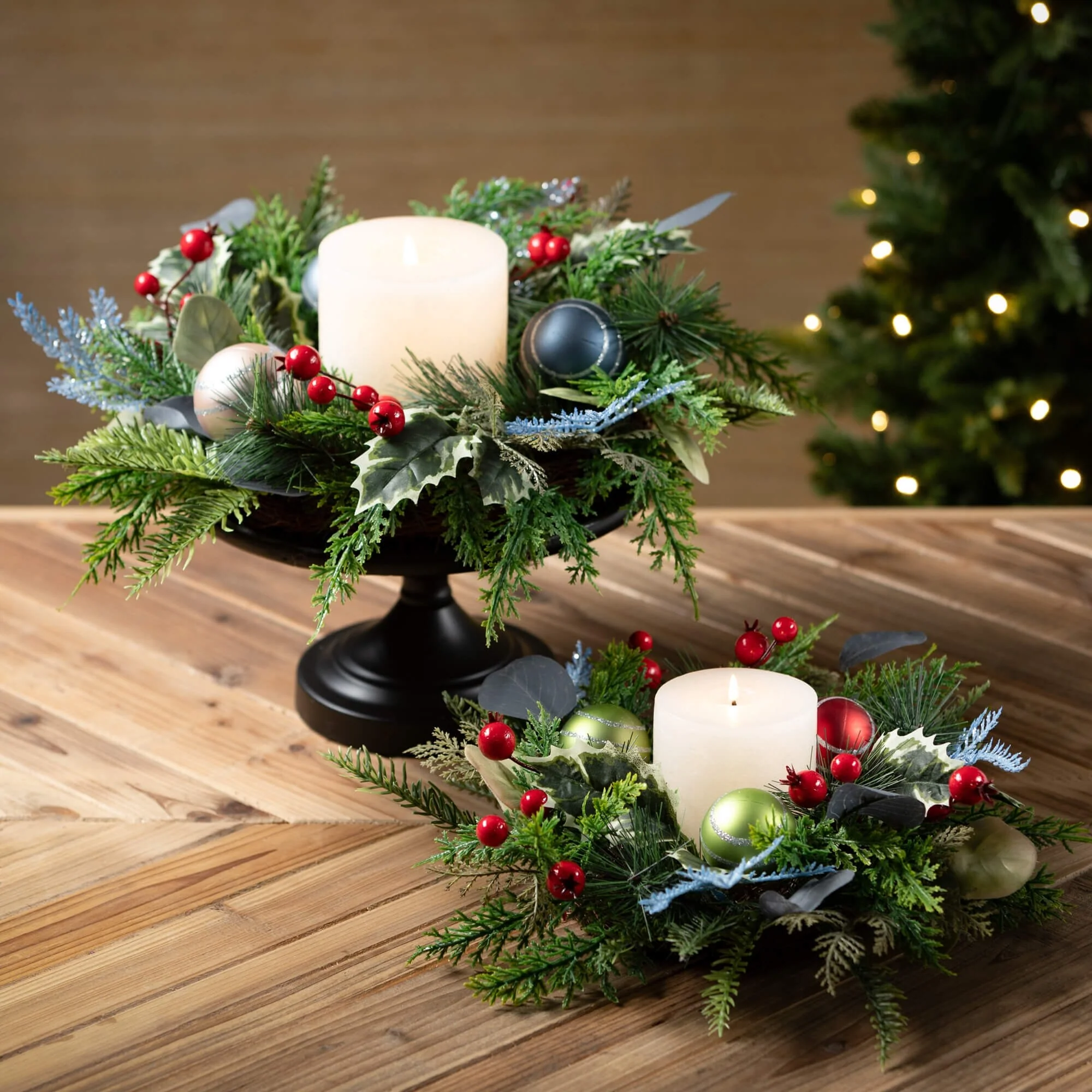 - Versatile Use: This mixed foliage wreath can be used as a mini wreath or candle ring, adding a pop of holiday cheer to your tabletops, mantels, or shelves.