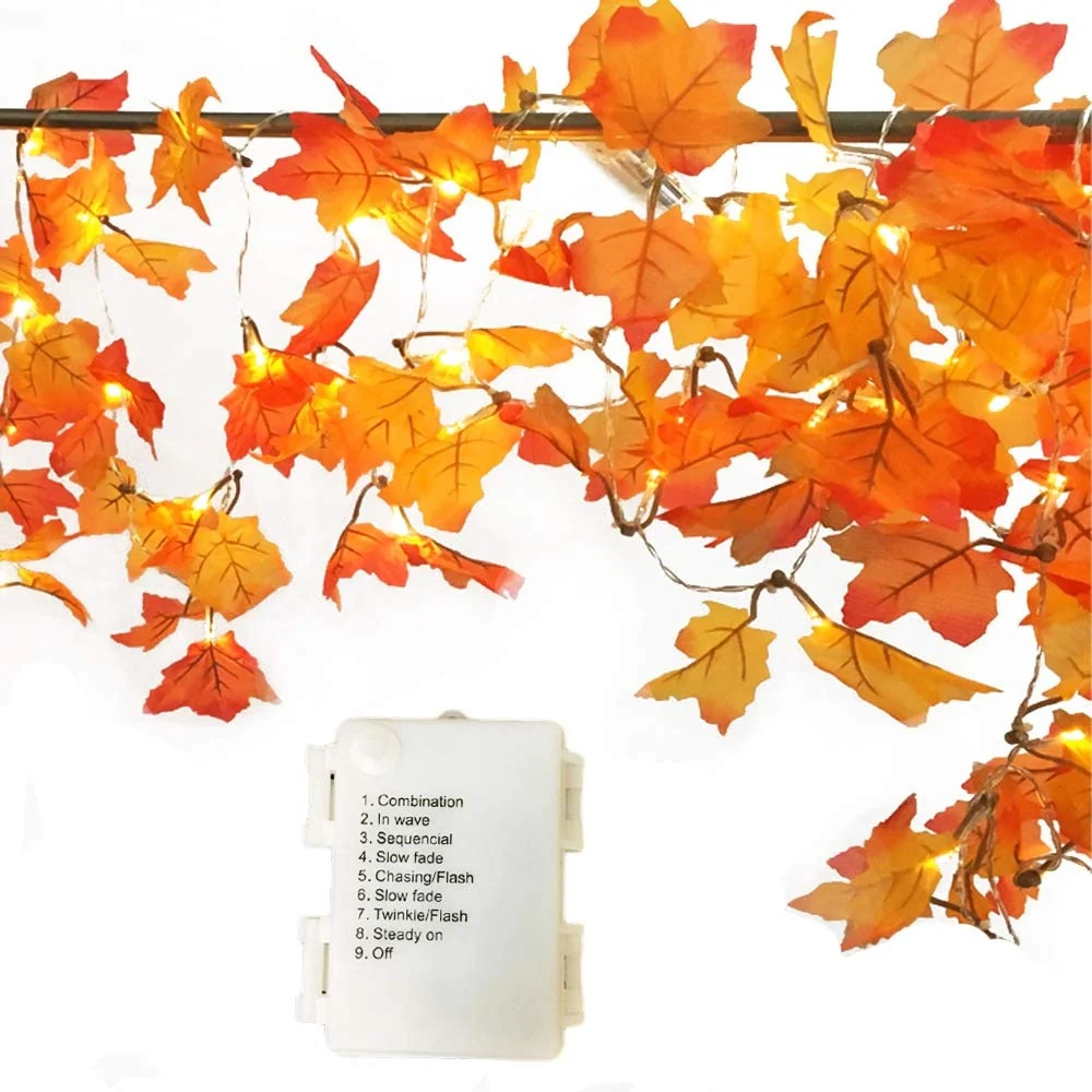 Glitzhome LED Lighted Fall Maple Leaves Wreath/Garland for Thanksgiving