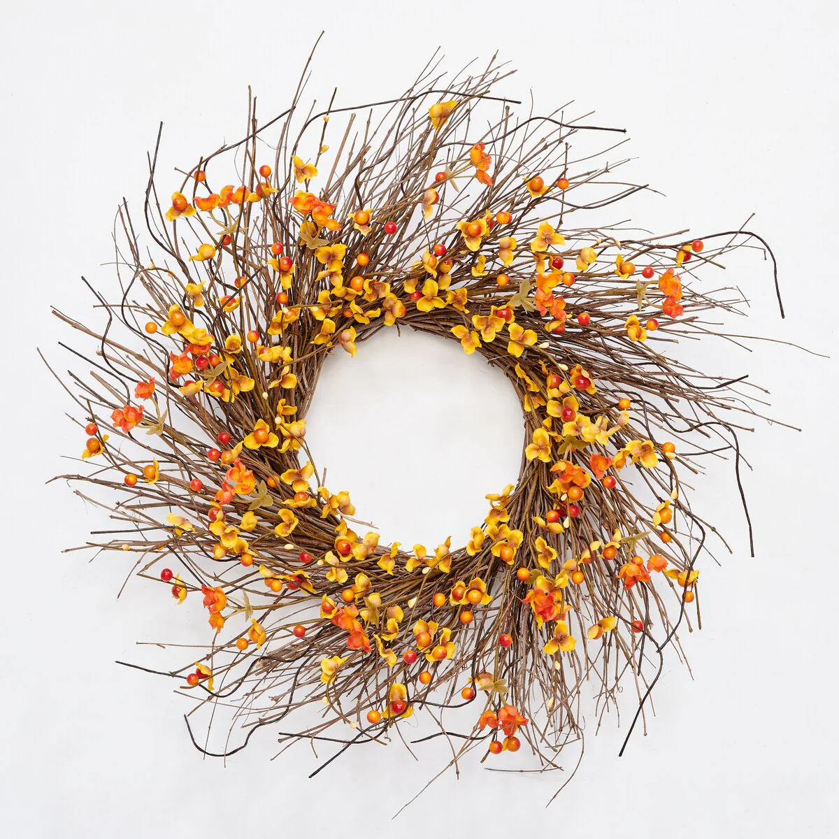 21 Fall Wreath with Artificial Bittersweet On Wild Natural Twigs - 21