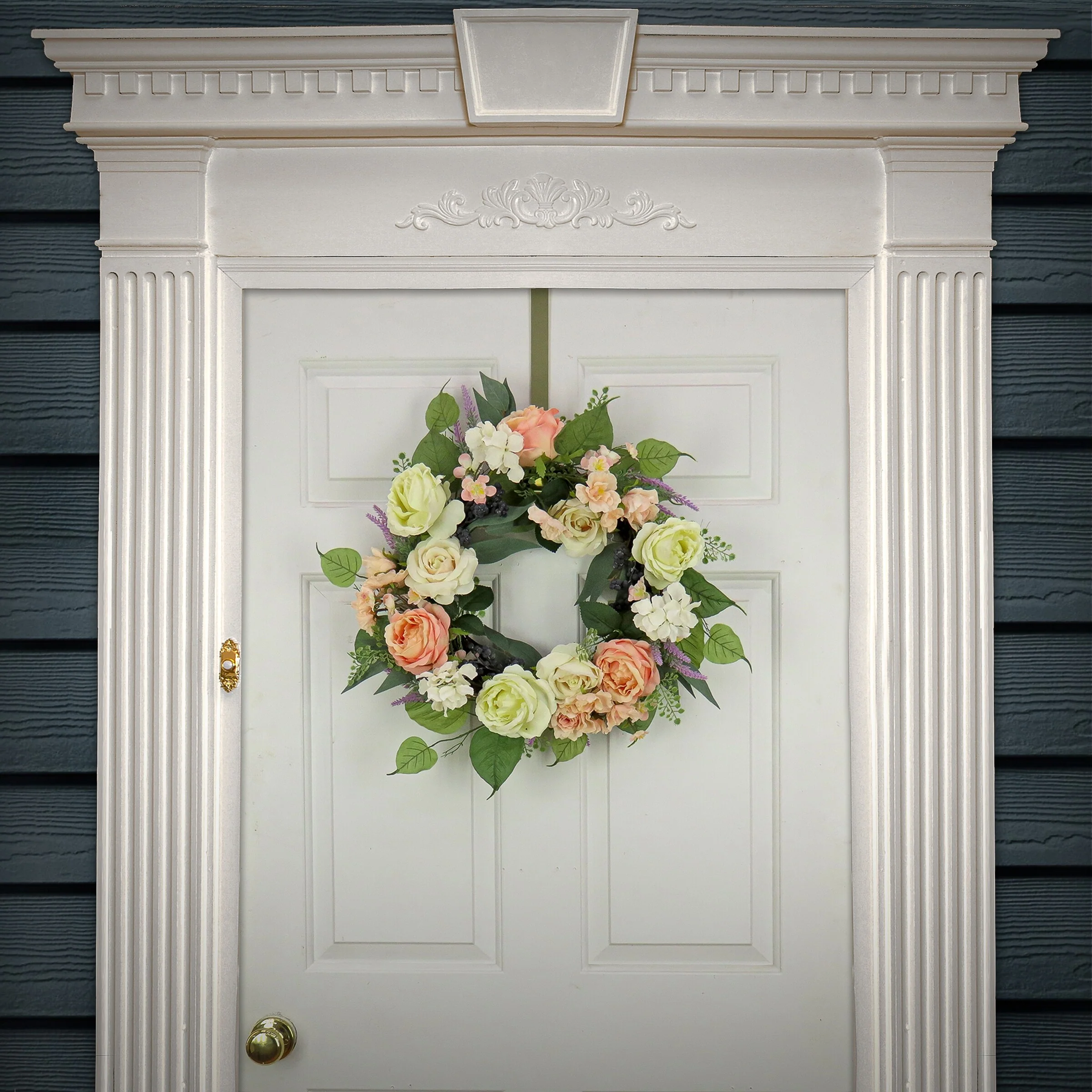 National Tree Company 24 inch Artificial Spring Wreath with Rose and Peony Flower Blooms, Leafy Greens, Realistic Floral D茅cor