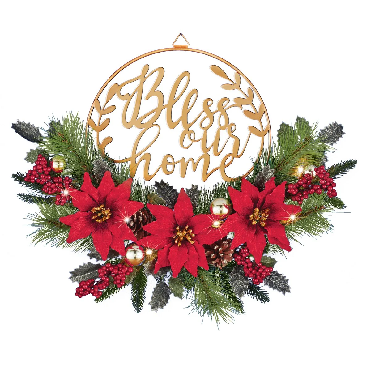 Bless our Home Gold-Tone Metal Door Wreath with Poinsettias - 21 x 15 x 6